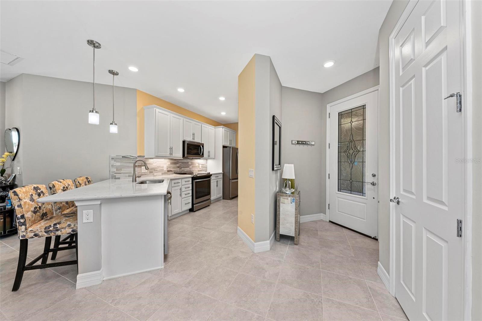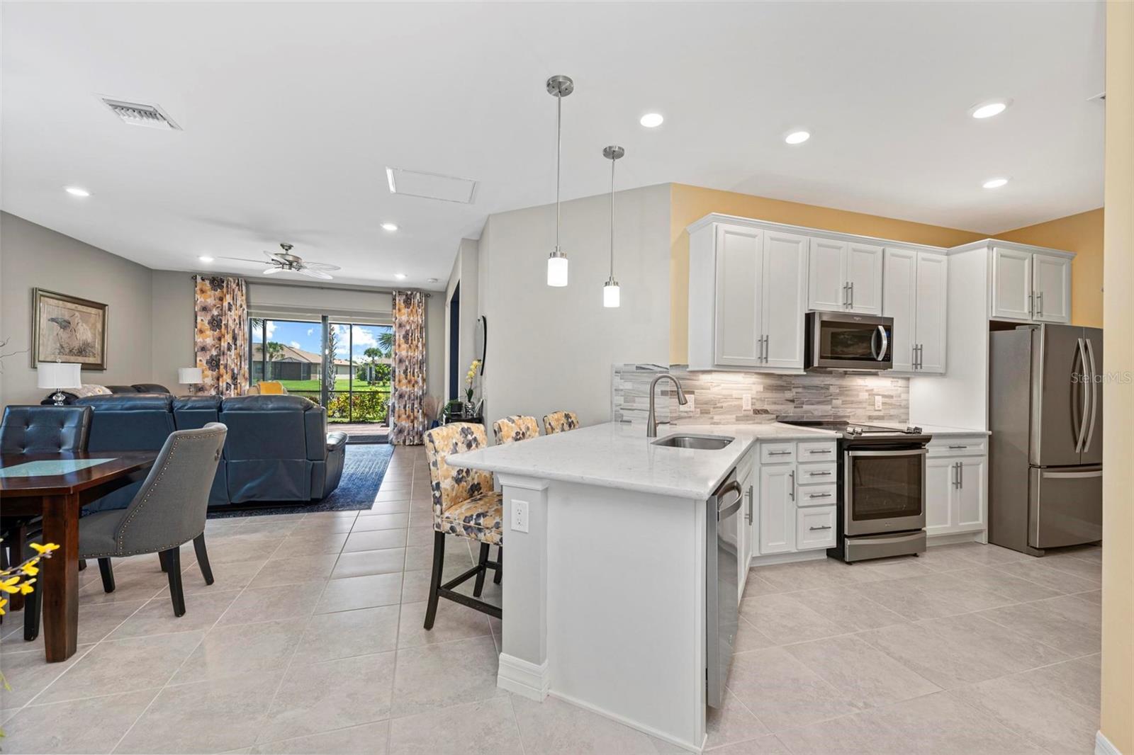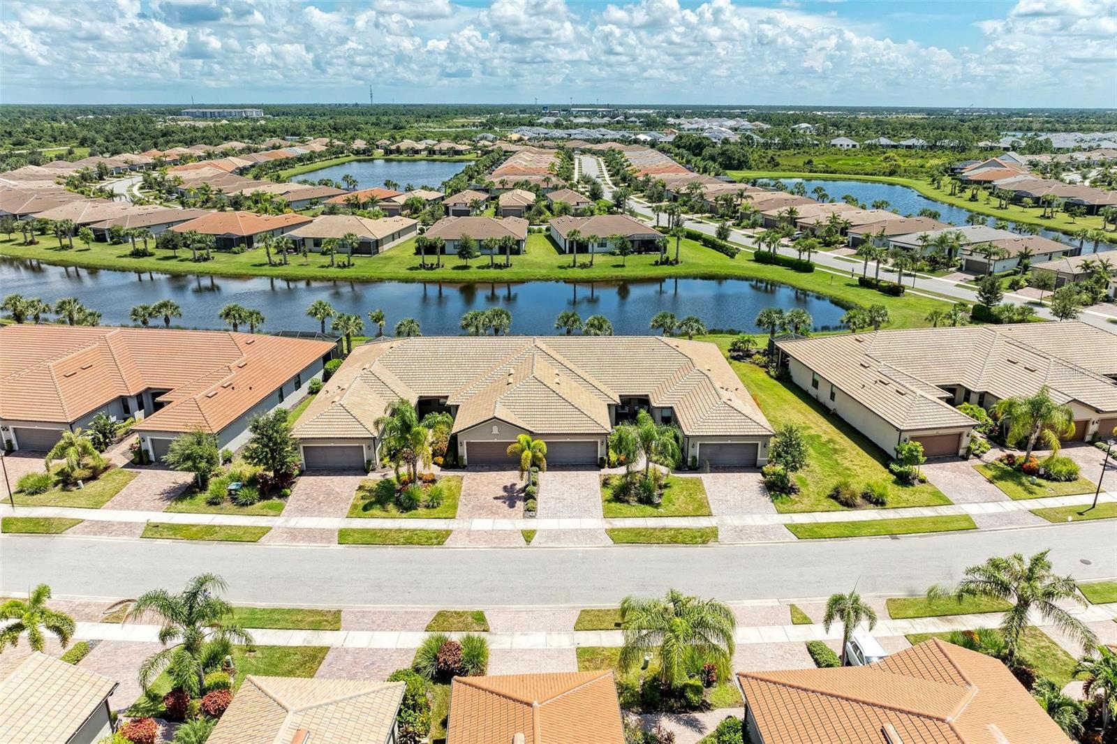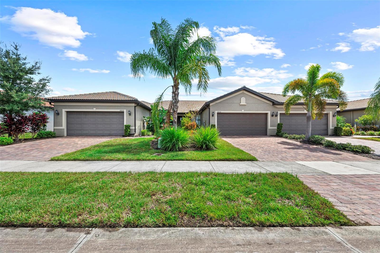 PRICE REDUCTION - MOTIVATED SELLERS! Stunning Cascadia Attached Villa on the WATER! This lightly lived-in villa is spacious and open, featuring 2 Bedrooms + Den (currently used as a 3rd bedroom with French doors), 2 Bathrooms, and a 2-Car Attached Garage. Enjoy serene water views from the Extended Lanai with oversized brick pavers, creating a beautiful outdoor space perfect for relaxation or entertaining. The gourmet kitchen includes stainless steel appliances, custom marble backsplash, quartz countertops, and convenient pull-out cabinet drawers. There’s both a cozy eat-in kitchen area and a breakfast bar on the island. The split floor plan offers privacy, with the guest bedroom and bathroom at the front of the home and the master suite at the back. The spacious master suite features a luxurious bath with a walk-in shower, frameless glass enclosure, dual rectangular sinks, and upgraded countertops. The bright den is ideal as an office or additional guest space. Additional upgrades include: GLASS FRONT DOOR, UPGRADED LANDSCAPING, PLANTATION SHUTTERS, TILE THROUGHOUT MAIN LIVING AREA, UPGRADED LIGHTING, RECESSED LIGHTING, 8' DOORWAYS, 5" BASEBOARDS and SOLD FRENCH DOORS TO THE DEN. IslandWalk is one of VENICE'S most social communities with a FULL TIME ACTIVITIES DIRECTOR, countless events and clubs and activities, TWO community clubhouses, an EVENT center, TWO resort style pools, a LAP pool, 12 PICKLE BALL Courts, 8 Har Tru Tennis Courts, DOG PARK, Playground, Basketball Court, Community Garden- the list goes on! The entire community is surrounded by miles and miles of golf cart trails, walking and biking trails, VENETIAN bridges and water! The Atlanta Braves Stadium is a short bike ride away- enjoy year-round events and activities. The new marketplace is now complete with PUBLIX, restaurants, shopping, gas station, etc! Downtown Wellen Park features an 80-acre lake, retail shops, restaurant waterfront dining and rooftop decks, pedestrian-friendly streets, a splash pad, a playground and a public town hall gathering place that hosts live theater and music events. Coming soon to downtown Wellen Park- a hammock grove and a permanent food truck area IslandWalk HOA includes grounds maintenance, CABLE, WIFI, amenities, and 24 hour guard.