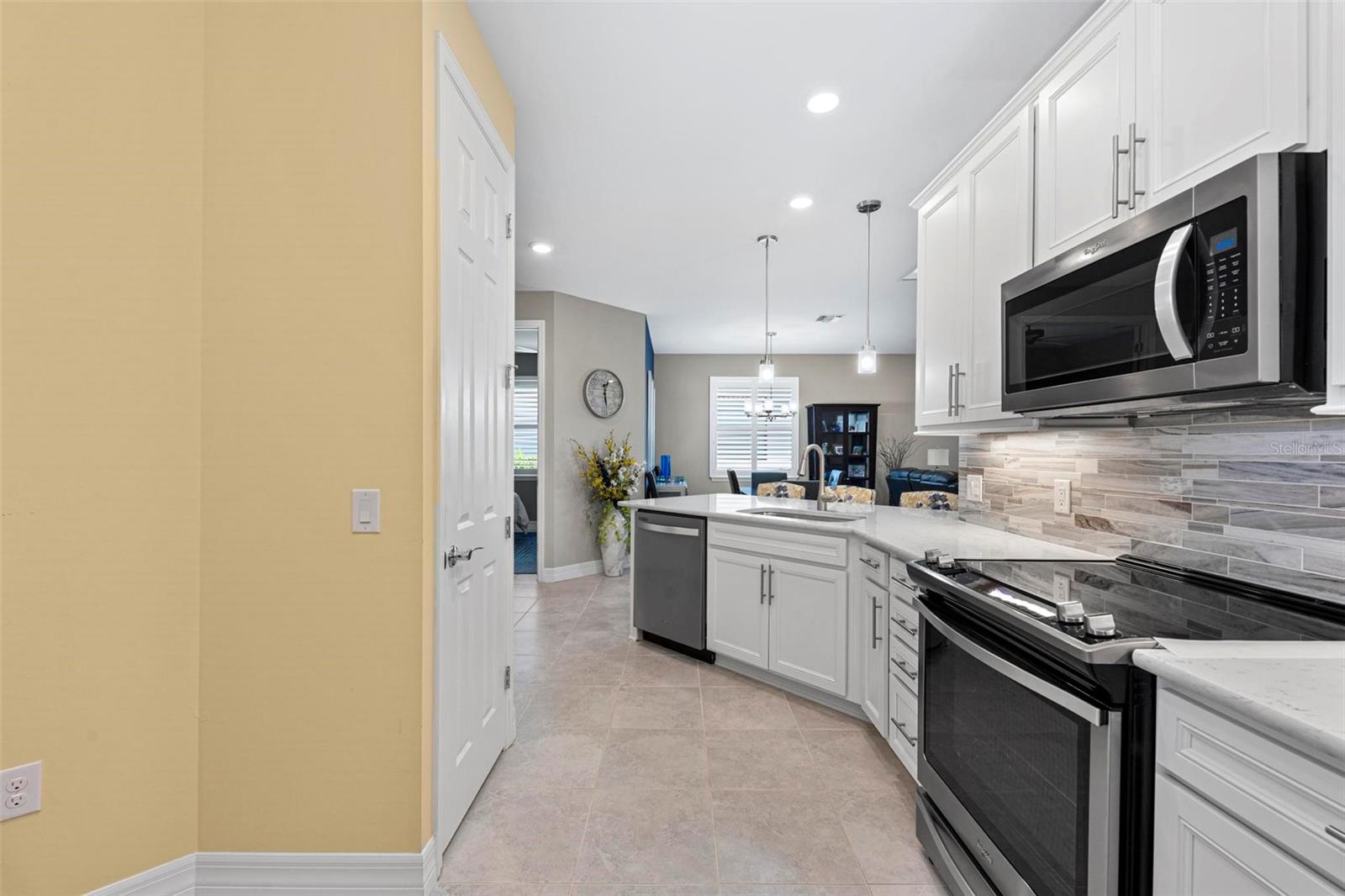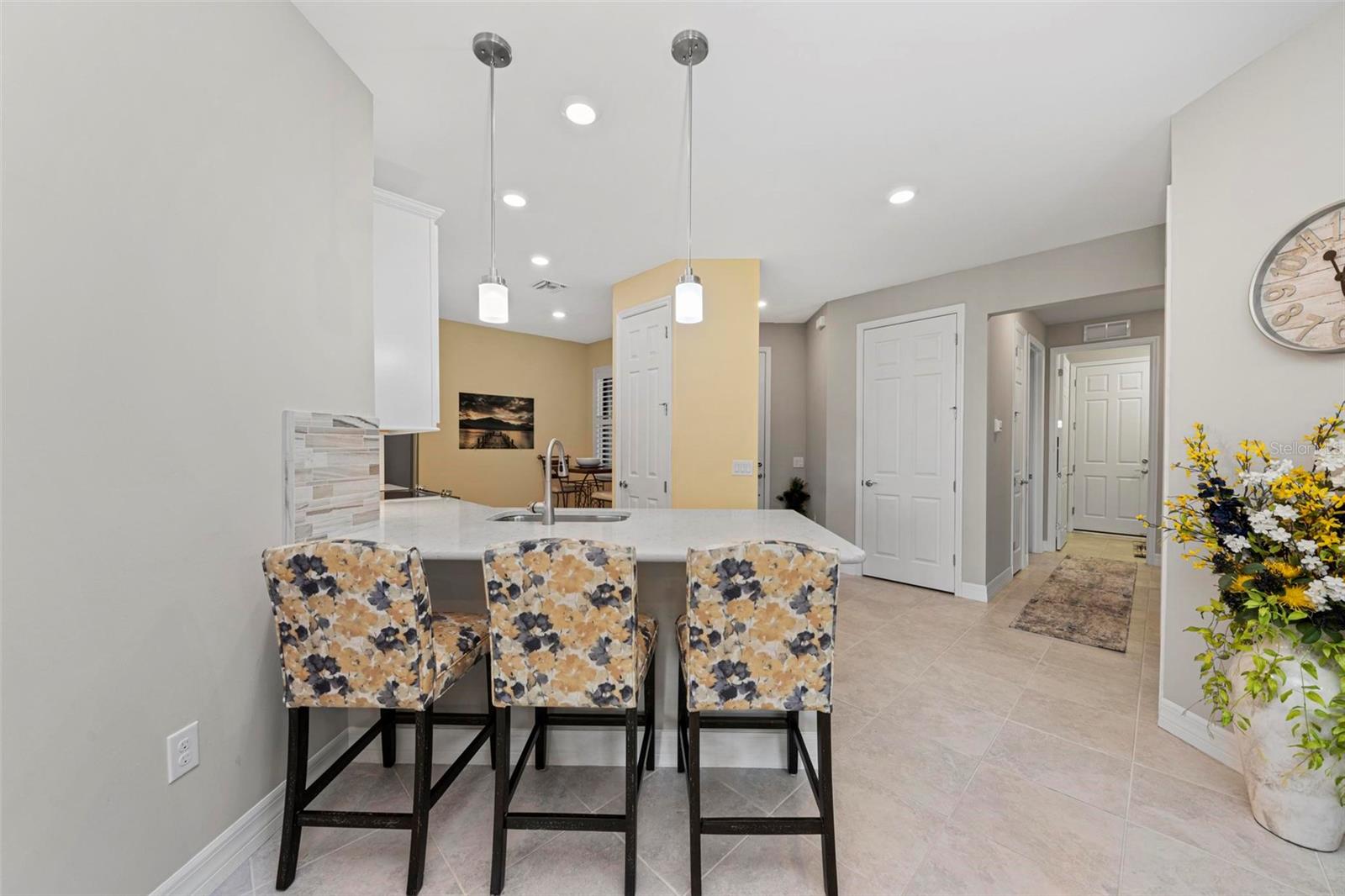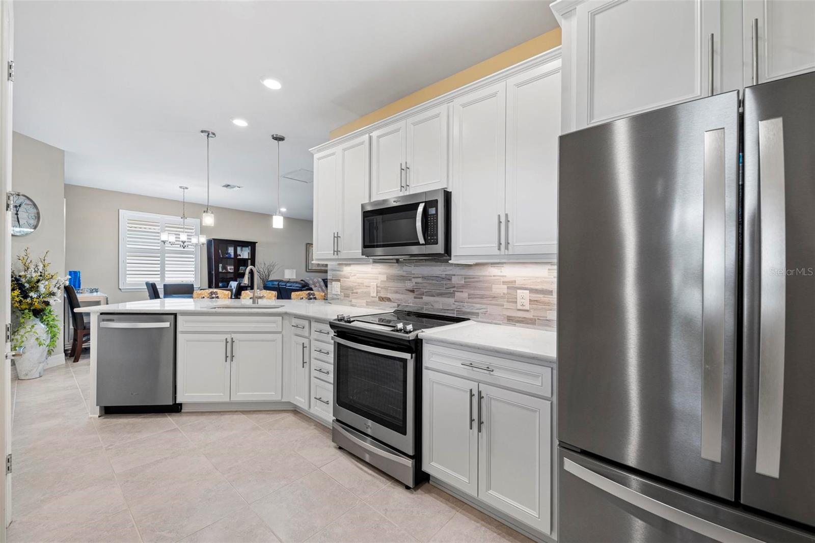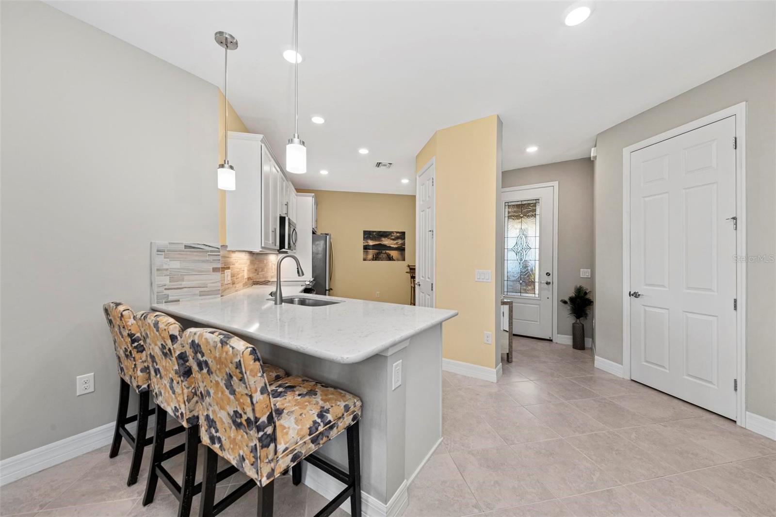 PRICE REDUCTION - MOTIVATED SELLERS! Stunning Cascadia Attached Villa on the WATER! This lightly lived-in villa is spacious and open, featuring 2 Bedrooms + Den (currently used as a 3rd bedroom with French doors), 2 Bathrooms, and a 2-Car Attached Garage. Enjoy serene water views from the Extended Lanai with oversized brick pavers, creating a beautiful outdoor space perfect for relaxation or entertaining. The gourmet kitchen includes stainless steel appliances, custom marble backsplash, quartz countertops, and convenient pull-out cabinet drawers. There’s both a cozy eat-in kitchen area and a breakfast bar on the island. The split floor plan offers privacy, with the guest bedroom and bathroom at the front of the home and the master suite at the back. The spacious master suite features a luxurious bath with a walk-in shower, frameless glass enclosure, dual rectangular sinks, and upgraded countertops. The bright den is ideal as an office or additional guest space. Additional upgrades include: GLASS FRONT DOOR, UPGRADED LANDSCAPING, PLANTATION SHUTTERS, TILE THROUGHOUT MAIN LIVING AREA, UPGRADED LIGHTING, RECESSED LIGHTING, 8' DOORWAYS, 5" BASEBOARDS and SOLD FRENCH DOORS TO THE DEN. IslandWalk is one of VENICE'S most social communities with a FULL TIME ACTIVITIES DIRECTOR, countless events and clubs and activities, TWO community clubhouses, an EVENT center, TWO resort style pools, a LAP pool, 12 PICKLE BALL Courts, 8 Har Tru Tennis Courts, DOG PARK, Playground, Basketball Court, Community Garden- the list goes on! The entire community is surrounded by miles and miles of golf cart trails, walking and biking trails, VENETIAN bridges and water! The Atlanta Braves Stadium is a short bike ride away- enjoy year-round events and activities. The new marketplace is now complete with PUBLIX, restaurants, shopping, gas station, etc! Downtown Wellen Park features an 80-acre lake, retail shops, restaurant waterfront dining and rooftop decks, pedestrian-friendly streets, a splash pad, a playground and a public town hall gathering place that hosts live theater and music events. Coming soon to downtown Wellen Park- a hammock grove and a permanent food truck area IslandWalk HOA includes grounds maintenance, CABLE, WIFI, amenities, and 24 hour guard.