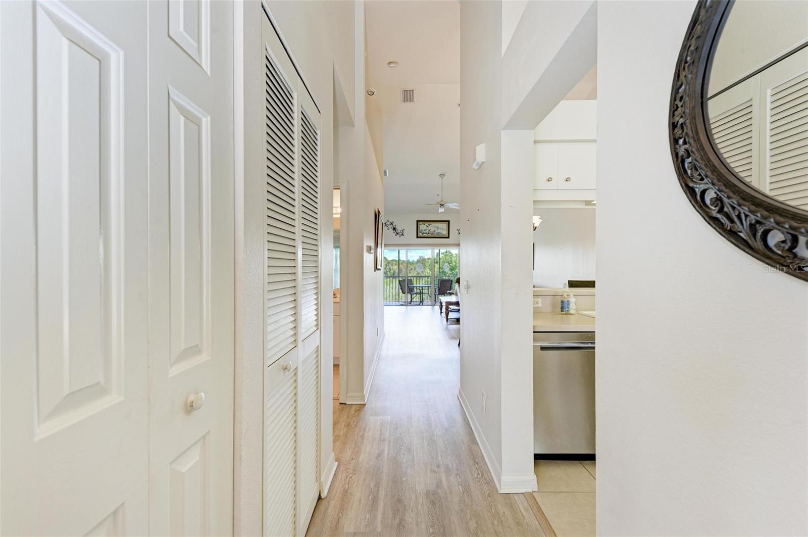 SELLER MOTIVATED!! THE BEST VIEW OF ALL UNITS!!! Enjoy the beautiful WATER and serene NATURE preserve view while having your morning coffee. Being sold TURN KEY, excluding the couch in guest room. This condo has HIGH CEILINGS, LOTS OF LIGHT throughout offering a bright and spacious living space. NO CARPETS throughout the home. MASTER BEDROOM has a en suite bathroom with very LARGE WALK IN CLOSET, TWO HALLWAY CLOSETS and the kitchen dining area has BRIGHT BAY WINDOWS bringing in lots of light. Tile and luxury vinyl flooring give this space a fresh feeling. The laundry room is separate and is found in its own closed space in the lanai. Residents have an assigned CARPORT and STORAGE UNIT and plenty of parking for your guests. WATERSIDE VILLAGE offers an array of amenities including a CLUBHOUSE that offers daily activities, a POOL and TENNIS/PICKLEBALL COURTS. Located in a PRIME location off JACARANDA BLVD. and just MINUTES away from WELLEN PARK and LOCAL BEACHES, SHOPPING and DINING. Schedule your showing today!