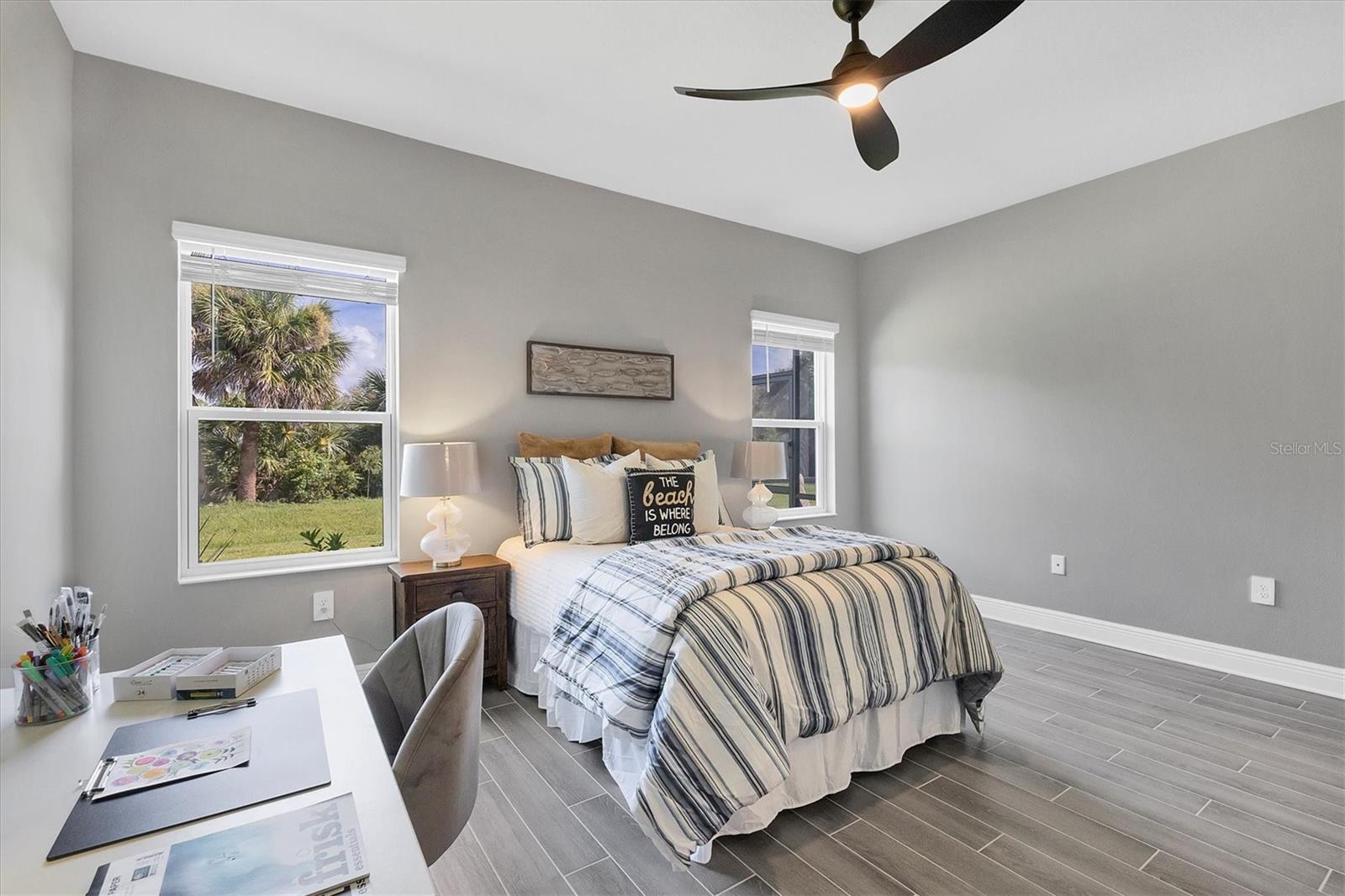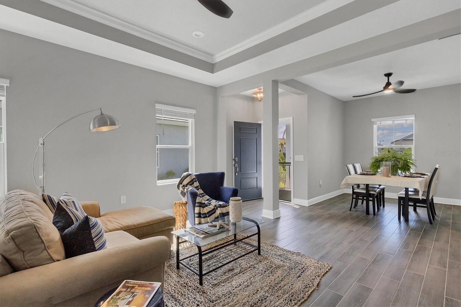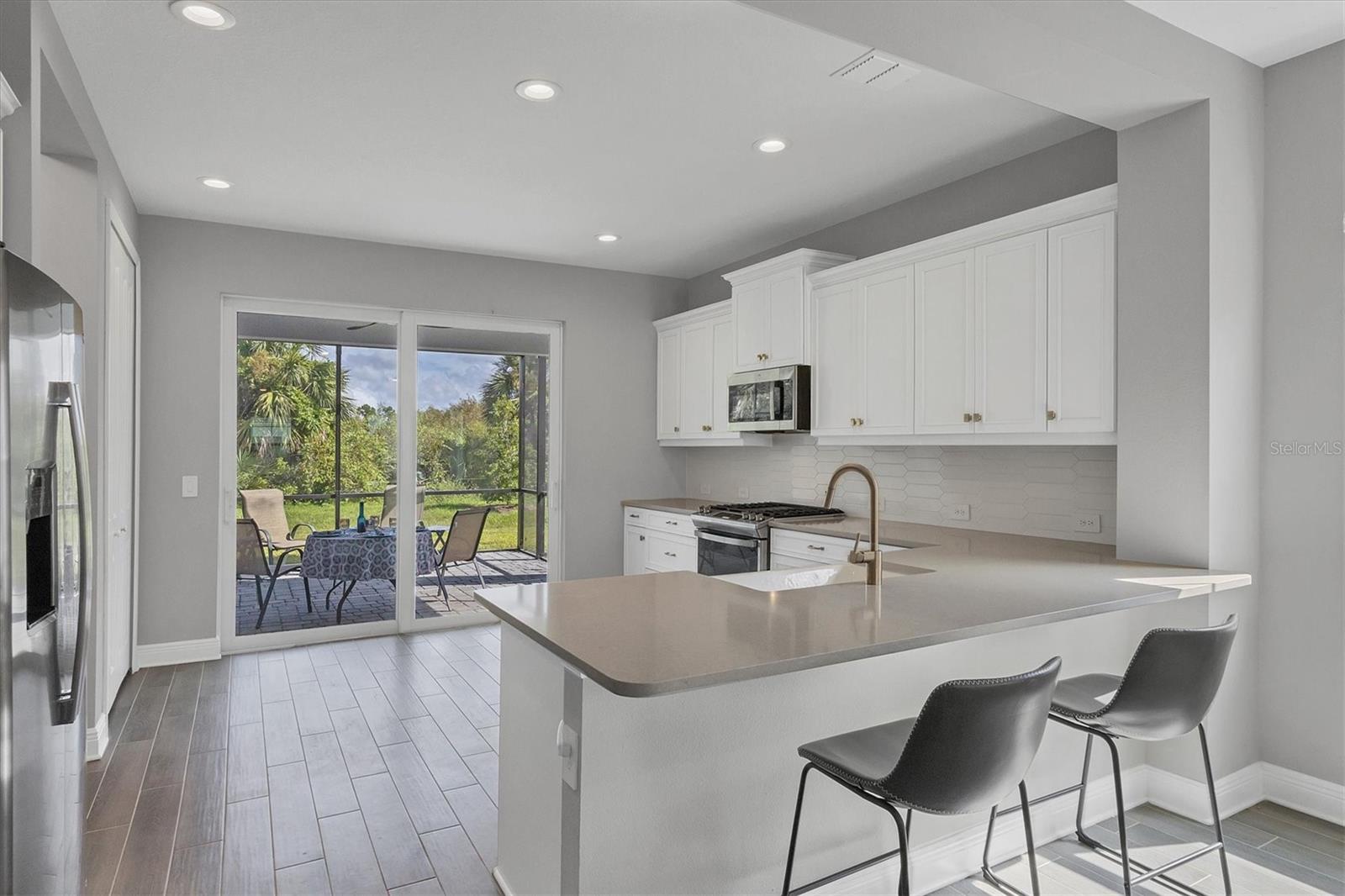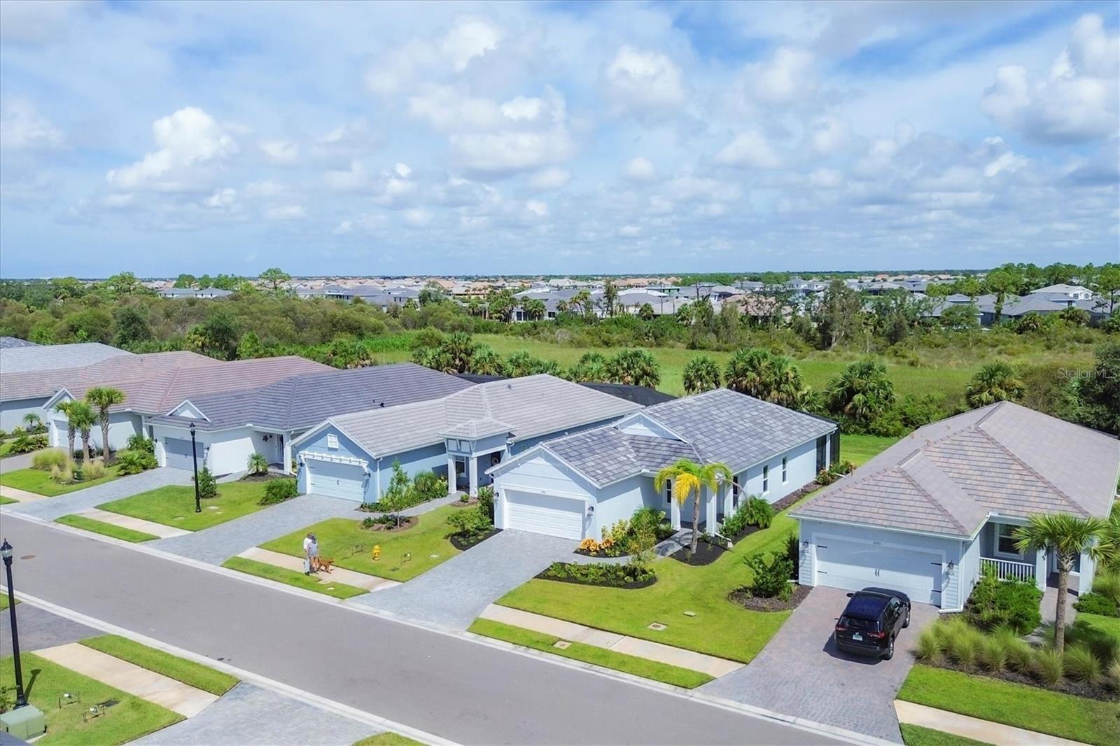 This 3-bedroom, 2-bathroom home offers a perfect blend of modern elegance and serene comfort. As you step inside, you'll be greeted by an open-concept living space that includes a dining room alongside the living room. Your eyes will be drawn to the contemporary kitchen with sleek subway tile backsplash, ample counter space, and a gas stove for all your culinary adventures. Another feature of the kitchen is the double sliding doors leading to the extended lanai. The screened lanai is perfect and provides a tranquil retreat with lovely views of a private preserve—ideal for relaxing or entertaining guests. The lanai has a ceiling fan, electric outlets, and a gas stub for you to add a grill or even better, add an outdoor kitchen. The home boasts a spacious ensuite primary bathroom and bedroom with a walk-in shower and two walk-in closets. The other two bedrooms are on the other side of the living room for privacy. Additional highlights include impact windows and sliding doors everywhere creating an energy efficient home, along with security no matter what the weather will be. Most of the rooms have ceiling fans installed. The garage has an epoxy-coated floor for easy maintenance. Situated in the desirable Wysteria Community of Wellen Park, this home offers not only a place to live but a lifestyle to enjoy. In Wisteria, enjoy the community pool, spa, and pickleball courts. Wisteria is carefree living because the HOA takes care of lawn, landscape maintenance, and the irrigation system. Enjoy nearby Downtown Wellen Park with daily entertainment, shopping and restaurants, along with walking paths and bike trails. Enjoy relaxing beside the large lake or on it with a kayak or paddleboard. And fishing is allowed. The Cool Today Park is within two miles... this is the spring training stadium for the Atlanta Braves, plus has additional featured entertainment year long. No need to travel far for shopping, there’s a Publix Plaza, Costco Warehouse, and more in Wellen Park. Schools and future medical facilities are in construction now. Don’t miss your chance to own this beautiful property, schedule a showing now.