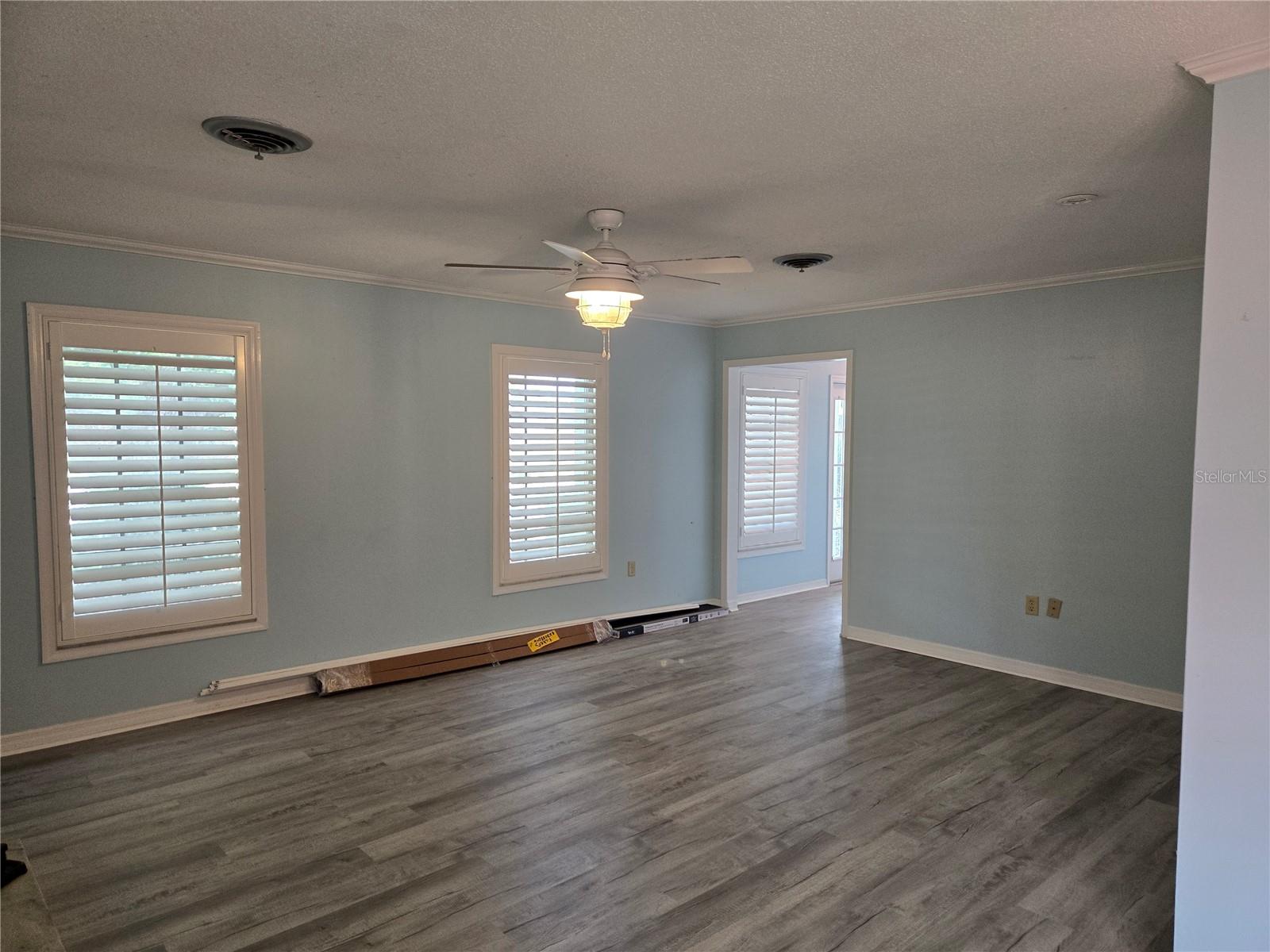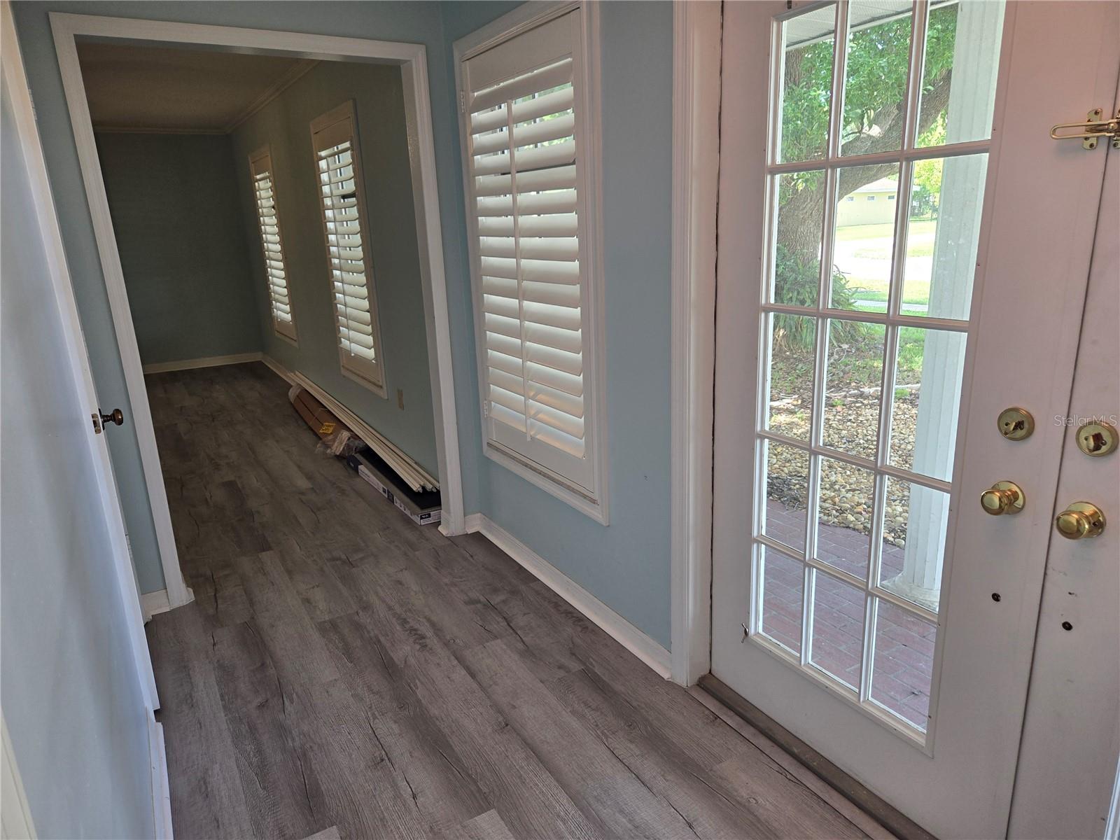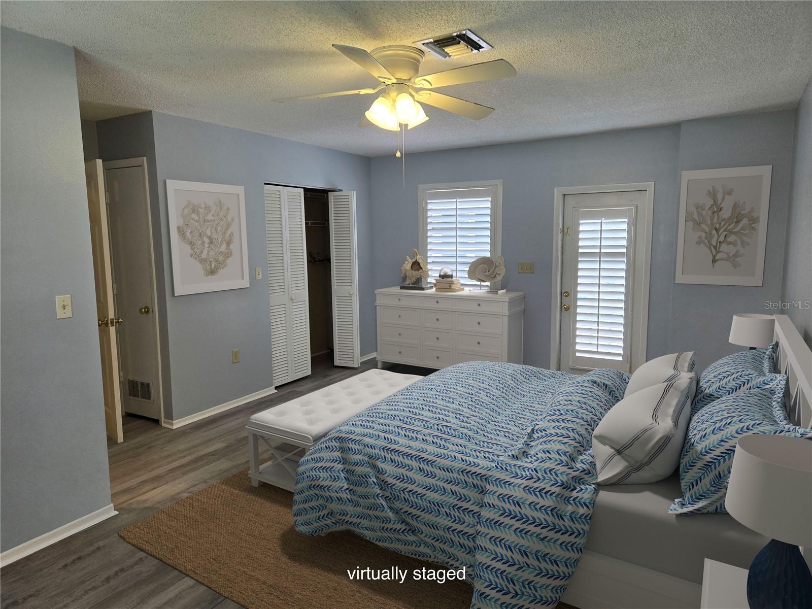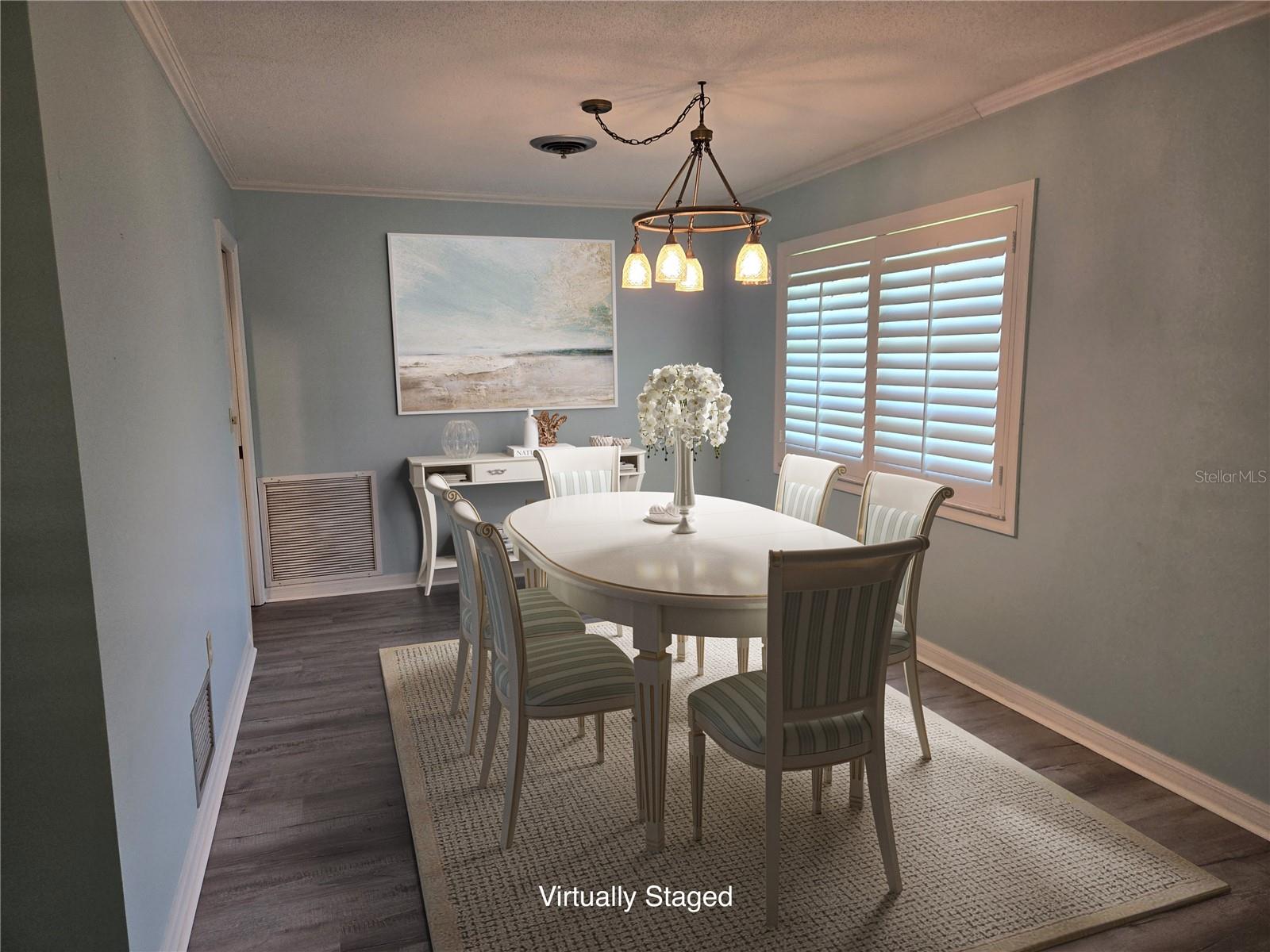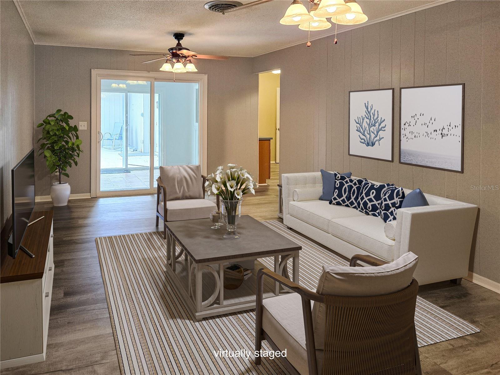 Very distinctive Southern style home with 2 master suites! Large office area with Mexican tile and sliders going to pool area. Large corner lot in the coveted South Venice neighborhood. This lovely home has spacious rooms and an L shape around the backyard pool. Lush landscaping around pool area, and the backyard is totally fenced with PVC fencing and 2 double gates to put a boat, jet skis, or other toys inside the fenced area! Wood burning fireplace adds charm in the living room and there are beautiful Plantation shutters on the windows in the main areas. **Interior walls of home were painted in July 2024. Whole house (except laundry room and office) has been updated with gorgeous luxury vinyl flooring in August 2024. Oversized side load garage with wide driveway. A/C changed out in 2019. New septic tank and drain field in 2021. New roof in 2023.**