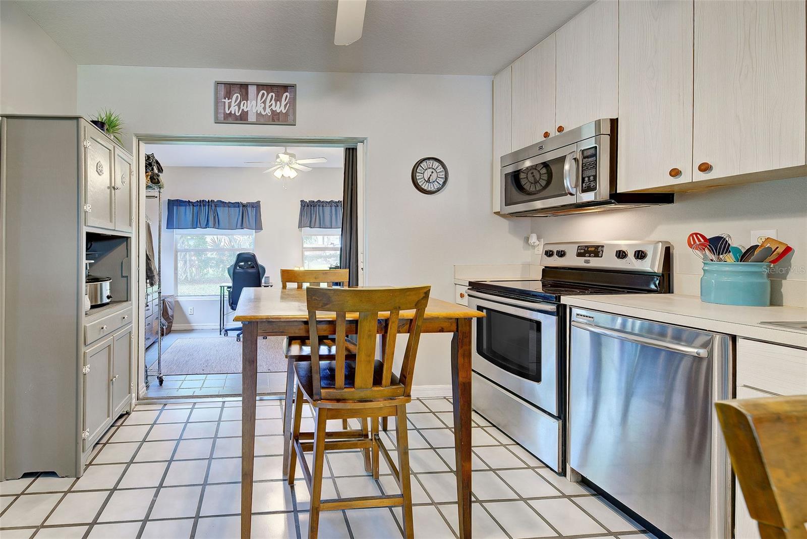 NO FLOOD ZONE! Cute, cute, cute! This S Venice home is ready for it's new owners. Home was REBUILT in 2001. The fenced backyard beckons for outdoor entertaining and lots of outdoor parties! The home has 2 bedrooms, 1 bath. An interior laundry room once housed a 2nd bathroom, connections are still in place for future owners to re-establish the connections if you choose. Washer and dryer included, the washer is NEW. PLUS... a BONUS enclosed FLORIDA ROOM. This lovely, climate controlled four-season Florida Room opens onto the pretty backyard with shade trees offering a peaceful setting. You can use this room for additional living space, a family room, dining room, guest room, office or den. There is even a patio off the lanai for your grill and outdoor seating. The kitchen has Stainless Steel appliances and an open concept work area. NO FLOOD ZONE or HOA DUES. NEW ROOF 2022, NEW SEPTIC SYSTEM & DRAIN FIELD IN 2020 and A/C SYSTEM was replaced in 2012. This home is perfect whether you are looking for your first home, a winter getaway, or possibly an investment property. Situated in the heart of South Venice, Seminole Drive is convenient to local restaurants, libraries, schools, grocery stores, public beaches and Venice's major retail district. Optional membership available for the South Venice Civic Association with a ferry to their private beach, boat ramp & kayak /canoe launch and an active community center. Come see this one today!