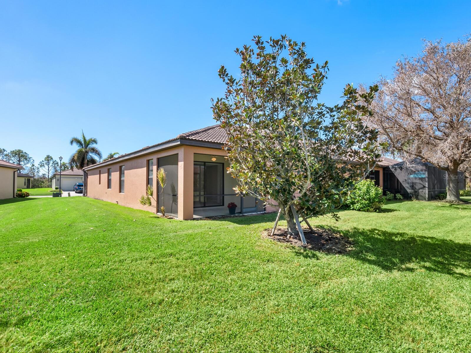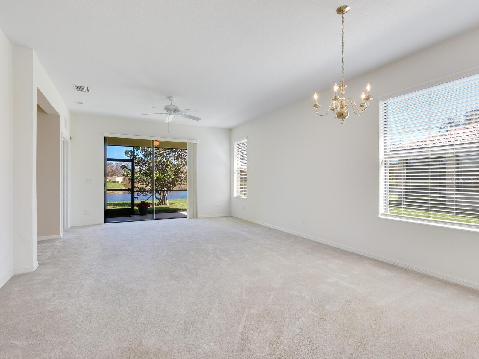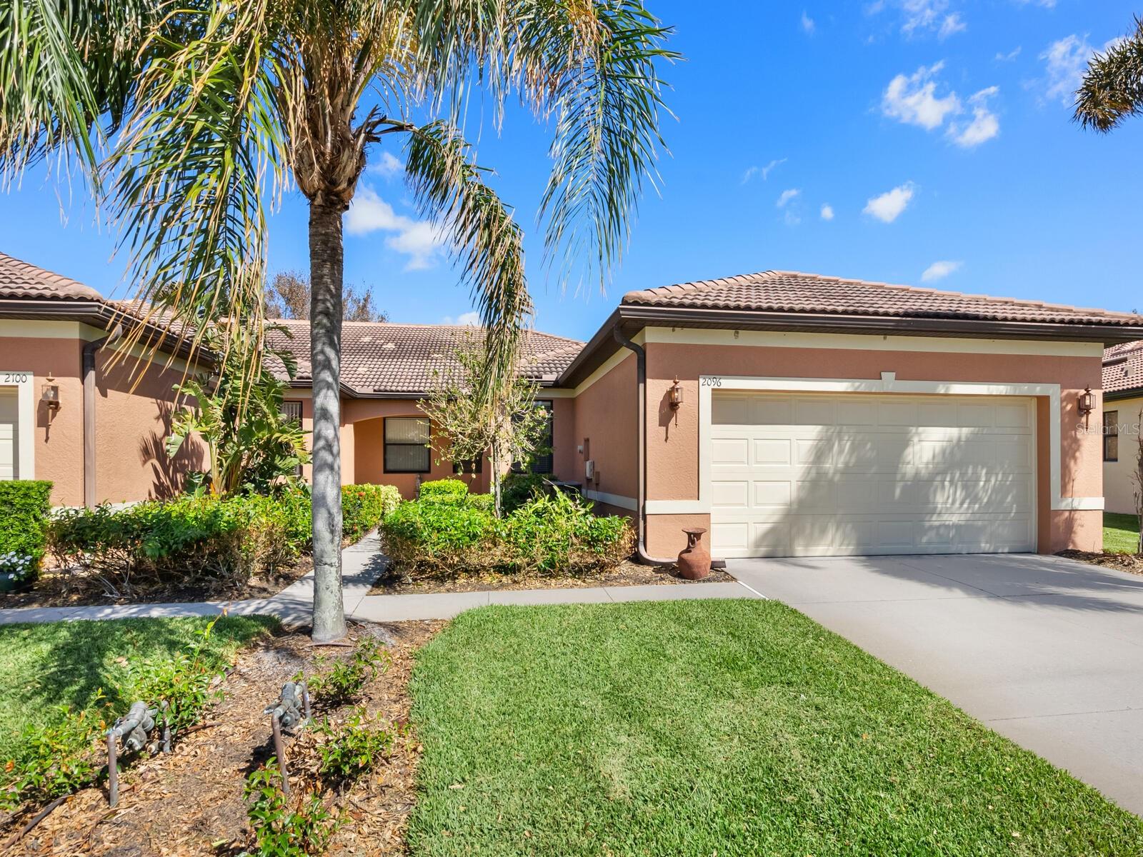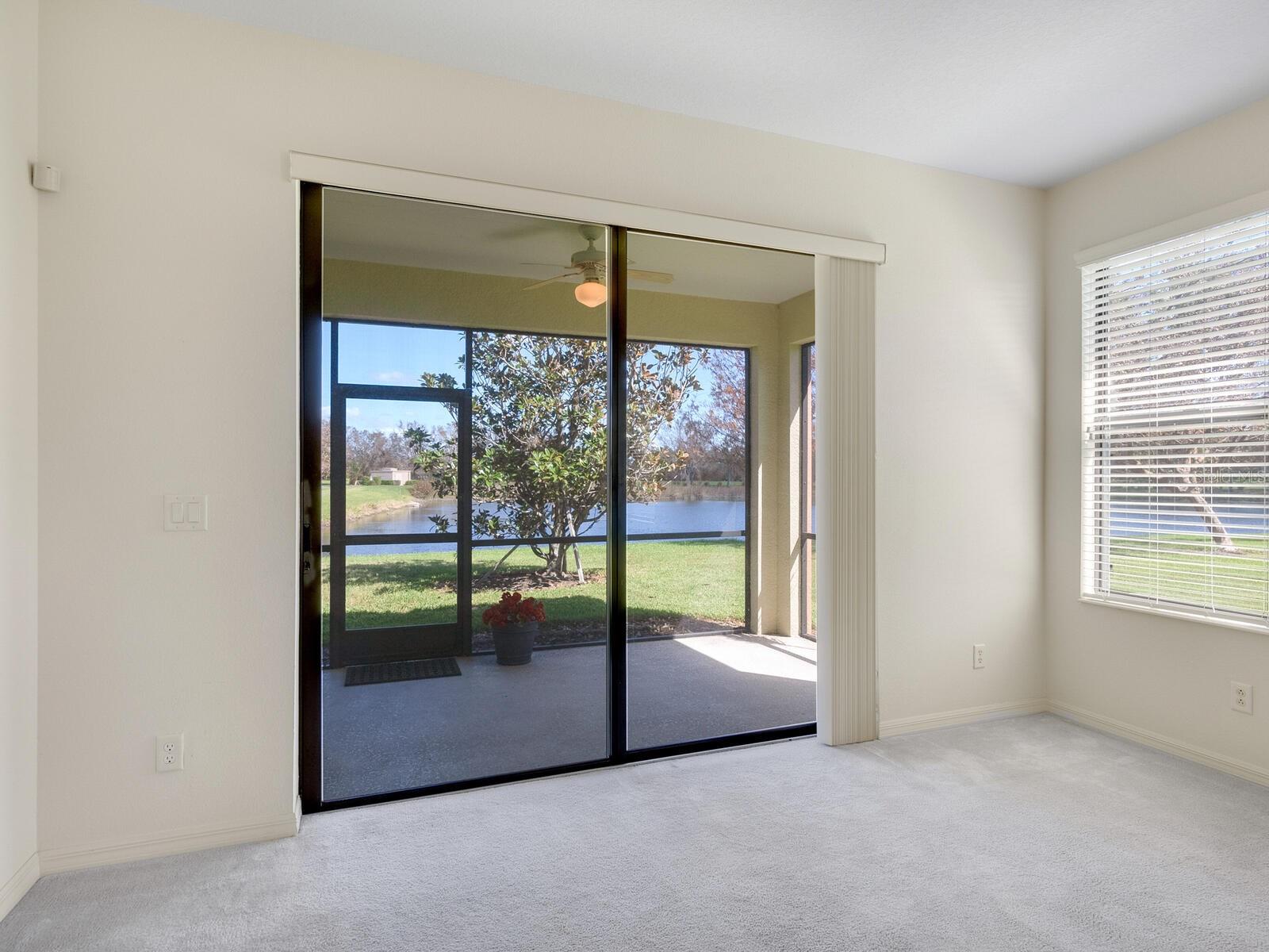 Enjoy sparkling lake views from this maintenance-free garden villa, located in the premier 55+ resort-style community of Venetian Falls. This Bella Vista model has an open living and dining room concept, 2-bedrooms plus a den, two full bathrooms, plus a 2-car garage. The kitchen features an additional dining area by the front window, a pantry, and breakfast bar. The primary suite offers a large bedroom, two closets (one a large walk-in) and bathroom with dual sink vanity, shower, and linen closet. The guest bedroom and bathroom are conveniently located near the front of the home for additional privacy. The den has a door for versatility of use. Relax on your lanai and enjoy the view! This is a great opportunity to own a lake view property in Venetian Falls! The HOA fees include on-site management, maintenance-free lawn care, internet and basic cable TV, plus rotational scheduling of roof power-washing, exterior paint, and mulch. The fabulous community amenities include an active clubhouse with full-time activity director, heated lap pool, spa, resistance walking pool, state-of-the-art exercise facility, billiard room, arts-and-crafts room, bocce ball, and more. All this is just a few minutes away from sunny beaches, shopping, restaurants, and historic Main Street Venice!