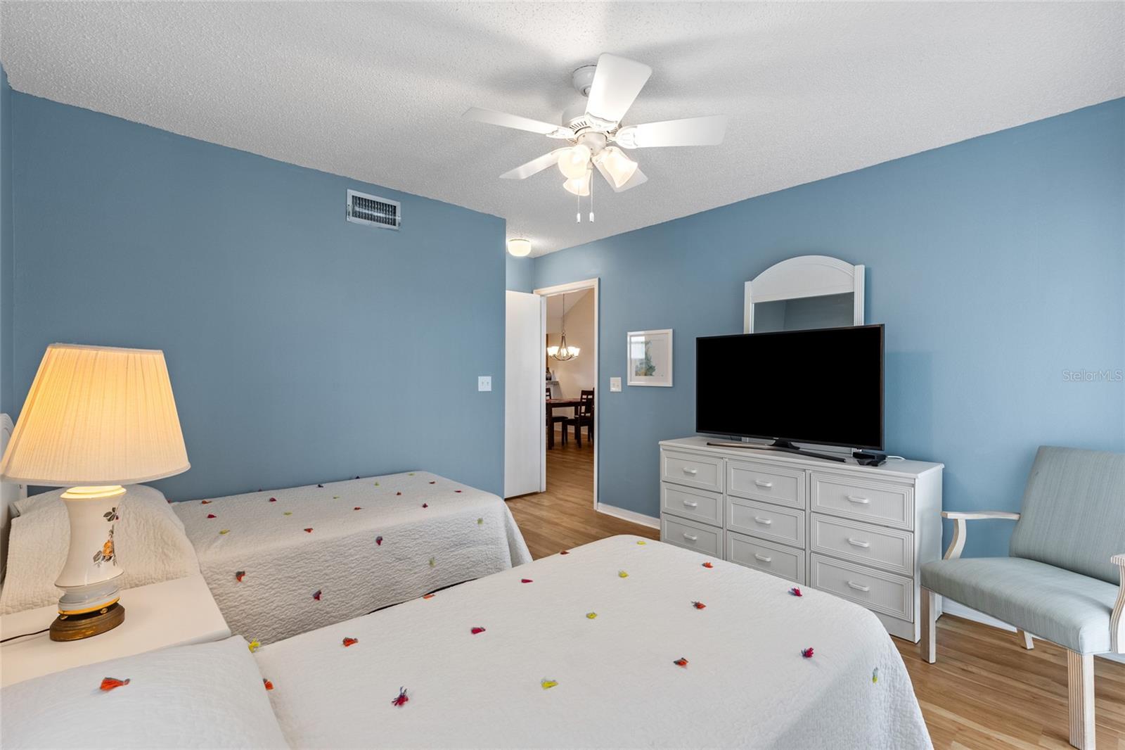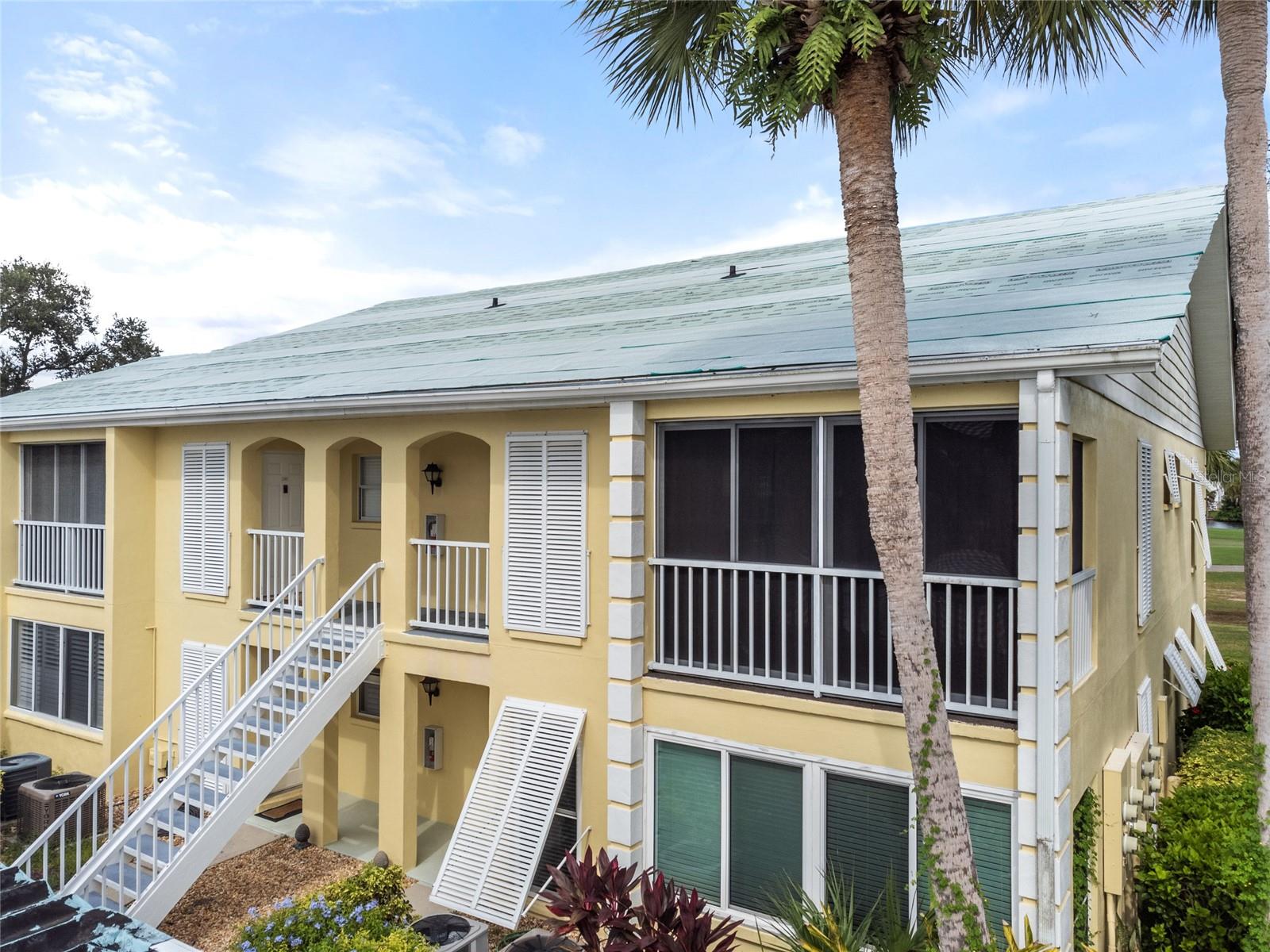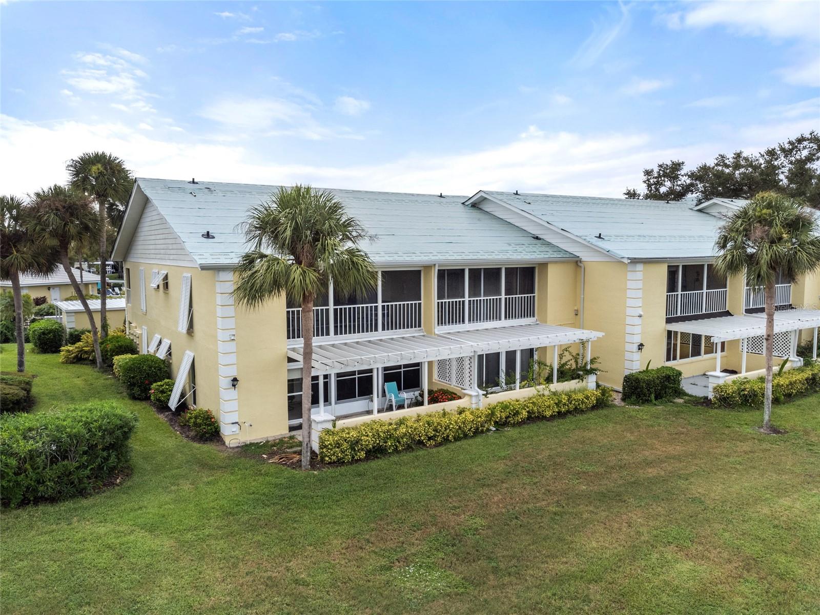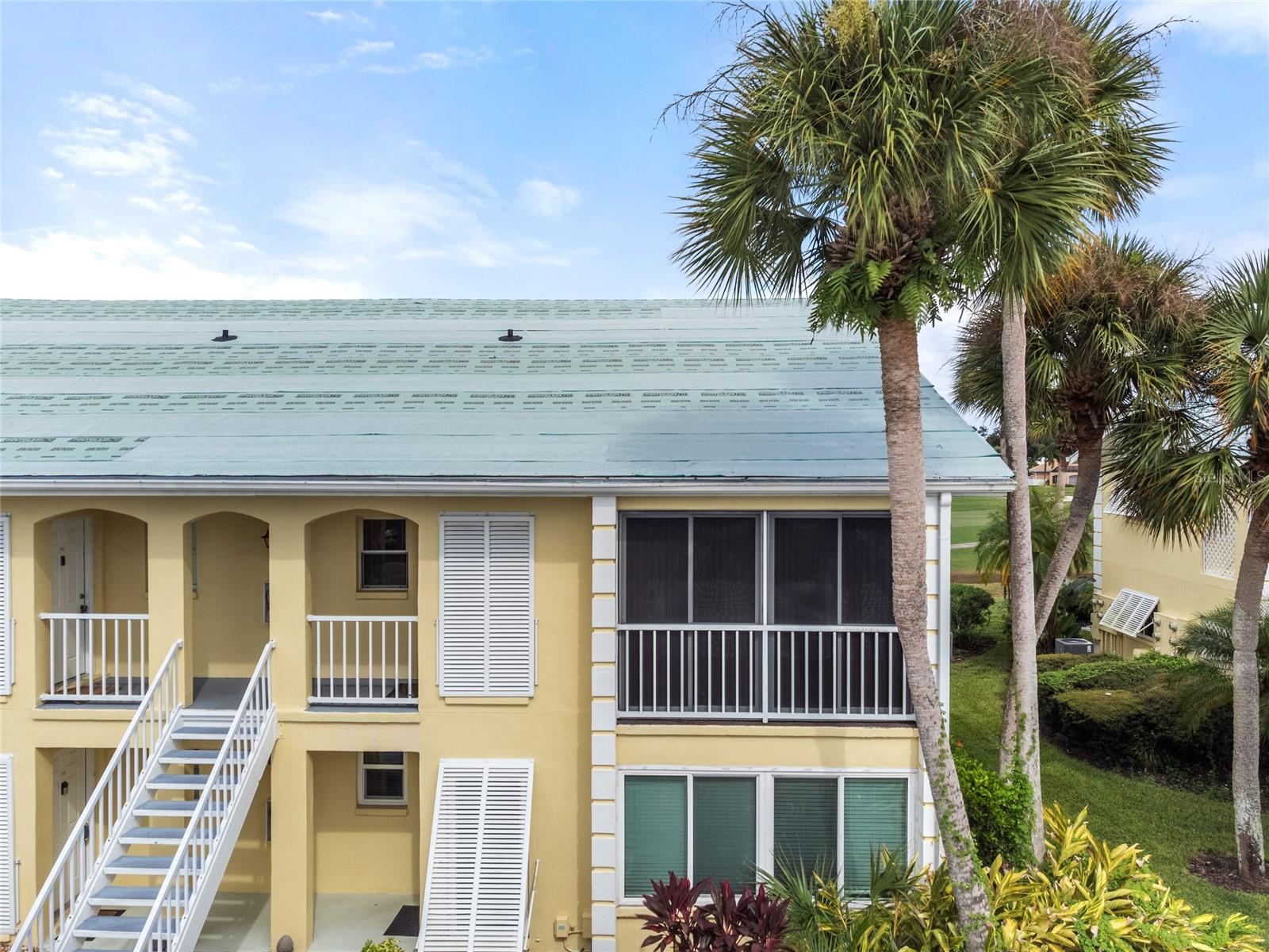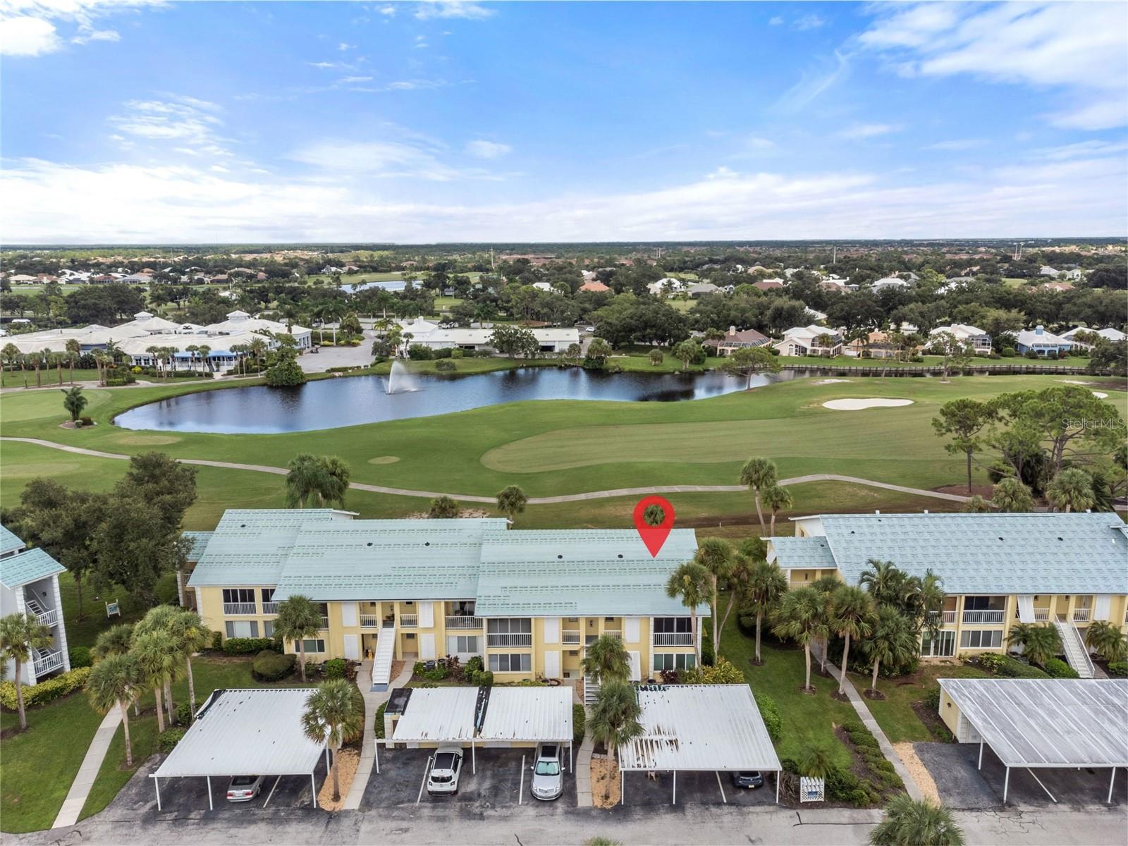 Stunning 2-Bed, 2-Bath Condo with Golf Course Views in Plantation Golf & Country Club. Enjoy breathtaking views of the Bobcat course's first hole from this beautifully updated condo. Offering modern living with vaulted ceilings and a spacious open floor plan. The newly renovated kitchen boasts elegant wood cabinets and granite countertops, perfectly complementing the new wood plank flooring throughout the great room and bedrooms. The expansive screened lanai provides serene golf course and lake views, ideal for morning sun and relaxing afternoons. Offered fully furnished in neutral tones, this condo is move-in ready. Recent updates include a 2023 air conditioning system, a 2022 water heater, and all-new kitchen along with appliances from 2020. You will enjoy the convenience of your own private laundry room and the brand-new 2024 washer. The primary bedroom features a walk-in closet, double sinks, and a spacious shower, with a private west-facing balcony perfect for enjoying sunsets or closing off for extra living space with the sliding glass doors. Worry-Free Living, experience the ease of condominium ownership with expertly managed exterior maintenance—ideal for travelers or those seeking a carefree lifestyle. This complex just had the roofs replaced and is slated for exterior painting and the paving of the parking areas. This maintenance has been budgeted and will not require additional assessments. NO CDD FEE. The neighborhood has an active clubhouse and community pool just steps away. The Plantation Golf & Country Club is a master-planned community with two 18-hole championship golf courses, 13 Har-Tru tennis courts, 6 pickleball courts, Bocce Ball, fitness center, Jr. Olympic pool along with exceptional dining and activity programs. Becoming a club member is optional. The neighborhood is located minutes to beaches, dining, shopping, the up-and-coming Wellen Park Downtown, the Atlanta Braves Stadium and I-75. This meticulously maintained condo offers an unbeatable combination of modern updates, beautiful views, and access to an exceptional community. Make this home your own and enjoy all that Plantation Golf & Country Club has to offer!