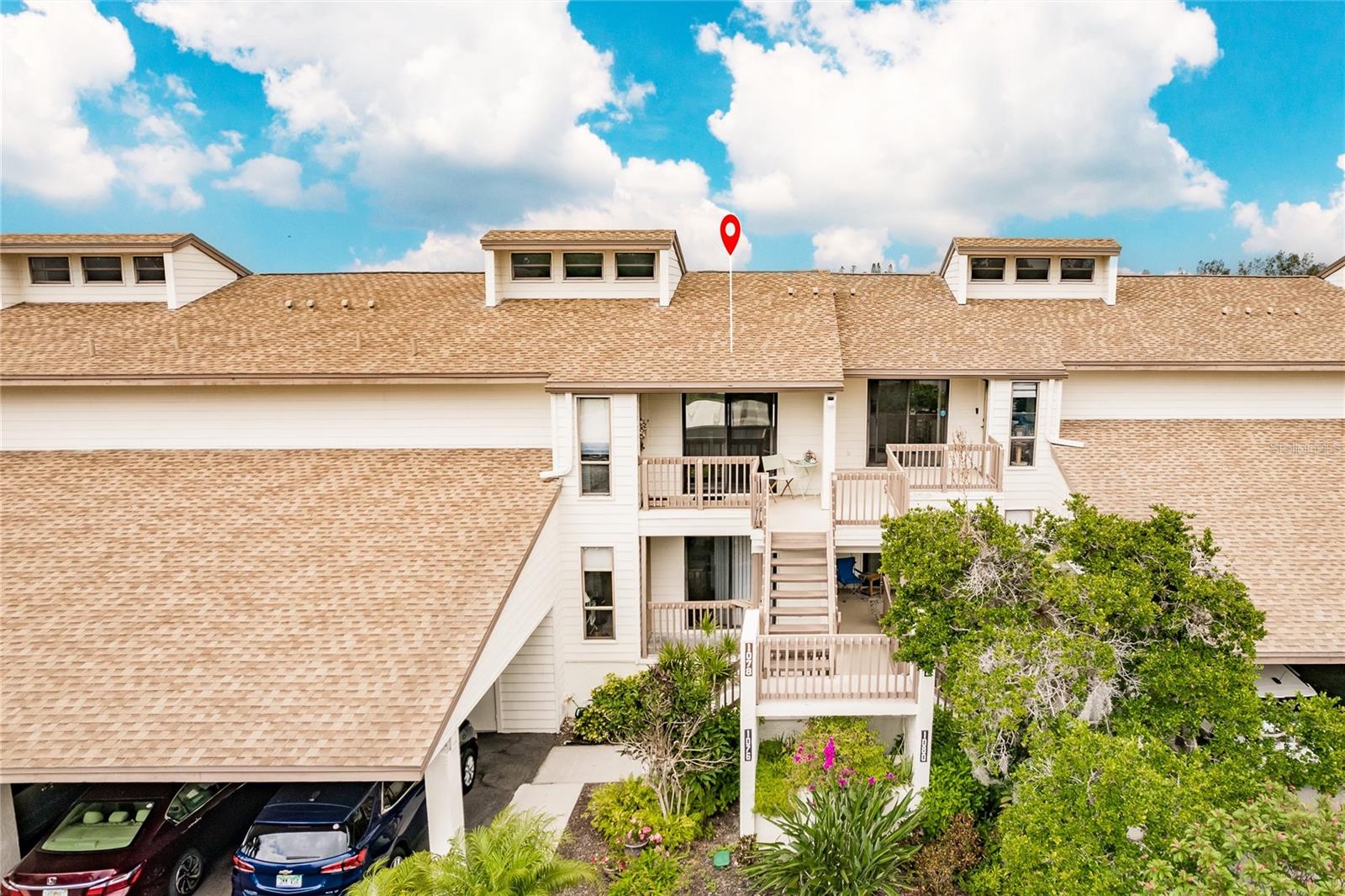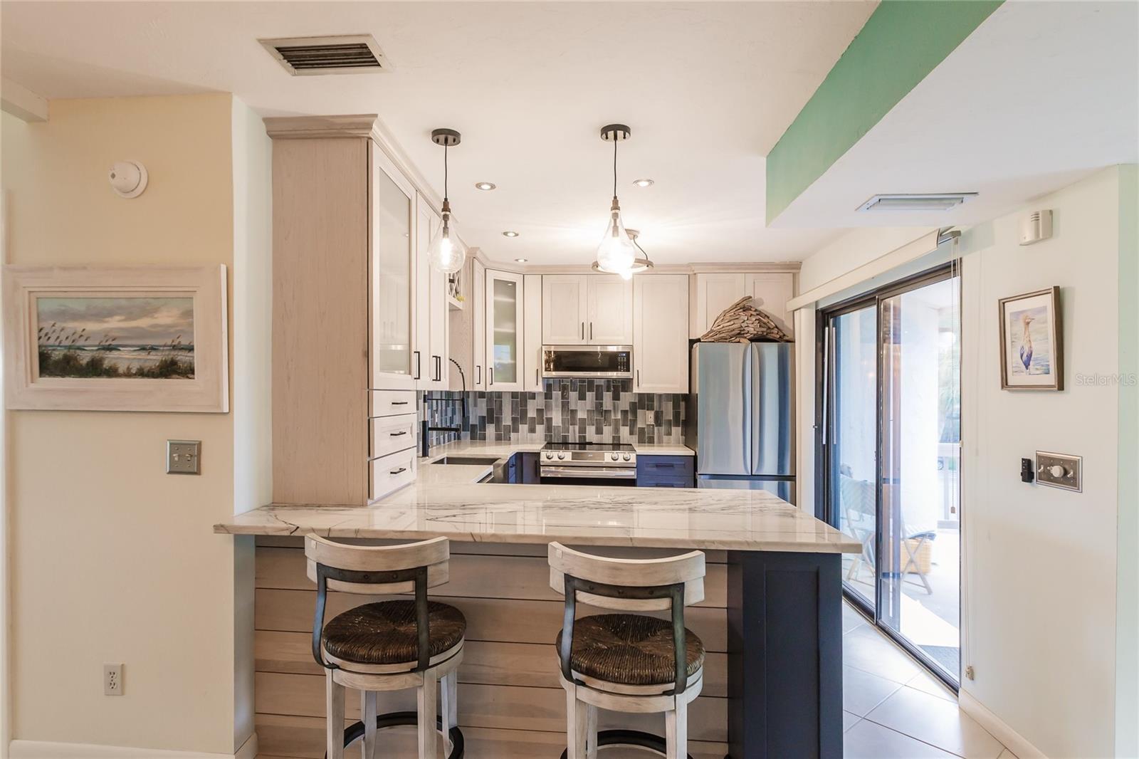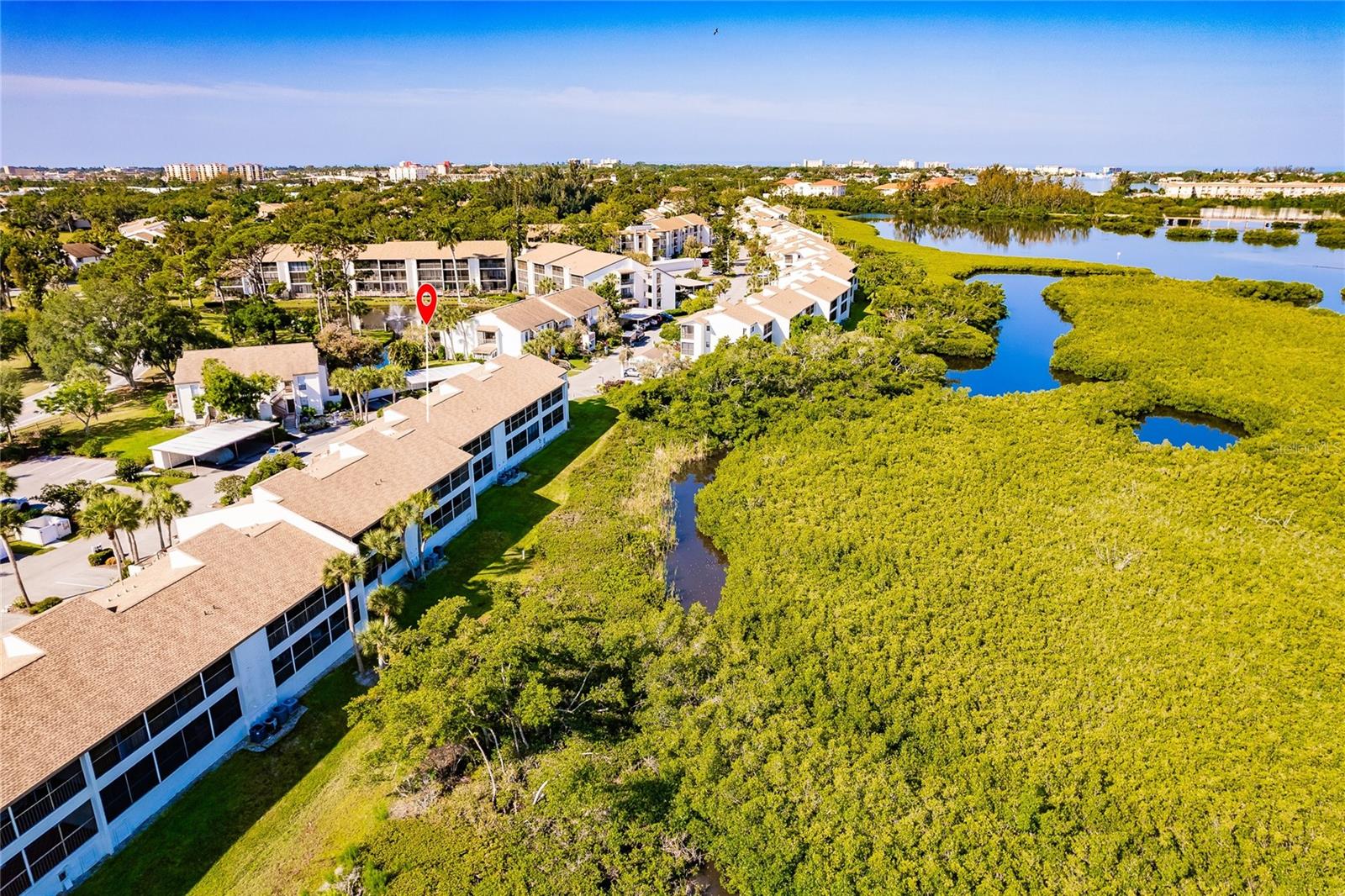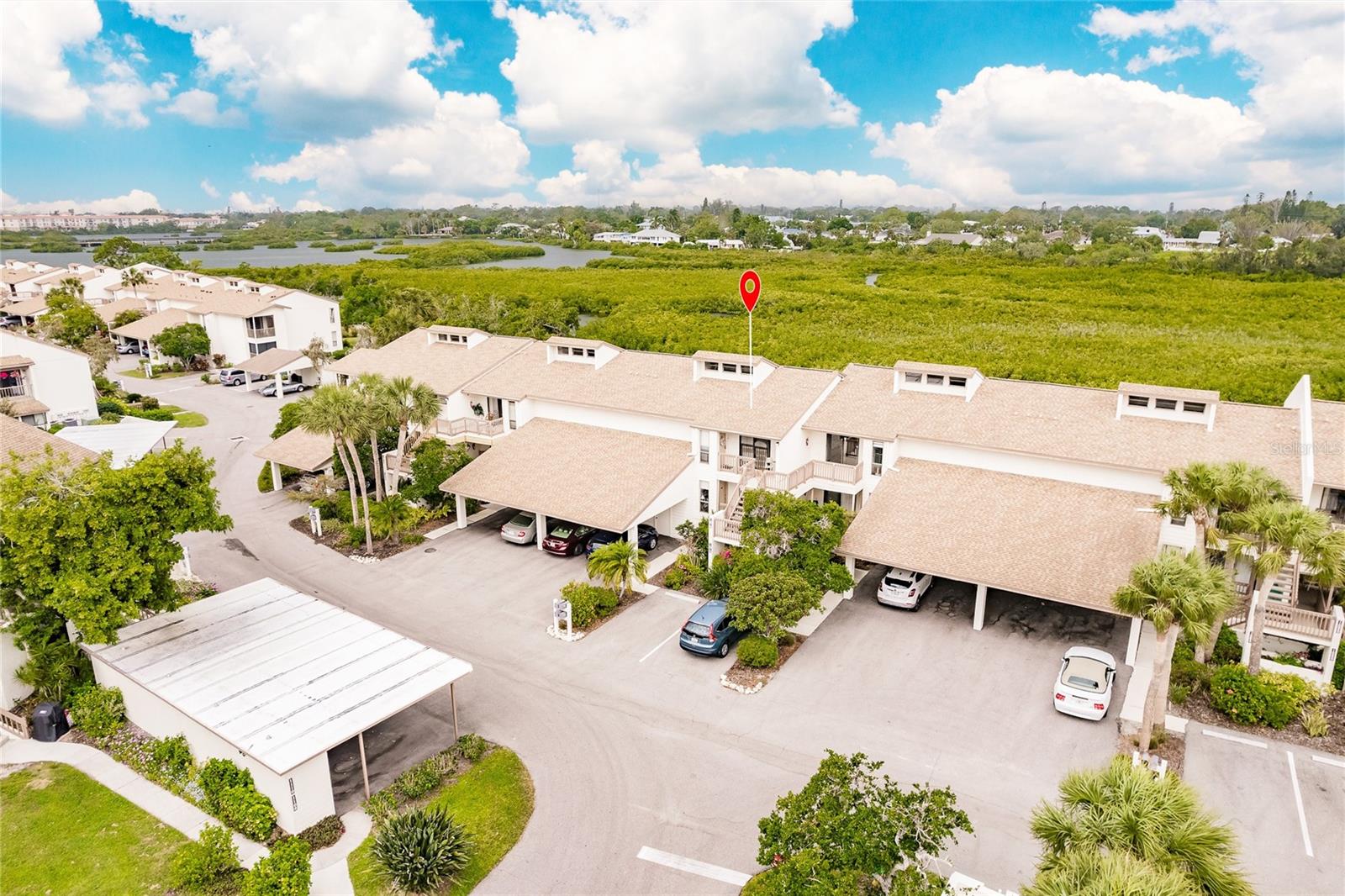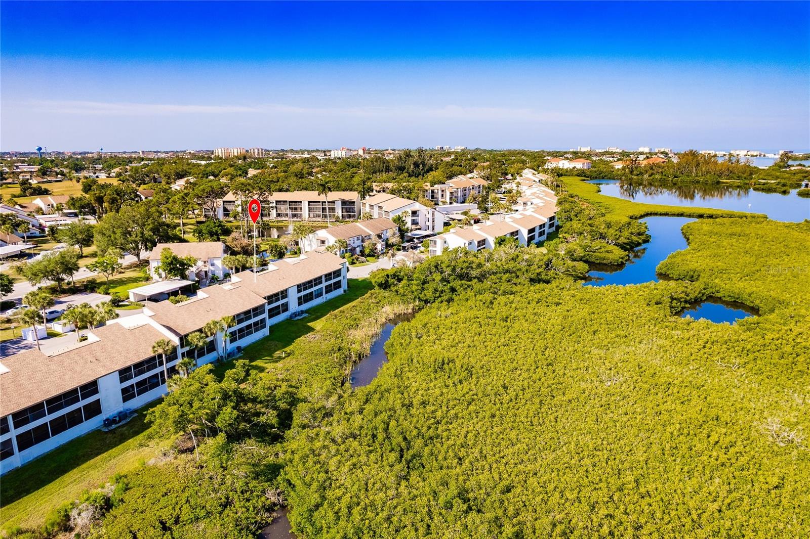 Incredible Preserve & Water Views, Fantastic Sunsets & Access to Curry Creek are only part of the story of this updated 2nd floor condo in Bird Bay. This light & bright condo will certainly get your attention. The soaring cathedral ceilings & clerestory windows allow loads of natural Florida light to come pouring in. The kitchen has been completely remodelled in 2022 including Kraft Maid Cabinetry, Samsung Appliances, Granite Countertops, Tile Backsplash and a Farmhouse style sink.The AC was replaced in 2023, The Hot Water Tank was replaced in 2021, All New Fans and Light Fixtures throughout, and all Popcorn Ceilings have been Completely Removed.Tile throughout. The second bedroom is complete with a convertible accordion wall & a nice Murphy Bed, it is currently set up as extra living space that is situated off of the great room. When you’re not entertaining guests, you can simply leave it as it is to maximize your living space. When guests are in town, you can easily convert this area into a dedicated bedroom by simply sliding the wall shut & opening the Murphy Bed. All of this can be done in less than 5 minutes. Fully enclosed Lanai, Plenty of Storage including your own personal ground level storage unit in the front of your covered carport with plenty of room for you Bikes, BBQ, Beach Chairs and more! Come and see for yourself what Bird Bay Village has to offer. You will find pools, tennis, pickle ball, an active club house, walking trails, a kayak launch and close by there is the Legacy Trail, Venice Beach, Downtown Venice, Grocery Stores, Hospitals, a Library, Golf, and a short drive to downtown Sarasota. This home offers convenience with a great unobstructed view that is rarely available in this community or anywhere at this price.