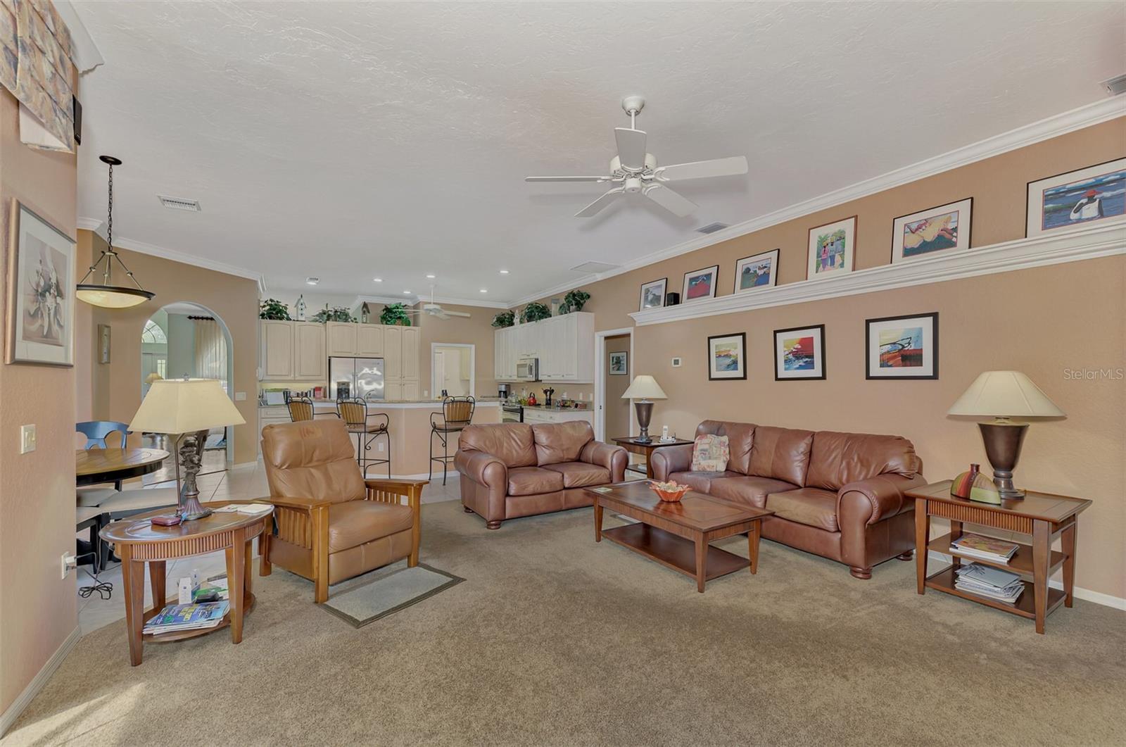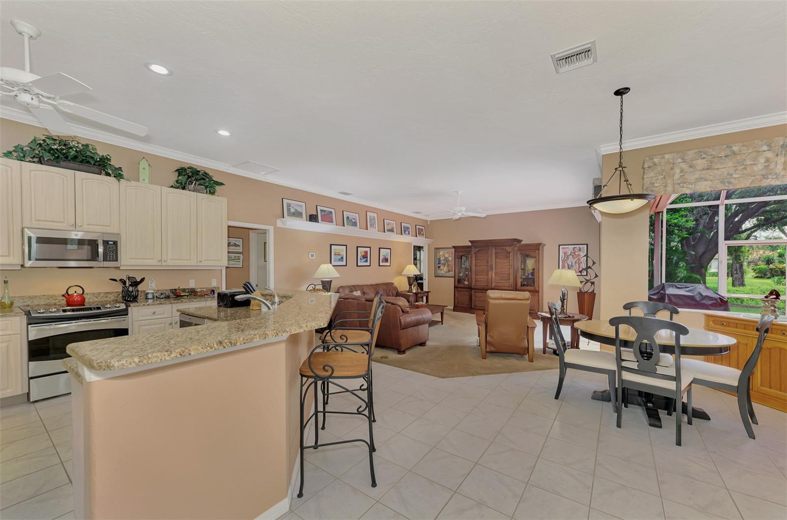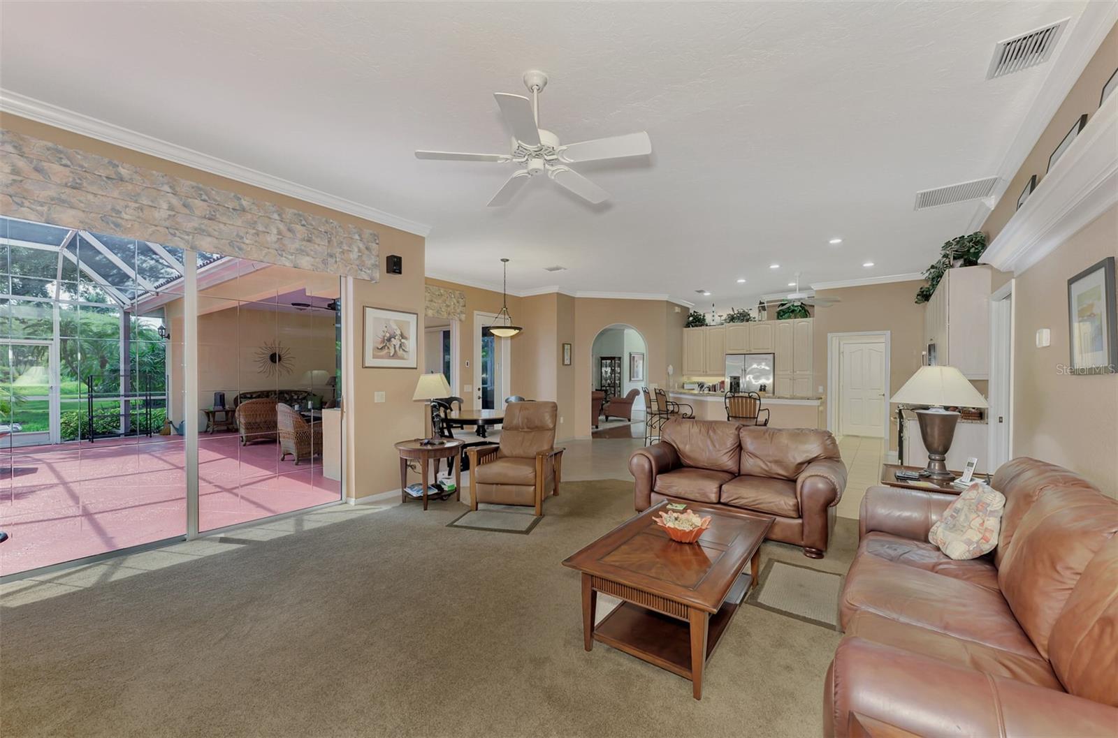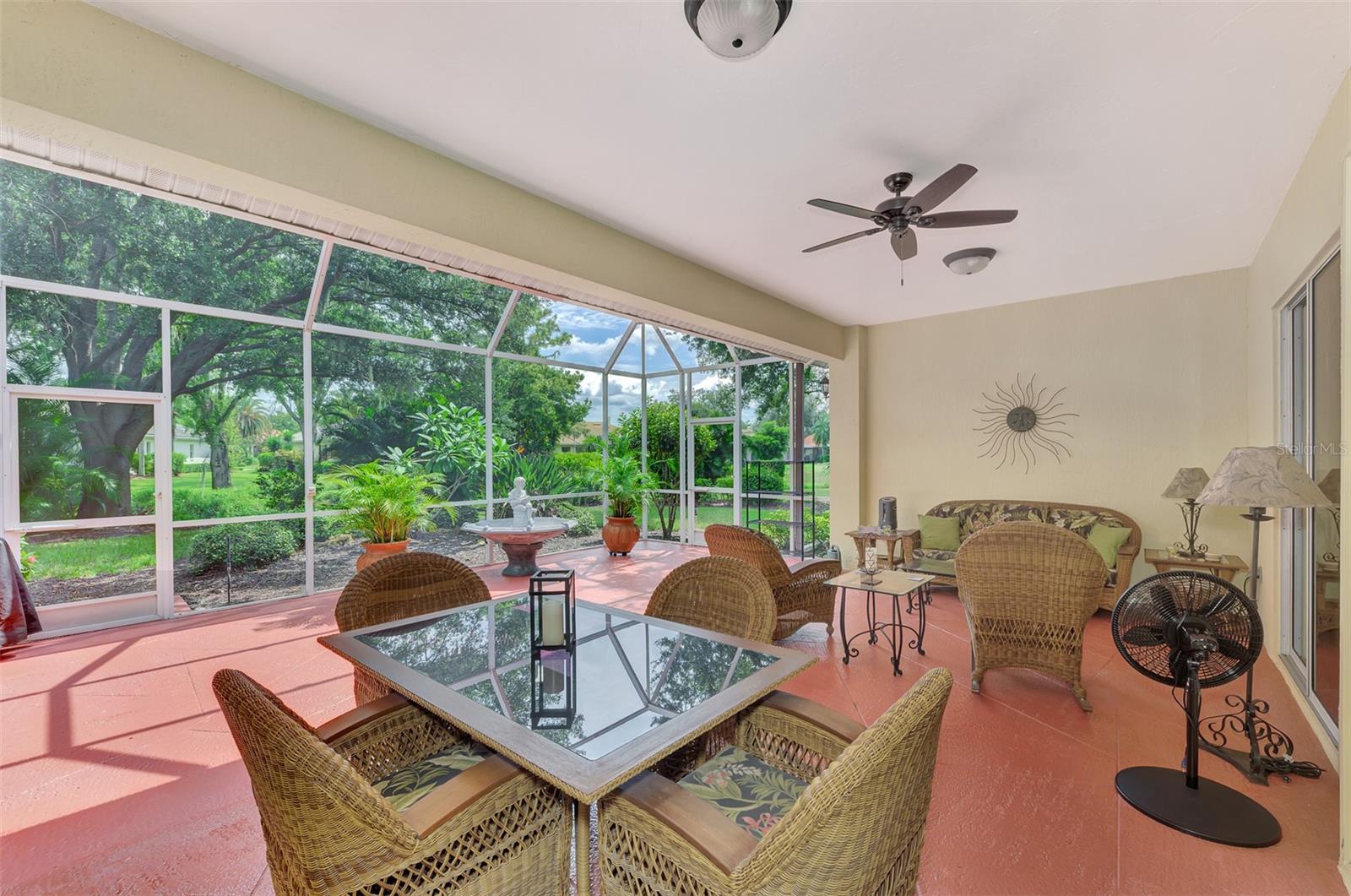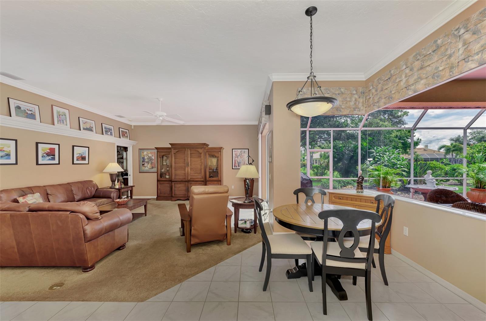 FOUR BEDROOM HOME with Golf Membership! No waiting here! This home has been well loved by the current owners and it shows! A new tile roof was installed in 2023. The air conditioning system was replaced in 2022. The kitchen and baths have all been updated as well. This home is situated on a private lot with mature landscaping, long lake views and a cul de sac location. Home features a split floor plan , crown molding in common areas, the kitchen opens to the family room so you will never feel left out of the fun while entertaining! The aquarium window looks out to the lanai that features a large 23 x11 covered area and an additional 29 x 11 screened area for your enjoyment! Imagine curling up with a good book while listening to the sounds of mother nature in the background. The primary bedroom has both a built in and a walk in closet, en suite bath with a stall shower, garden tub, dual vanities, linen closet and a separate water closet. The additional bedrooms are generous sized, with one containing a large walk in closet.. The garage has space for 2 vehicles , 9 ft overhead doors, and a golf cart/storage/work area measuring an additional 8x11. The community of Venice Golf & Country Club is a 24 hour guard gated community. Residents walk and bike safely throughout the neighborhood. The community pool is conveniently located at the club house, so no need to worry about maintaining a pool, just swim and enjoy. Membership is required, either Club or Golf. VGCC also offers many activities , both men’s & women’s clubs, a challenging 18 hole championship golf course, Har Tru tennis courts, a variety of dining options from casual to gourmet and an abundance of social activities year round. The fitness center has state of the art equipment, massage & physical therapy options, along with personal trainers. What are you waiting for? Come enjoy the life you deserve!