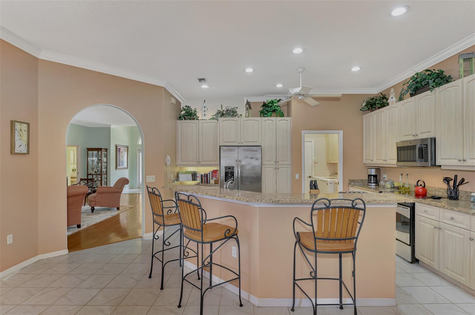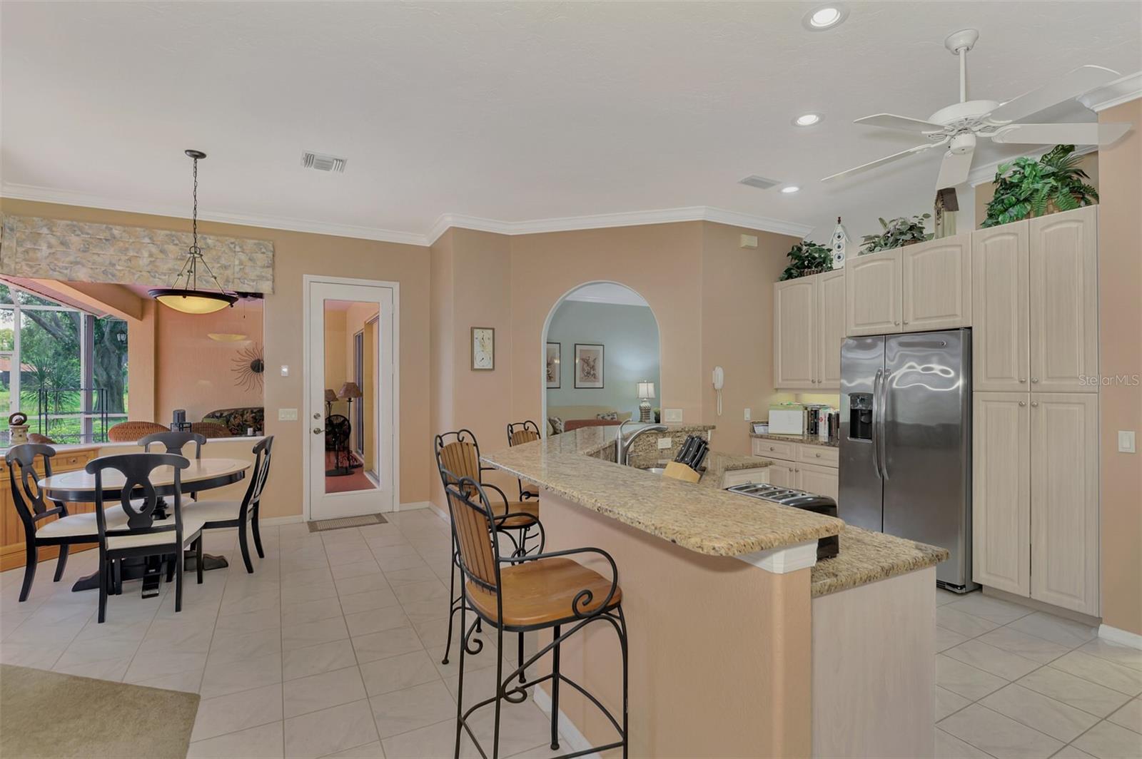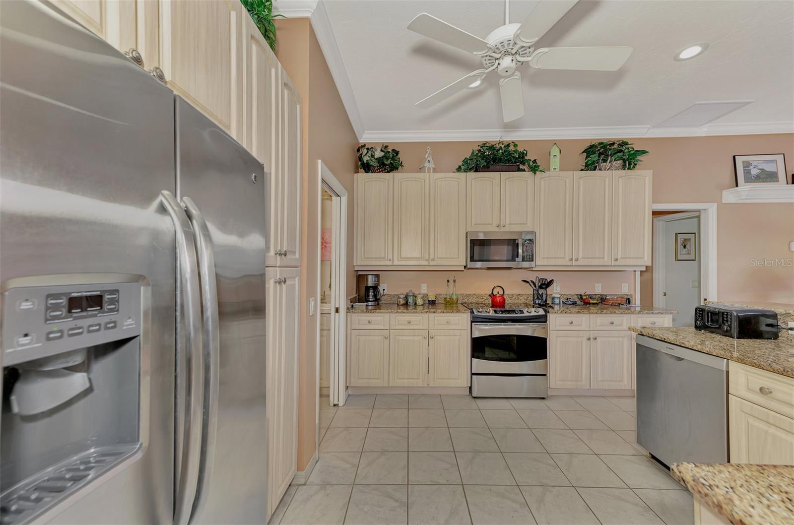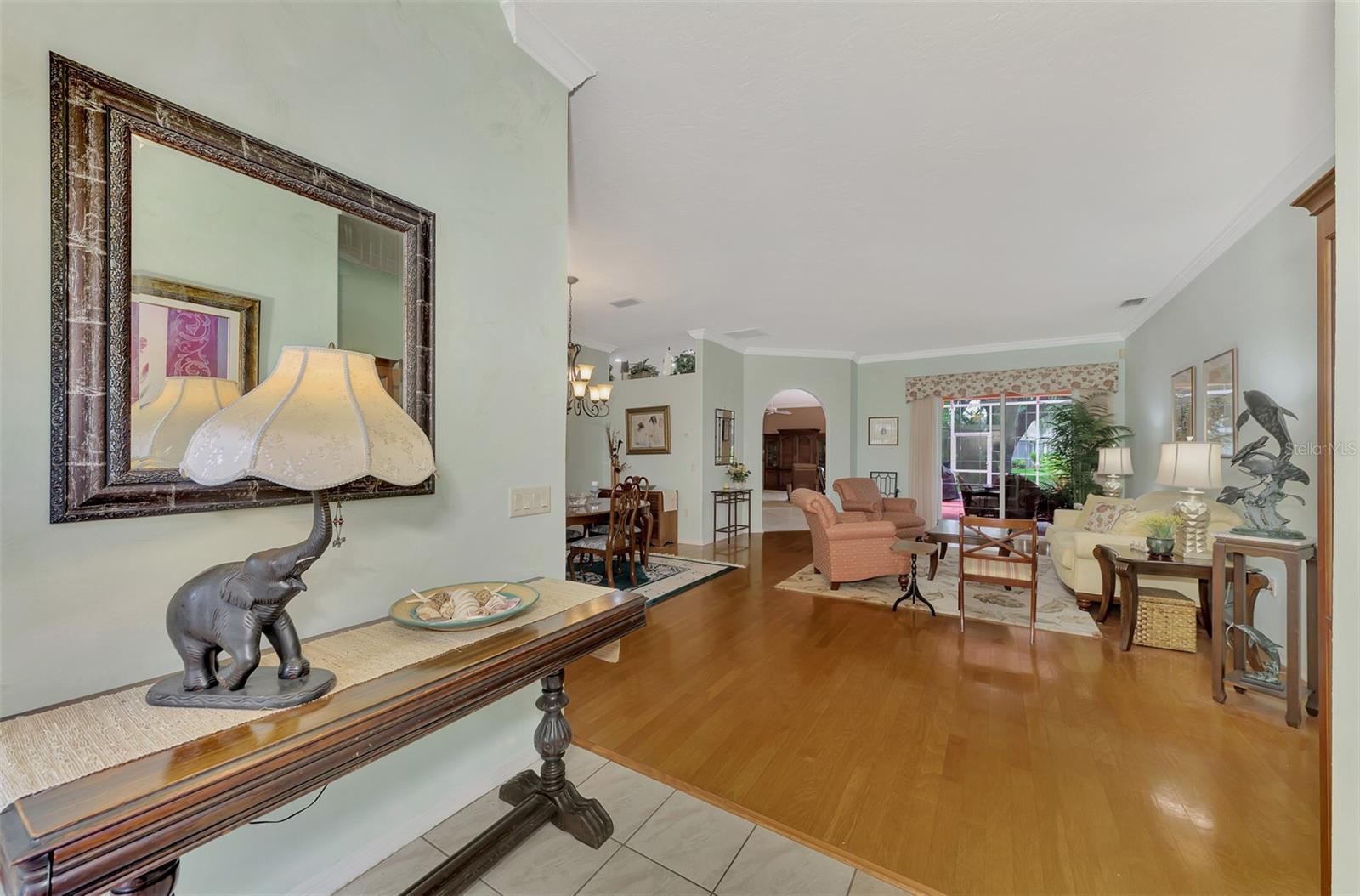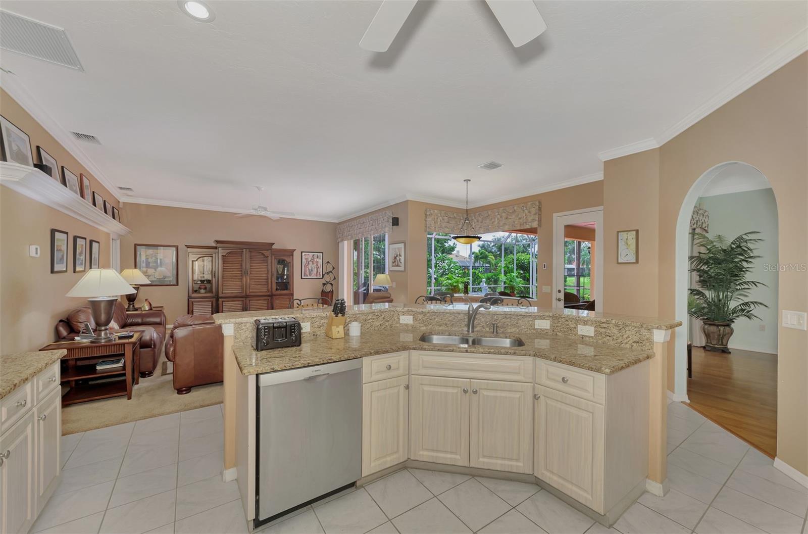 FOUR BEDROOM HOME with Golf Membership! No waiting here! This home has been well loved by the current owners and it shows! A new tile roof was installed in 2023. The air conditioning system was replaced in 2022. The kitchen and baths have all been updated as well. This home is situated on a private lot with mature landscaping, long lake views and a cul de sac location. Home features a split floor plan , crown molding in common areas, the kitchen opens to the family room so you will never feel left out of the fun while entertaining! The aquarium window looks out to the lanai that features a large 23 x11 covered area and an additional 29 x 11 screened area for your enjoyment! Imagine curling up with a good book while listening to the sounds of mother nature in the background. The primary bedroom has both a built in and a walk in closet, en suite bath with a stall shower, garden tub, dual vanities, linen closet and a separate water closet. The additional bedrooms are generous sized, with one containing a large walk in closet.. The garage has space for 2 vehicles , 9 ft overhead doors, and a golf cart/storage/work area measuring an additional 8x11. The community of Venice Golf & Country Club is a 24 hour guard gated community. Residents walk and bike safely throughout the neighborhood. The community pool is conveniently located at the club house, so no need to worry about maintaining a pool, just swim and enjoy. Membership is required, either Club or Golf. VGCC also offers many activities , both men’s & women’s clubs, a challenging 18 hole championship golf course, Har Tru tennis courts, a variety of dining options from casual to gourmet and an abundance of social activities year round. The fitness center has state of the art equipment, massage & physical therapy options, along with personal trainers. What are you waiting for? Come enjoy the life you deserve!