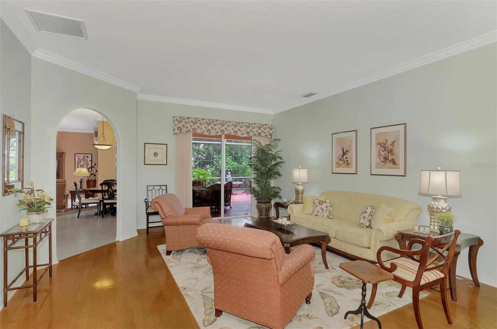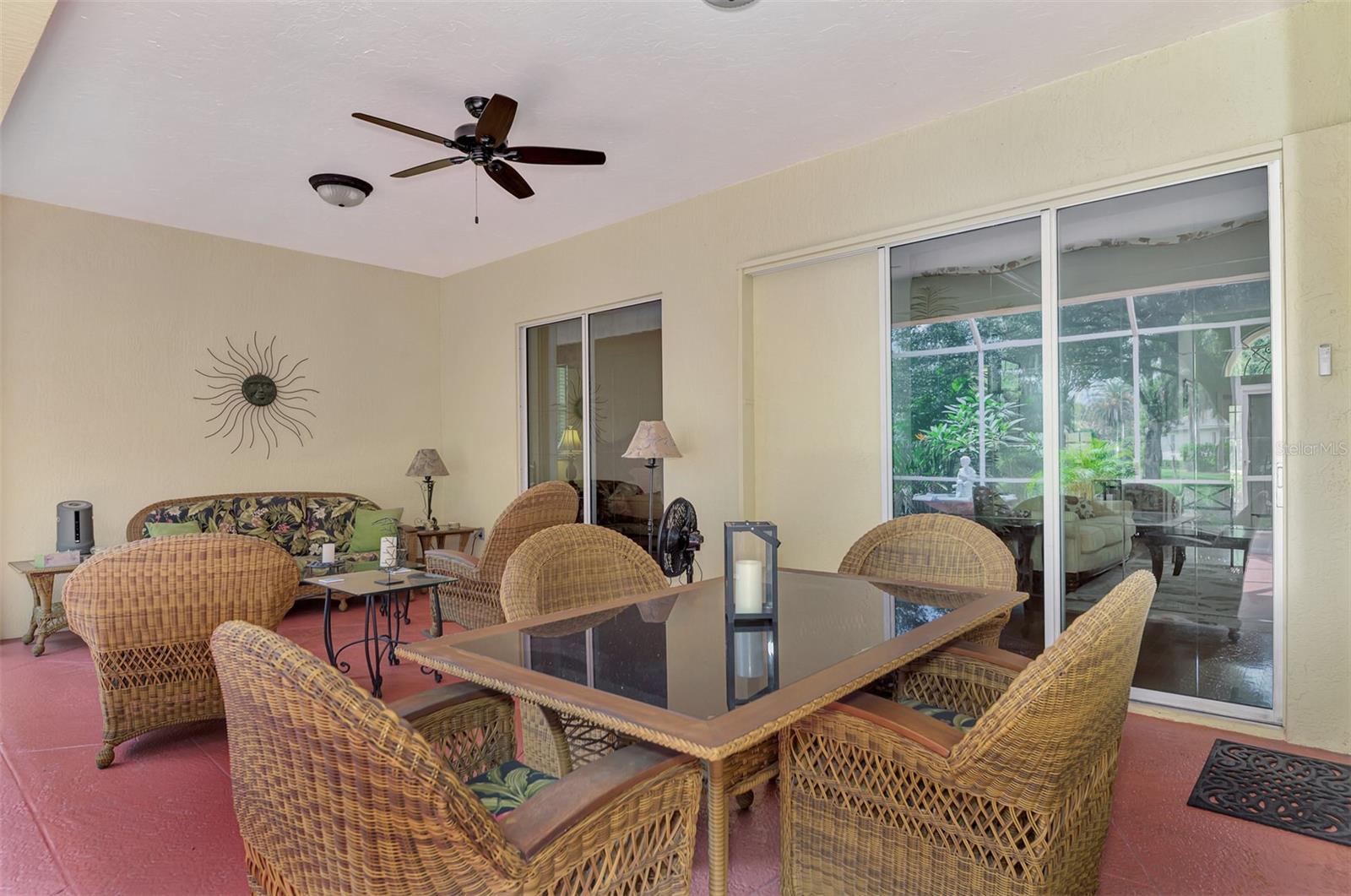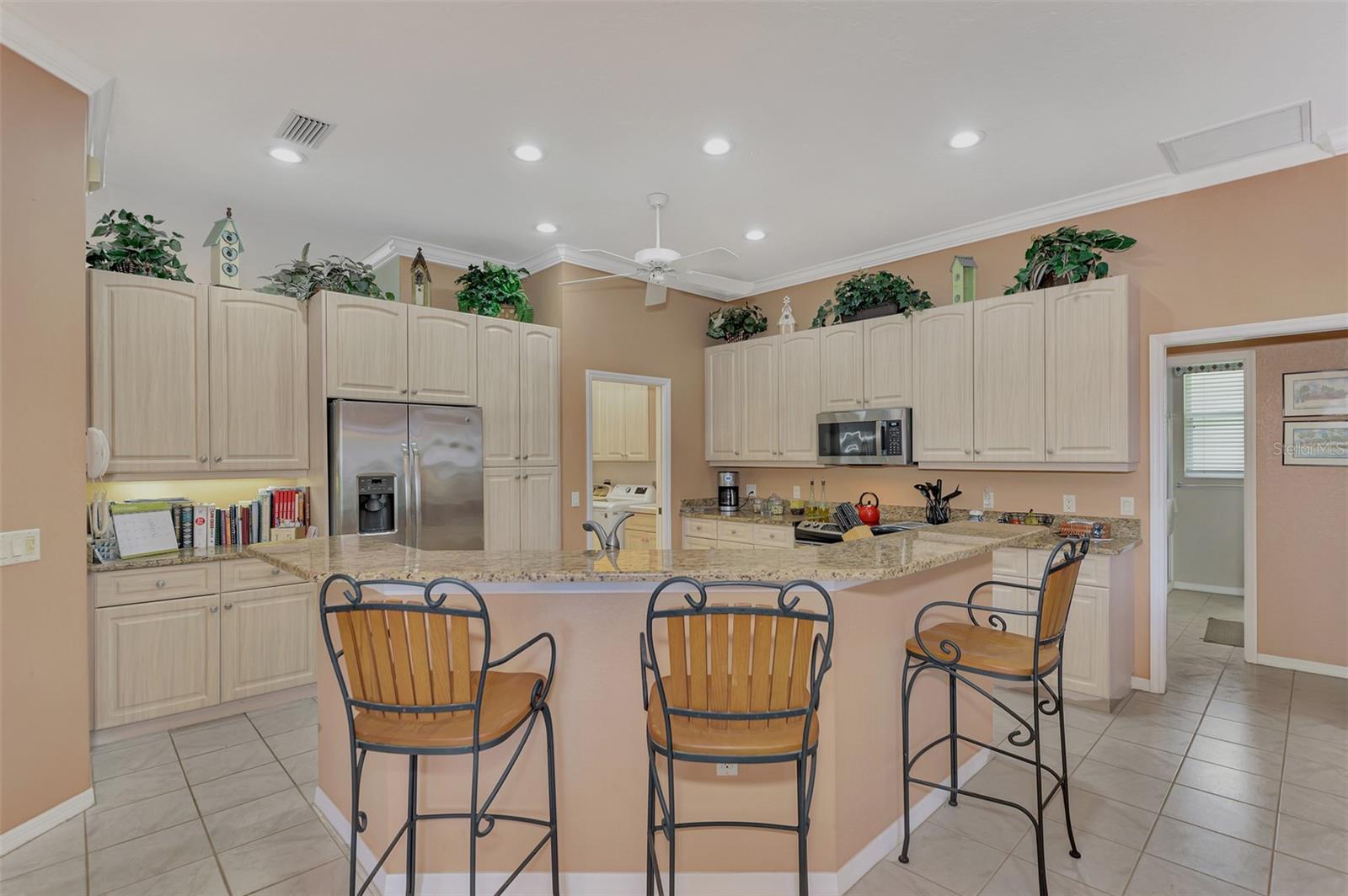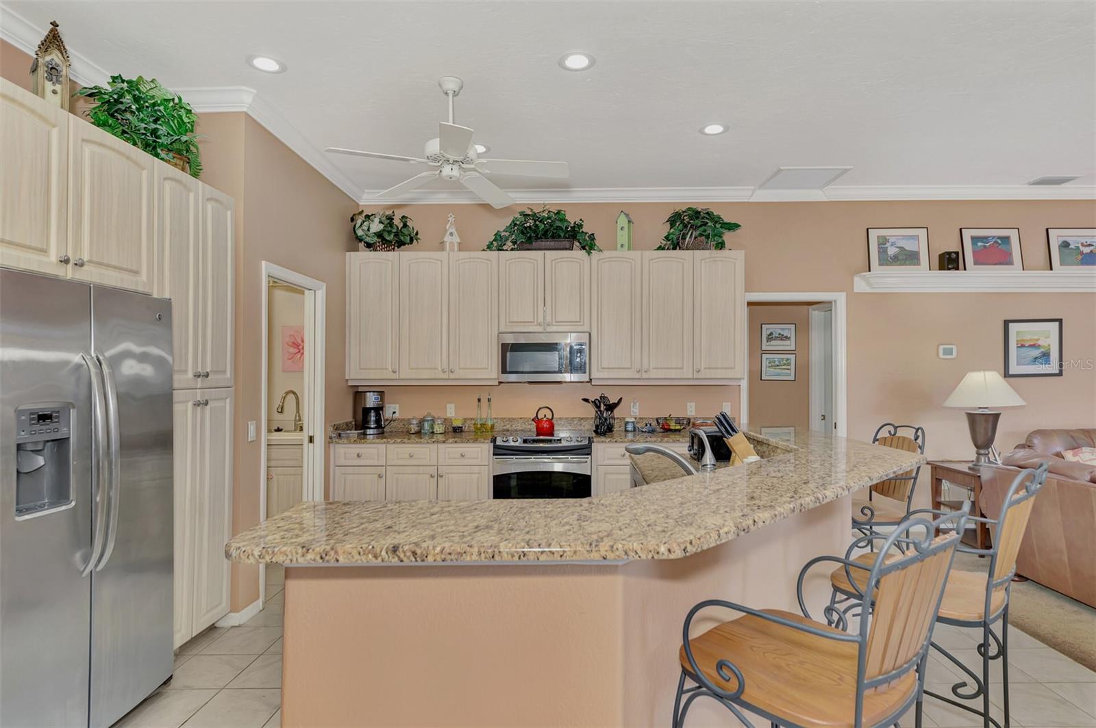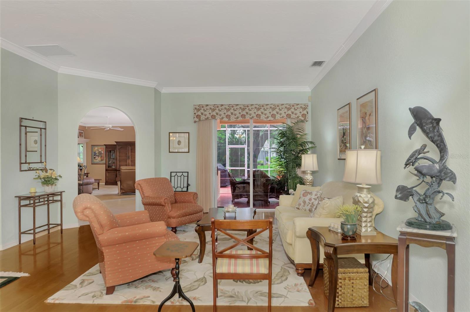 FOUR BEDROOM HOME with Golf Membership! No waiting here! This home has been well loved by the current owners and it shows! A new tile roof was installed in 2023. The air conditioning system was replaced in 2022. The kitchen and baths have all been updated as well. This home is situated on a private lot with mature landscaping, long lake views and a cul de sac location. Home features a split floor plan , crown molding in common areas, the kitchen opens to the family room so you will never feel left out of the fun while entertaining! The aquarium window looks out to the lanai that features a large 23 x11 covered area and an additional 29 x 11 screened area for your enjoyment! Imagine curling up with a good book while listening to the sounds of mother nature in the background. The primary bedroom has both a built in and a walk in closet, en suite bath with a stall shower, garden tub, dual vanities, linen closet and a separate water closet. The additional bedrooms are generous sized, with one containing a large walk in closet.. The garage has space for 2 vehicles , 9 ft overhead doors, and a golf cart/storage/work area measuring an additional 8x11. The community of Venice Golf & Country Club is a 24 hour guard gated community. Residents walk and bike safely throughout the neighborhood. The community pool is conveniently located at the club house, so no need to worry about maintaining a pool, just swim and enjoy. Membership is required, either Club or Golf. VGCC also offers many activities , both men’s & women’s clubs, a challenging 18 hole championship golf course, Har Tru tennis courts, a variety of dining options from casual to gourmet and an abundance of social activities year round. The fitness center has state of the art equipment, massage & physical therapy options, along with personal trainers. What are you waiting for? Come enjoy the life you deserve!