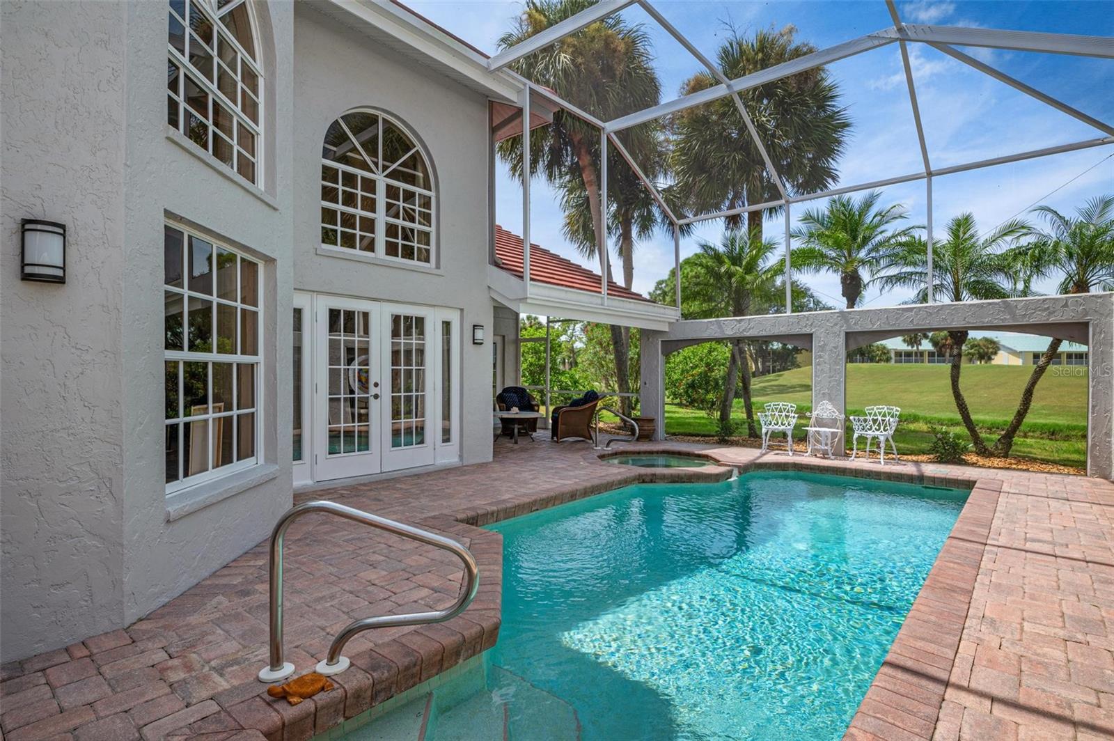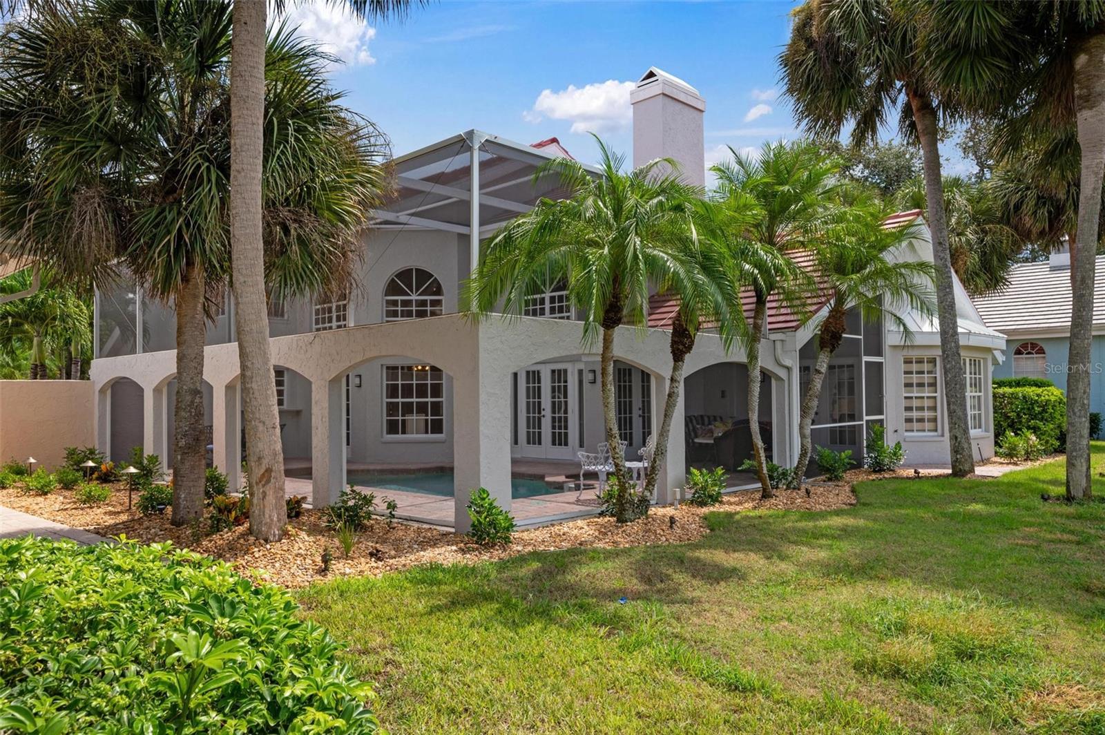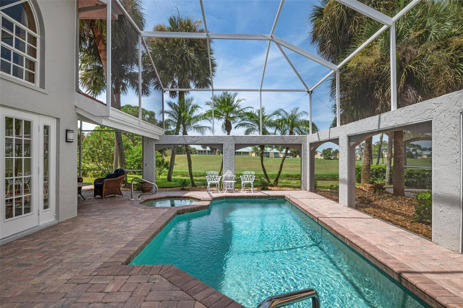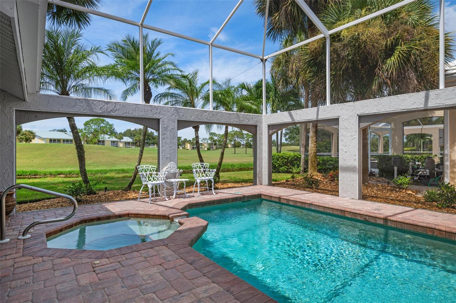 Simply remarkable 3 bedroom, 3 bath Grand Villa remodeled from top to bottom. Stroll down the picturesque oak-canopied street to a residence that boasts exceptional curb appeal, nestled on a premium golf and water lot within The Heathers II just steps to the esteemed Plantation Golf & Country Club (membership optional). This home harmoniously blends elegance with a serene setting, offering a lifestyle of sophistication and tranquility. As you step through the front door, you’re greeted by an expansive great room where soaring ceilings and abundant natural light create an airy, open atmosphere. The natural hues throughout the space beautifully interplay, enhancing the room’s sense of elegance and warmth. No cookie-cutter design could replicate the expertly renovated kitchen and bathrooms, each showcasing exotic, high-end finishes that radiate individuality and luxury. At days end step through the French doors to the fabulous private screened lanai complete with sparkling heated pool and spa enjoying panoramic fairway and water views, the perfect setting for entertaining family and friends under the glorious hues of the setting sun and the evening serenade of Floridian wildlife. Conveniently located minutes to your choice of sandy beaches, Wellen Park, Downtown Venice for shopping and dining, biking trails, boating and I-75 access for nearby airports or a night at the Van Wezel Performing Arts Center in Sarasota. To cap it all off within the last year the roof was replaced, exterior painted and landscaping professionally redone. This one-of-a-kind home represents a rare opportunity you won’t want to miss.