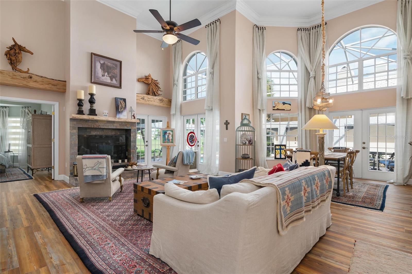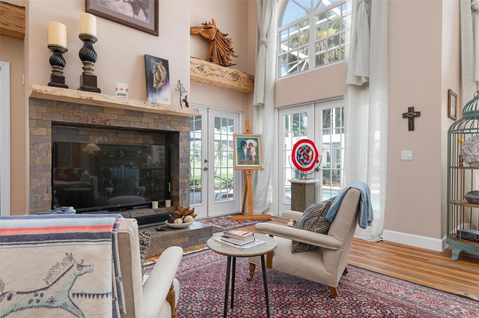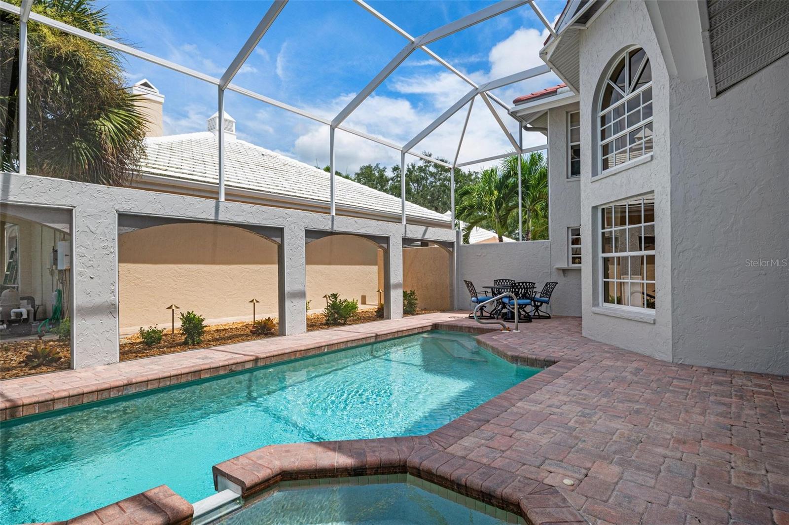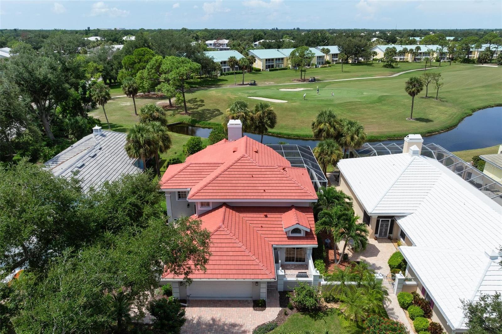 Simply remarkable 3 bedroom, 3 bath Grand Villa remodeled from top to bottom. Stroll down the picturesque oak-canopied street to a residence that boasts exceptional curb appeal, nestled on a premium golf and water lot within The Heathers II just steps to the esteemed Plantation Golf & Country Club (membership optional). This home harmoniously blends elegance with a serene setting, offering a lifestyle of sophistication and tranquility. As you step through the front door, you’re greeted by an expansive great room where soaring ceilings and abundant natural light create an airy, open atmosphere. The natural hues throughout the space beautifully interplay, enhancing the room’s sense of elegance and warmth. No cookie-cutter design could replicate the expertly renovated kitchen and bathrooms, each showcasing exotic, high-end finishes that radiate individuality and luxury. At days end step through the French doors to the fabulous private screened lanai complete with sparkling heated pool and spa enjoying panoramic fairway and water views, the perfect setting for entertaining family and friends under the glorious hues of the setting sun and the evening serenade of Floridian wildlife. Conveniently located minutes to your choice of sandy beaches, Wellen Park, Downtown Venice for shopping and dining, biking trails, boating and I-75 access for nearby airports or a night at the Van Wezel Performing Arts Center in Sarasota. To cap it all off within the last year the roof was replaced, exterior painted and landscaping professionally redone. This one-of-a-kind home represents a rare opportunity you won’t want to miss.