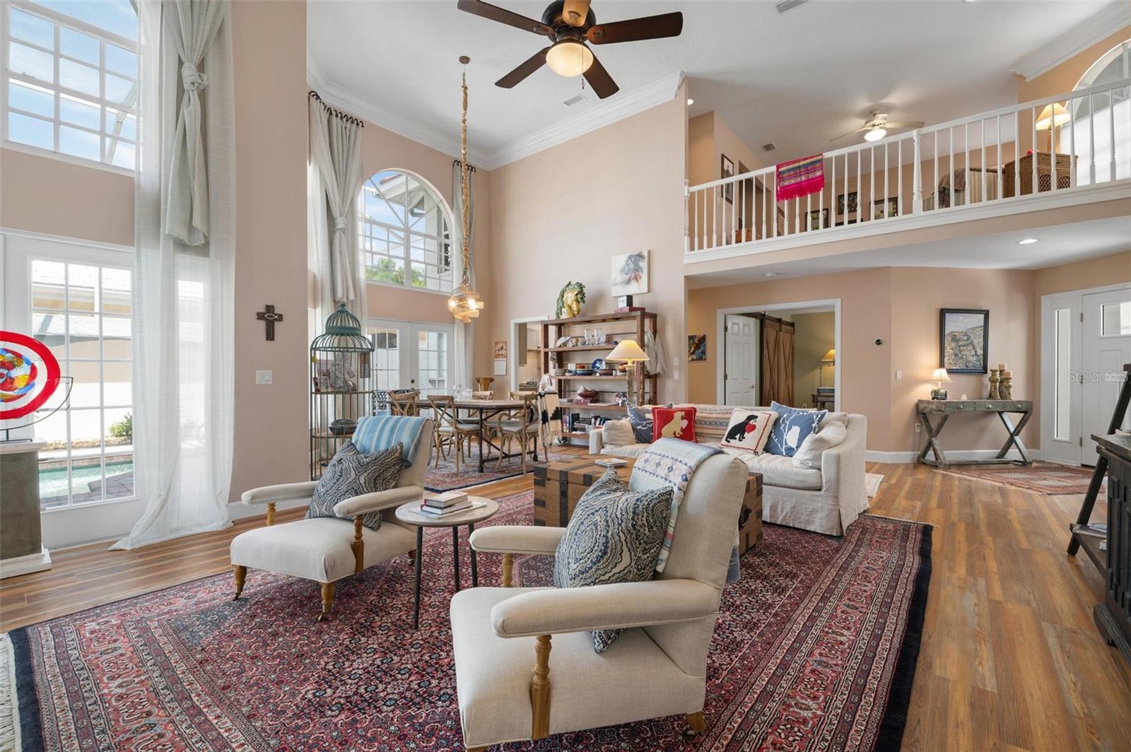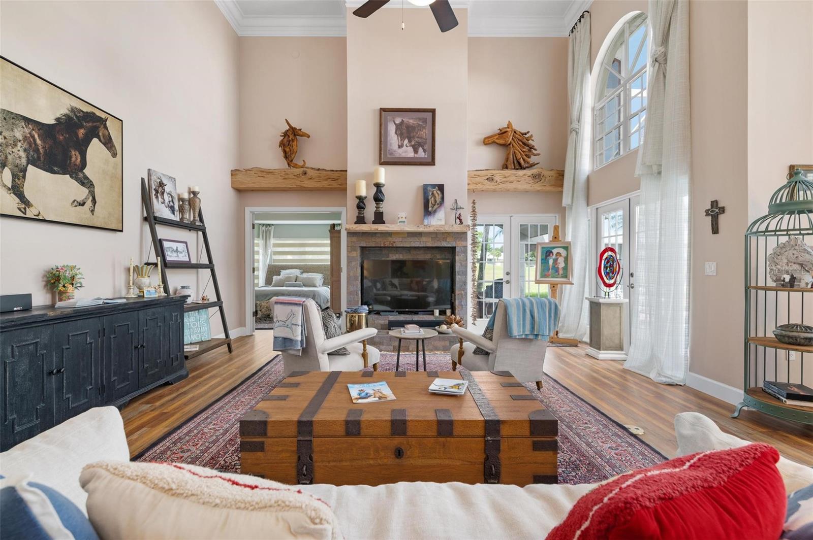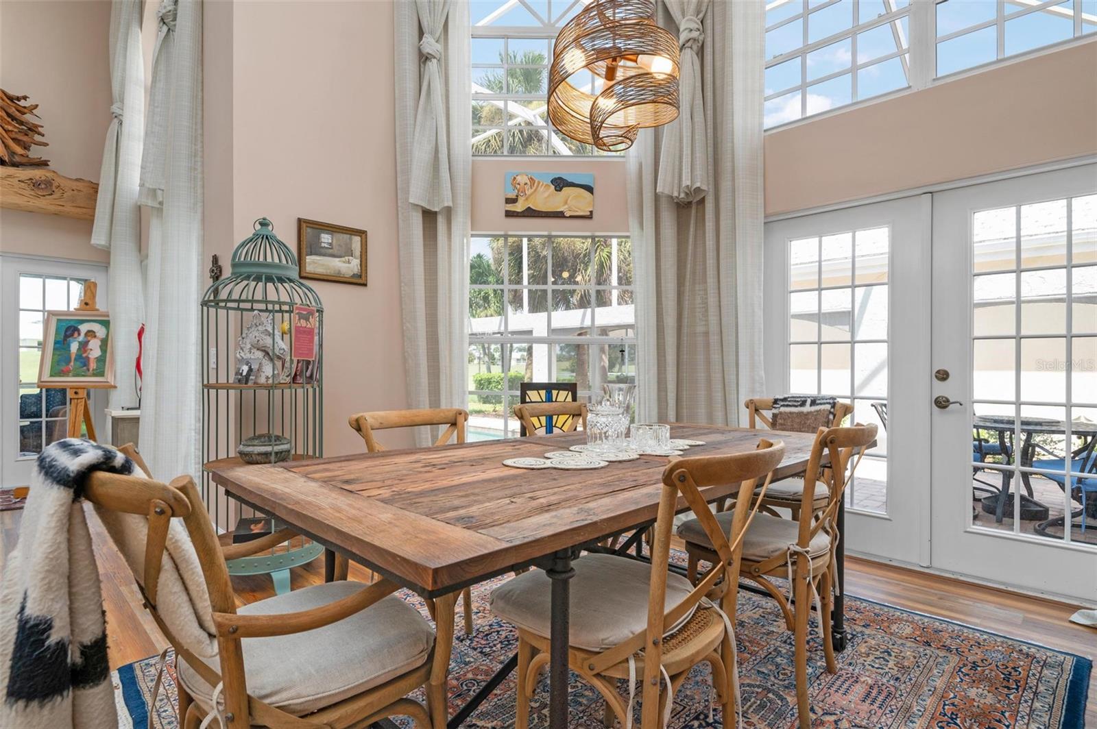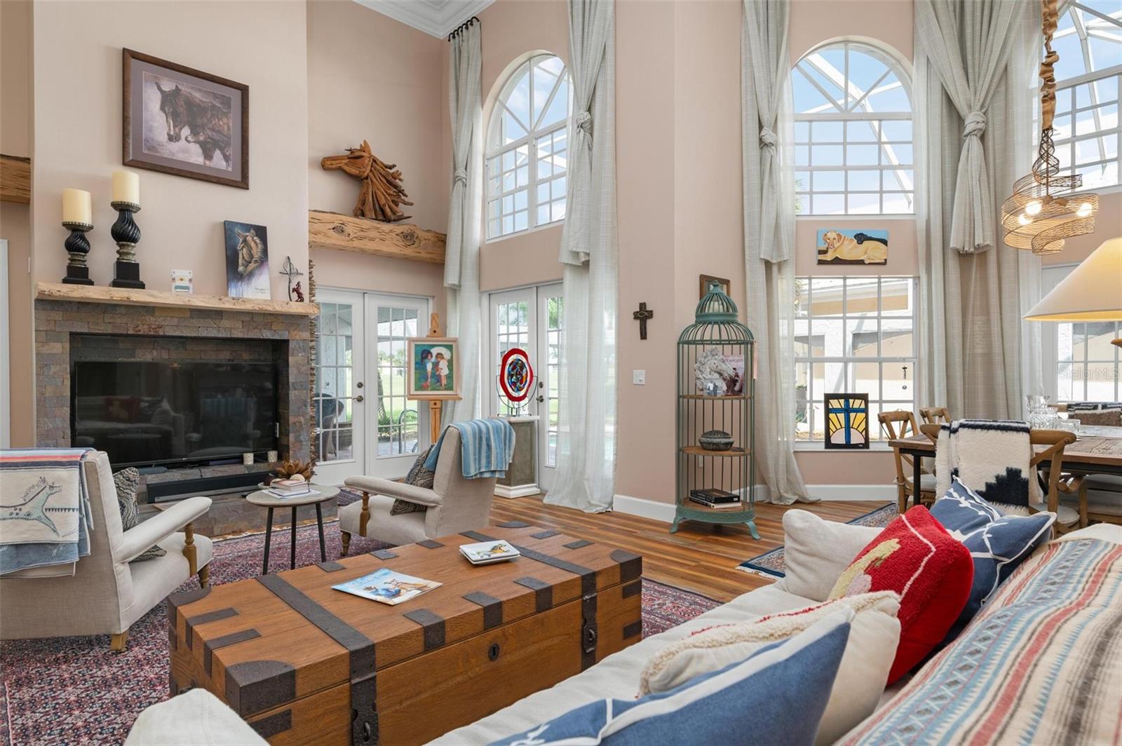 Simply remarkable 3 bedroom, 3 bath Grand Villa remodeled from top to bottom. Stroll down the picturesque oak-canopied street to a residence that boasts exceptional curb appeal, nestled on a premium golf and water lot within The Heathers II just steps to the esteemed Plantation Golf & Country Club (membership optional). This home harmoniously blends elegance with a serene setting, offering a lifestyle of sophistication and tranquility. As you step through the front door, you’re greeted by an expansive great room where soaring ceilings and abundant natural light create an airy, open atmosphere. The natural hues throughout the space beautifully interplay, enhancing the room’s sense of elegance and warmth. No cookie-cutter design could replicate the expertly renovated kitchen and bathrooms, each showcasing exotic, high-end finishes that radiate individuality and luxury. At days end step through the French doors to the fabulous private screened lanai complete with sparkling heated pool and spa enjoying panoramic fairway and water views, the perfect setting for entertaining family and friends under the glorious hues of the setting sun and the evening serenade of Floridian wildlife. Conveniently located minutes to your choice of sandy beaches, Wellen Park, Downtown Venice for shopping and dining, biking trails, boating and I-75 access for nearby airports or a night at the Van Wezel Performing Arts Center in Sarasota. To cap it all off within the last year the roof was replaced, exterior painted and landscaping professionally redone. This one-of-a-kind home represents a rare opportunity you won’t want to miss.