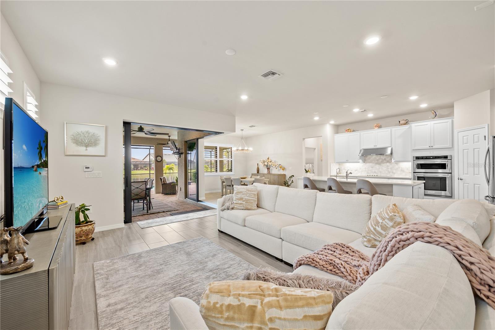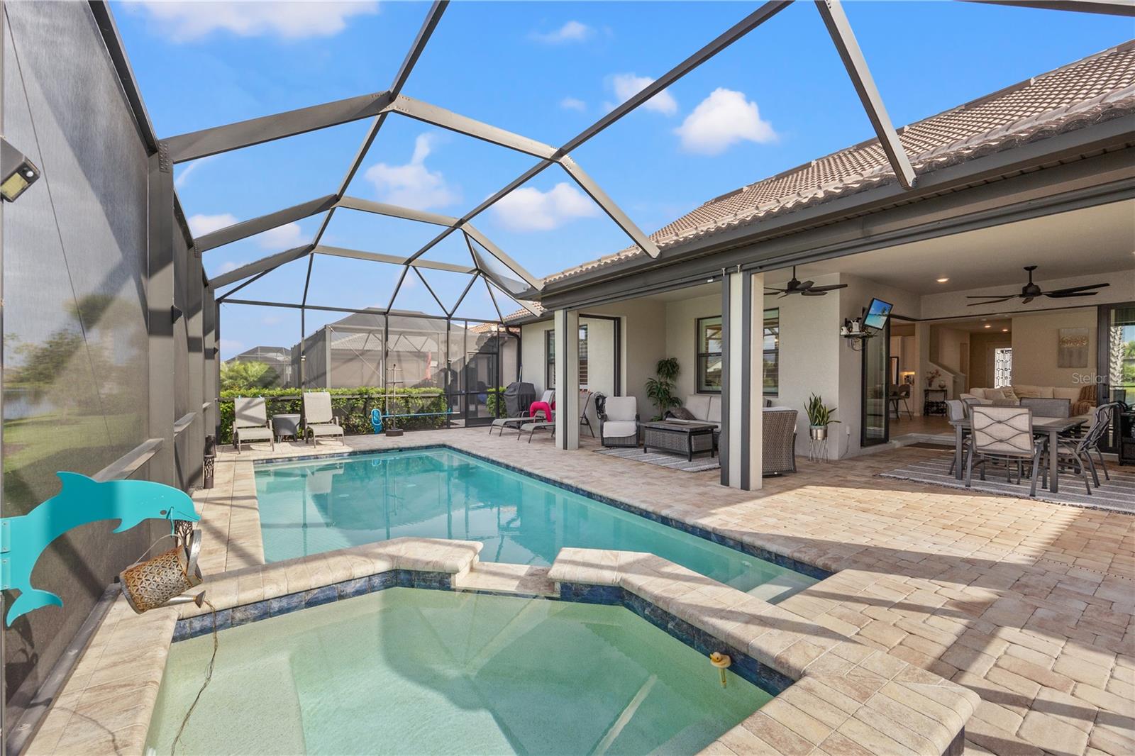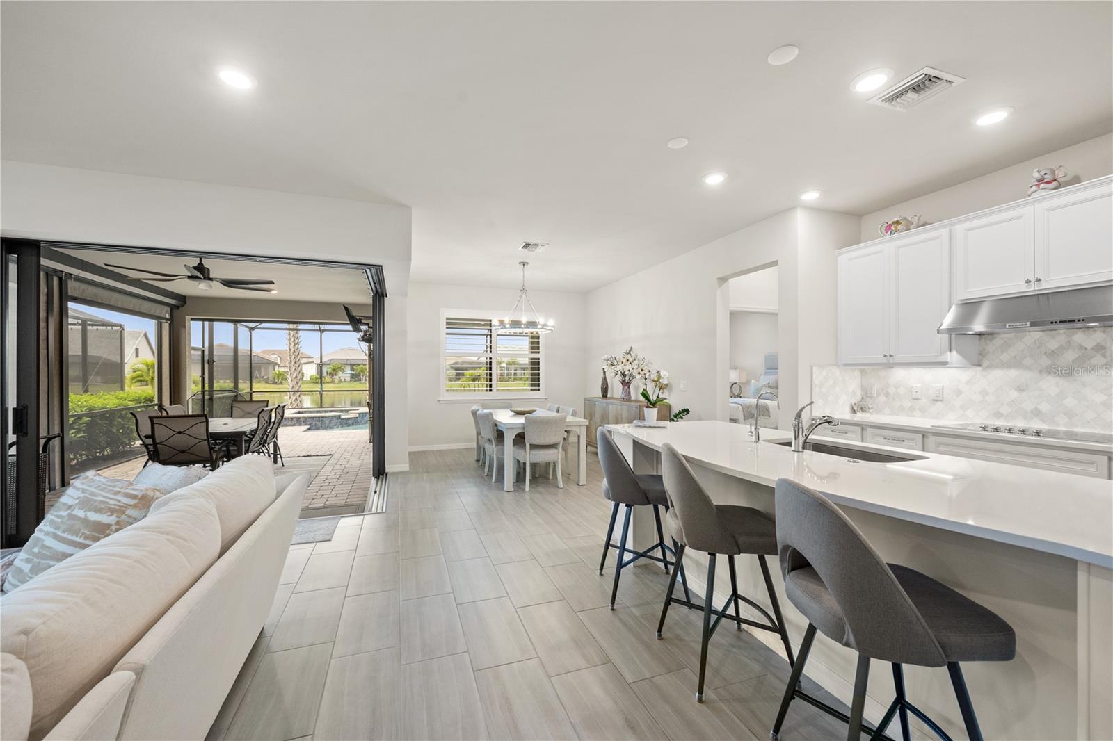 PRICE to SELL! Don't miss the opportunity to own this high-value property at an exceptional price - Bring your offer today! Welcome to ISLANDWALK, a Tuscan-inspired RESORT STYLE gated community in Venice, SW Florida, with 5* Amenities! This stunning Summerwood model home built in 2021 features an expansive and airy layout, boasting 2,928 square feet of refined living space. With 4 bedrooms, a Den/office, 3 bathrooms, and a spacious upstairs LOFT, there's ample room for comfortable living. As you step inside, you'll be greeted by a welcoming interior, an open floor plan, abundant natural light, and tasteful tile flooring throughout. The home showcases stylish fixtures, neutral colors, high ceilings, and numerous custom upgrades and finishes. The gourmet kitchen is a chef's dream, equipped with premium stainless-steel appliances, elegant tall cabinets, marble backsplash, quartz countertops, built-in oven, cooktop, under cabinets lighting, under sink Reverse Osmosis system, and an impressive island for a casual dining. The main-floor primary bedroom offers a large walk-in closet and a private ensuite featuring dual vanities with quartz countertops, and a luxurious standing shower. Conveniently situated on the main floor, two additional bedrooms and a den provide privacy and space for various living arrangements. You will love the spacious LOFT upstairs, serving as a genuine retreat with an additional guest suite and a bathroom, providing privacy and comfort for visiting friends and family. As you step outside through the ZERO-CORNER SLIDING DOORS, you'll be captivated by the expansive LANAI equipped with Storm Smart Hurricane Screens, boasting PICTURESQUE WATER VIEWS and a fantastic outdoor entertainment area. Complete with a HEATED SALTED POOL and SPA, it's the perfect setting for ultimate relaxation and enjoyment. The spacious 2-car garage comes fully equipped with custom-built storage racks and added AC, epoxy floors, and insulated garage door for your convenience. Additionally, this home has been upgraded with Accordion Hurricane Shutters for enhanced peace of mind, Water Softener and Filtration System, the laundry room with built-in cabinetry and quartz countertops, adding both functionality and elegance to the space, Plantation Shutters on all the windows, EXTENDED DRIVEWAY for added convenience, and more. Located in Resort Style IslandWalk community, residents enjoy luxury amenities such as 2 clubhouses, event center, 2 resort-style pools, LAP pool, spa, 8 tennis courts, 12 pickleball courts, bocce courts, basketball court, fitness center, playground, dog park, community garden, miles of trails and Venetian bridges and water, and much more. PRIME LOCATION: Conveniently situated close to the new Downtown Wellen Park, CoolToday Park, Venice Historic Downtown, new COSTCO, dining, shopping, boating and fishing, kayaking, golfing, and the pristine beaches of Southwest Florida, this home offers the perfect blend of luxury and convenience. Schedule your showing today and envision your future in this remarkable home!