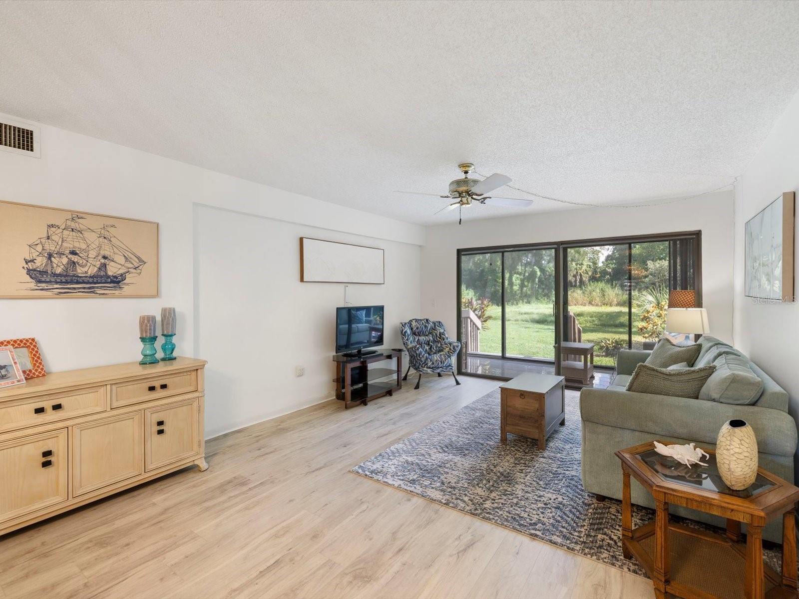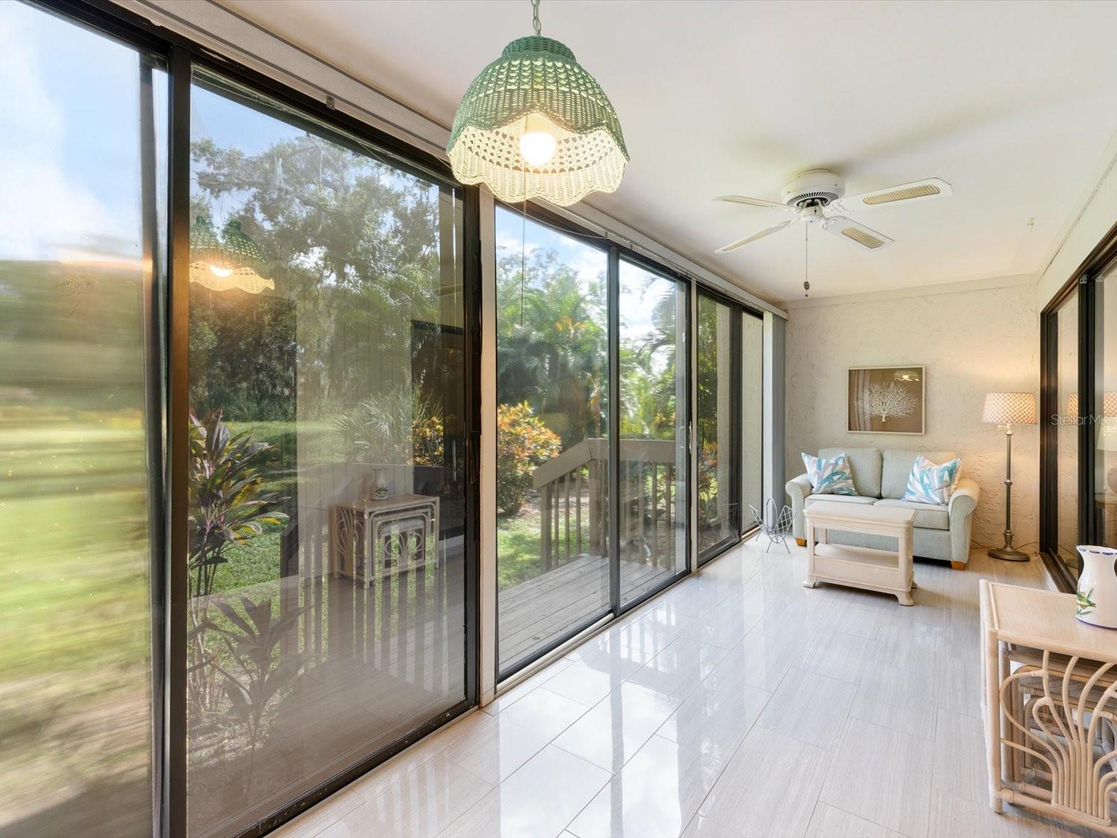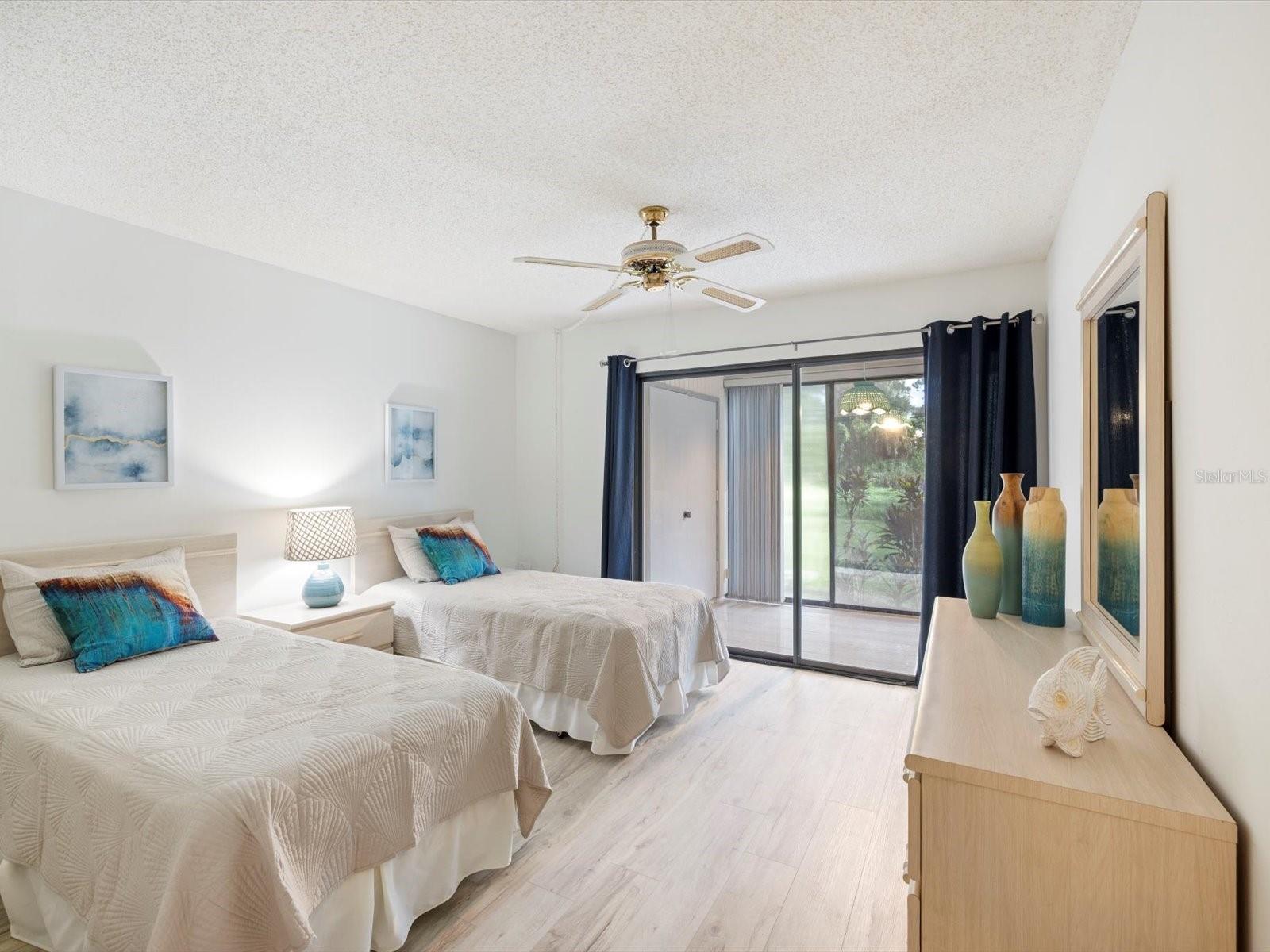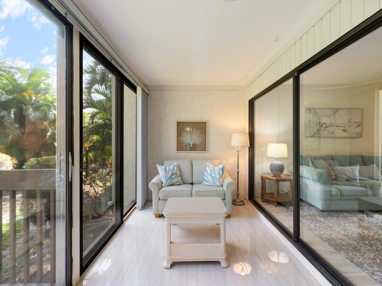 Welcome to Bird Bay Village, where maintenance-free living meets resort-style luxury! This vibrant community offers an array of amenities, including sparkling pools, tennis and pickleball courts, a state-of-the-art fitness center, bocce courts, shuffleboard, and even a library. Bird Bay Village is bustling with activity, fitness/pool classes, monthly events, social parties, and so much more. Discover the charm of this highly desirable, professionally staged first-floor condo in the sought-after phase II of Bird Bay Village! This 2-bedroom, 2-bath gem offers a spacious layout with stunning updates, including luxury vinyl plank (LVP) flooring throughout, and is being sold partially furnished (see inventory list). The inviting lanai, enclosed with glass sliders, is finished with elegant porcelain tile and overlooks a tranquil landscape of lush trees and greenery—perfect for peaceful mornings or relaxed evenings. The primary bedroom features its own sliding door leading to an additional patio, creating an extra private outdoor space. The AC and water heater were replaced in 2016. The carport includes a large storage room, ensuring ample space for your belongings. Phase II residents enjoy a private pool in addition to the large community pool, as well as access to an array of top-notch amenities—tennis, pickleball, shuffleboard, and bocce ball courts, plus a clubhouse with a full kitchen, fitness center, and library. Seasonal activities and social events abound! Conveniently located near Legacy Trail for miles of biking or walking, and just minutes from beautiful beaches, shopping, dining, and easy access to I-75. Don’t miss out on this opportunity—staging items are available for purchase outside the contract!