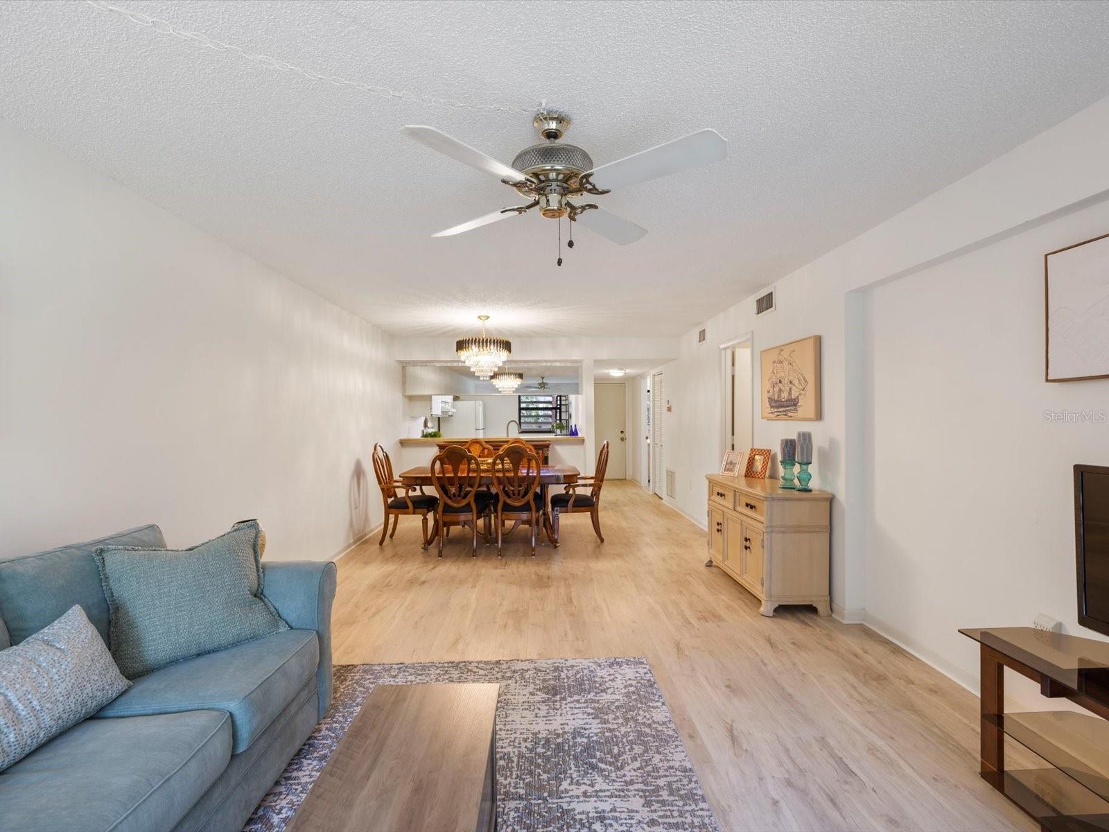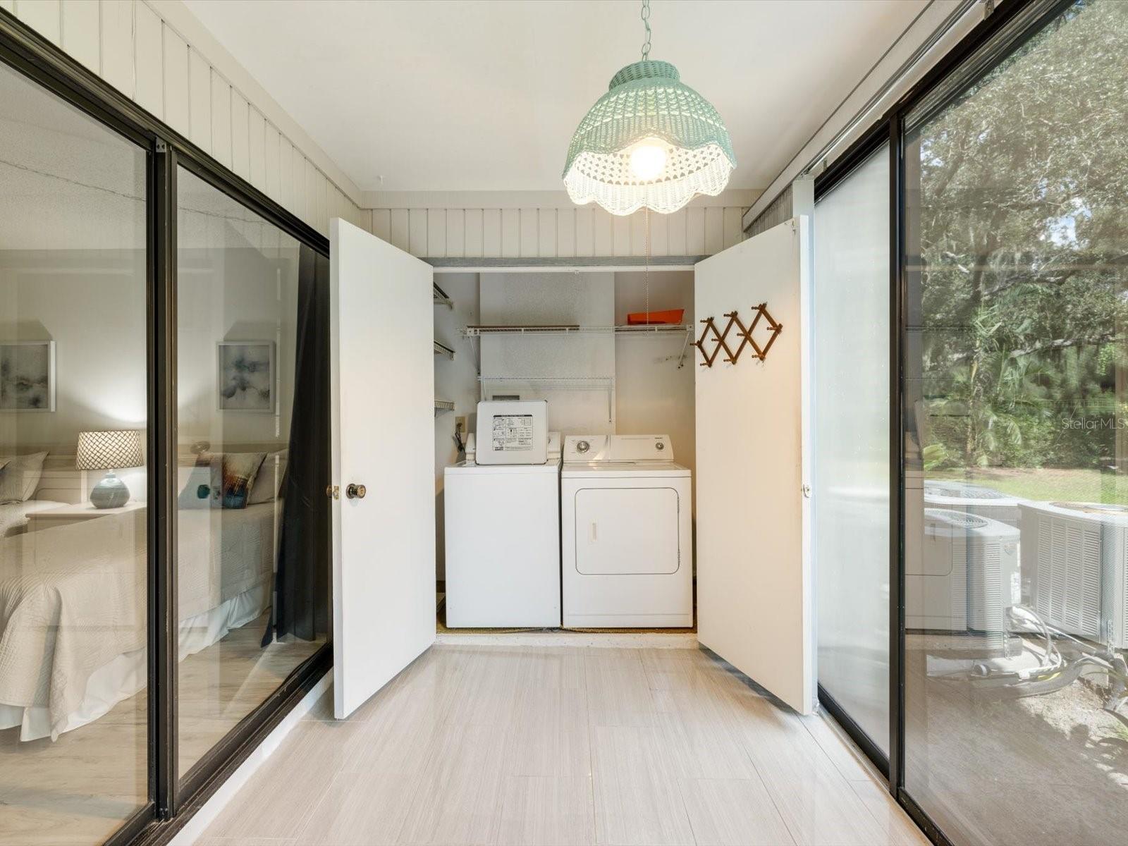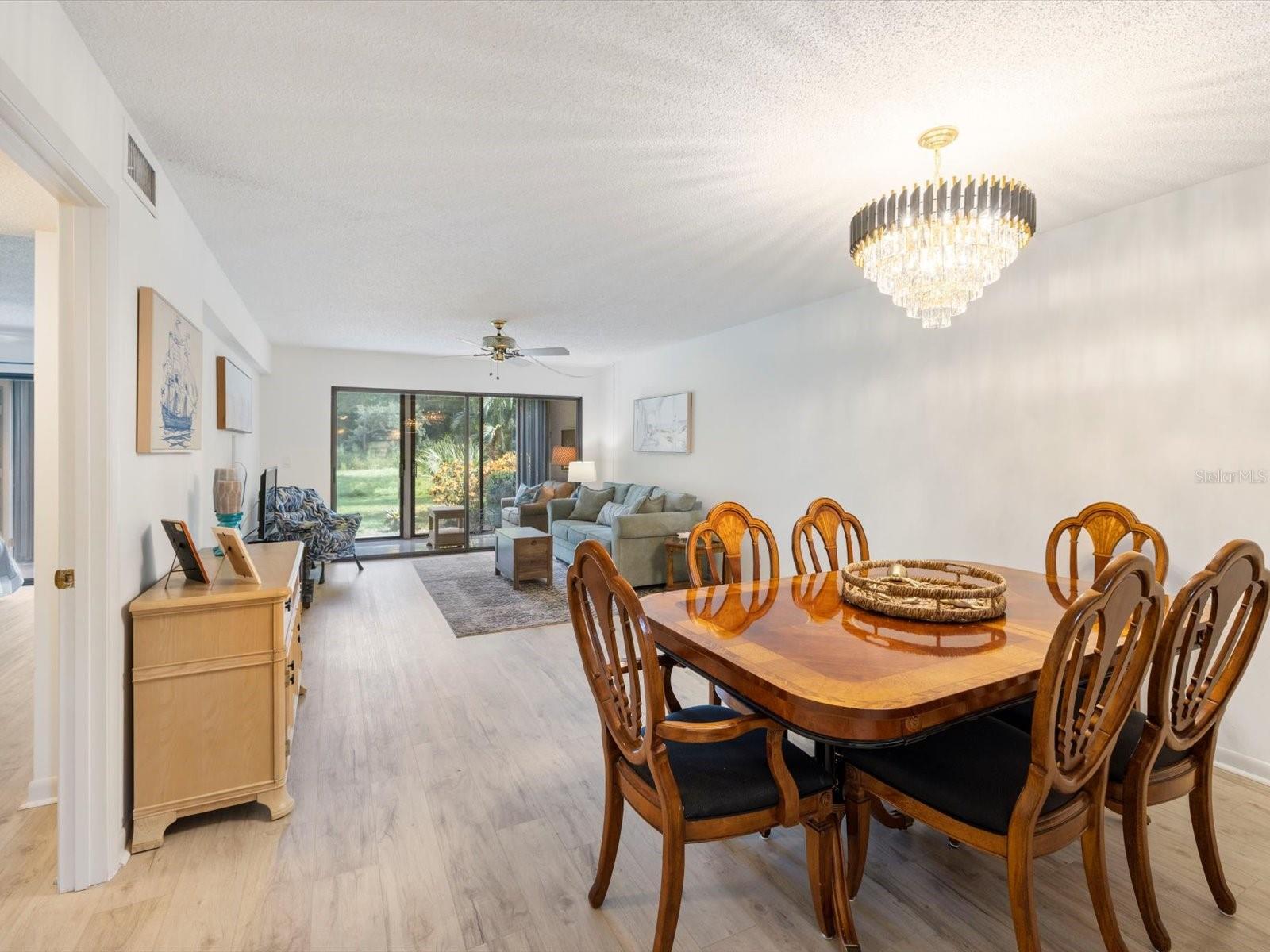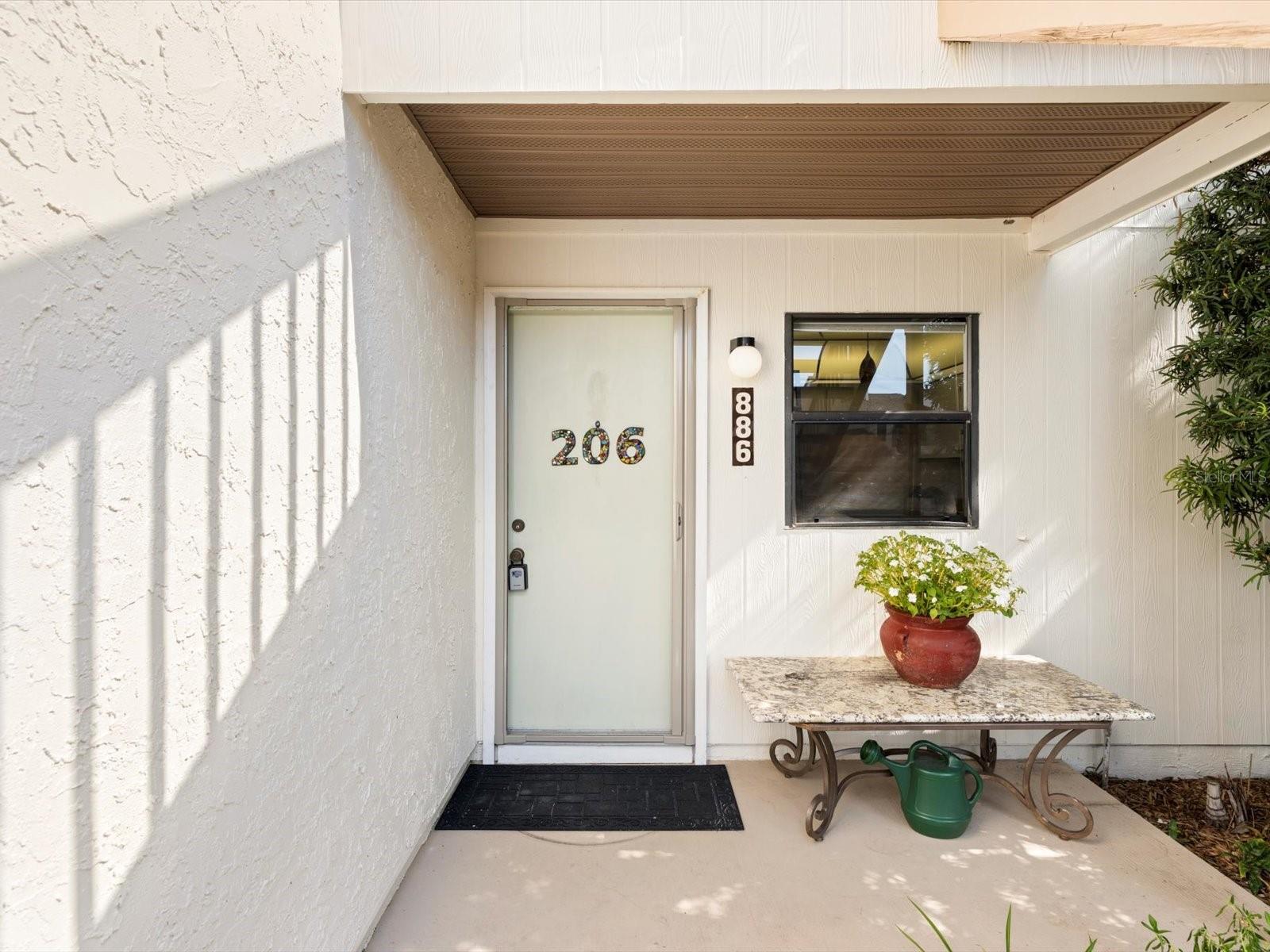 Welcome to Bird Bay Village, where maintenance-free living meets resort-style luxury! This vibrant community offers an array of amenities, including sparkling pools, tennis and pickleball courts, a state-of-the-art fitness center, bocce courts, shuffleboard, and even a library. Bird Bay Village is bustling with activity, fitness/pool classes, monthly events, social parties, and so much more. Discover the charm of this highly desirable, professionally staged first-floor condo in the sought-after phase II of Bird Bay Village! This 2-bedroom, 2-bath gem offers a spacious layout with stunning updates, including luxury vinyl plank (LVP) flooring throughout, and is being sold partially furnished (see inventory list). The inviting lanai, enclosed with glass sliders, is finished with elegant porcelain tile and overlooks a tranquil landscape of lush trees and greenery—perfect for peaceful mornings or relaxed evenings. The primary bedroom features its own sliding door leading to an additional patio, creating an extra private outdoor space. The AC and water heater were replaced in 2016. The carport includes a large storage room, ensuring ample space for your belongings. Phase II residents enjoy a private pool in addition to the large community pool, as well as access to an array of top-notch amenities—tennis, pickleball, shuffleboard, and bocce ball courts, plus a clubhouse with a full kitchen, fitness center, and library. Seasonal activities and social events abound! Conveniently located near Legacy Trail for miles of biking or walking, and just minutes from beautiful beaches, shopping, dining, and easy access to I-75. Don’t miss out on this opportunity—staging items are available for purchase outside the contract!