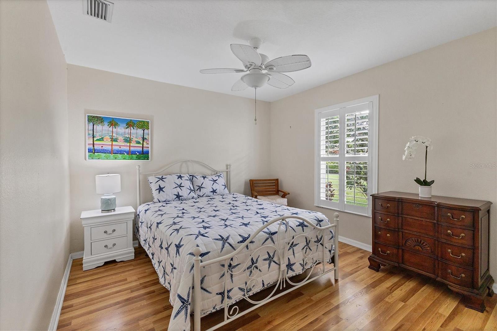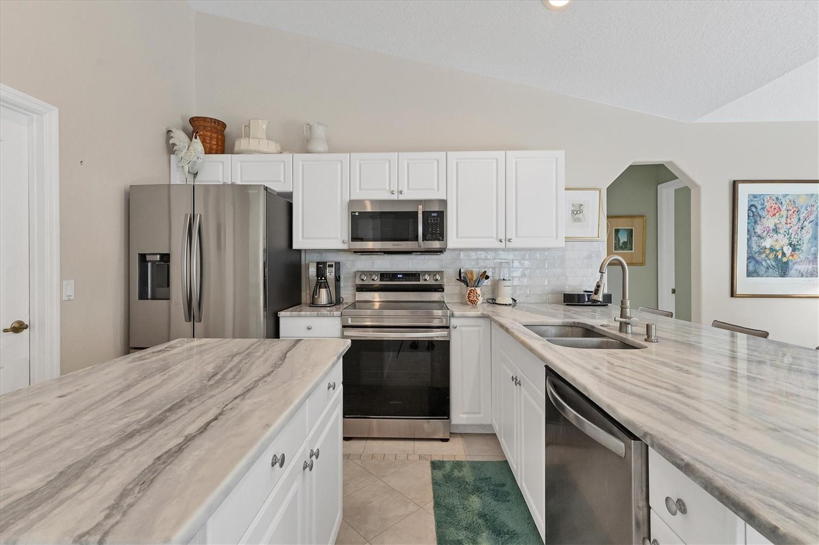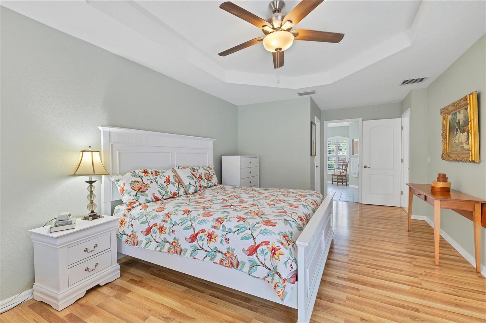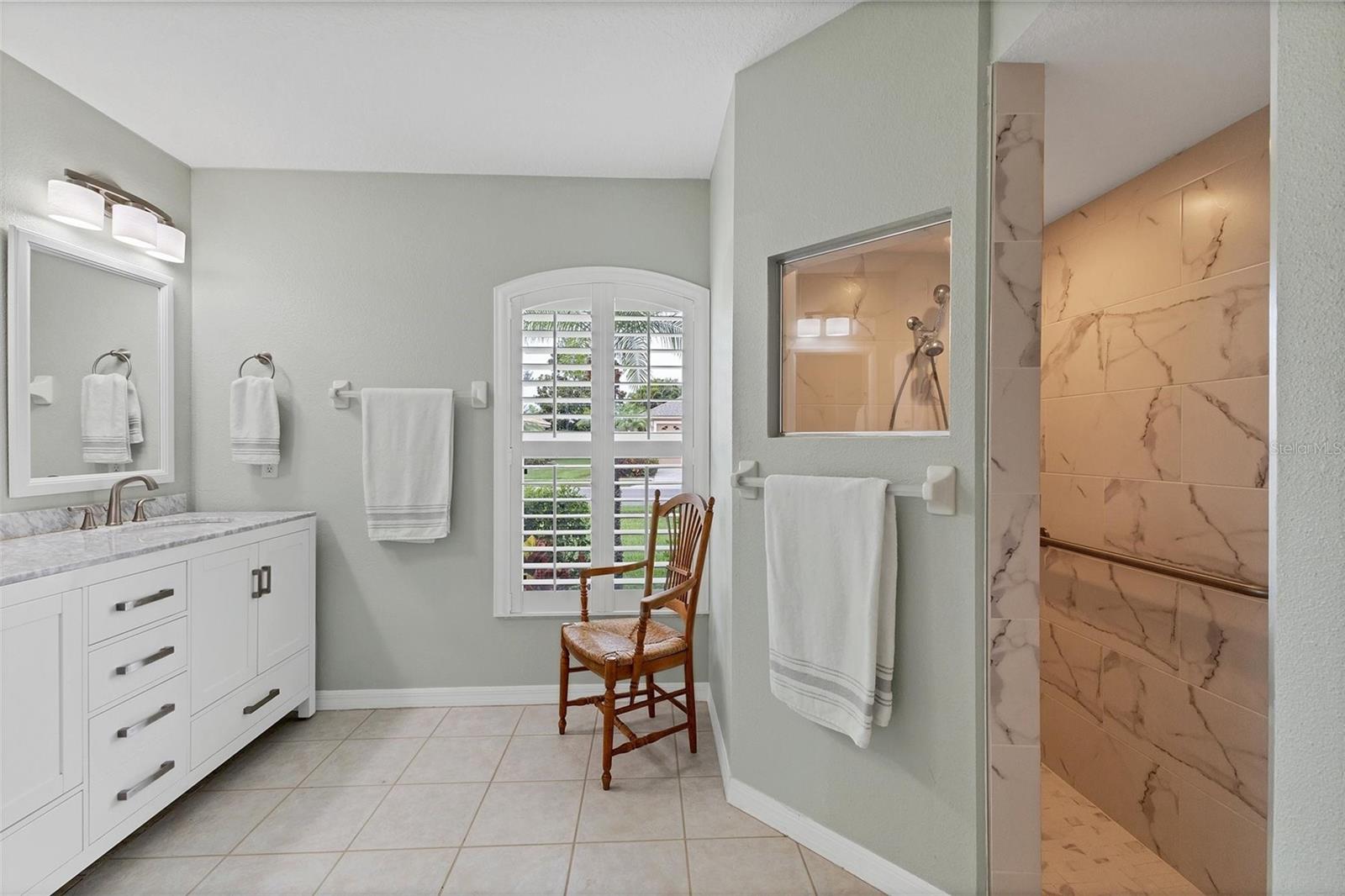 A home with an elegant open floor plan design. A 3/2 with a heated pool on a large lot with lovely landscaping and privacy. Classic details include archways, Roman columns, Palladium windows, vaulted and tray ceilings, and plantation shutters throughout. The recently updated kitchen has granite counters, an island, a seating counter area, and S/S appliances. The dinette has an aquarium window overlooking the lanai and pool. The family room is a relaxing space with an electric fireplace and built in book shelves. This is a split plan with two good size guest bedrooms. The spacious master bedroom is a restful retreat with extra space for a sitting area. A large renovated master bath has a new walk in shower and dual sinks. This well cared for home has a NEW ROOF 2023, two new impact resistant sliding glass doors on the lanai 2024, and exterior painted 2022. Venice Palms has a low HOA fee, sidewalks, a walking trail, and open green space, is dog friendly, and is 4.2 miles to Venice Island and the beach. This home is in move in condition and waiting for you. No damage from recent hurricanes.