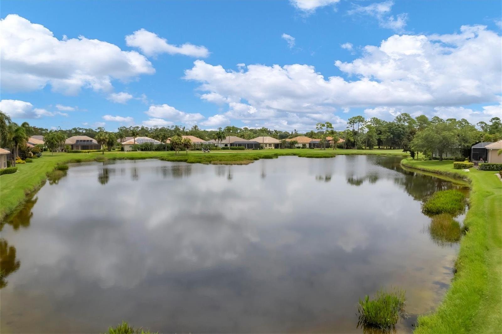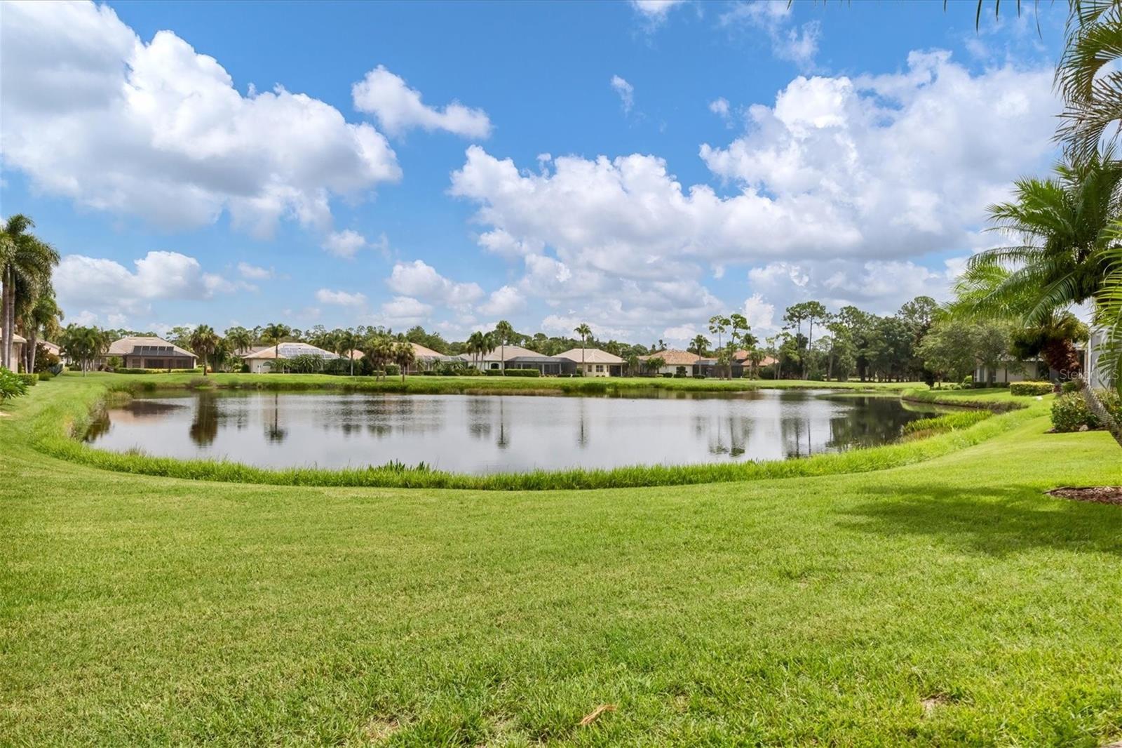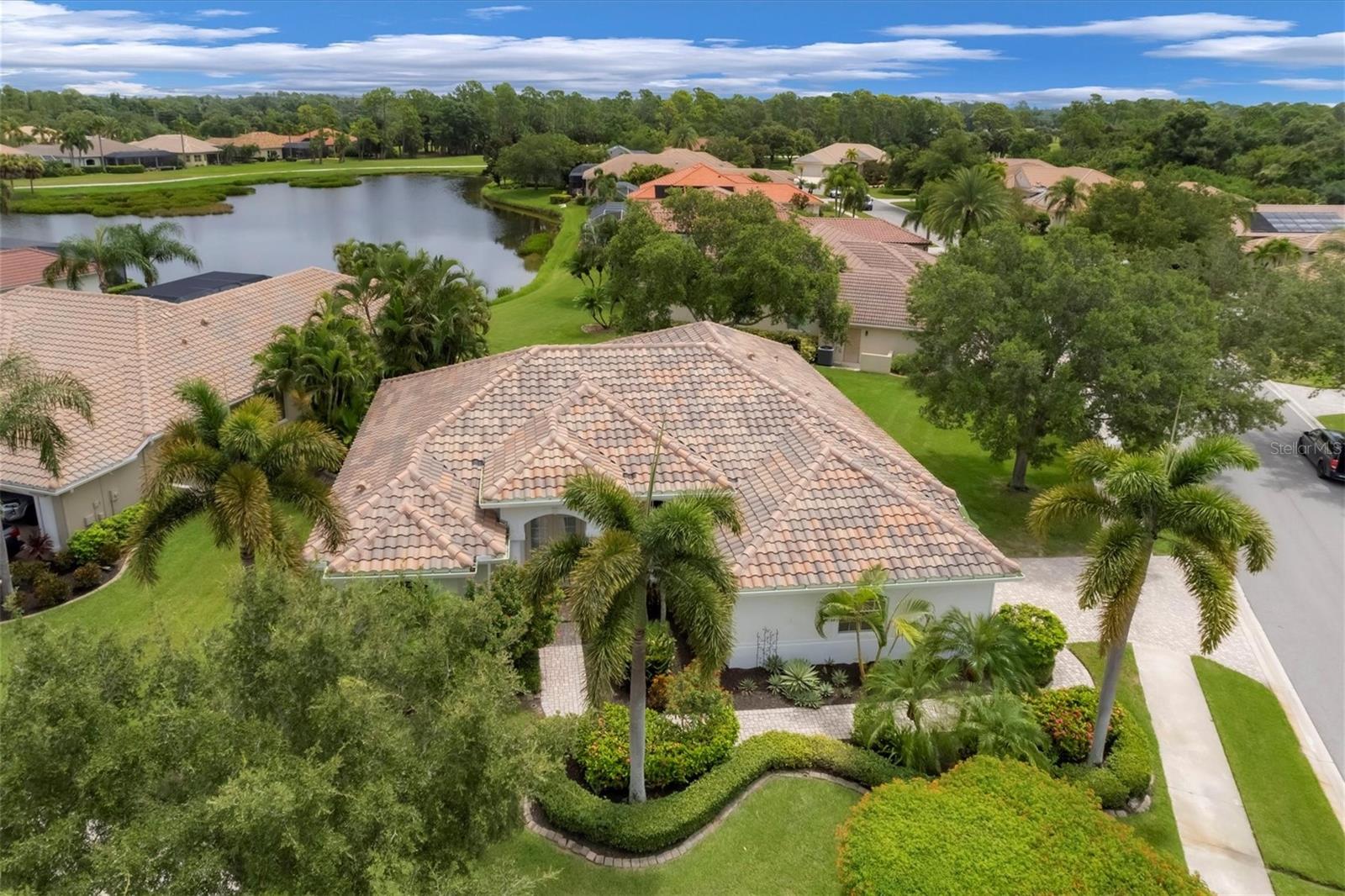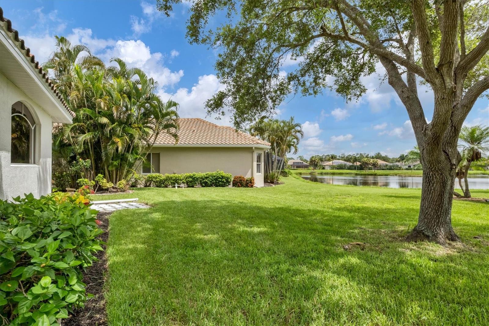 MUST SEE THIS SPECTACULAR HOME NOW!! Located in a quiet corner of the neighbor, home sits on the corner of cul de sac and not through street for extremely light traffic. With garage on the side street, the CURB APPEAL is AMAZING, with tropical landscaping and designed arbor. Pavered driveway and sidewalk will take you up to the glass leaded double door entry that allows you to take in the GORGEOUS LAKE VIEW!! Property was situated on lot to take advantage of the view and yard space. 47 ft of lake view. Extended lanai with custom built screen roof topper to expand the upward ceiling. Lanai surrounded by glass sliders for entry to all main areas of the home. Perfect for accessing the indoors and out, which lends itself to great entertaining space or perfect for spending a peaceful night at home enjoying the lake view. The Lido floor plan offers 3BD/2BA, formal living room and dining, kitchen and family room, and 3 very spacious bedrooms. Tile flooring through main areas with Berber carpets in bedrooms. Neutral coloring and updated decor with unique pieces and art. TURNKEY FURNISHINGS ARE NEGOTIABLE. Kitchen with lots of WOOD cabinets and CORIAN counters. ISLAND for easy food prep or providing a spread for guests. NEW MICROWAVE. NEW DISHWASHER 2023. Kitchen opens to family room for casual nights at home and conversing with loved ones or watching TV. Lots of extra recessed lighting for the chef to read the cookbook correctly. Split bedroom home with Large master on one side with en suite bathroom with dual sinks, walk in shower, and JETTED JACUZZI Tub. 2 Walk in closets. Guest bedrooms on other side of home for privacy, closed off with pocket door to make a 2 room suite with bathroom. Laundry room with wash tub. Extra bonus room for inside storage or small office space. Other outstanding features of this home include: NEW ROOF, GUTTERS, AND DOWN SPOUTS 2023, Exterior painted 2023, Interior painted MAY 2024 WITH BRAND NEW SILHOUETTE BLINDS installed on all sliders and windows in main living areas. NEW AC 2023. HOT WATER HEATER 2019. The home does have room for a pool if one is desired now or in the future. Electrical breaker and line are already in place for installation. COME AND SEE THIS HOME TODAY! Not in Florida? 3D WALK THROUGH AT : https://my.matterport.com/show/?m=eNjDXKWac3j Pelican Pointe is Venice's premier community with resort style amenities- Clubhouse with restaurant/bar/grill, heated pool, fitness center, tennis courts, pickle ball, tons of social activities, social room/library, 27 holes of golf and pro shop. Huge and very active Women’s Association with tons of activities to choose from. Golf membership is NOT mandatory. LOW HOA fees include use of all amenities, plus cable, internet, and grass cutting. All centrally located minutes to Venice Beach, Venice Downtown, shopping, theatres, restaurants, highways, airports, and so much more. Come find your Florida Lifestyle today!
