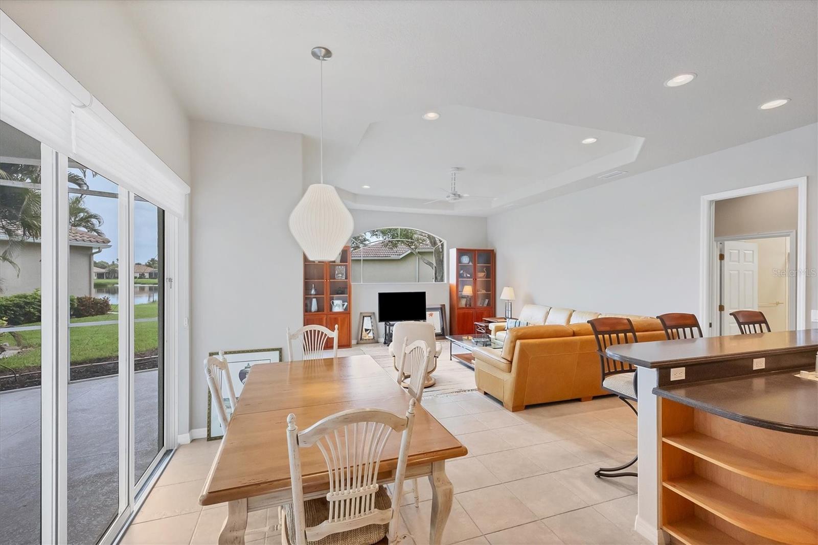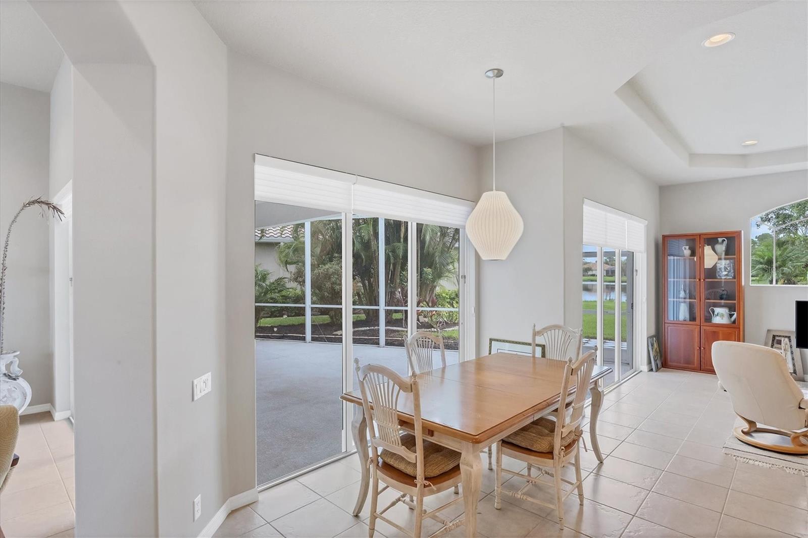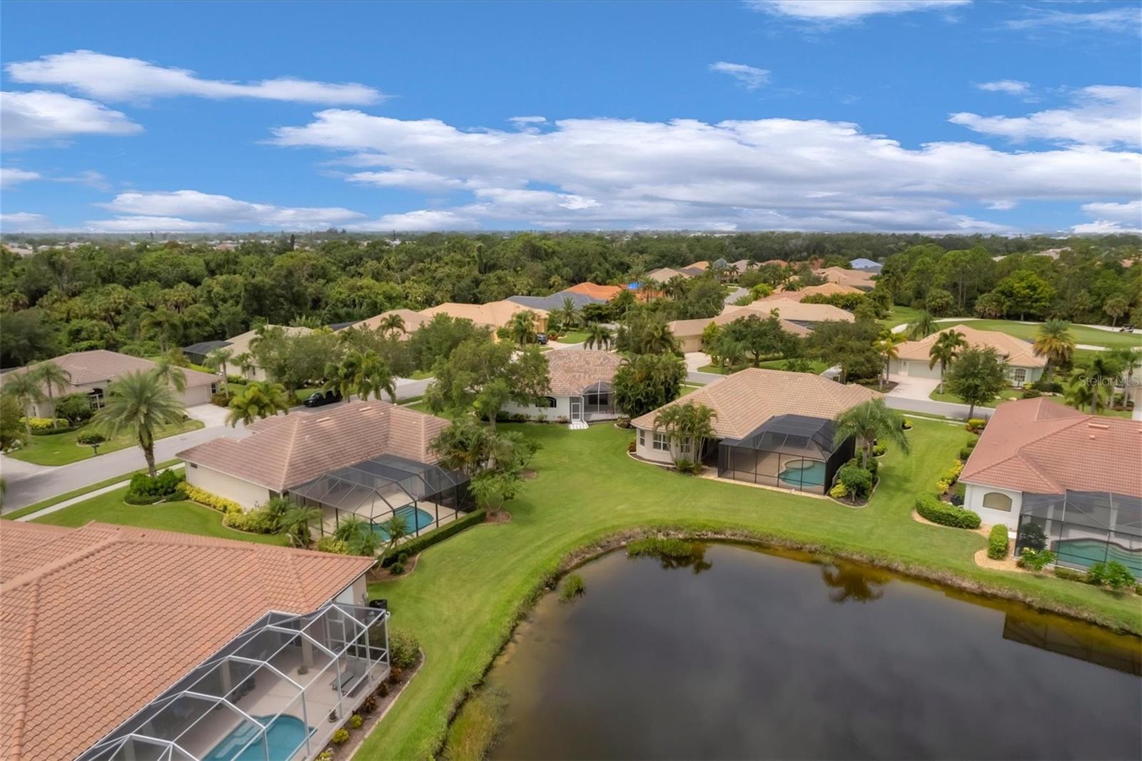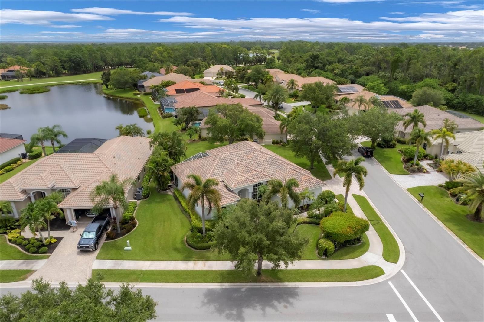 MUST SEE THIS SPECTACULAR HOME NOW!! Located in a quiet corner of the neighbor, home sits on the corner of cul de sac and not through street for extremely light traffic. With garage on the side street, the CURB APPEAL is AMAZING, with tropical landscaping and designed arbor. Pavered driveway and sidewalk will take you up to the glass leaded double door entry that allows you to take in the GORGEOUS LAKE VIEW!! Property was situated on lot to take advantage of the view and yard space. 47 ft of lake view. Extended lanai with custom built screen roof topper to expand the upward ceiling. Lanai surrounded by glass sliders for entry to all main areas of the home. Perfect for accessing the indoors and out, which lends itself to great entertaining space or perfect for spending a peaceful night at home enjoying the lake view. The Lido floor plan offers 3BD/2BA, formal living room and dining, kitchen and family room, and 3 very spacious bedrooms. Tile flooring through main areas with Berber carpets in bedrooms. Neutral coloring and updated decor with unique pieces and art. TURNKEY FURNISHINGS ARE NEGOTIABLE. Kitchen with lots of WOOD cabinets and CORIAN counters. ISLAND for easy food prep or providing a spread for guests. NEW MICROWAVE. NEW DISHWASHER 2023. Kitchen opens to family room for casual nights at home and conversing with loved ones or watching TV. Lots of extra recessed lighting for the chef to read the cookbook correctly. Split bedroom home with Large master on one side with en suite bathroom with dual sinks, walk in shower, and JETTED JACUZZI Tub. 2 Walk in closets. Guest bedrooms on other side of home for privacy, closed off with pocket door to make a 2 room suite with bathroom. Laundry room with wash tub. Extra bonus room for inside storage or small office space. Other outstanding features of this home include: NEW ROOF, GUTTERS, AND DOWN SPOUTS 2023, Exterior painted 2023, Interior painted MAY 2024 WITH BRAND NEW SILHOUETTE BLINDS installed on all sliders and windows in main living areas. NEW AC 2023. HOT WATER HEATER 2019. The home does have room for a pool if one is desired now or in the future. Electrical breaker and line are already in place for installation. COME AND SEE THIS HOME TODAY! Not in Florida? 3D WALK THROUGH AT : https://my.matterport.com/show/?m=eNjDXKWac3j Pelican Pointe is Venice's premier community with resort style amenities- Clubhouse with restaurant/bar/grill, heated pool, fitness center, tennis courts, pickle ball, tons of social activities, social room/library, 27 holes of golf and pro shop. Huge and very active Women’s Association with tons of activities to choose from. Golf membership is NOT mandatory. LOW HOA fees include use of all amenities, plus cable, internet, and grass cutting. All centrally located minutes to Venice Beach, Venice Downtown, shopping, theatres, restaurants, highways, airports, and so much more. Come find your Florida Lifestyle today!