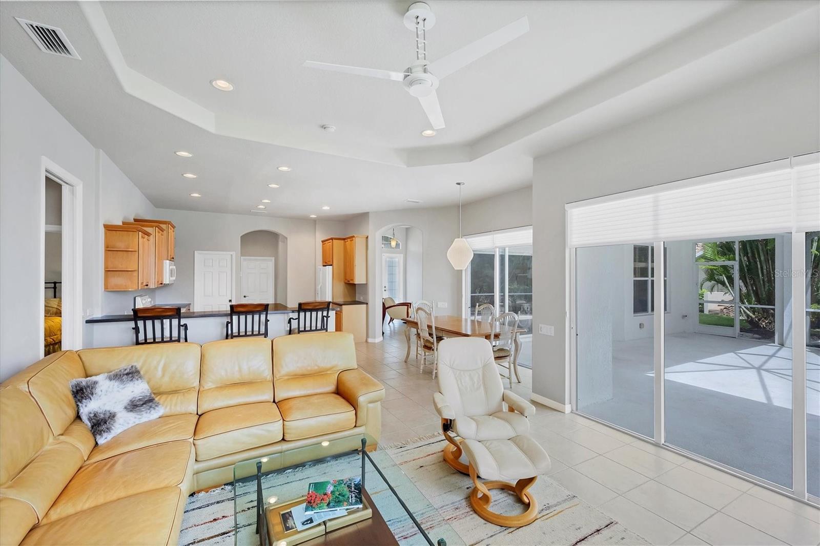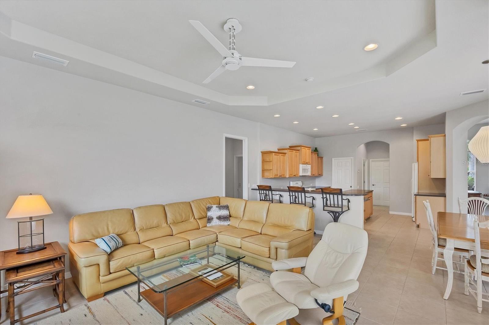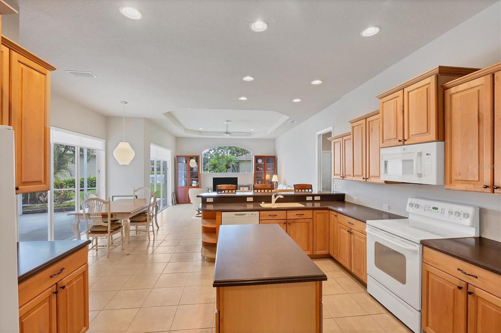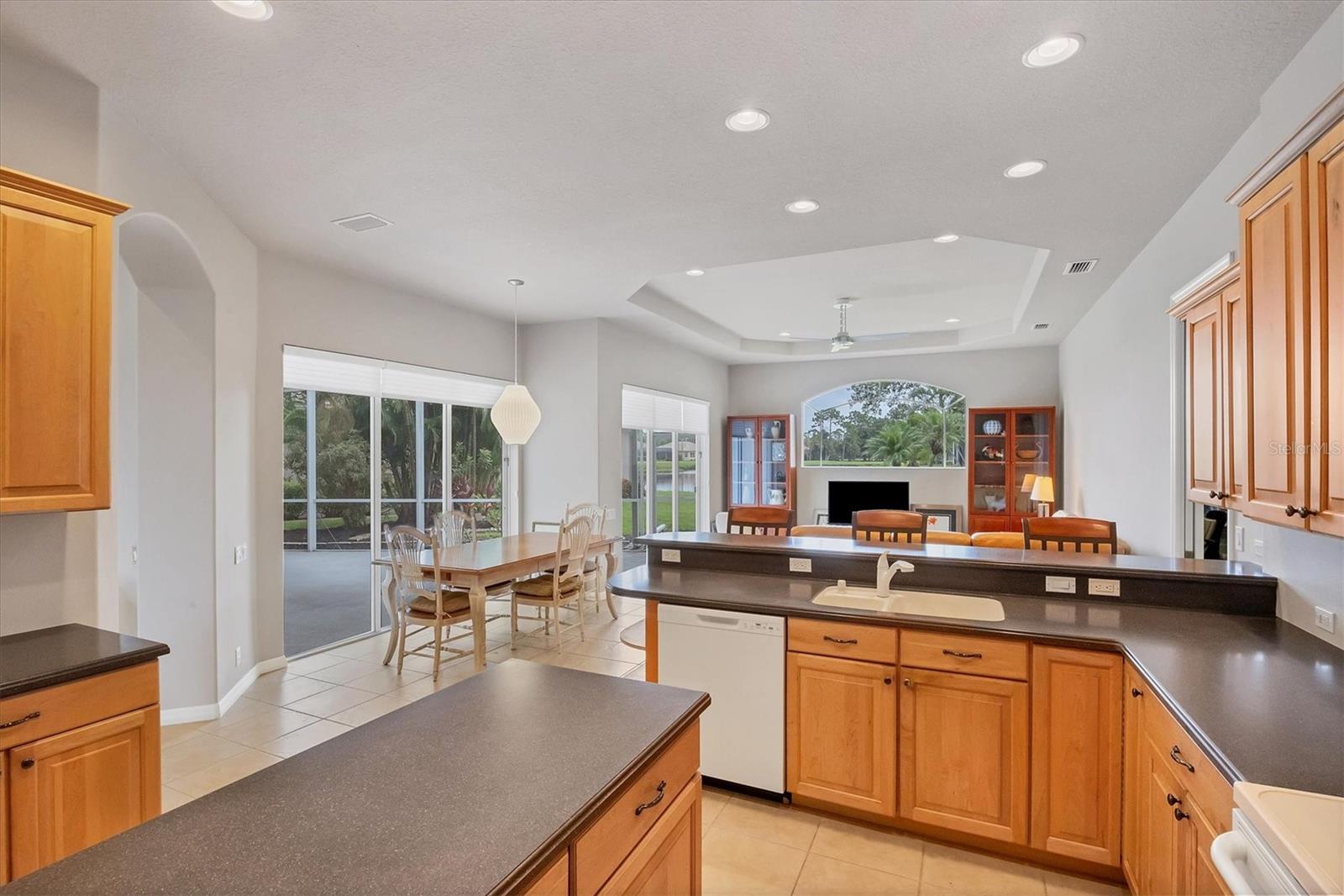 MUST SEE THIS SPECTACULAR HOME NOW!! Located in a quiet corner of the neighbor, home sits on the corner of cul de sac and not through street for extremely light traffic. With garage on the side street, the CURB APPEAL is AMAZING, with tropical landscaping and designed arbor. Pavered driveway and sidewalk will take you up to the glass leaded double door entry that allows you to take in the GORGEOUS LAKE VIEW!! Property was situated on lot to take advantage of the view and yard space. 47 ft of lake view. Extended lanai with custom built screen roof topper to expand the upward ceiling. Lanai surrounded by glass sliders for entry to all main areas of the home. Perfect for accessing the indoors and out, which lends itself to great entertaining space or perfect for spending a peaceful night at home enjoying the lake view. The Lido floor plan offers 3BD/2BA, formal living room and dining, kitchen and family room, and 3 very spacious bedrooms. Tile flooring through main areas with Berber carpets in bedrooms. Neutral coloring and updated decor with unique pieces and art. TURNKEY FURNISHINGS ARE NEGOTIABLE. Kitchen with lots of WOOD cabinets and CORIAN counters. ISLAND for easy food prep or providing a spread for guests. NEW MICROWAVE. NEW DISHWASHER 2023. Kitchen opens to family room for casual nights at home and conversing with loved ones or watching TV. Lots of extra recessed lighting for the chef to read the cookbook correctly. Split bedroom home with Large master on one side with en suite bathroom with dual sinks, walk in shower, and JETTED JACUZZI Tub. 2 Walk in closets. Guest bedrooms on other side of home for privacy, closed off with pocket door to make a 2 room suite with bathroom. Laundry room with wash tub. Extra bonus room for inside storage or small office space. Other outstanding features of this home include: NEW ROOF, GUTTERS, AND DOWN SPOUTS 2023, Exterior painted 2023, Interior painted MAY 2024 WITH BRAND NEW SILHOUETTE BLINDS installed on all sliders and windows in main living areas. NEW AC 2023. HOT WATER HEATER 2019. The home does have room for a pool if one is desired now or in the future. Electrical breaker and line are already in place for installation. COME AND SEE THIS HOME TODAY! Not in Florida? 3D WALK THROUGH AT : https://my.matterport.com/show/?m=eNjDXKWac3j Pelican Pointe is Venice's premier community with resort style amenities- Clubhouse with restaurant/bar/grill, heated pool, fitness center, tennis courts, pickle ball, tons of social activities, social room/library, 27 holes of golf and pro shop. Huge and very active Women’s Association with tons of activities to choose from. Golf membership is NOT mandatory. LOW HOA fees include use of all amenities, plus cable, internet, and grass cutting. All centrally located minutes to Venice Beach, Venice Downtown, shopping, theatres, restaurants, highways, airports, and so much more. Come find your Florida Lifestyle today!