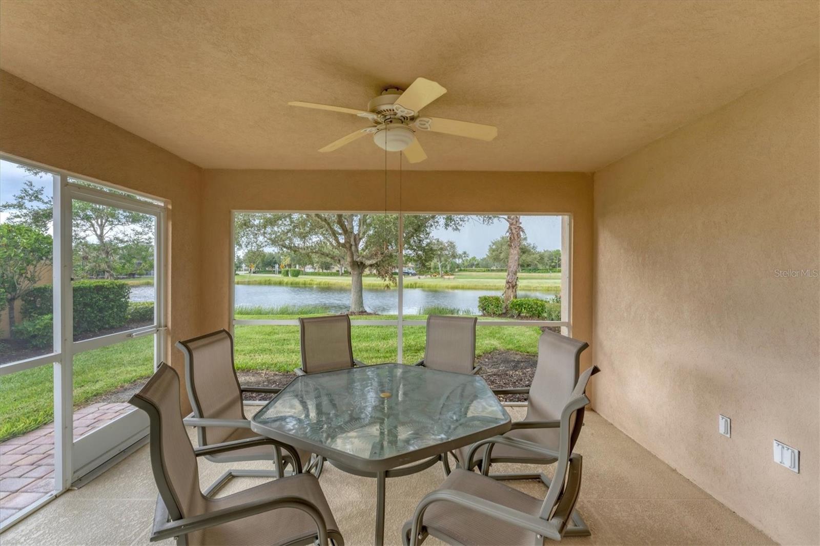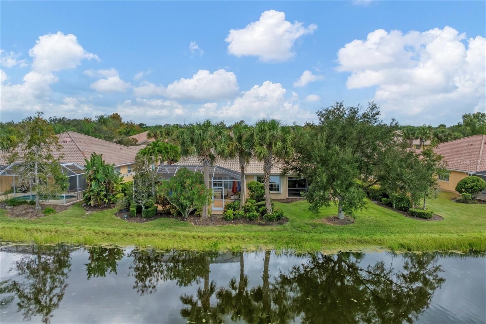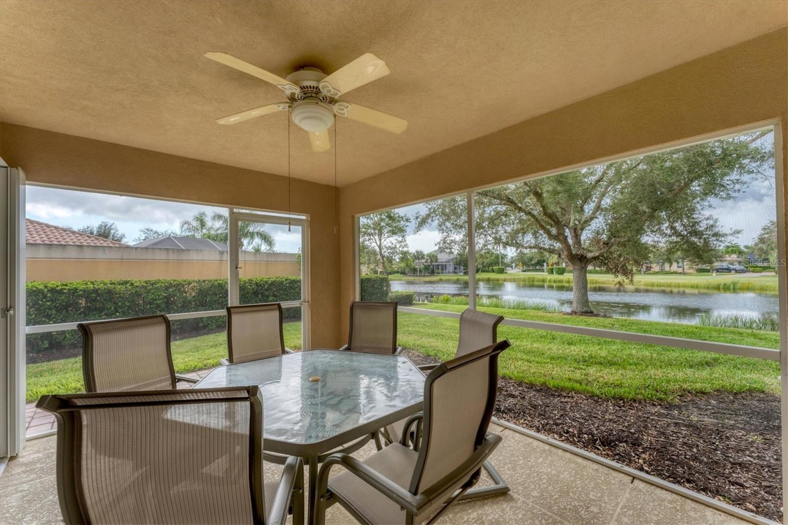 DON’T WAIT TO SEE THIS FABULOUS VILLA TODAY! Gorgeous lake views. Very Peaceful and Serene atmosphere from your lanai. Leaded glass door greets your entrance and allows light to shine through the villa with lots of windows for tons of natural light. Open floor plan-kitchen, dining, family room, and living room all combine. Tile flooring throughout main areas of home with carpet in family room and bedrooms. Neutral color palate, custom made window treatments. Kitchen offers plenty of counter space and cabinets. Spectacular tile back splash. Flat bar counter island style for guests to gather around or casual breakfast seating. Family room with beautiful built-ins. Living space with sliding doors out to lanai. Spacious Master bedroom with en suite bathroom and walk in closet. Bathroom has dual sinks, walk in shower, linen closet, and under cabinet lighting to guide your way at night. Large Guest bedroom on the other side of villa for privacy. Also, includes en suite bath and walk in closet. Laundry room has wash sink, cabinets, and folding counter. HURRICANE SHUTTERS for peace of mind during a storm. THIS HOME HAS BEEN METICULOUSLY TAKEN CARE OF. Move right in. TURNKEY Furnishings are negotiable. Property is great for snowbirds or those wanting to downsize. MOVE IN READY. MAKE AN APPOINTMENT TODAY. VIEW 3D WALK THROUGH AT: Islandwalk is a Premier resort style community offering 2 Clubhouses with swimming pools/spa and fitness centers, 12 lighted pickleball courts,8 Har Tru tennis courts, bocce ball, Dog Park and 2 activities directors coordinating tons of activities/social events. Designed w/ the outdoors in mind- walking paths and bridges flow throughout the community amidst the tropical landscape. Located minutes to Manasota Beach, Venice Beach, shopping, and Venice Downtown with its quaint shops, restaurants, and theatres. Plus just around the corner from the Atlanta Braves stadium and spring training camp, the NEW WELLEN PARK designed community with tons of restaurants, shops, and activities, The 80 acre Grand Lake with numerous outdoor water activities and walking trails. Don't miss out- this is the new upcoming PLACE TO BE!!! Start living your Florida Lifestlye Today!!