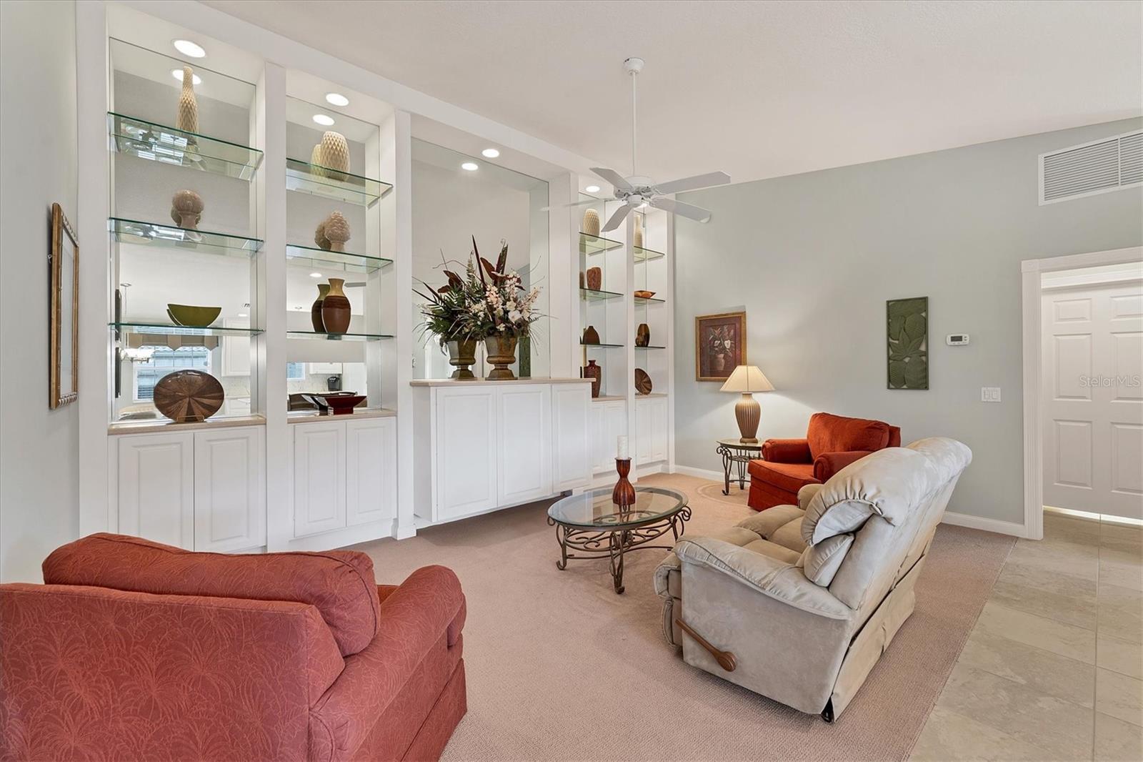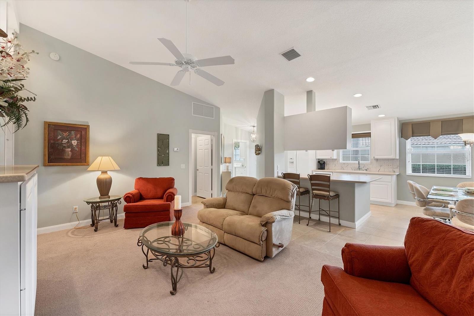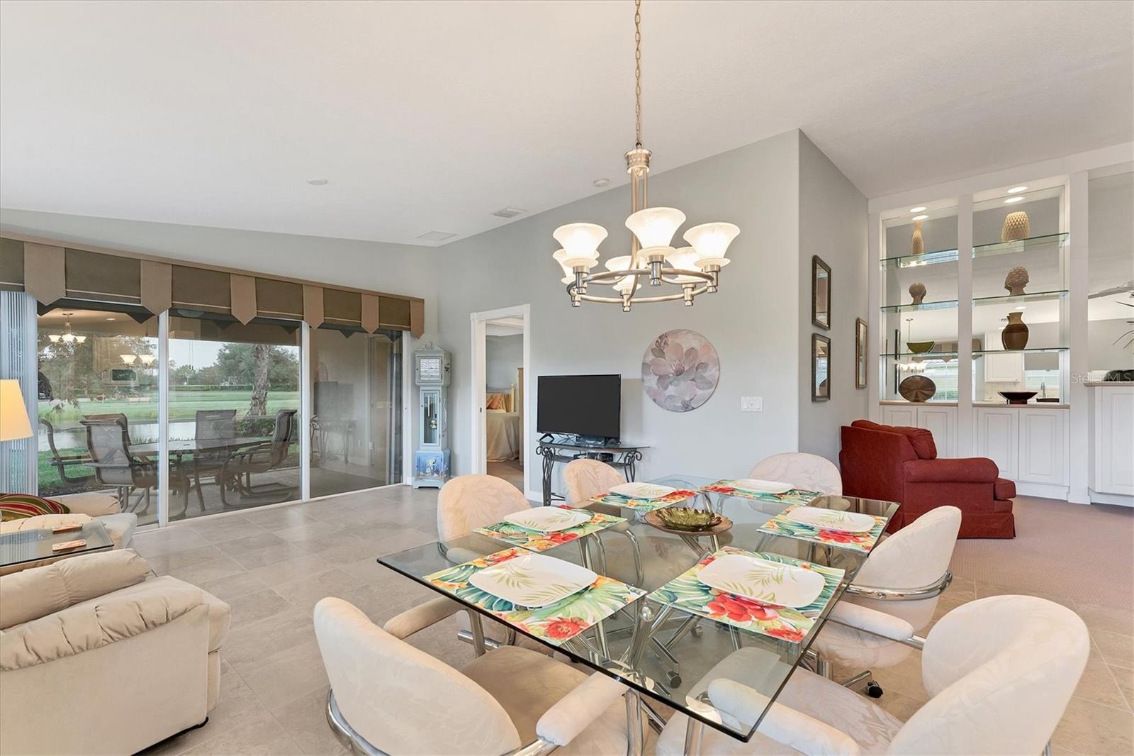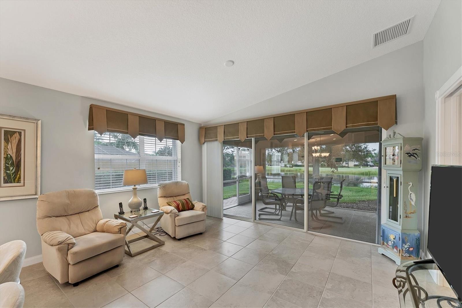 DON’T WAIT TO SEE THIS FABULOUS VILLA TODAY! Gorgeous lake views. Very Peaceful and Serene atmosphere from your lanai. Leaded glass door greets your entrance and allows light to shine through the villa with lots of windows for tons of natural light. Open floor plan-kitchen, dining, family room, and living room all combine. Tile flooring throughout main areas of home with carpet in family room and bedrooms. Neutral color palate, custom made window treatments. Kitchen offers plenty of counter space and cabinets. Spectacular tile back splash. Flat bar counter island style for guests to gather around or casual breakfast seating. Family room with beautiful built-ins. Living space with sliding doors out to lanai. Spacious Master bedroom with en suite bathroom and walk in closet. Bathroom has dual sinks, walk in shower, linen closet, and under cabinet lighting to guide your way at night. Large Guest bedroom on the other side of villa for privacy. Also, includes en suite bath and walk in closet. Laundry room has wash sink, cabinets, and folding counter. HURRICANE SHUTTERS for peace of mind during a storm. THIS HOME HAS BEEN METICULOUSLY TAKEN CARE OF. Move right in. TURNKEY Furnishings are negotiable. Property is great for snowbirds or those wanting to downsize. MOVE IN READY. MAKE AN APPOINTMENT TODAY. VIEW 3D WALK THROUGH AT: Islandwalk is a Premier resort style community offering 2 Clubhouses with swimming pools/spa and fitness centers, 12 lighted pickleball courts,8 Har Tru tennis courts, bocce ball, Dog Park and 2 activities directors coordinating tons of activities/social events. Designed w/ the outdoors in mind- walking paths and bridges flow throughout the community amidst the tropical landscape. Located minutes to Manasota Beach, Venice Beach, shopping, and Venice Downtown with its quaint shops, restaurants, and theatres. Plus just around the corner from the Atlanta Braves stadium and spring training camp, the NEW WELLEN PARK designed community with tons of restaurants, shops, and activities, The 80 acre Grand Lake with numerous outdoor water activities and walking trails. Don't miss out- this is the new upcoming PLACE TO BE!!! Start living your Florida Lifestlye Today!!
