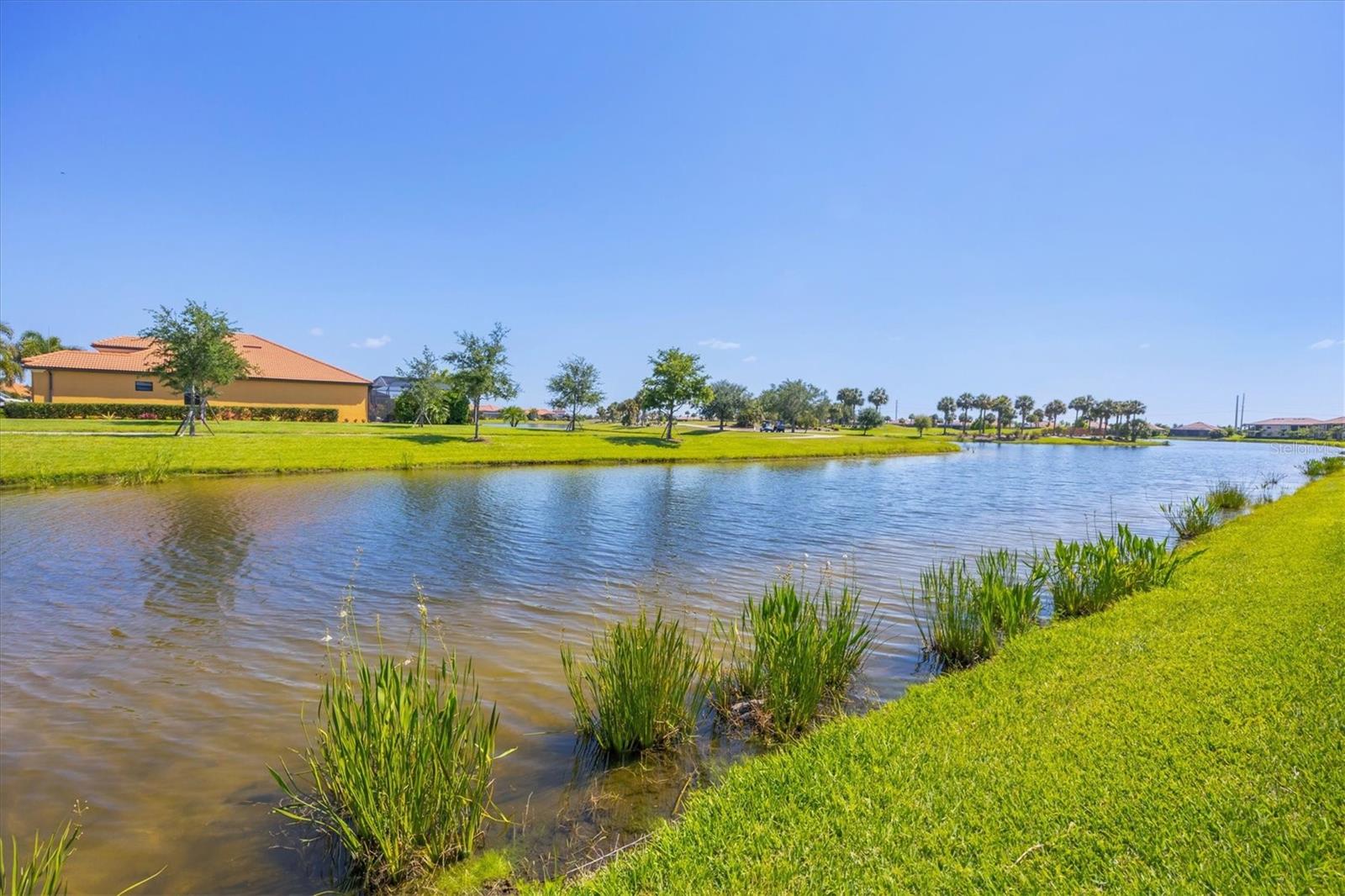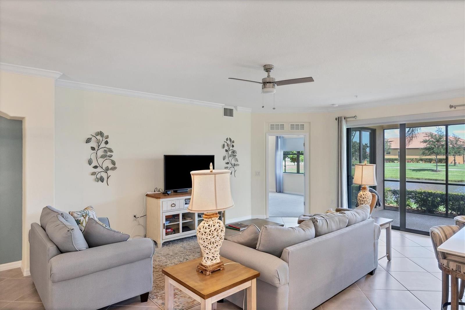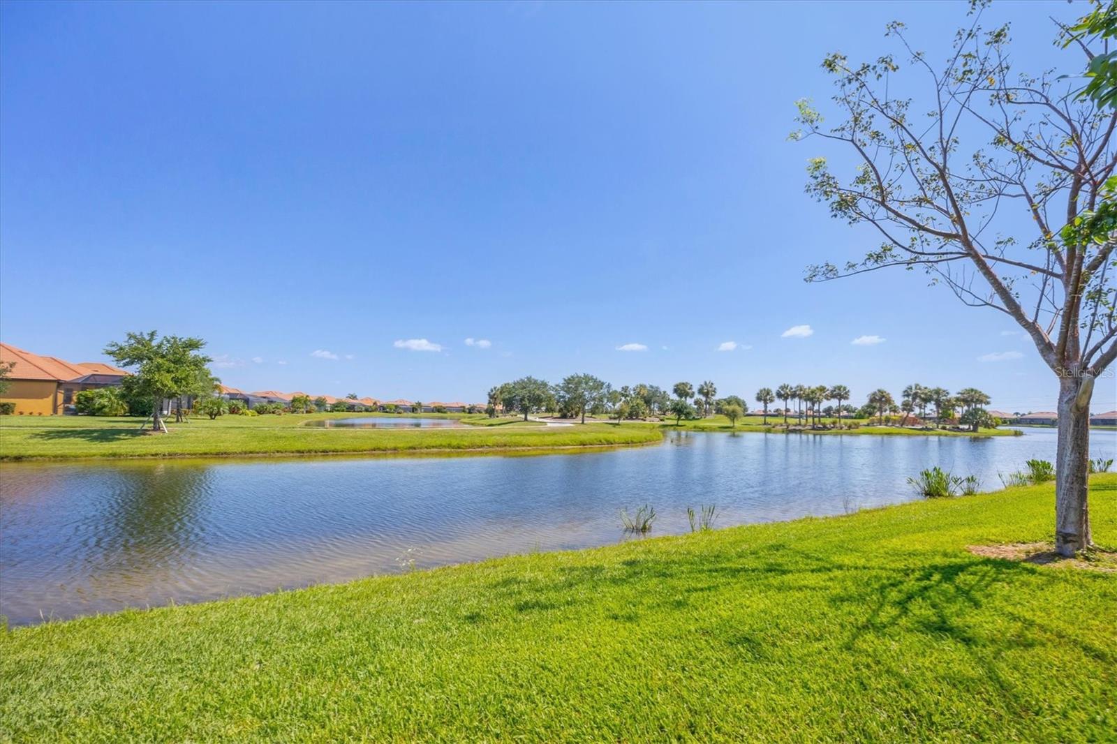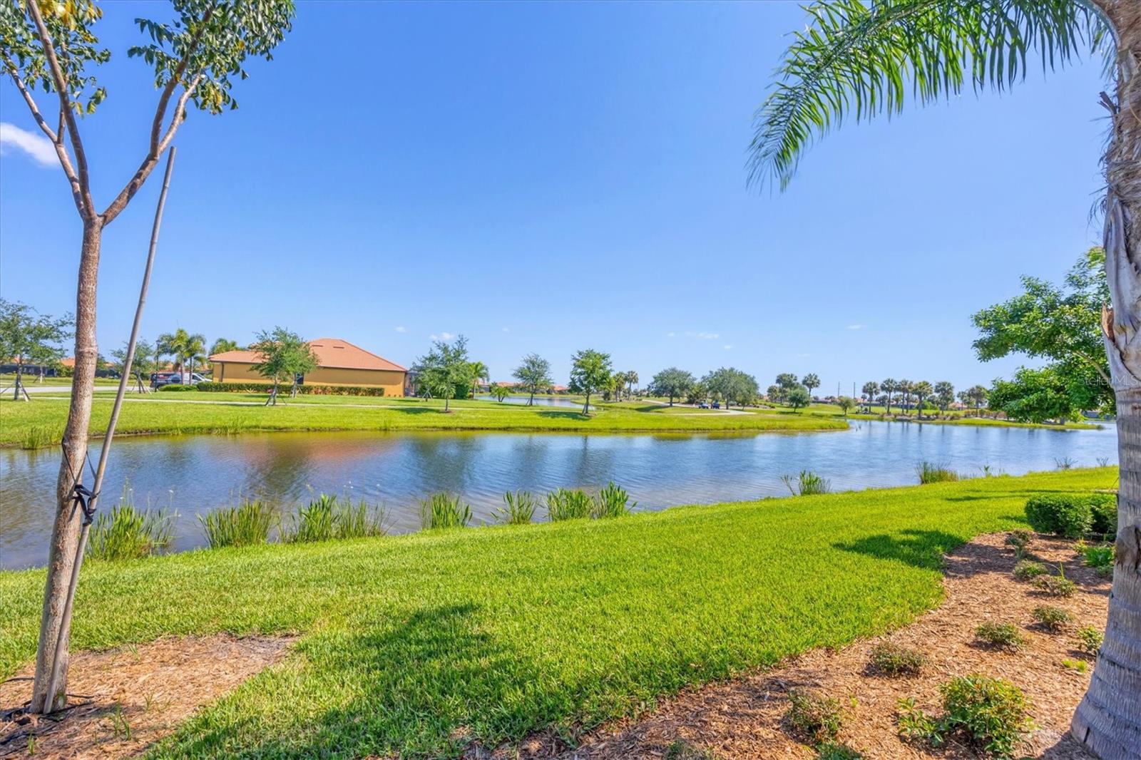 DON'T MISS OUT!! FIRST FLOOR 3BD/2BA/2CG with 2 GOLF MEMBERSHIPS INCLUDED. BEAUTIFUL TURNKEY FURNISHINGS NEGOTIABLE. GORGEOUS PANORAMIC VIEWS OF LAKE AND GOLF COURSE. Great room open floor plan looks straight out to your spacious lanai and STUNNING VIEWS!. 20 inch tile flooring set on the diagonal runs through main and wet areas with carpets in Bedrooms. Crown molding. Kitchen offers quartz counter tops, spacious island with sink, subway tile back splash, stainless steel appliances, and tons of 42 inch high cabinetry. Large master bedroom with en suite bathroom includes dual sinks, walk in shower, garden tub, and linen closet. Suite offers 2 walk in closets and gorgeous views out the window. Guest bedrooms located at other end of house for privacy. Guest bath and extra large storage closet. Separate laundry room. Tastefully decorated with Beach condo theme, condo is available TURNKEY FURNISHINGS NEGOTIABLE. MAKE YOUR APPOINTMENT TO SEE THIS CONDO TODAY BEFORE SOMEONE ELSE DOES! Sarasota National is a marvelous community with over 1300 acres designated for preservation, conservation, lakes, and open space with amazing views, Proclaimed as an Audubon International Certified Sanctuary, making it the most gorgeous and enjoyable golf course to play at in the area. Offering resort style amenities with huge resort style pool and spa,Tiki Bar to serve refreshing drinks and a bite of lunch, tennis courts, pickle ball, Bocce courts, coffee lounge/library/card room/meeting place, 7000 sq ft fitness facilities offering classes and day spa, and a 30,000 sq ft Clubhouse with dining and spectacular views. 18 Hole championship golf course surrounded by native wetlands and preserves provides an exhilarating and dramatic back drop for your golfing adventure. Minutes away from the new Wellen Park shopping area and Atlanta Braves stadium. Venice Beach and Venice Downtown are just a short drive. Your choice of restaurants and outdoor activities await. Come find YOUR Florida lifestyle TODAY and Live everyday like your on vacation!