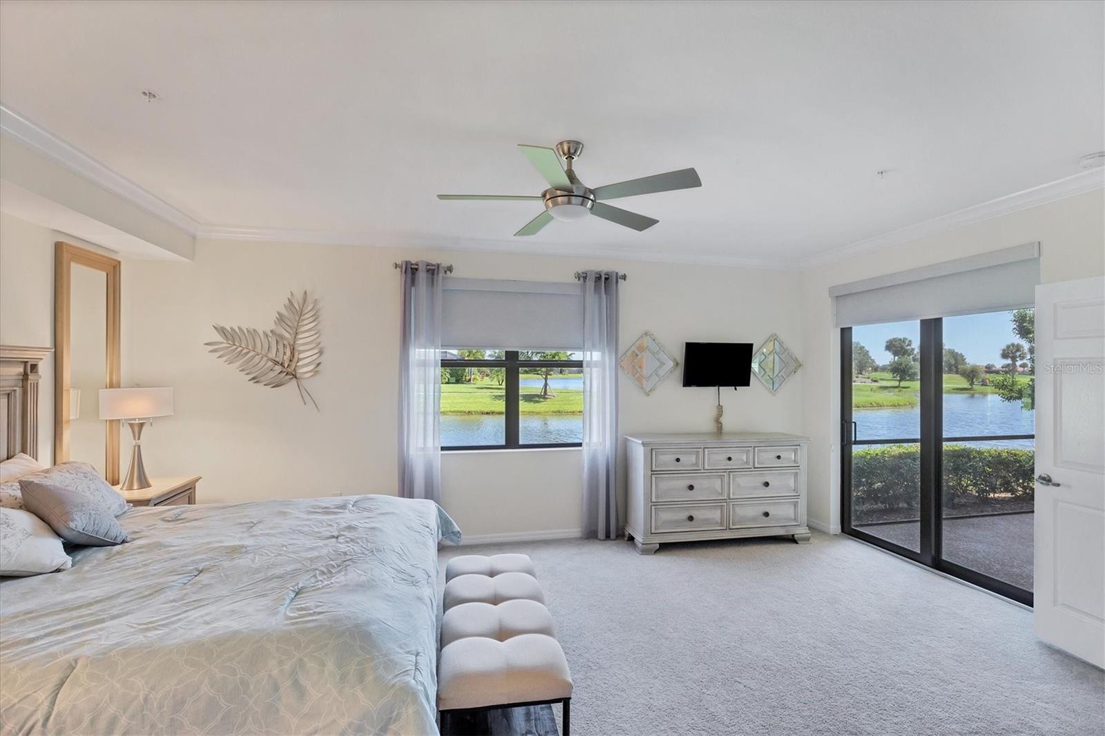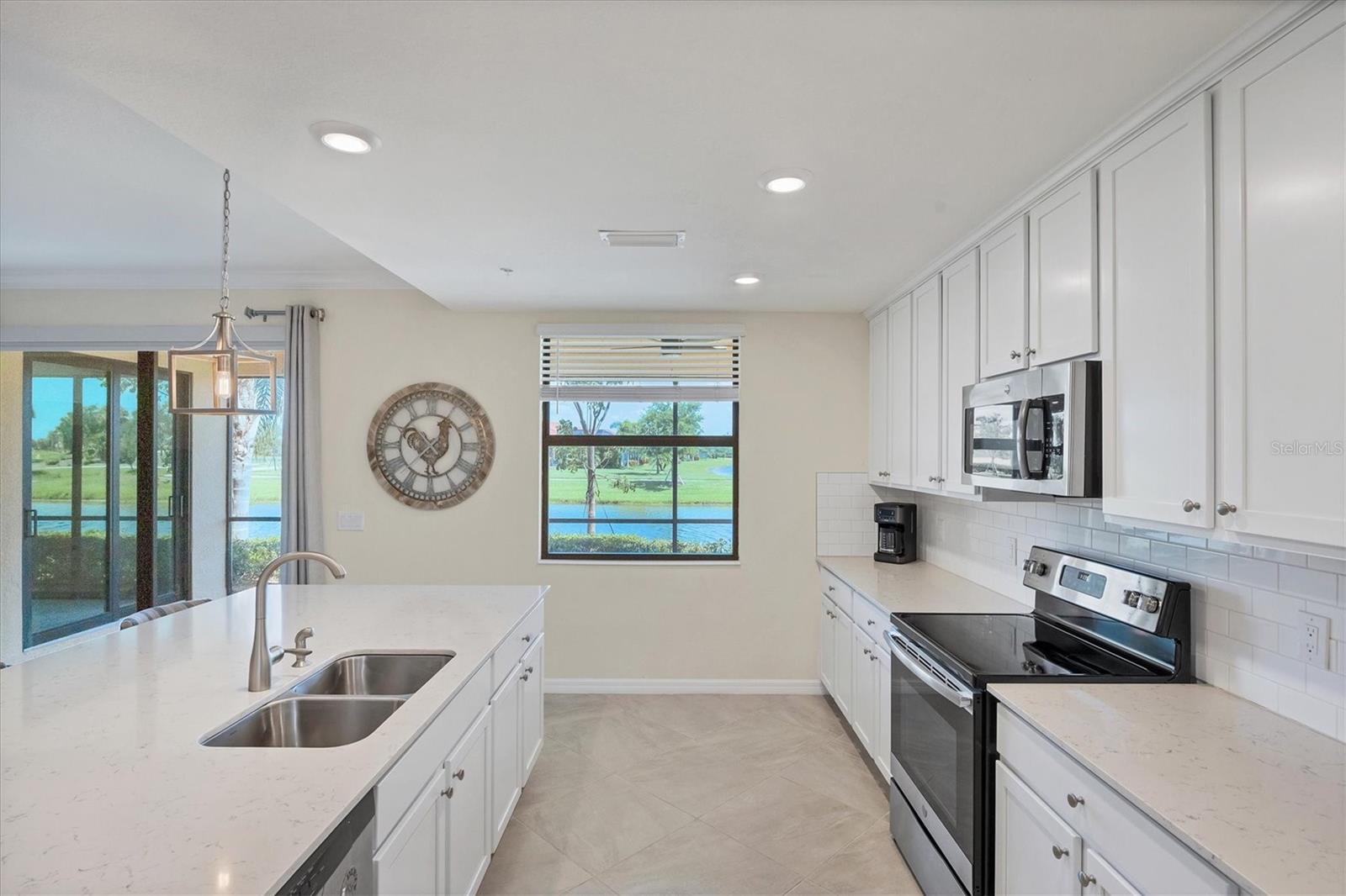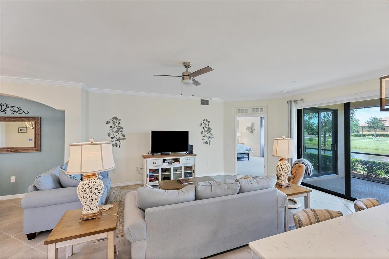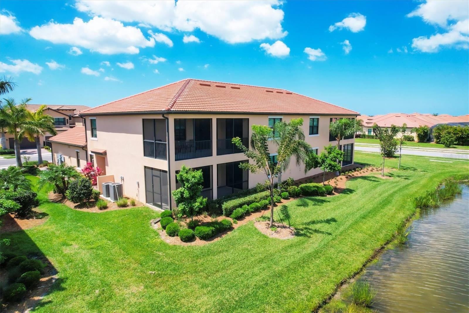 DON'T MISS OUT!! FIRST FLOOR 3BD/2BA/2CG with 2 GOLF MEMBERSHIPS INCLUDED. BEAUTIFUL TURNKEY FURNISHINGS NEGOTIABLE. GORGEOUS PANORAMIC VIEWS OF LAKE AND GOLF COURSE. Great room open floor plan looks straight out to your spacious lanai and STUNNING VIEWS!. 20 inch tile flooring set on the diagonal runs through main and wet areas with carpets in Bedrooms. Crown molding. Kitchen offers quartz counter tops, spacious island with sink, subway tile back splash, stainless steel appliances, and tons of 42 inch high cabinetry. Large master bedroom with en suite bathroom includes dual sinks, walk in shower, garden tub, and linen closet. Suite offers 2 walk in closets and gorgeous views out the window. Guest bedrooms located at other end of house for privacy. Guest bath and extra large storage closet. Separate laundry room. Tastefully decorated with Beach condo theme, condo is available TURNKEY FURNISHINGS NEGOTIABLE. MAKE YOUR APPOINTMENT TO SEE THIS CONDO TODAY BEFORE SOMEONE ELSE DOES! Sarasota National is a marvelous community with over 1300 acres designated for preservation, conservation, lakes, and open space with amazing views, Proclaimed as an Audubon International Certified Sanctuary, making it the most gorgeous and enjoyable golf course to play at in the area. Offering resort style amenities with huge resort style pool and spa,Tiki Bar to serve refreshing drinks and a bite of lunch, tennis courts, pickle ball, Bocce courts, coffee lounge/library/card room/meeting place, 7000 sq ft fitness facilities offering classes and day spa, and a 30,000 sq ft Clubhouse with dining and spectacular views. 18 Hole championship golf course surrounded by native wetlands and preserves provides an exhilarating and dramatic back drop for your golfing adventure. Minutes away from the new Wellen Park shopping area and Atlanta Braves stadium. Venice Beach and Venice Downtown are just a short drive. Your choice of restaurants and outdoor activities await. Come find YOUR Florida lifestyle TODAY and Live everyday like your on vacation!