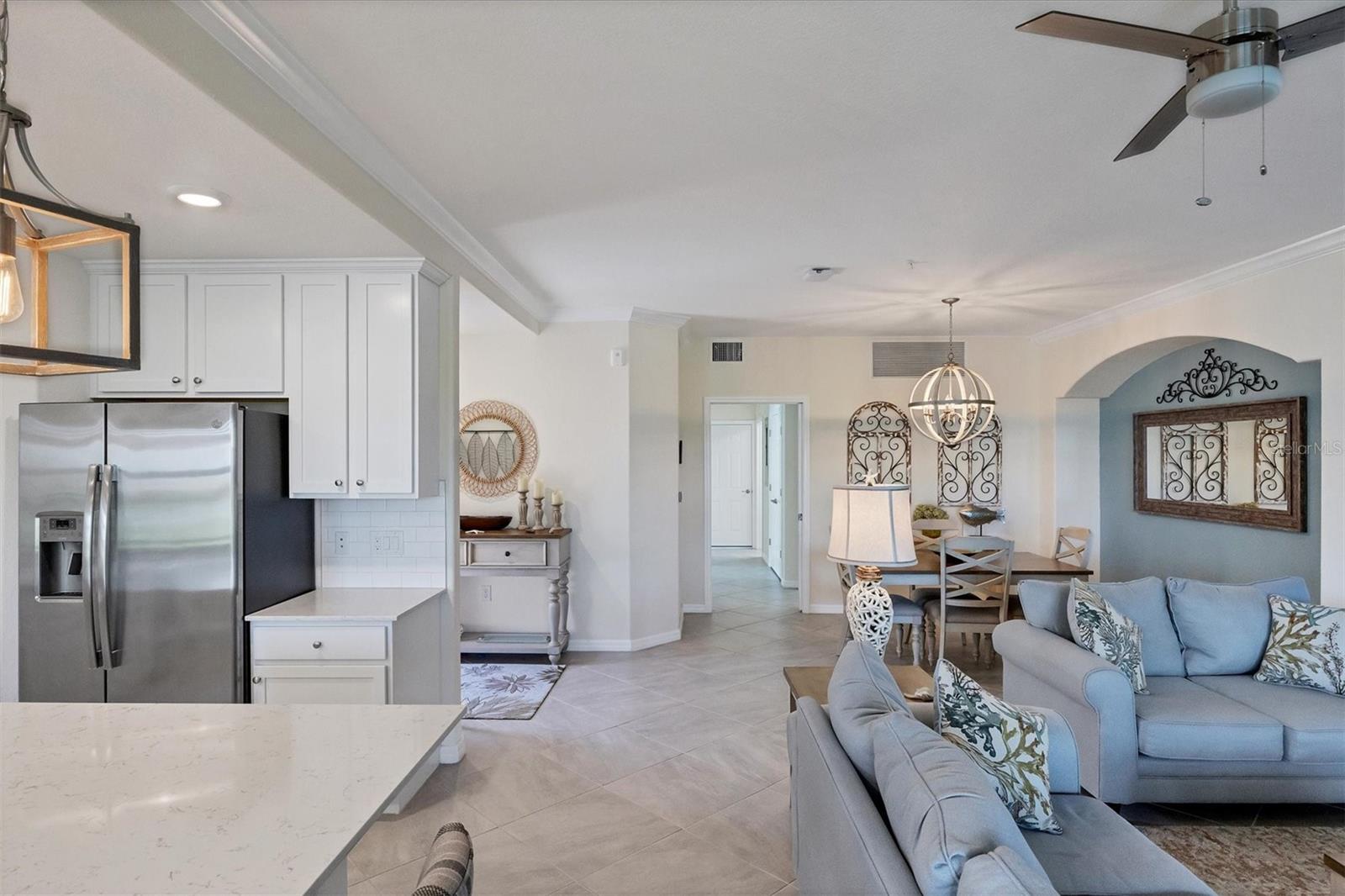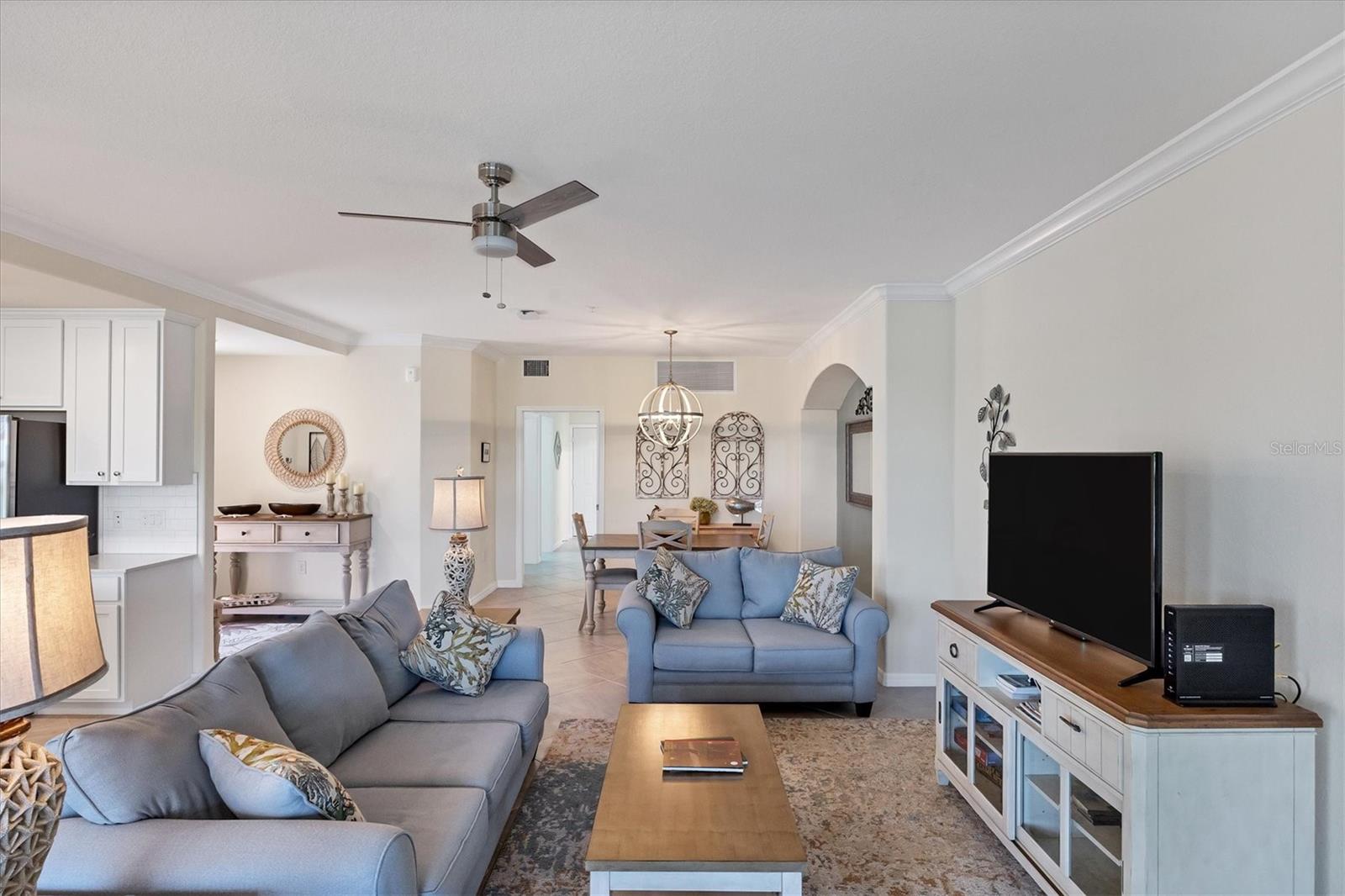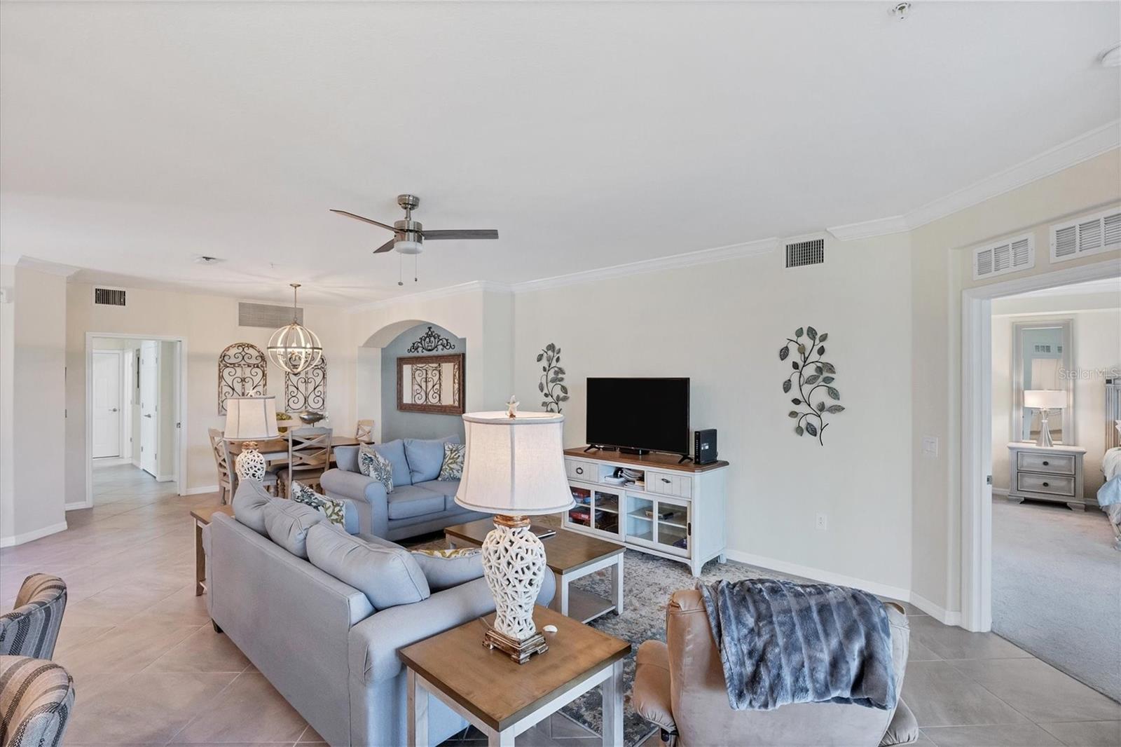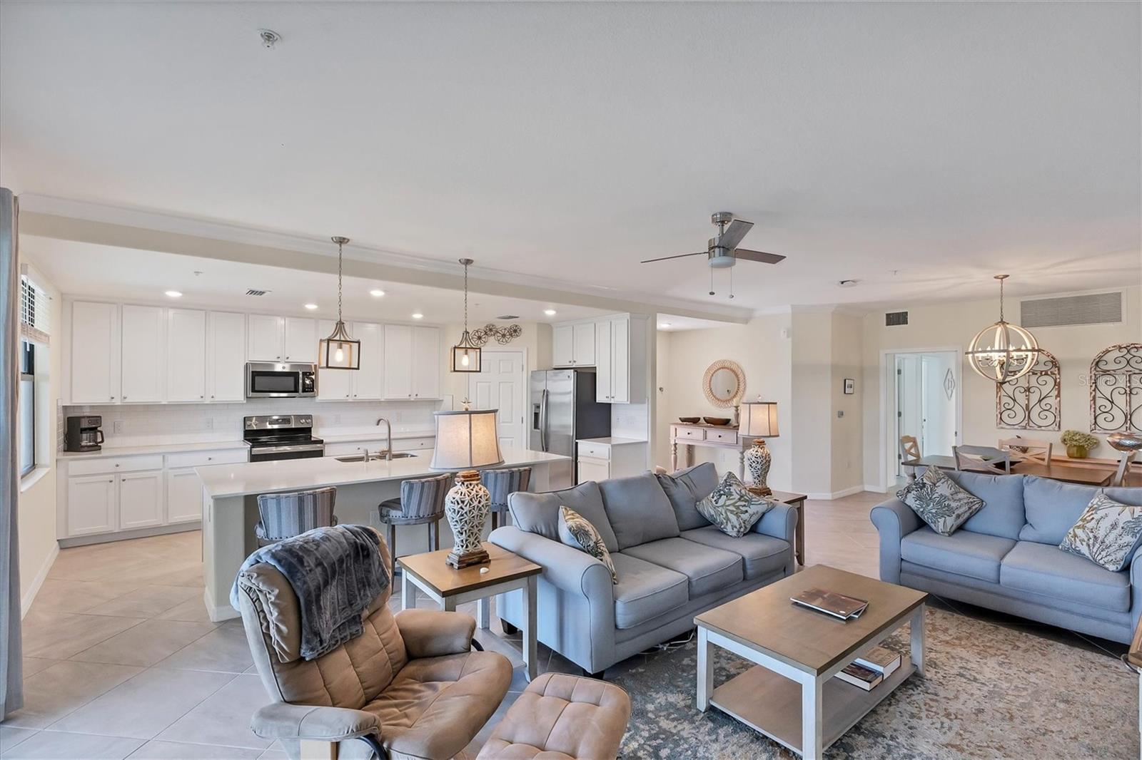 DON'T MISS OUT!! FIRST FLOOR 3BD/2BA/2CG with 2 GOLF MEMBERSHIPS INCLUDED. BEAUTIFUL TURNKEY FURNISHINGS NEGOTIABLE. GORGEOUS PANORAMIC VIEWS OF LAKE AND GOLF COURSE. Great room open floor plan looks straight out to your spacious lanai and STUNNING VIEWS!. 20 inch tile flooring set on the diagonal runs through main and wet areas with carpets in Bedrooms. Crown molding. Kitchen offers quartz counter tops, spacious island with sink, subway tile back splash, stainless steel appliances, and tons of 42 inch high cabinetry. Large master bedroom with en suite bathroom includes dual sinks, walk in shower, garden tub, and linen closet. Suite offers 2 walk in closets and gorgeous views out the window. Guest bedrooms located at other end of house for privacy. Guest bath and extra large storage closet. Separate laundry room. Tastefully decorated with Beach condo theme, condo is available TURNKEY FURNISHINGS NEGOTIABLE. MAKE YOUR APPOINTMENT TO SEE THIS CONDO TODAY BEFORE SOMEONE ELSE DOES! Sarasota National is a marvelous community with over 1300 acres designated for preservation, conservation, lakes, and open space with amazing views, Proclaimed as an Audubon International Certified Sanctuary, making it the most gorgeous and enjoyable golf course to play at in the area. Offering resort style amenities with huge resort style pool and spa,Tiki Bar to serve refreshing drinks and a bite of lunch, tennis courts, pickle ball, Bocce courts, coffee lounge/library/card room/meeting place, 7000 sq ft fitness facilities offering classes and day spa, and a 30,000 sq ft Clubhouse with dining and spectacular views. 18 Hole championship golf course surrounded by native wetlands and preserves provides an exhilarating and dramatic back drop for your golfing adventure. Minutes away from the new Wellen Park shopping area and Atlanta Braves stadium. Venice Beach and Venice Downtown are just a short drive. Your choice of restaurants and outdoor activities await. Come find YOUR Florida lifestyle TODAY and Live everyday like your on vacation!