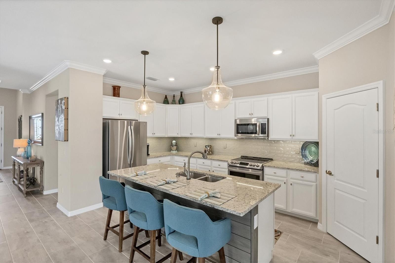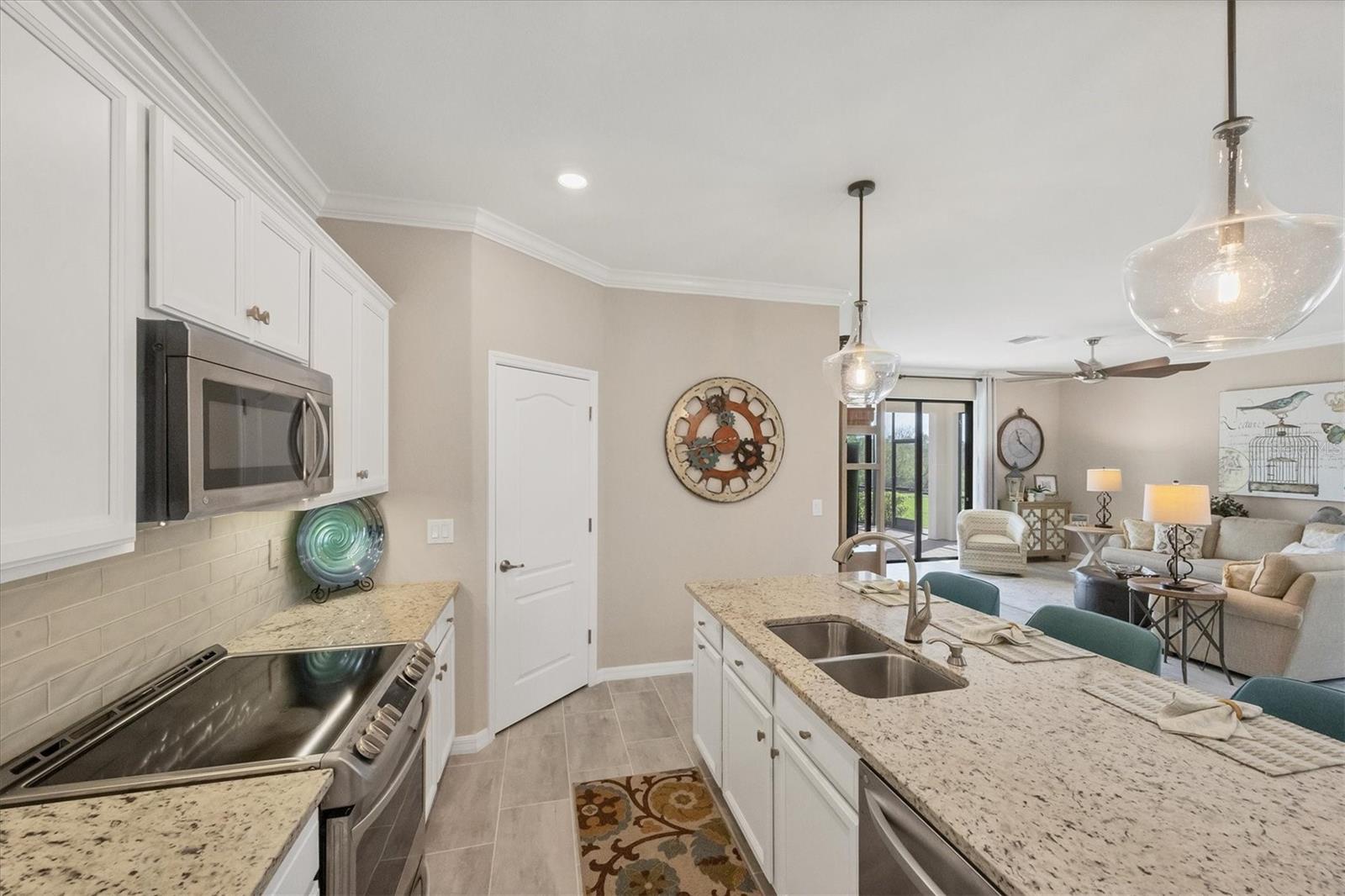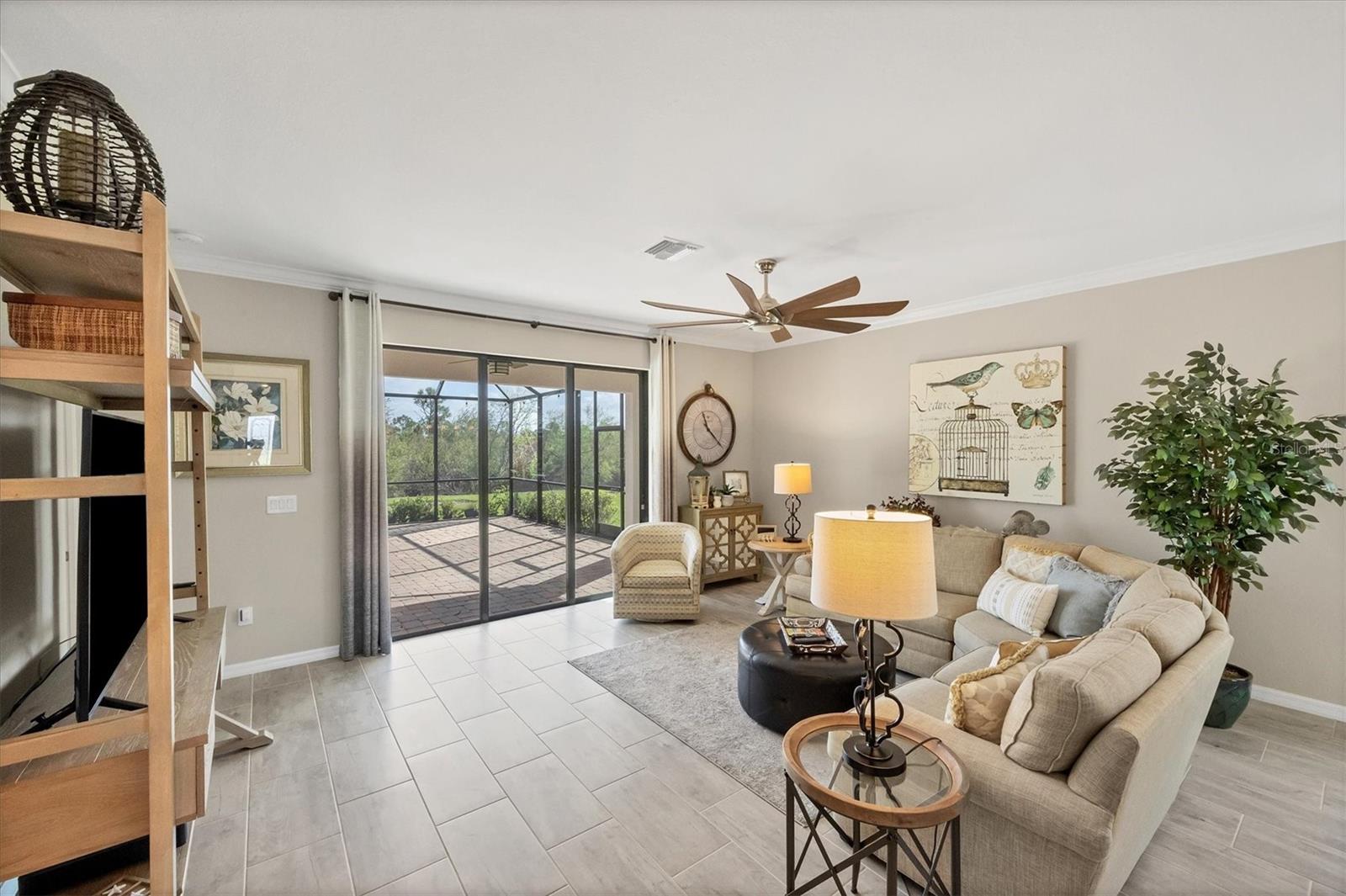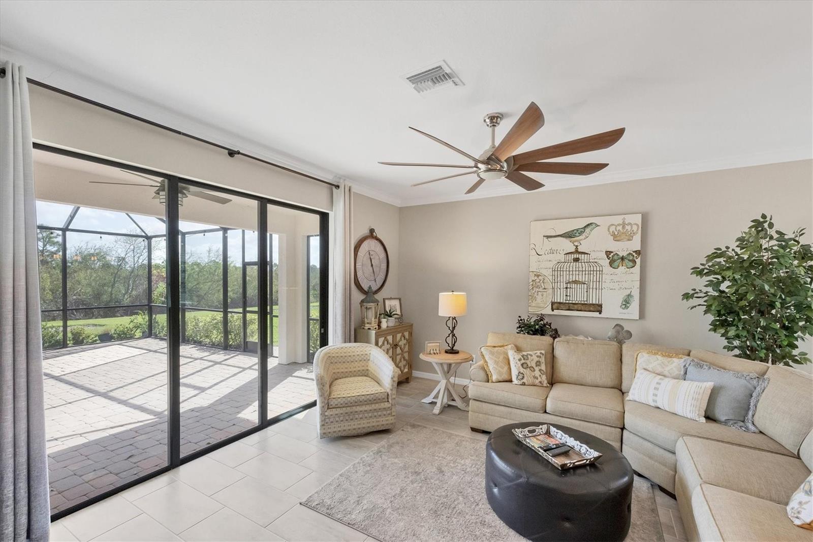 NOW AVAILABLE!! Popular TREVI floor plan has 3BD/3BA/Den/2CG. This GORGEOUS home is just what you have been looking for. Open floor plan with porcelain tile floors throughout the main living areas. Gourmet kitchen offers 42 in cabinets, stainless steel appliances, granite counter tops, subway tile backsplash, pendant lighting, and long island bar counter with seating. Spacious dining and living room area with custom decorated wall accents and crown molding. Step outside to your extended pavered lanai overlooking preserve area, no homes behind and none to be built. Lots of space and very private. Enjoy the birds and wildlife and the peaceful sounds of bird song and evening chorus. Large Master bedroom with en suite bathroom with dual sinks, walk in shower, and garden tub for soaking your cares away. Two walk in closets. Guest bedrooms at opposite end of the home for guest privacy. One for overnight guests also has en suite bath. Separate Den with French doors great for office space, den, or whatever your needs might be. Two car garage with sturdy hanging racks for additional storage space. This home is very conveniently located to the side entrance gate for easy entrance and exit from the community where the light is on 41 without driving through the whole neighborhood to leave or get home. Great location. READY TO SEE THE PROPERTY? Make your private appointment now or pull up the 3D Walk through tour at : https://my.matterport.com/show/?m=PRJ8dL2ZkTy. Sarasota National is Venice's Premier community with over 1300 acres designated for preservation, conservation, lakes, and open space with amazing views, Proclaimed as an Audubon International Certified Sanctuary, making it the most gorgeous and enjoyable golf course to play at in the area. Offering resort style amenities with huge resort style pool and spa,Tiki Bar to serve refreshing drinks and a bite of lunch, tennis courts, pickle ball, Bocce courts, coffee lounge/library/card room/meeting place, 7000 sq ft fitness facilities offering classes and day spa, and a 30,000 sq ft Clubhouse with dining and spectacular views. 18 Hole championship golf course surrounded by native wetlands and preserves provides an exhilarating and dramatic back drop for your golfing adventure. Minutes away from the new Wellen Park shopping area and Atlanta Braves stadium. Venice Beach and Venice Downtown are just a short drive. Your choice of restaurants and outdoor activities await. Come find YOUR Florida lifestyle TODAY and Live everyday like your on vacation!