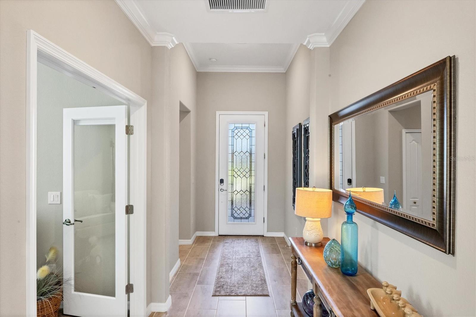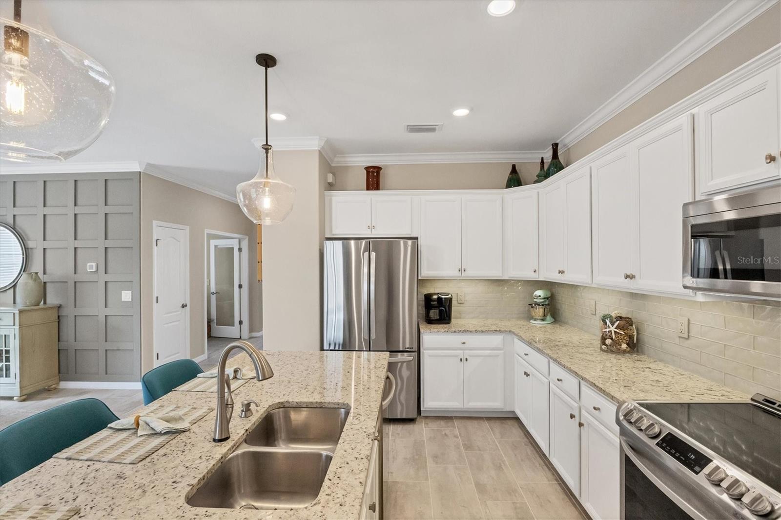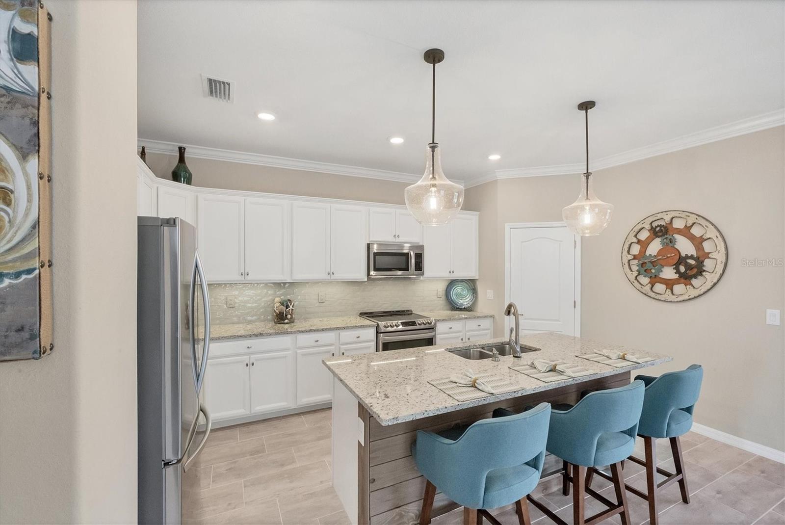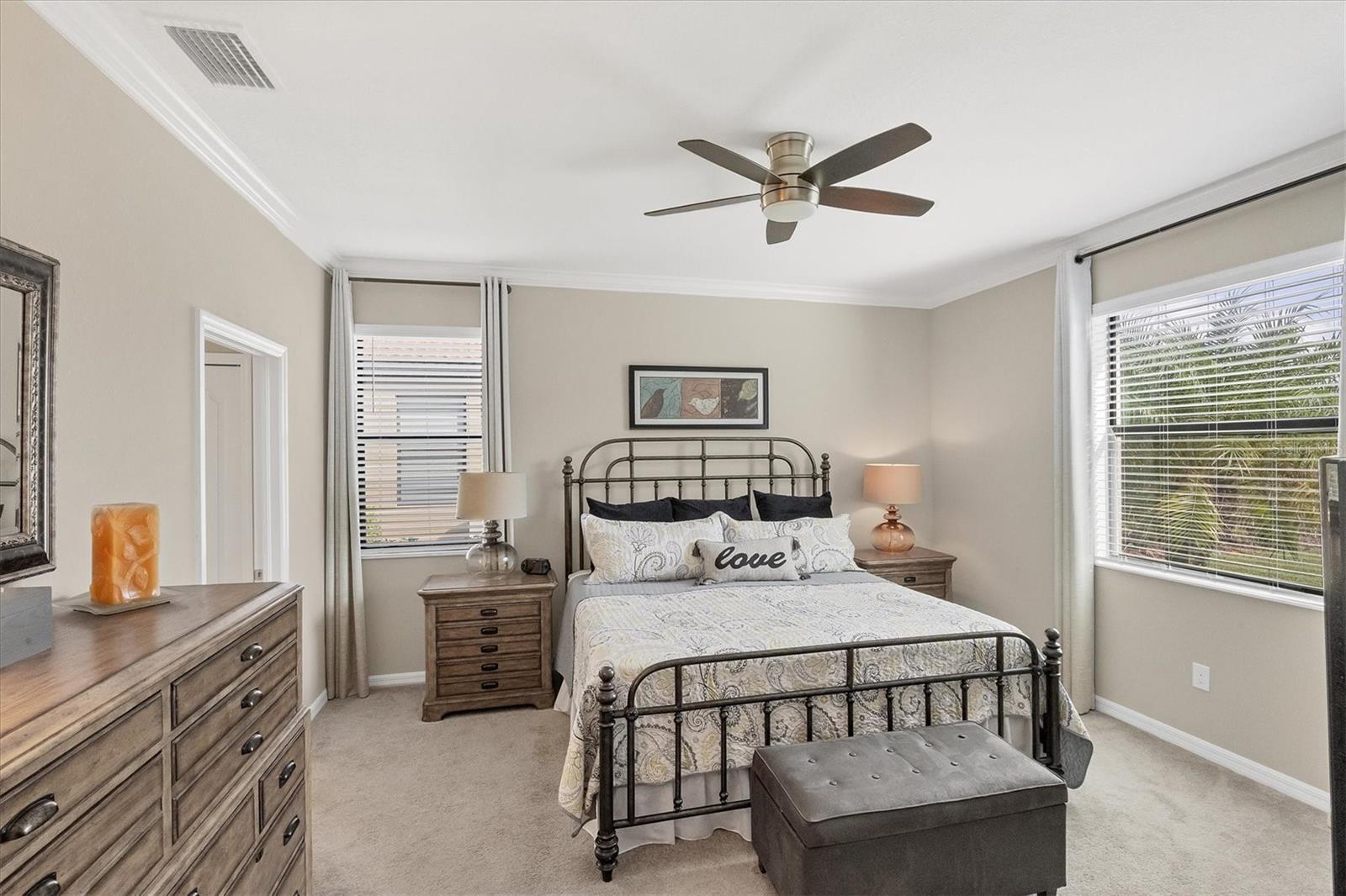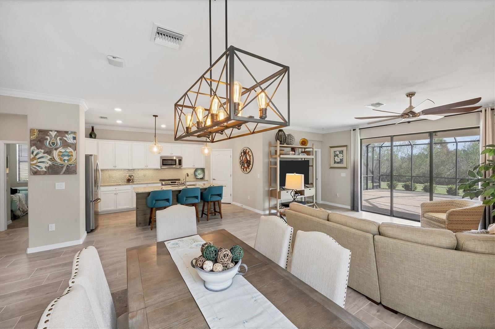 NOW AVAILABLE!! Popular TREVI floor plan has 3BD/3BA/Den/2CG. This GORGEOUS home is just what you have been looking for. Open floor plan with porcelain tile floors throughout the main living areas. Gourmet kitchen offers 42 in cabinets, stainless steel appliances, granite counter tops, subway tile backsplash, pendant lighting, and long island bar counter with seating. Spacious dining and living room area with custom decorated wall accents and crown molding. Step outside to your extended pavered lanai overlooking preserve area, no homes behind and none to be built. Lots of space and very private. Enjoy the birds and wildlife and the peaceful sounds of bird song and evening chorus. Large Master bedroom with en suite bathroom with dual sinks, walk in shower, and garden tub for soaking your cares away. Two walk in closets. Guest bedrooms at opposite end of the home for guest privacy. One for overnight guests also has en suite bath. Separate Den with French doors great for office space, den, or whatever your needs might be. Two car garage with sturdy hanging racks for additional storage space. This home is very conveniently located to the side entrance gate for easy entrance and exit from the community where the light is on 41 without driving through the whole neighborhood to leave or get home. Great location. READY TO SEE THE PROPERTY? Make your private appointment now or pull up the 3D Walk through tour at : https://my.matterport.com/show/?m=PRJ8dL2ZkTy. Sarasota National is Venice's Premier community with over 1300 acres designated for preservation, conservation, lakes, and open space with amazing views, Proclaimed as an Audubon International Certified Sanctuary, making it the most gorgeous and enjoyable golf course to play at in the area. Offering resort style amenities with huge resort style pool and spa,Tiki Bar to serve refreshing drinks and a bite of lunch, tennis courts, pickle ball, Bocce courts, coffee lounge/library/card room/meeting place, 7000 sq ft fitness facilities offering classes and day spa, and a 30,000 sq ft Clubhouse with dining and spectacular views. 18 Hole championship golf course surrounded by native wetlands and preserves provides an exhilarating and dramatic back drop for your golfing adventure. Minutes away from the new Wellen Park shopping area and Atlanta Braves stadium. Venice Beach and Venice Downtown are just a short drive. Your choice of restaurants and outdoor activities await. Come find YOUR Florida lifestyle TODAY and Live everyday like your on vacation!