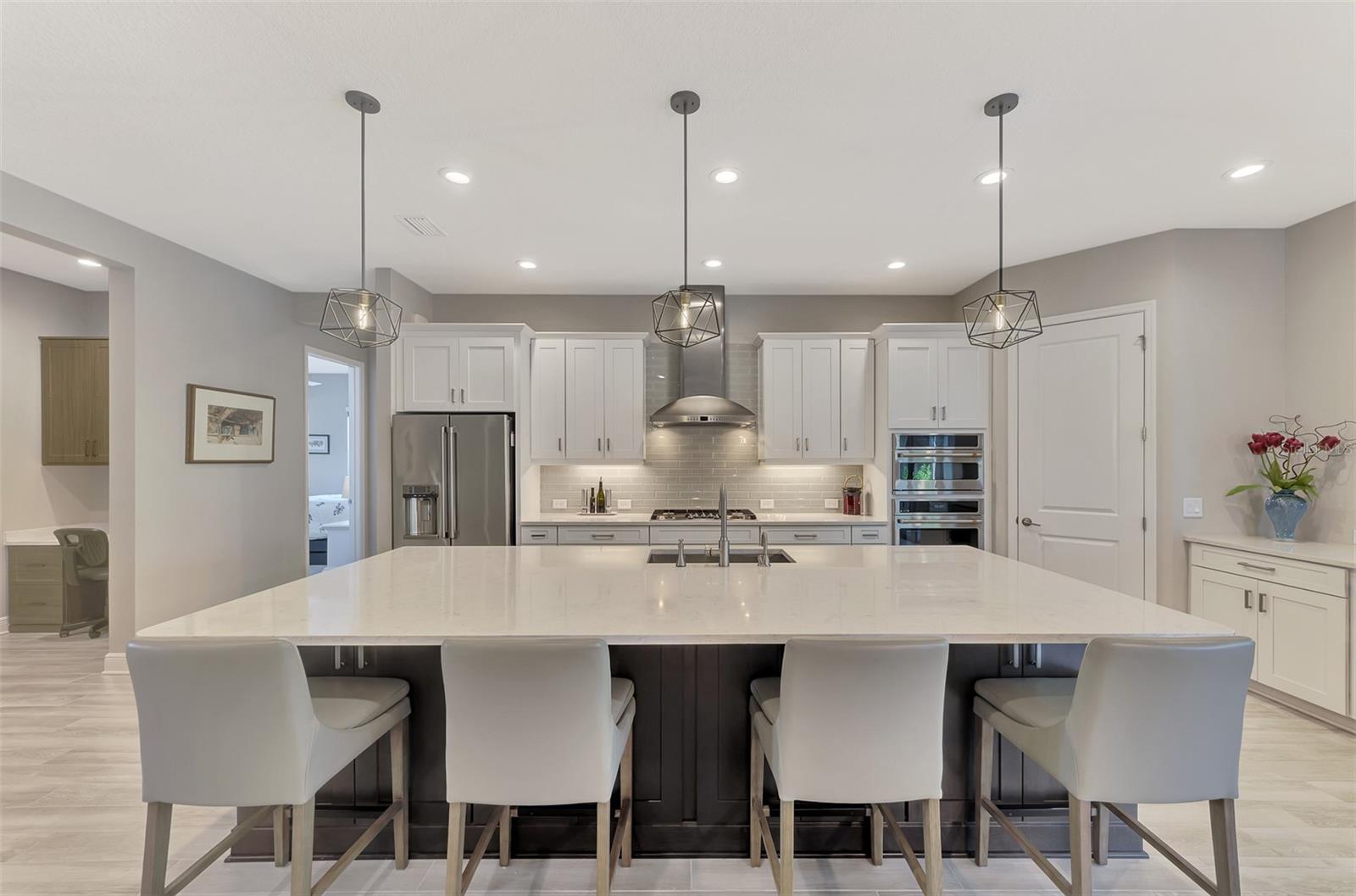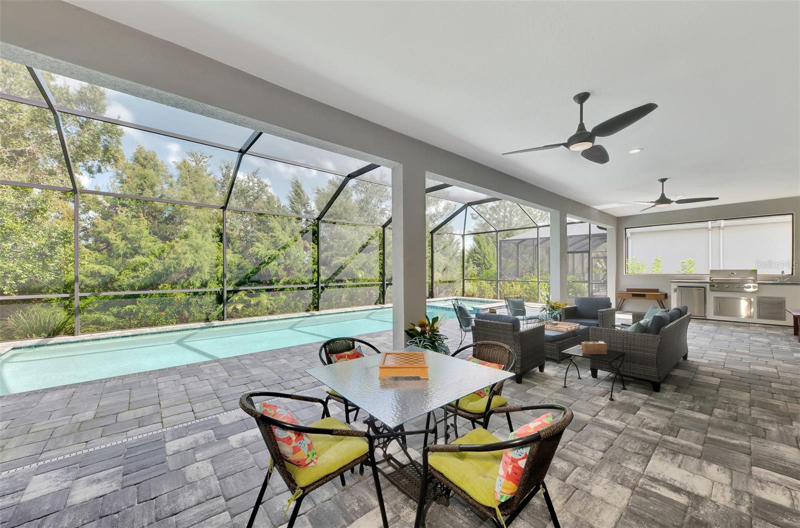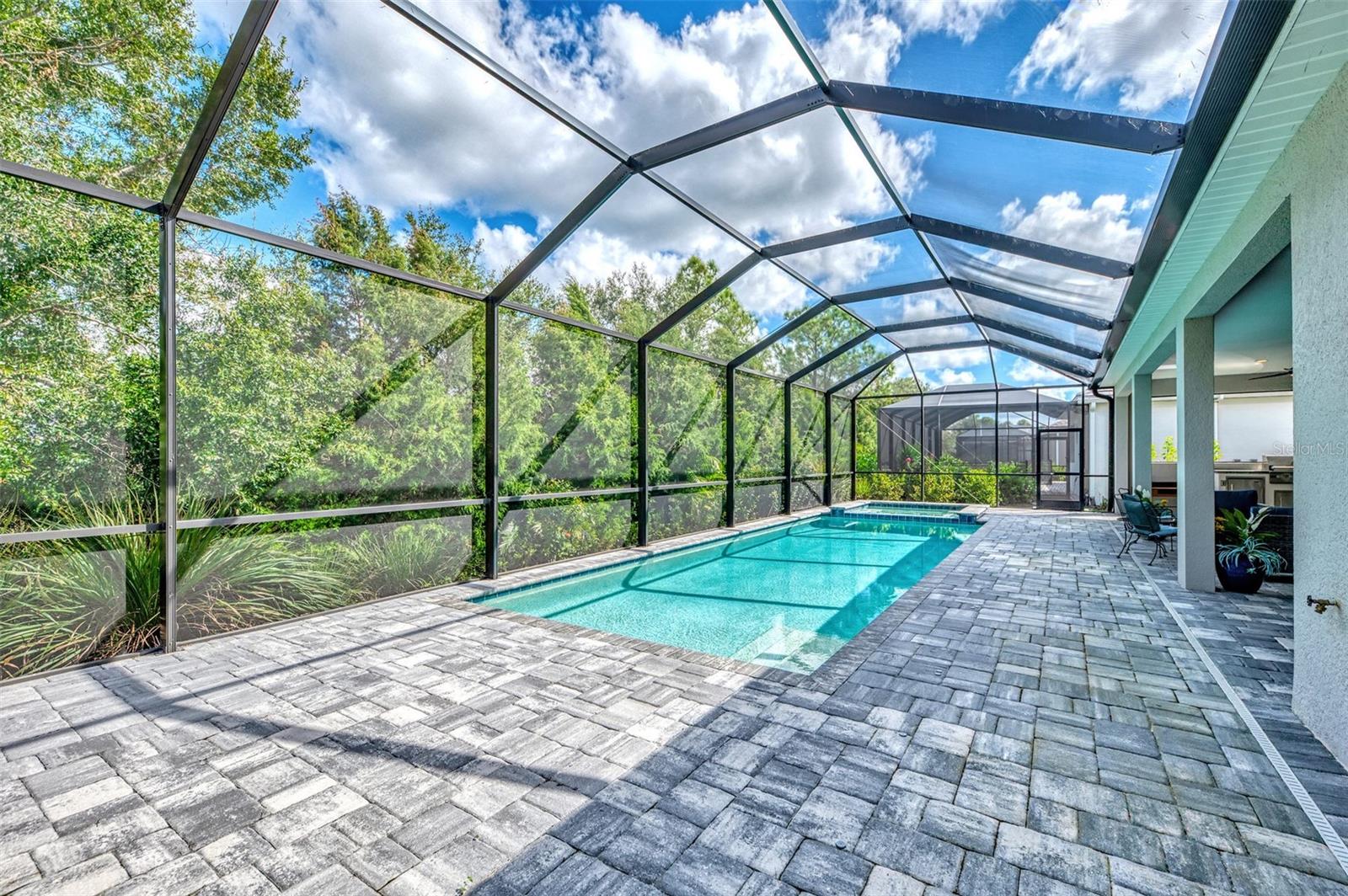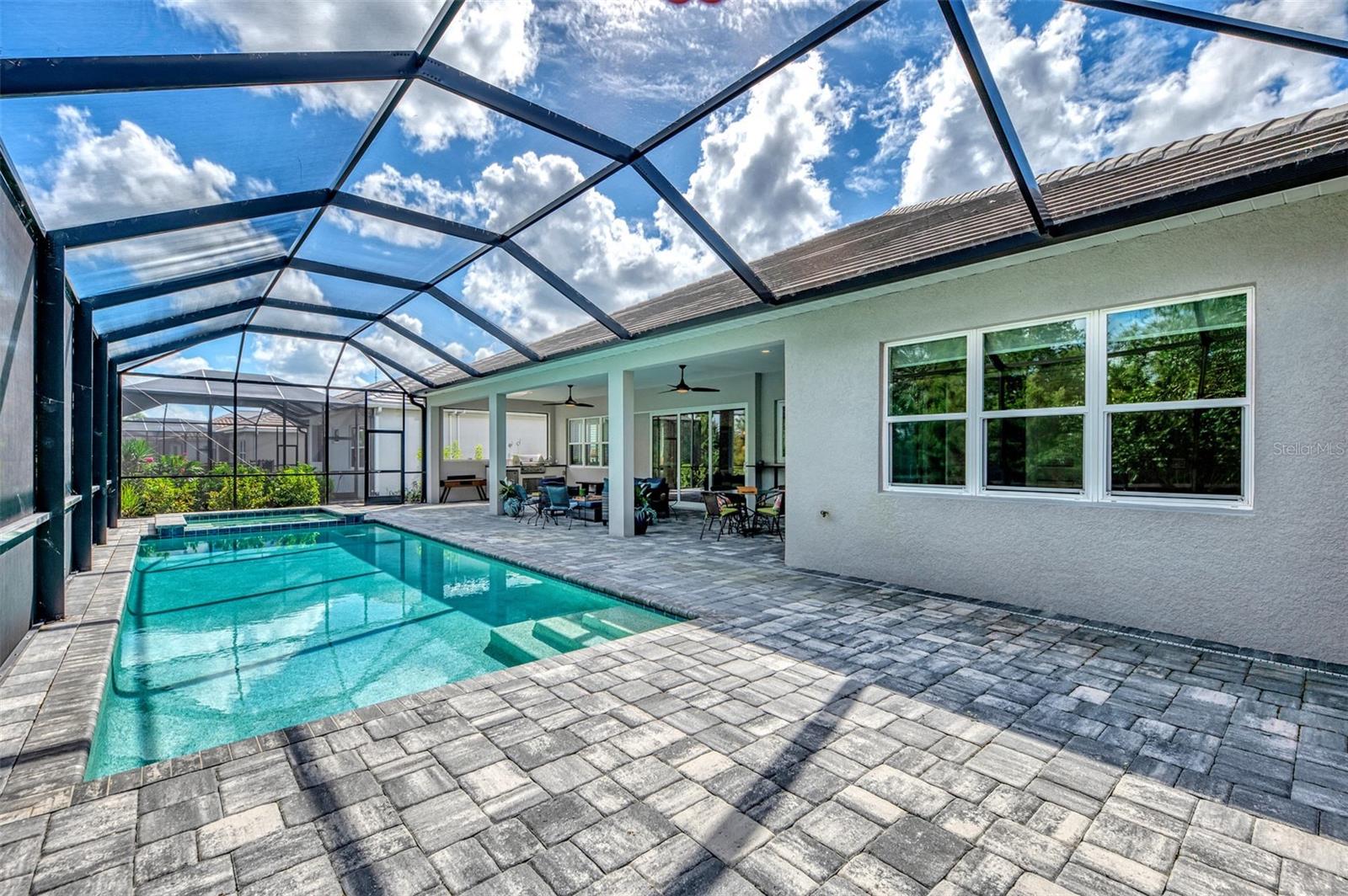 Welcome home to resort-style living in the highly desirable community of Grand Palm! Why wait to build when you can purchase this beautiful Savannah II home built in 2022 with all the upgrades and lighting already included! This Neal Communities’ home features HURRICANE IMPACT WINDOWS throughout with a heated pool and spa facing a preserve! Large open concept living space offers ample room for everyone. Three large bedrooms, three baths with a study/office, tech space and a large flex/bonus room. The Savannah II model features an elegant chef’s kitchen with a large island with quartz countertops, natural gas cooktop, tile backsplash, upgraded stainless steel appliance package with stainless hood and double oven. Eight-foot doors, walk-in pantry, crown molding, upgraded fans and lighting with plenty of storage space. Second bedroom offers privacy with an ensuite and walk-in closet. Enjoy tile throughout the main living areas and Master BDRM and luscious carpet in the secondary bedrooms. Spacious owner’s suite boasts a beautiful pool view and is equipped with dual walk-in closets. Dual vanities, custom tile, walk-in shower, large soaking tub and quartz countertops throughout. Enjoy additional living space in the flex/bonus room that opens up to the large lanai. This home is complete with a three-car garage and epoxy floors. For those quiet evenings on the lanai, enjoy your outdoor kitchen with grill, sink, counter and refrigerator then enjoy swimming in the beautiful pool or relaxing in the spa! Grand Palm is an amenity rich community with a surplus of activities to keep you busy day in and day out. A full-time activity coordinator has a monthly events calendar, 3 community pools, tennis, pickleball, full fitness center with classes, and 28+ miles of walking and biking trails are available for your pleasure. Grand Palm is located close to numerous beaches, downtown Venice, Wellen Park, and major airports. Living the life you’ve earned can be more than just a dream and this property offers a combination of luxury, comfort, and stunning surroundings, making it a truly special place to call home.