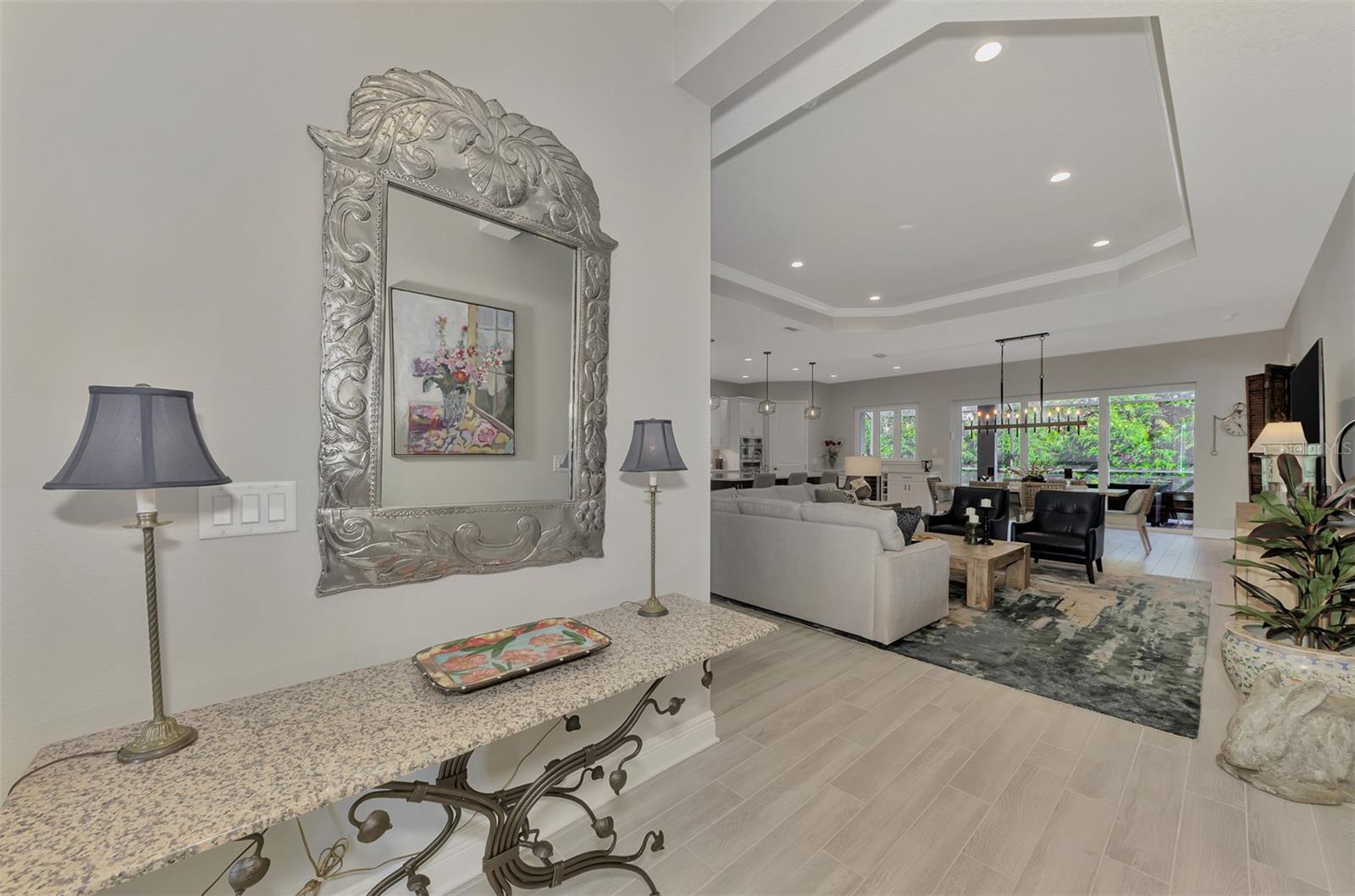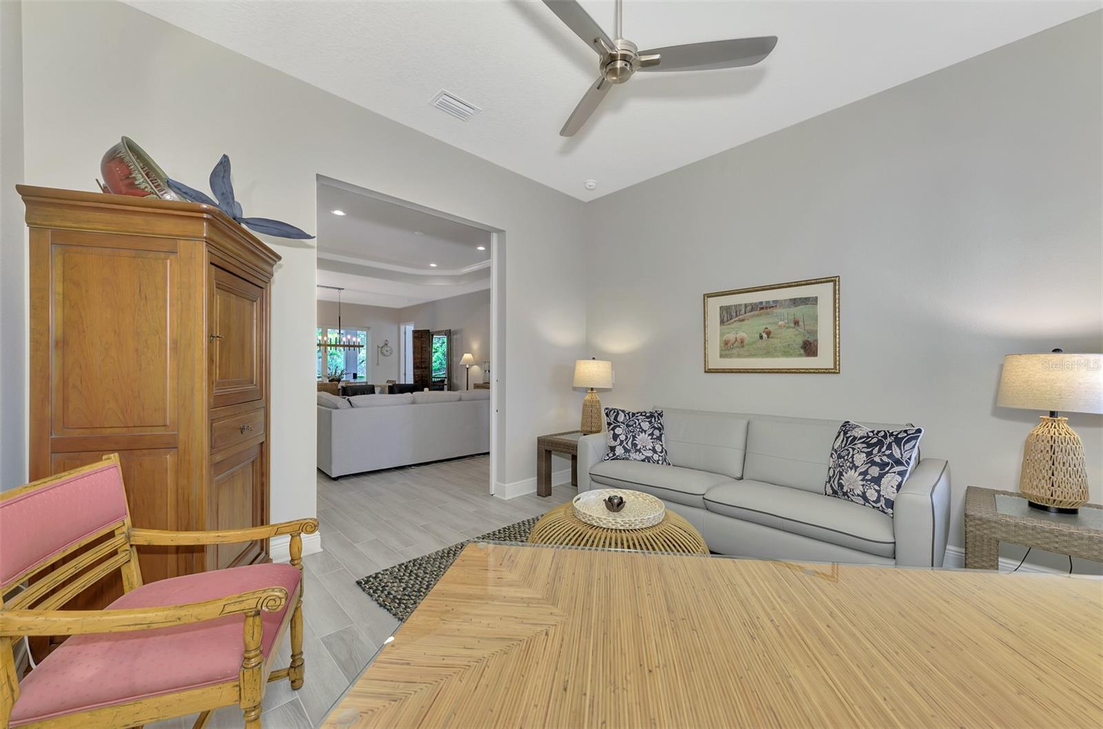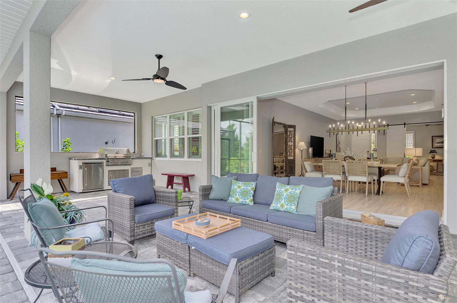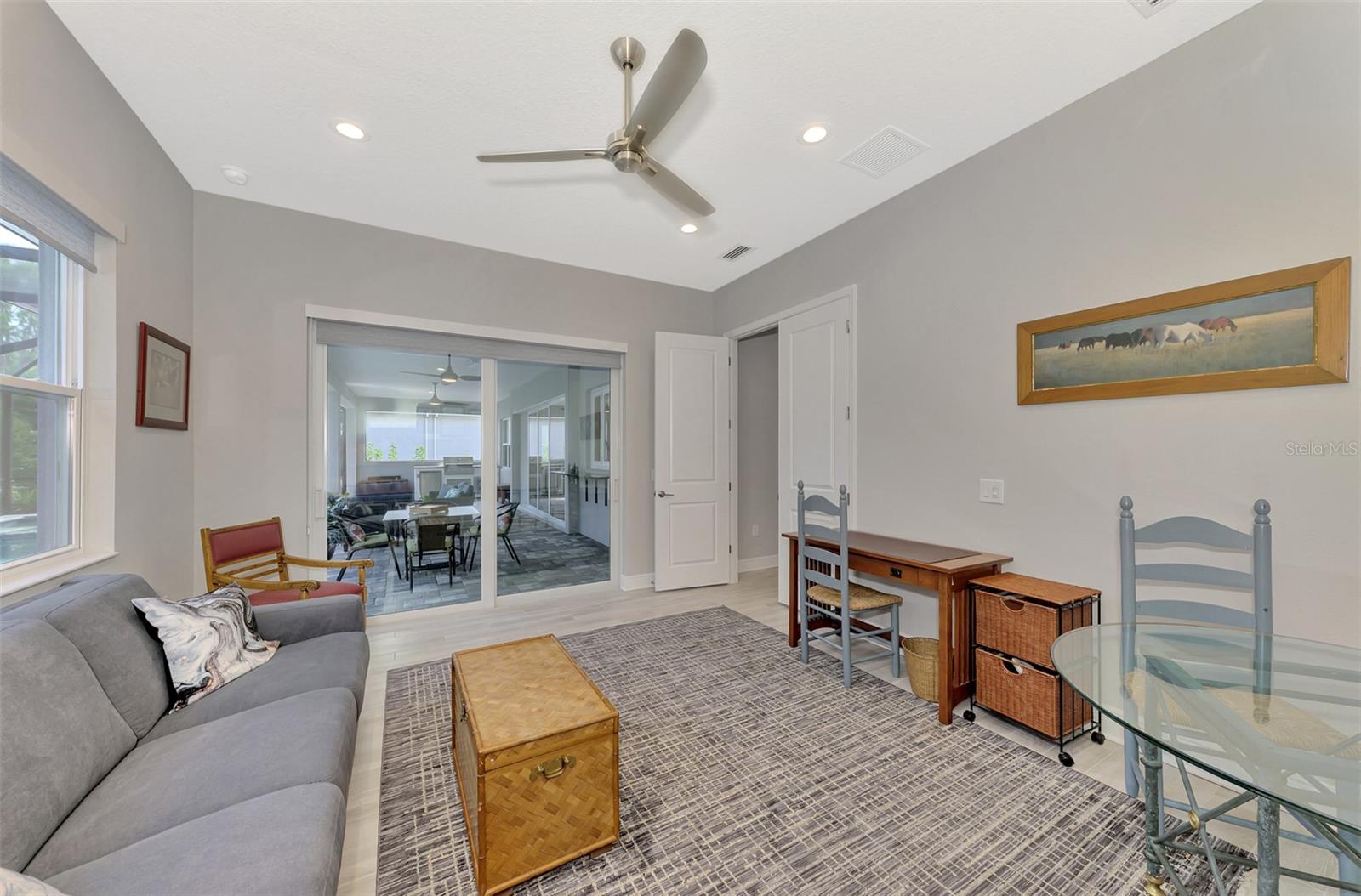 Welcome home to resort-style living in the highly desirable community of Grand Palm! Why wait to build when you can purchase this beautiful Savannah II home built in 2022 with all the upgrades and lighting already included! This Neal Communities’ home features HURRICANE IMPACT WINDOWS throughout with a heated pool and spa facing a preserve! Large open concept living space offers ample room for everyone. Three large bedrooms, three baths with a study/office, tech space and a large flex/bonus room. The Savannah II model features an elegant chef’s kitchen with a large island with quartz countertops, natural gas cooktop, tile backsplash, upgraded stainless steel appliance package with stainless hood and double oven. Eight-foot doors, walk-in pantry, crown molding, upgraded fans and lighting with plenty of storage space. Second bedroom offers privacy with an ensuite and walk-in closet. Enjoy tile throughout the main living areas and Master BDRM and luscious carpet in the secondary bedrooms. Spacious owner’s suite boasts a beautiful pool view and is equipped with dual walk-in closets. Dual vanities, custom tile, walk-in shower, large soaking tub and quartz countertops throughout. Enjoy additional living space in the flex/bonus room that opens up to the large lanai. This home is complete with a three-car garage and epoxy floors. For those quiet evenings on the lanai, enjoy your outdoor kitchen with grill, sink, counter and refrigerator then enjoy swimming in the beautiful pool or relaxing in the spa! Grand Palm is an amenity rich community with a surplus of activities to keep you busy day in and day out. A full-time activity coordinator has a monthly events calendar, 3 community pools, tennis, pickleball, full fitness center with classes, and 28+ miles of walking and biking trails are available for your pleasure. Grand Palm is located close to numerous beaches, downtown Venice, Wellen Park, and major airports. Living the life you’ve earned can be more than just a dream and this property offers a combination of luxury, comfort, and stunning surroundings, making it a truly special place to call home.