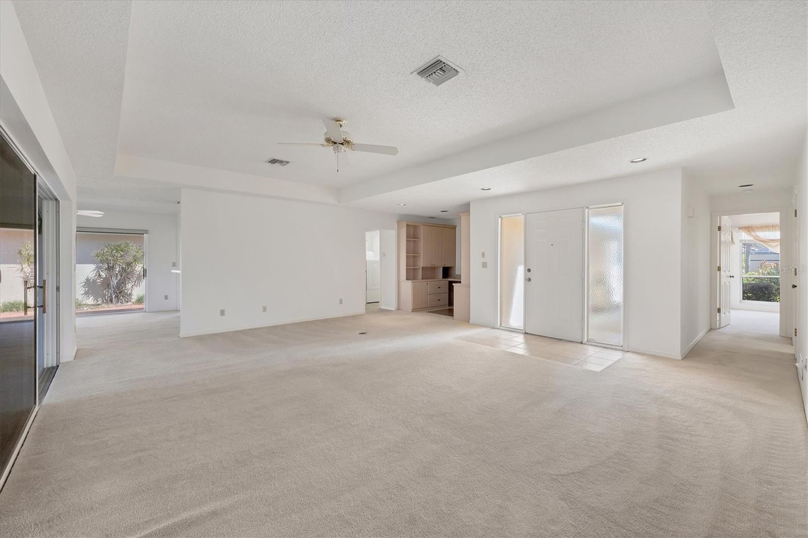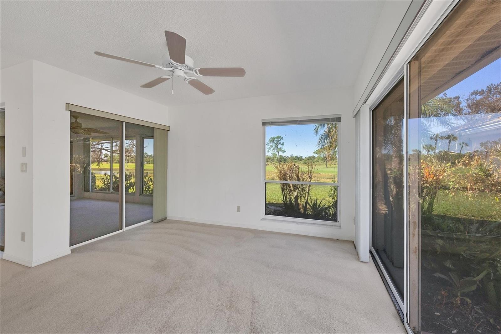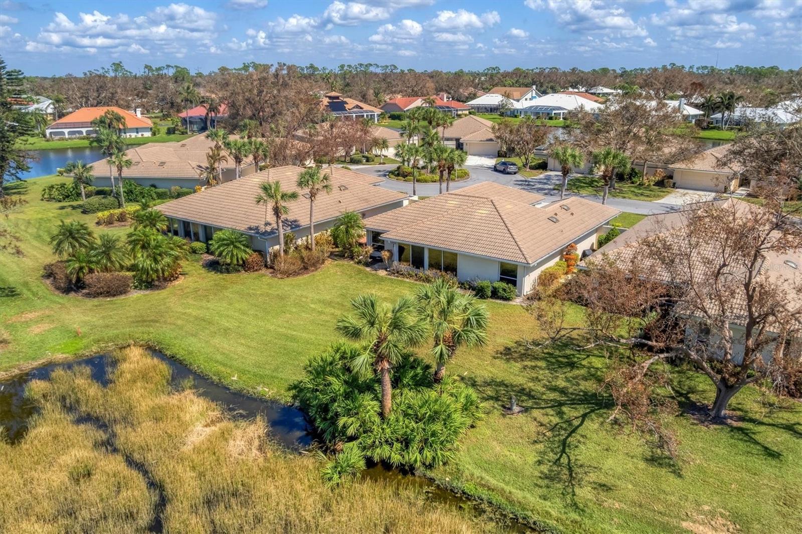 Spectacular Florida sunsets from this maintenance free patio home. Opportunity Awaits! Discover the potential of this spacious, maintenance-free patio home, perfectly positioned within a gated enclave of The Plantation. Enjoy the benefits of condo ownership, which includes comprehensive maintenance-free living—lawn and building maintenance, insurance on the building, and access to the community pool. This gem features two generous bedrooms, a separate dining room adjacent to the kitchen, and a bright Florida room that opens up to stunning views of the lake and golf course. An added bonus is the built-in home office. Relax in your private courtyard patio, ideal for al fresco dining and unwinding. With an attached two-car garage and access to the clubhouse, you’ll have plenty of space to socialize, exercise, and enjoy your surroundings. Best of all, there are no CDD fees! Optional tiered memberships to the private country club offer even more recreational opportunities. Located just minutes from downtown Wellen Park, downtown Venice, and the beautiful beaches, this home is a rare find! Bring your vision and make this lakefront retreat your own.
