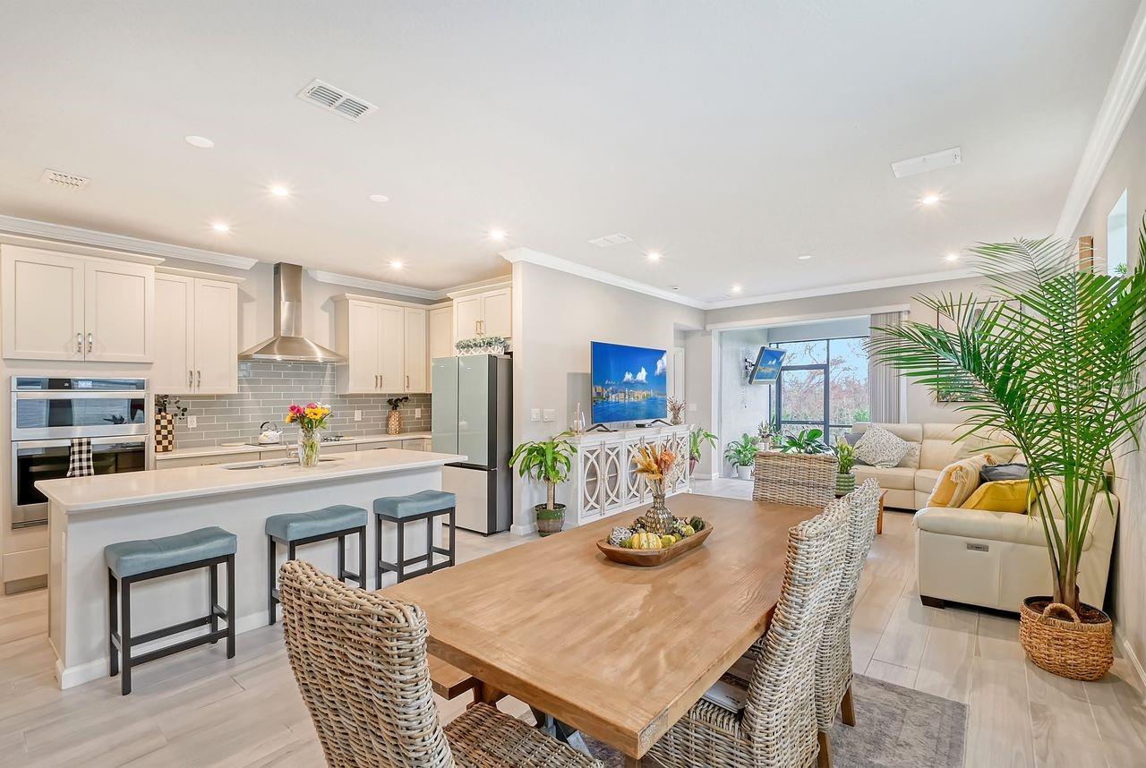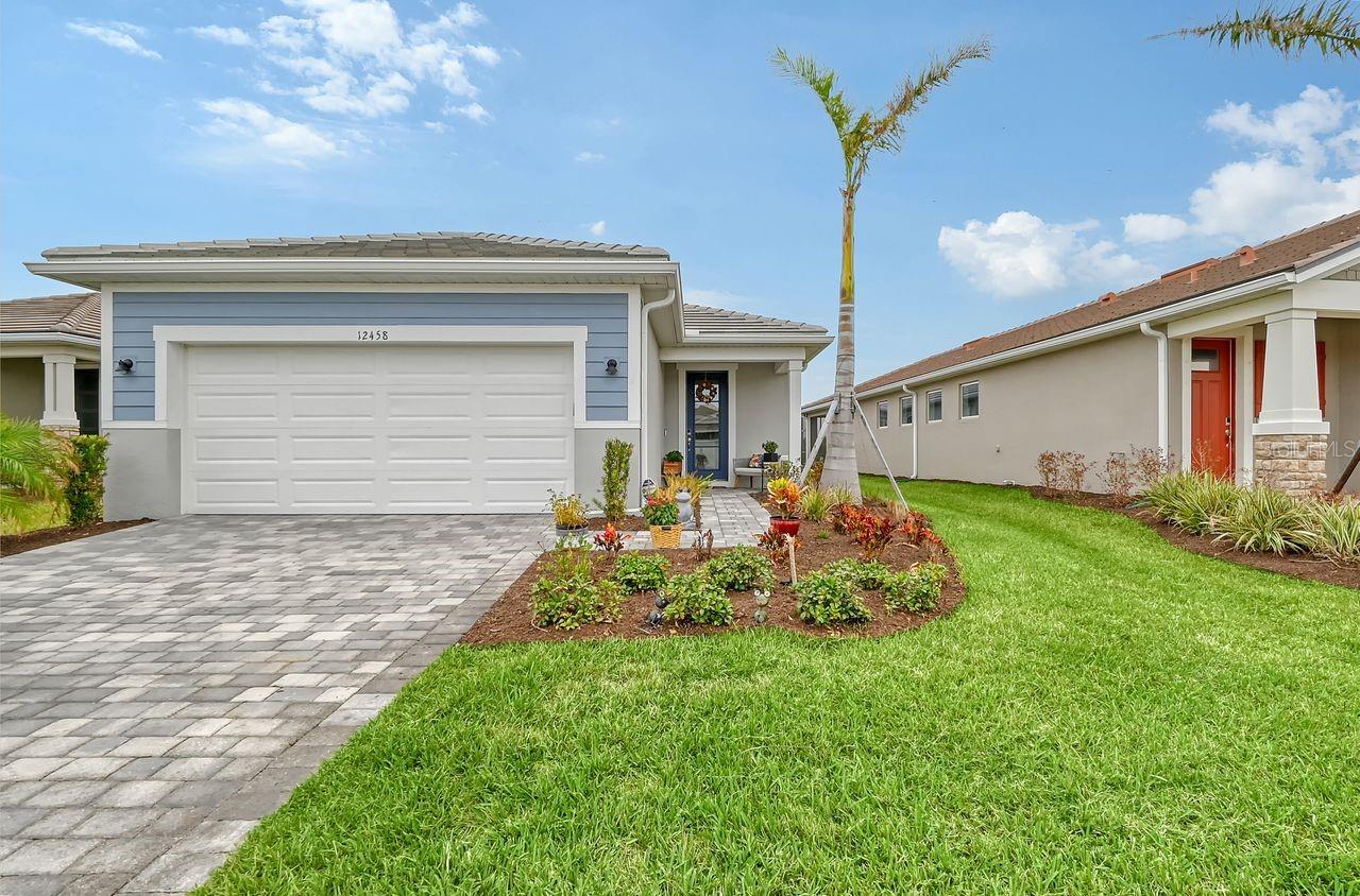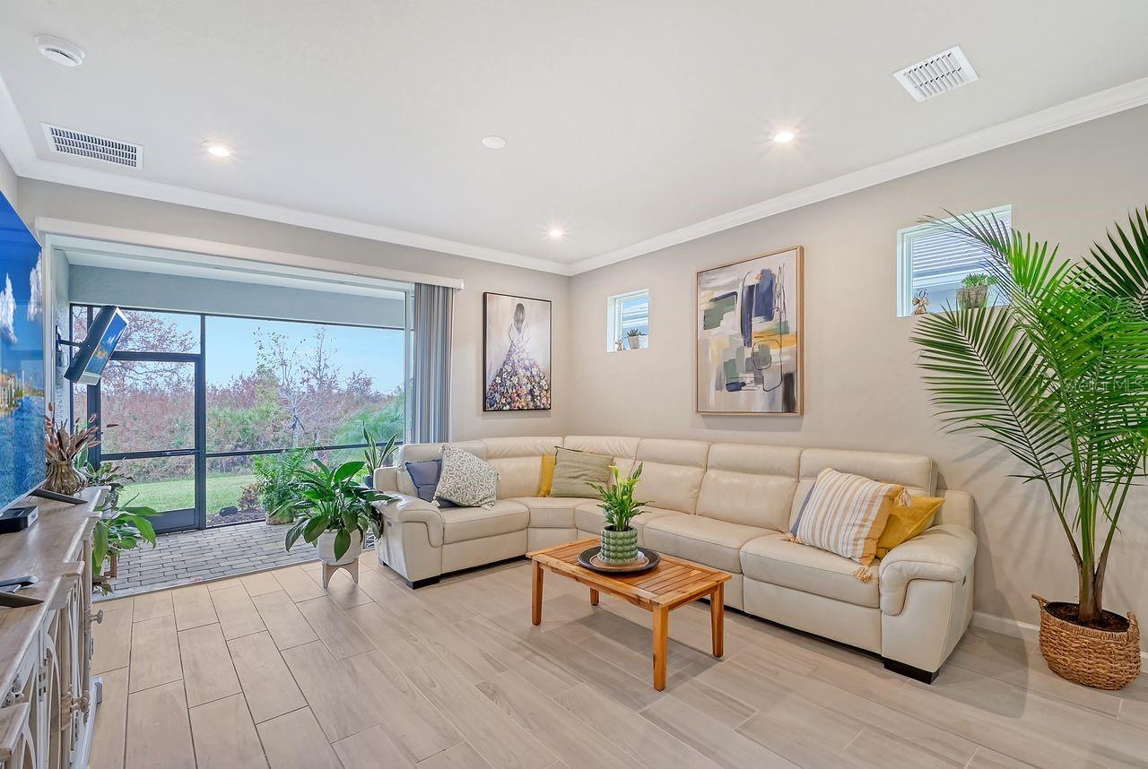 Set on a tranquil CUL-DE-SAC within Wellen Park’s Sunstone community, this 2-bedroom, 2-bathroom home with a versatile DEN offers a refined living experience surrounded by both comfort and style. NOT IN A FLOOD ZONE! From the moment you step inside, the light, open spaces, and UPSCALE FINISHES invite you to envision your life unfolding here, in a setting designed to uplift. At the heart of this home lies a kitchen designed to inspire gatherings and culinary creativity, featuring expansive quartz countertops, a large island, custom backsplash, and 42” cabinetry offering ample storage. PREMIUM APPLIANCES, including a built-in oven and pantry, make this kitchen as functional as it is beautifully appointed. The OPEN-CONCEPT layout, high ceilings, and generous windows bring in abundant natural light, creating an inviting atmosphere perfect for entertaining and everyday moments. The primary suite serves as a private haven, with an ELEGANT TRAY CEILING, crown molding, and a spacious WALK-IN-CLOSET. The luxurious ensuite bath transforms daily routines with a glass-enclosed walk-in shower, SOAKING TUB, and dual vanities, offering a peaceful retreat at any time of day. An additional den with French doors adds versatility, ideal as a home office, library, or quiet nook for relaxation. Outside, enjoy the peace of the COVERED AND SCREENED LANAI, perfect for morning coffee or evening relaxation. Within Sunstone, residents enjoy resort-style amenities that include a sparkling pool, a well-equipped fitness center, a welcoming clubhouse, and pickleball courts, ensuring that every day has the potential for enjoyment and leisure. Wellen Park’s vibrant community brings everything from lively farmers markets and local events to the Braves stadium just minutes away. With the Gulf Coast BEACHES NEARBY for quick getaways, and beautiful parks for outdoor excursions, life here is enhanced by a unique coastal lifestyle. The home’s plank tile flooring and thoughtfully designed storage ensure that function meets elegance in every detail. This home is more than a residence; it’s an invitation to a life of comfort, sophistication, and connection within one of Florida’s most desirable communities.