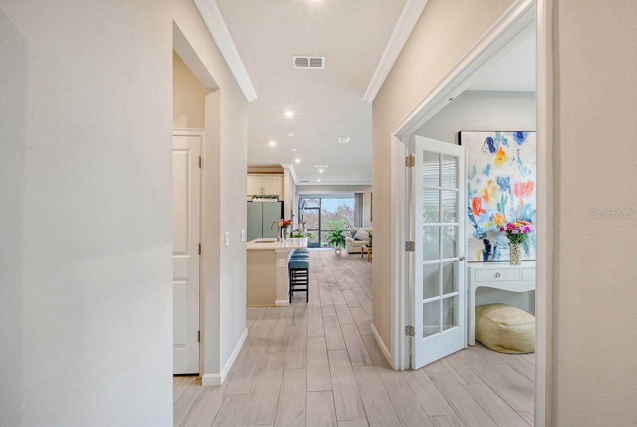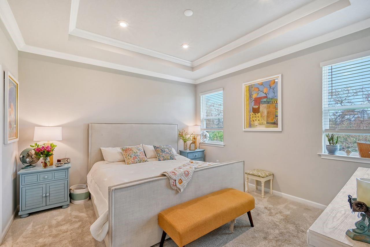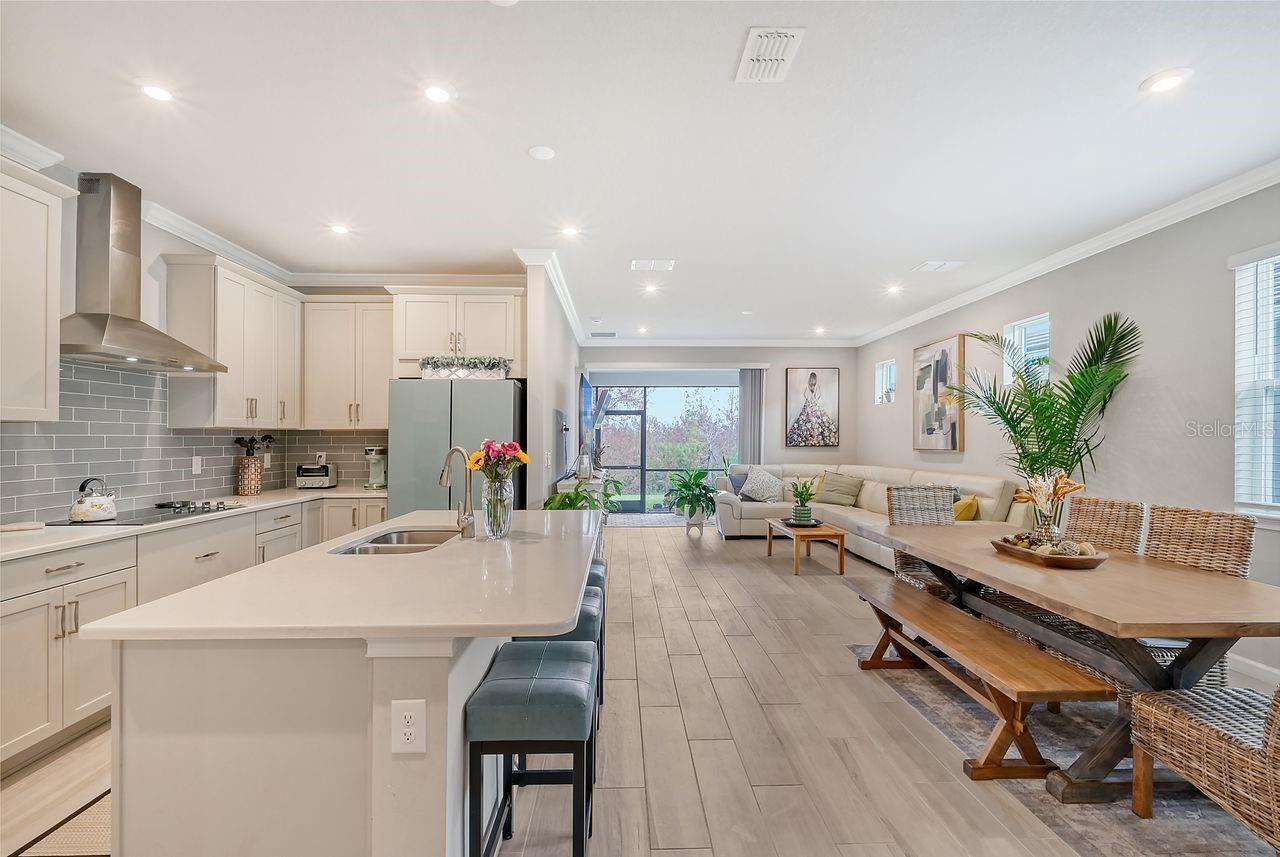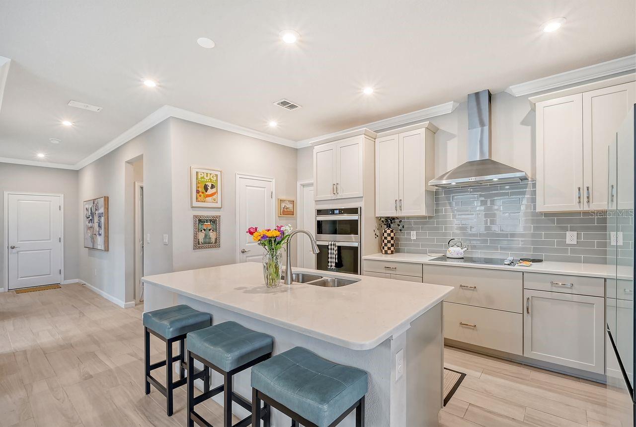 Set on a tranquil CUL-DE-SAC within Wellen Park’s Sunstone community, this 2-bedroom, 2-bathroom home with a versatile DEN offers a refined living experience surrounded by both comfort and style. NOT IN A FLOOD ZONE! From the moment you step inside, the light, open spaces, and UPSCALE FINISHES invite you to envision your life unfolding here, in a setting designed to uplift. At the heart of this home lies a kitchen designed to inspire gatherings and culinary creativity, featuring expansive quartz countertops, a large island, custom backsplash, and 42” cabinetry offering ample storage. PREMIUM APPLIANCES, including a built-in oven and pantry, make this kitchen as functional as it is beautifully appointed. The OPEN-CONCEPT layout, high ceilings, and generous windows bring in abundant natural light, creating an inviting atmosphere perfect for entertaining and everyday moments. The primary suite serves as a private haven, with an ELEGANT TRAY CEILING, crown molding, and a spacious WALK-IN-CLOSET. The luxurious ensuite bath transforms daily routines with a glass-enclosed walk-in shower, SOAKING TUB, and dual vanities, offering a peaceful retreat at any time of day. An additional den with French doors adds versatility, ideal as a home office, library, or quiet nook for relaxation. Outside, enjoy the peace of the COVERED AND SCREENED LANAI, perfect for morning coffee or evening relaxation. Within Sunstone, residents enjoy resort-style amenities that include a sparkling pool, a well-equipped fitness center, a welcoming clubhouse, and pickleball courts, ensuring that every day has the potential for enjoyment and leisure. Wellen Park’s vibrant community brings everything from lively farmers markets and local events to the Braves stadium just minutes away. With the Gulf Coast BEACHES NEARBY for quick getaways, and beautiful parks for outdoor excursions, life here is enhanced by a unique coastal lifestyle. The home’s plank tile flooring and thoughtfully designed storage ensure that function meets elegance in every detail. This home is more than a residence; it’s an invitation to a life of comfort, sophistication, and connection within one of Florida’s most desirable communities.