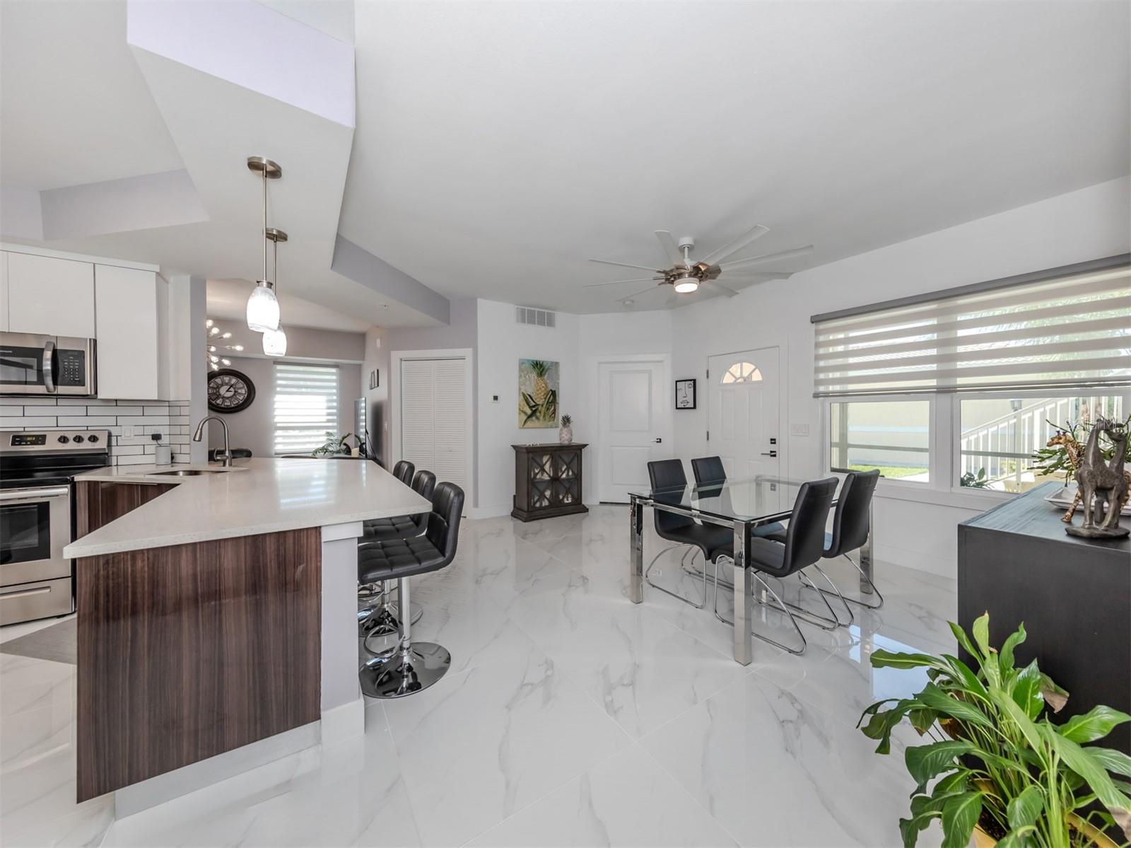 Modern, chic, first floor condo that is 3 years young and ready for you. Feel the luxury from the moment your walk through the door. The primary bedroom features a large walk in closet, and en suite bathroom. The spacious family room open to the dining and kitchen space making this a great entertaining area. A split floor plan gives space and privacy to the guest bedroom and bathroom. Neutral finishes throughout that work with any decor. Perfect for all of your storage needs is the detached garage with automatic opener. This home has it all. A community pool and fitness room are featured in this neighborhood that is ideally located close to it all. Nearby are beautiful beaches, shopping, restaurants, golf and medical facilities. Don't miss an opportunity to call Venice home.