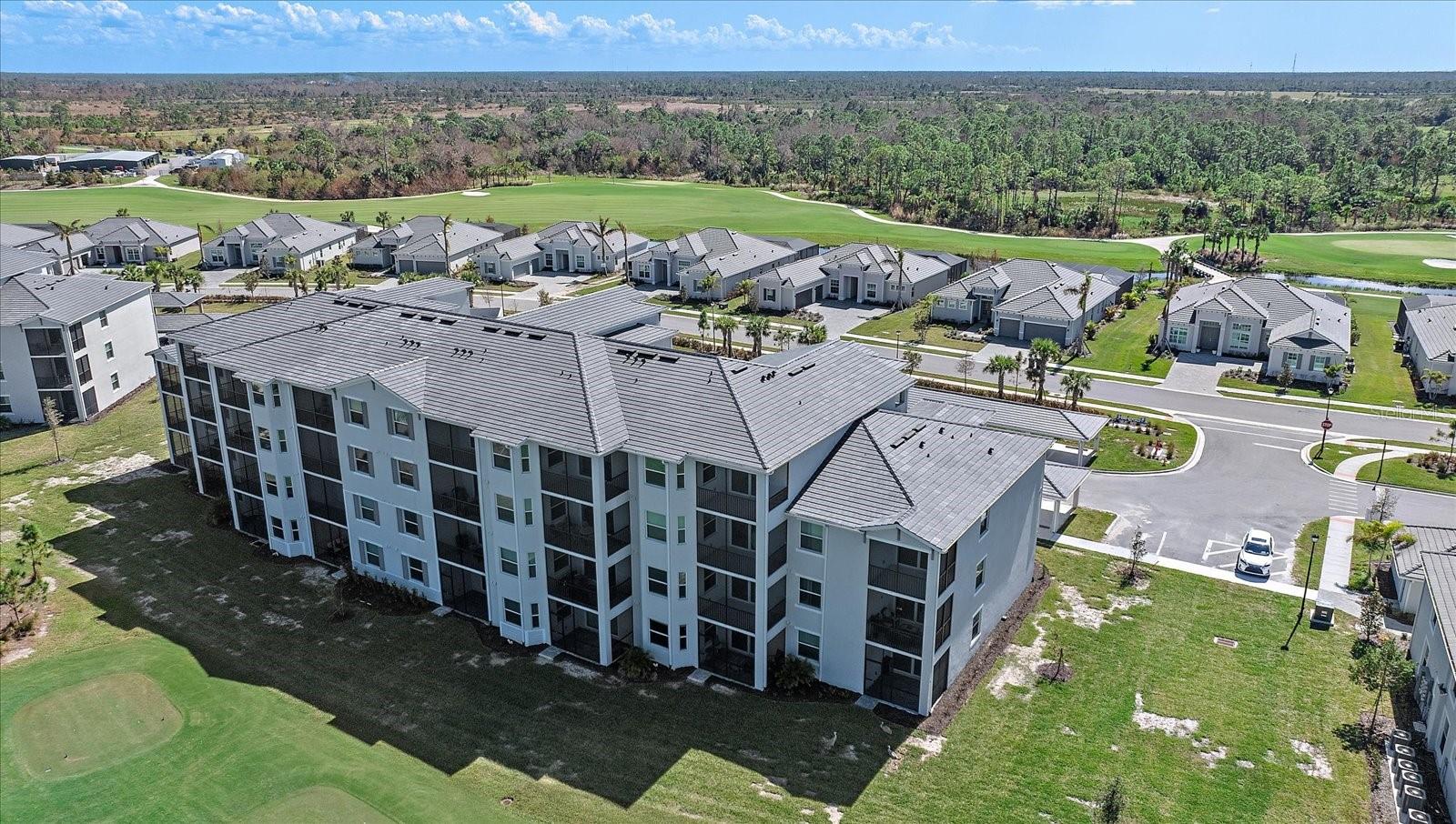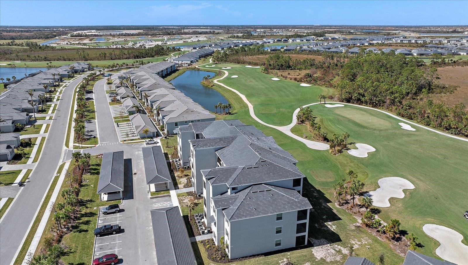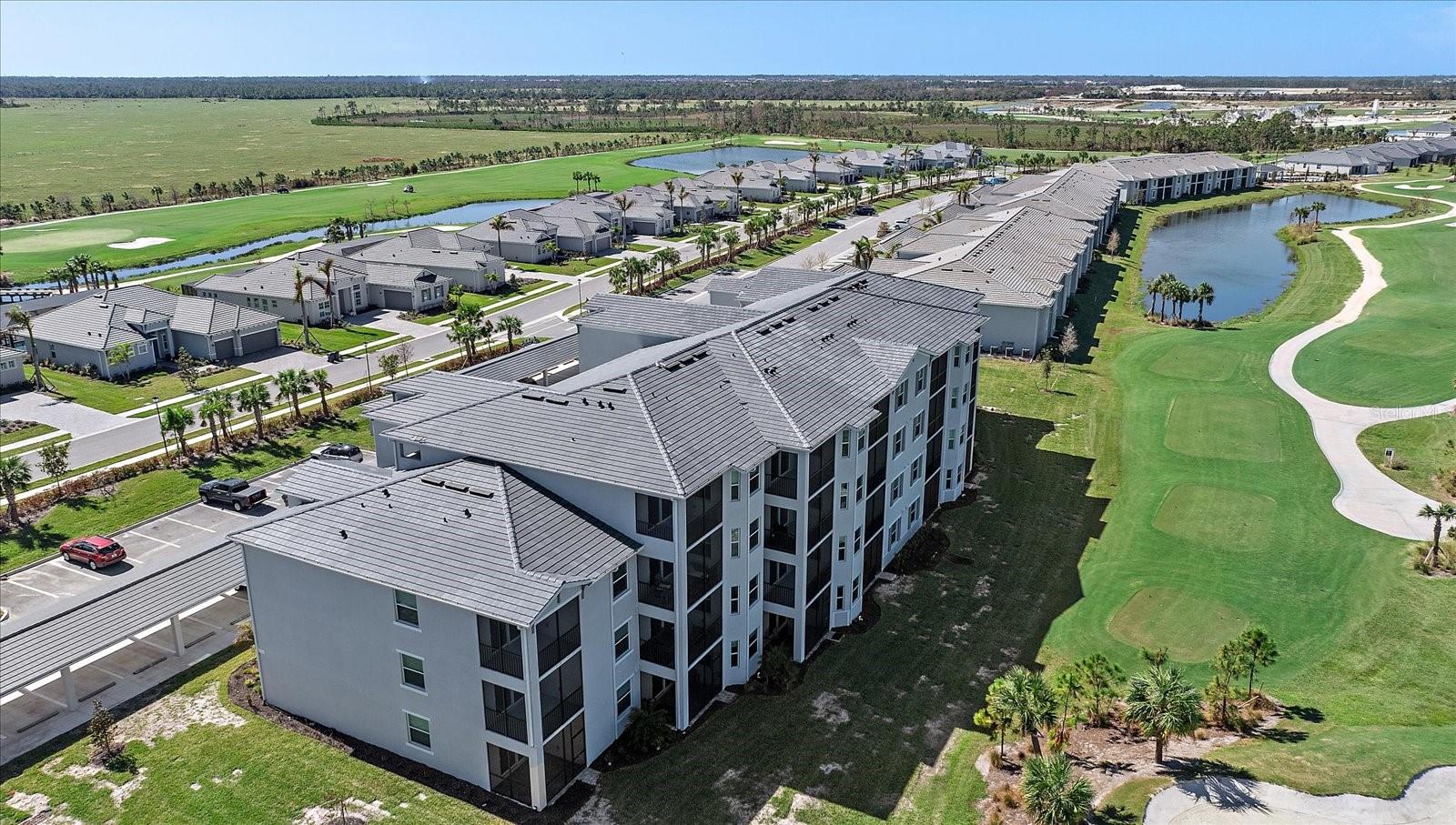 ULTIMATE GOLF CONDO WITH 2 MEMBERSHIPS, BEST TOP-FLOOR VIEWS & EXTRA STORAGE UNIT, MOVE-IN READY! Seize the opportunity to own a pristine, brand new top-floor end unit condo in the new Wellen Park Golf and Country Club community. Golfers will absolutely fall in love with the peaceful, unobstructed views from your fourth floor balcony of the 10th green, the tee box and fairway of 11 as well as long views of the course, nature preserves, lakes and protected bird sanctuary too. Enjoy 2 deeded golf memberships with this property, a prime location near the satellite pool and a just a short walk for golf cart ride to the main amenity area and driving range. This Birkdale floorplan is easily accessible by elevator and has 2 bedrooms, 2 bathrooms PLUS an oversized storage unit located just outside your door, offering ample space for golf clubs and beach gear. The condo boasts tile flooring throughout the main areas, elegant shaker cabinets, quartz countertops, stainless-steel appliances and an in-unit washer and dryer. Wellen Park Golf & Country Club will have a full array of luxury amenities including a resort-style pool & tiki bar (which just opened!), tennis courts, pickleball courts, bocce ball, dog park, and a state-of-the-art fitness center. The community clubhouse will feature a restaurant, day spa for relaxation and more. Ideal for golfers and those seeking a seasonal residence or income property, this condo is move-in ready. Experience the best of Southwest Florida living – schedule your visit today and start your new life in this exceptional community!
