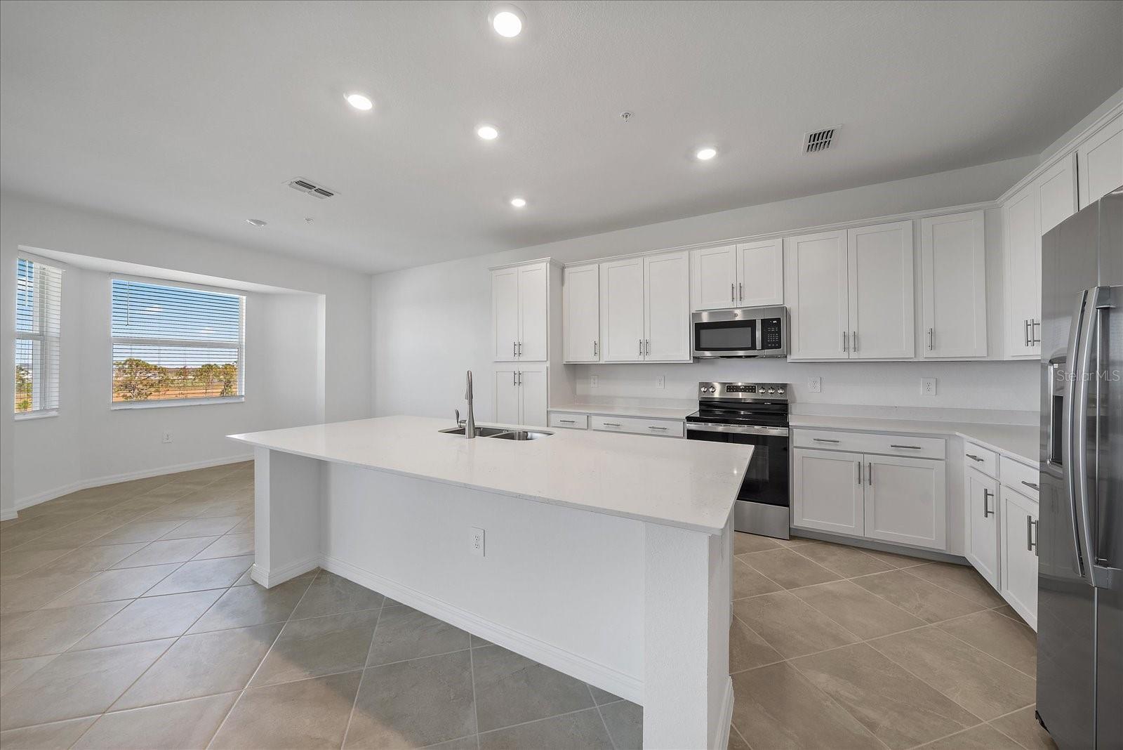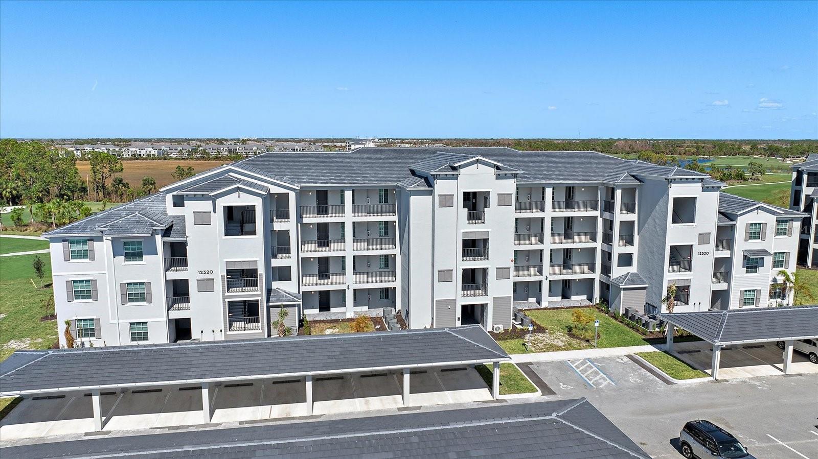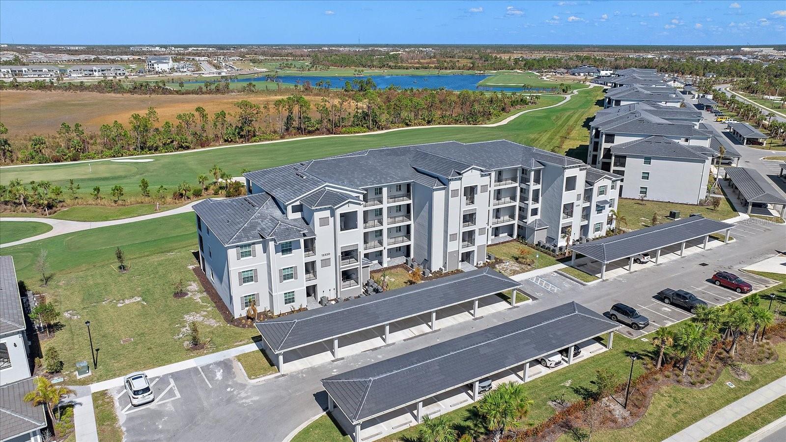 ULTIMATE GOLF CONDO WITH 2 MEMBERSHIPS, BEST TOP-FLOOR VIEWS & EXTRA STORAGE UNIT, MOVE-IN READY! Seize the opportunity to own a pristine, brand new top-floor end unit condo in the new Wellen Park Golf and Country Club community. Golfers will absolutely fall in love with the peaceful, unobstructed views from your fourth floor balcony of the 10th green, the tee box and fairway of 11 as well as long views of the course, nature preserves, lakes and protected bird sanctuary too. Enjoy 2 deeded golf memberships with this property, a prime location near the satellite pool and a just a short walk for golf cart ride to the main amenity area and driving range. This Birkdale floorplan is easily accessible by elevator and has 2 bedrooms, 2 bathrooms PLUS an oversized storage unit located just outside your door, offering ample space for golf clubs and beach gear. The condo boasts tile flooring throughout the main areas, elegant shaker cabinets, quartz countertops, stainless-steel appliances and an in-unit washer and dryer. Wellen Park Golf & Country Club will have a full array of luxury amenities including a resort-style pool & tiki bar (which just opened!), tennis courts, pickleball courts, bocce ball, dog park, and a state-of-the-art fitness center. The community clubhouse will feature a restaurant, day spa for relaxation and more. Ideal for golfers and those seeking a seasonal residence or income property, this condo is move-in ready. Experience the best of Southwest Florida living – schedule your visit today and start your new life in this exceptional community!