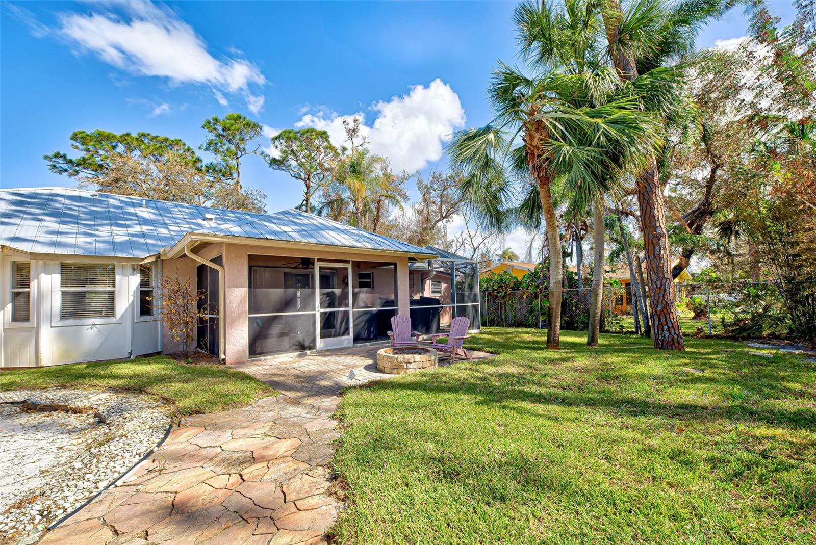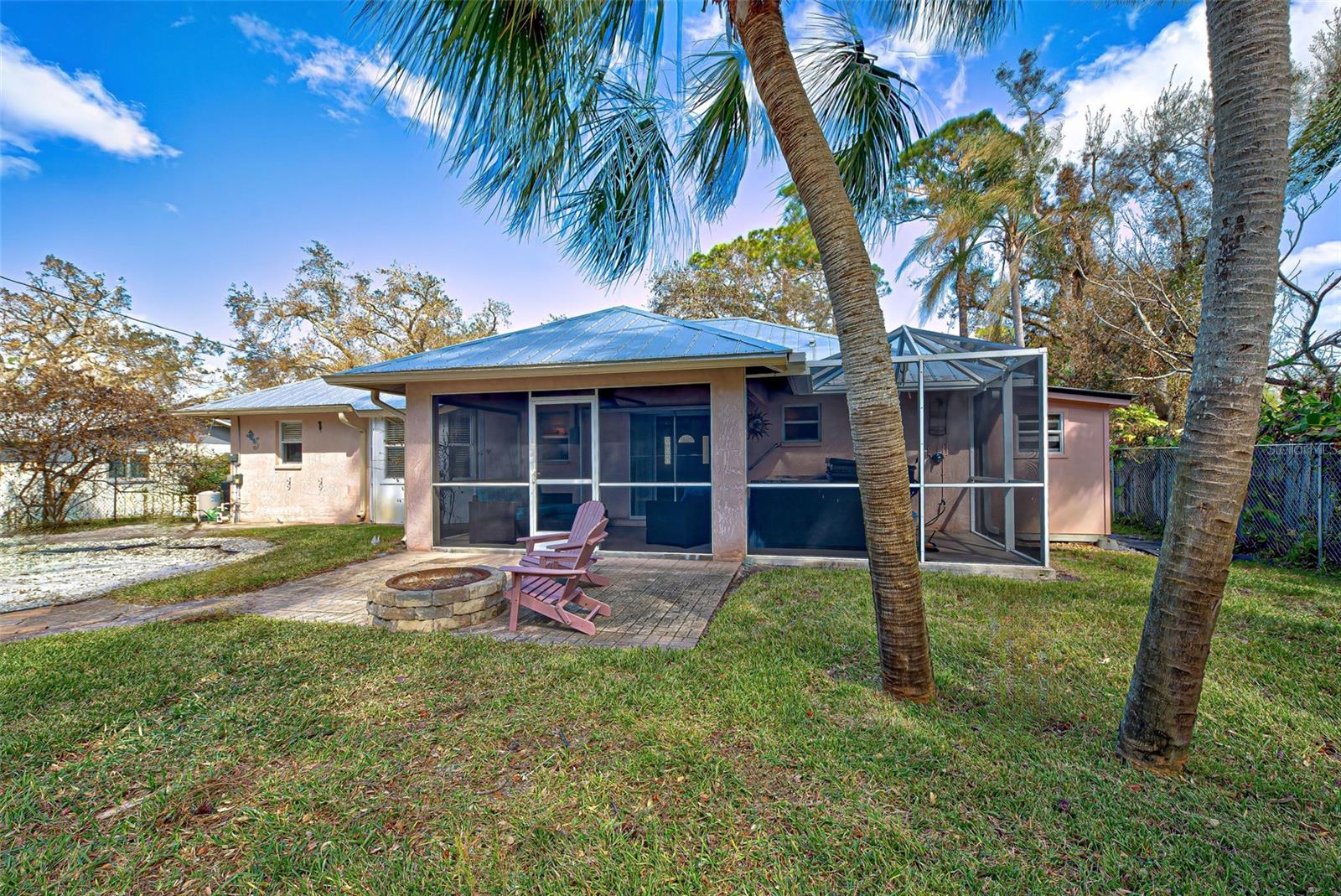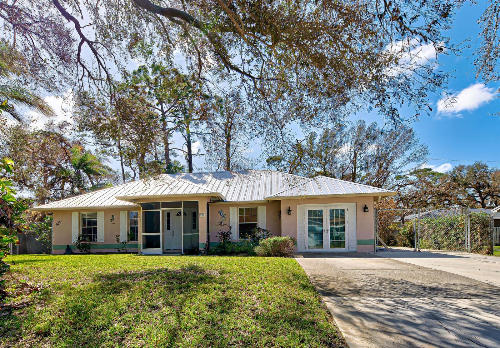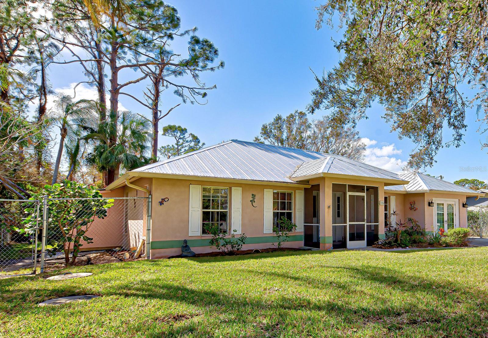 A MUST SEE! **BONUS**SELLER OFFERING $4000 BUYER CLOSING CREDIT! Apply funds towards closing costs or make cosmetic changes! This ADORABLE MOVE-IN READY SOUTH VENICE "FENCED" home features a split 2 bedroom, 2 bath layout with a lovely transformed garage conversion offering a 3rd BEDROOM or HOME-OFFICE (permitted 2014) . This home stood strong and HAD NO HURRICANE DAMAGE. METAL ROOF installed in 2018, WHOLE-HOUSE REPIPE 2016, 2-Ton YORK AC installed 2023, WATER HEATER installed 2024. This will be a great starter home or a wonderful vacation retreat! There’s a charming interior laundry room with utility sink and separate mudroom for storage. ORIGINAL HOMEOWNER also added an attached a side shed for outdoor storage (permitted 2016). There’s extra parking along the side with a cement pad for second vehicles, boat or RV. This Venice home has NO DEED RESTRICTIONS, so NO HOA or CDD FEES, AND NO FLOOD INSURANCE needed! This magical home features high ceilings, rustic wood grain TILE floors in the main areas, bathrooms, and home-office, plus carpeting in the two bedrooms. The beachy remodeled bathrooms have been beautifully upgraded with higher vanities, nice tile surrounds, stone accents, and a large walk-in glass shower with bench seat. The renovated cozy kitchen showcases gorgeous stone counter tops with cottage style wood cabinets featuring enhanced pull-out drawers & soft close upgrades, closet pantry, sunny breakfast nook, and a pass-thru window to the enclosed covered lanai. The oversized master bedroom has an en-suite bathroom featuring a tile surround jacuzzi tub and a deep walk-in closet. The dining room has pocket slider doors leading to a large 26 x 10 covered & enclosed lanai, featuring a CONVEYING 6-PERSON HOT TUB and BRAND NEW LANAI FURNITURE. Other CONVEYING items include: GENERATOR, 3 TVs, living room TV stand, curio, all beds, and home-office furniture - practically TURN-KEY and ready to rent! The backyard also features a cozy patio fire-pit to enjoy chilly winter evenings! IDEAL LOCATION, just off 776/Englewood Rd, close to Jacaranda shopping, restaurants and beaches! Manasota Beach ONLY 5 minutes away, featuring a great public boat ramp and one of the areas most attracted beaches for shark tooth hunting! There’s also Sarasota County’s Challenger Park within biking or walking distance, less than 1 mile away, featuring a playground, basketball court and picnic area. You may also join the South Venice Ferry Association for a nominal fee, to enjoy a private ferry ride to the South Venice private beach. Call today for your private showing!