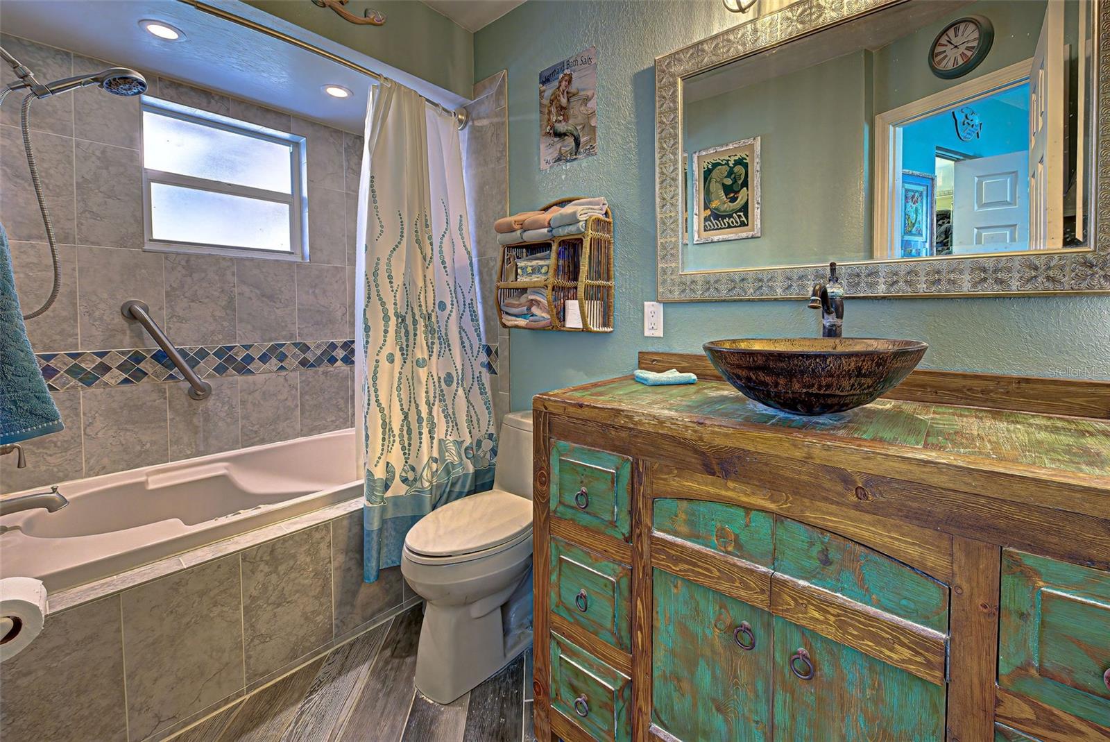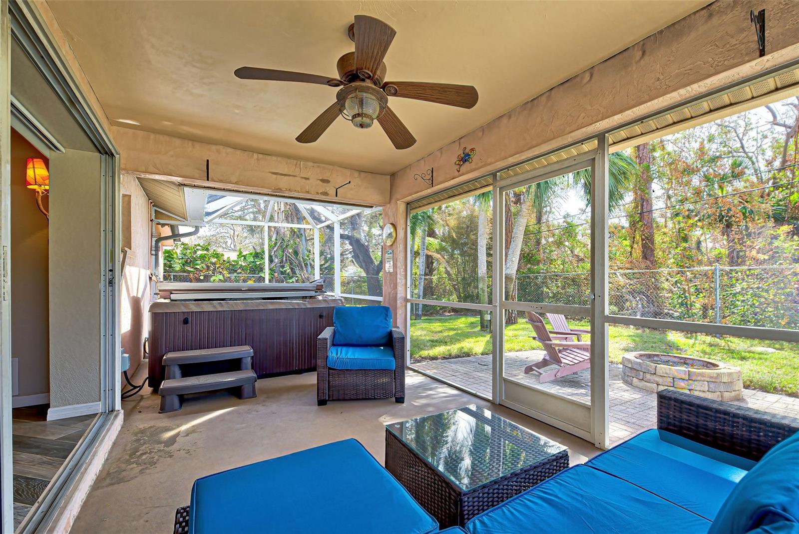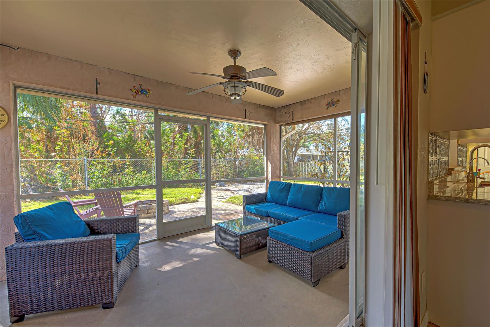 A MUST SEE! **BONUS**SELLER OFFERING $4000 BUYER CLOSING CREDIT! Apply funds towards closing costs or make cosmetic changes! This ADORABLE MOVE-IN READY SOUTH VENICE "FENCED" home features a split 2 bedroom, 2 bath layout with a lovely transformed garage conversion offering a 3rd BEDROOM or HOME-OFFICE (permitted 2014) . This home stood strong and HAD NO HURRICANE DAMAGE. METAL ROOF installed in 2018, WHOLE-HOUSE REPIPE 2016, 2-Ton YORK AC installed 2023, WATER HEATER installed 2024. This will be a great starter home or a wonderful vacation retreat! There’s a charming interior laundry room with utility sink and separate mudroom for storage. ORIGINAL HOMEOWNER also added an attached a side shed for outdoor storage (permitted 2016). There’s extra parking along the side with a cement pad for second vehicles, boat or RV. This Venice home has NO DEED RESTRICTIONS, so NO HOA or CDD FEES, AND NO FLOOD INSURANCE needed! This magical home features high ceilings, rustic wood grain TILE floors in the main areas, bathrooms, and home-office, plus carpeting in the two bedrooms. The beachy remodeled bathrooms have been beautifully upgraded with higher vanities, nice tile surrounds, stone accents, and a large walk-in glass shower with bench seat. The renovated cozy kitchen showcases gorgeous stone counter tops with cottage style wood cabinets featuring enhanced pull-out drawers & soft close upgrades, closet pantry, sunny breakfast nook, and a pass-thru window to the enclosed covered lanai. The oversized master bedroom has an en-suite bathroom featuring a tile surround jacuzzi tub and a deep walk-in closet. The dining room has pocket slider doors leading to a large 26 x 10 covered & enclosed lanai, featuring a CONVEYING 6-PERSON HOT TUB and BRAND NEW LANAI FURNITURE. Other CONVEYING items include: GENERATOR, 3 TVs, living room TV stand, curio, all beds, and home-office furniture - practically TURN-KEY and ready to rent! The backyard also features a cozy patio fire-pit to enjoy chilly winter evenings! IDEAL LOCATION, just off 776/Englewood Rd, close to Jacaranda shopping, restaurants and beaches! Manasota Beach ONLY 5 minutes away, featuring a great public boat ramp and one of the areas most attracted beaches for shark tooth hunting! There’s also Sarasota County’s Challenger Park within biking or walking distance, less than 1 mile away, featuring a playground, basketball court and picnic area. You may also join the South Venice Ferry Association for a nominal fee, to enjoy a private ferry ride to the South Venice private beach. Call today for your private showing!