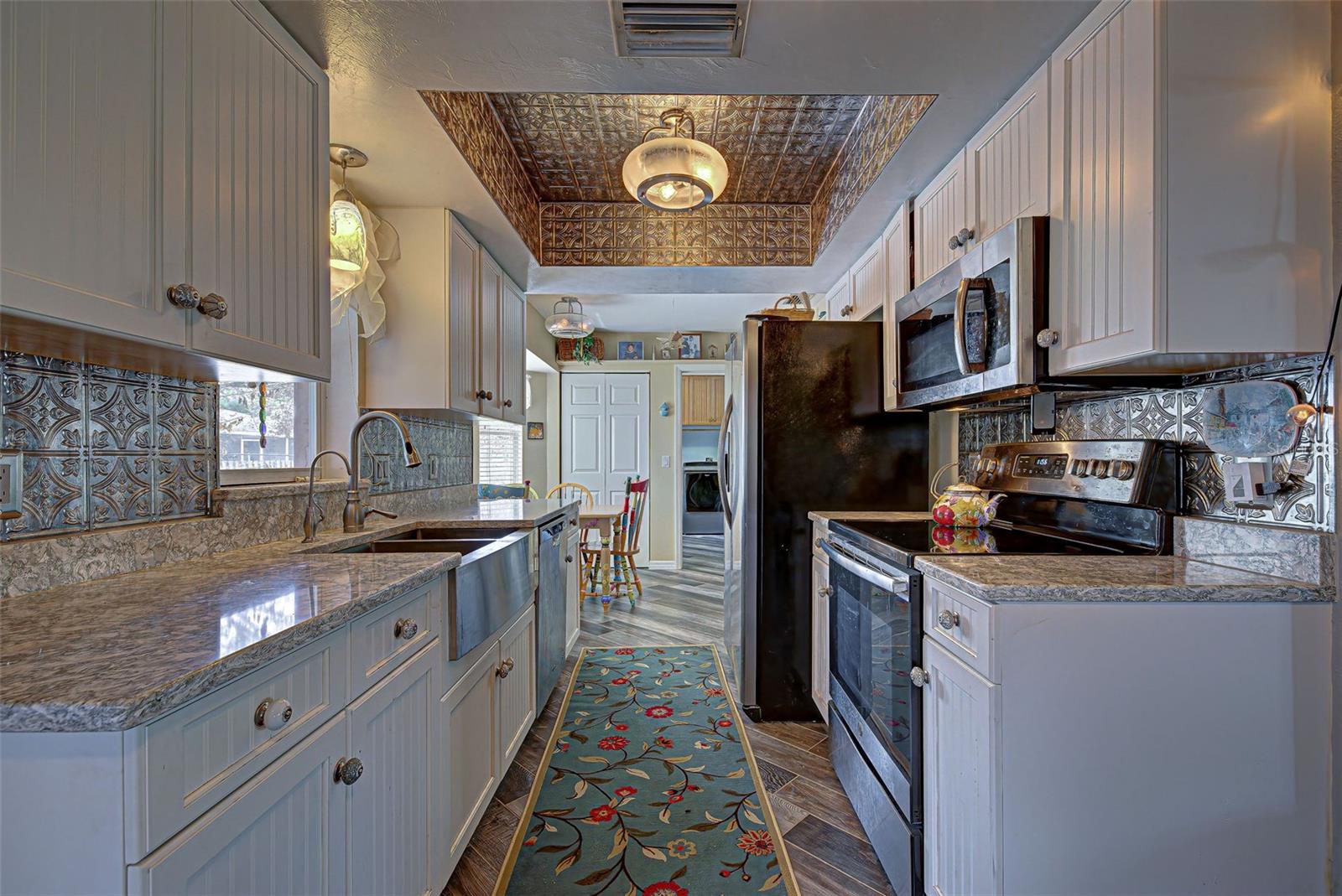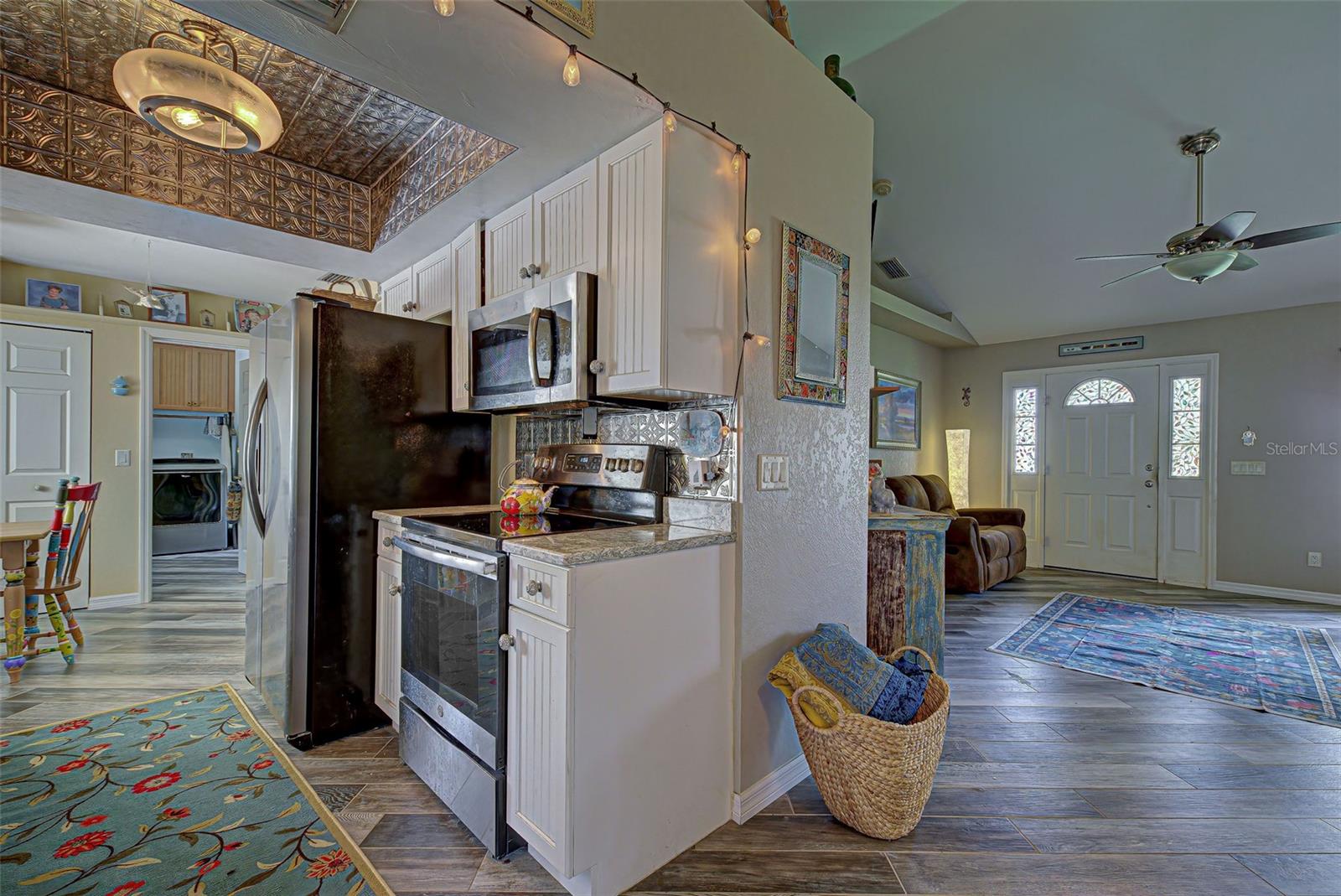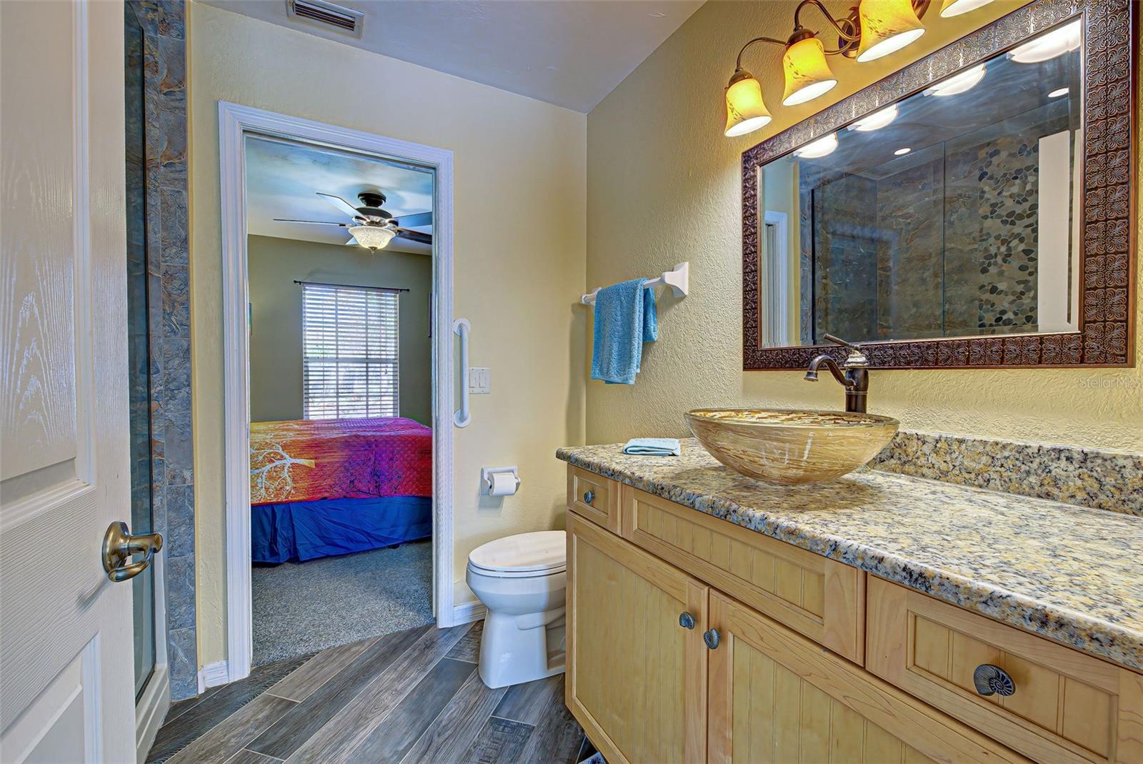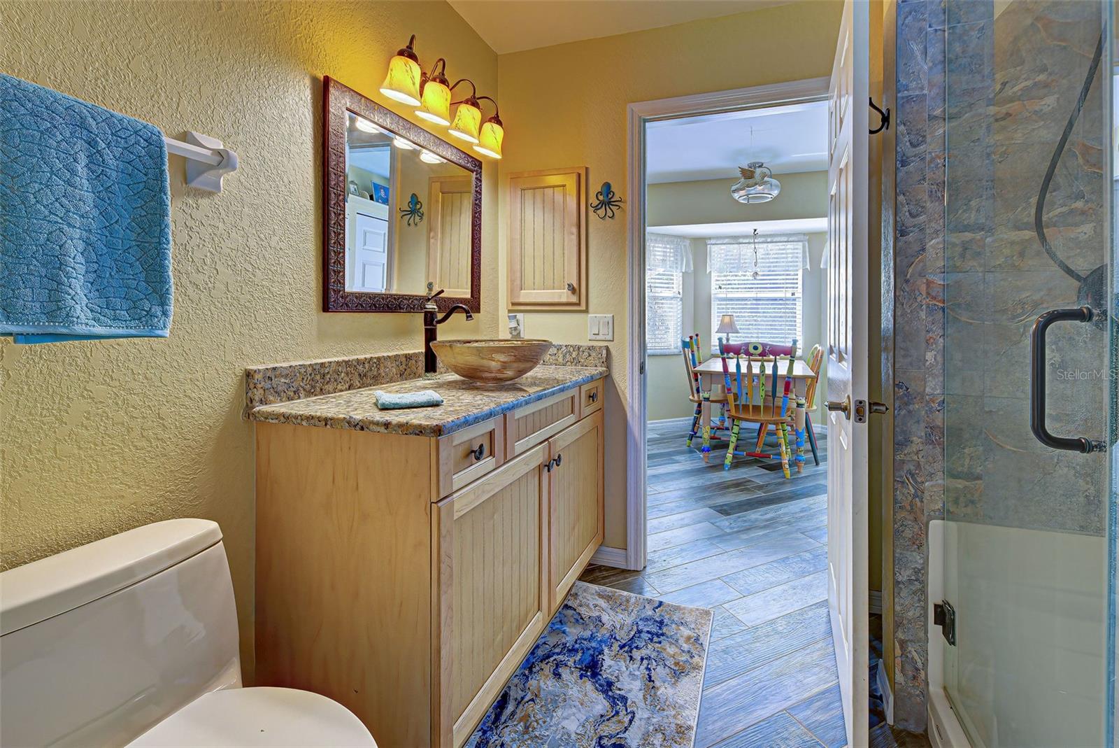 A MUST SEE! **BONUS**SELLER OFFERING $4000 BUYER CLOSING CREDIT! Apply funds towards closing costs or make cosmetic changes! This ADORABLE MOVE-IN READY SOUTH VENICE "FENCED" home features a split 2 bedroom, 2 bath layout with a lovely transformed garage conversion offering a 3rd BEDROOM or HOME-OFFICE (permitted 2014) . This home stood strong and HAD NO HURRICANE DAMAGE. METAL ROOF installed in 2018, WHOLE-HOUSE REPIPE 2016, 2-Ton YORK AC installed 2023, WATER HEATER installed 2024. This will be a great starter home or a wonderful vacation retreat! There’s a charming interior laundry room with utility sink and separate mudroom for storage. ORIGINAL HOMEOWNER also added an attached a side shed for outdoor storage (permitted 2016). There’s extra parking along the side with a cement pad for second vehicles, boat or RV. This Venice home has NO DEED RESTRICTIONS, so NO HOA or CDD FEES, AND NO FLOOD INSURANCE needed! This magical home features high ceilings, rustic wood grain TILE floors in the main areas, bathrooms, and home-office, plus carpeting in the two bedrooms. The beachy remodeled bathrooms have been beautifully upgraded with higher vanities, nice tile surrounds, stone accents, and a large walk-in glass shower with bench seat. The renovated cozy kitchen showcases gorgeous stone counter tops with cottage style wood cabinets featuring enhanced pull-out drawers & soft close upgrades, closet pantry, sunny breakfast nook, and a pass-thru window to the enclosed covered lanai. The oversized master bedroom has an en-suite bathroom featuring a tile surround jacuzzi tub and a deep walk-in closet. The dining room has pocket slider doors leading to a large 26 x 10 covered & enclosed lanai, featuring a CONVEYING 6-PERSON HOT TUB and BRAND NEW LANAI FURNITURE. Other CONVEYING items include: GENERATOR, 3 TVs, living room TV stand, curio, all beds, and home-office furniture - practically TURN-KEY and ready to rent! The backyard also features a cozy patio fire-pit to enjoy chilly winter evenings! IDEAL LOCATION, just off 776/Englewood Rd, close to Jacaranda shopping, restaurants and beaches! Manasota Beach ONLY 5 minutes away, featuring a great public boat ramp and one of the areas most attracted beaches for shark tooth hunting! There’s also Sarasota County’s Challenger Park within biking or walking distance, less than 1 mile away, featuring a playground, basketball court and picnic area. You may also join the South Venice Ferry Association for a nominal fee, to enjoy a private ferry ride to the South Venice private beach. Call today for your private showing!