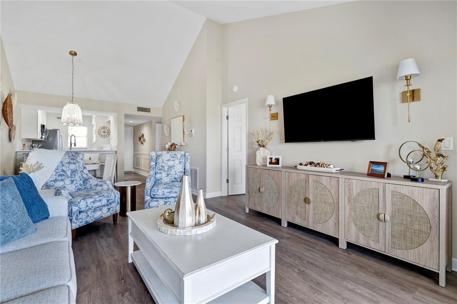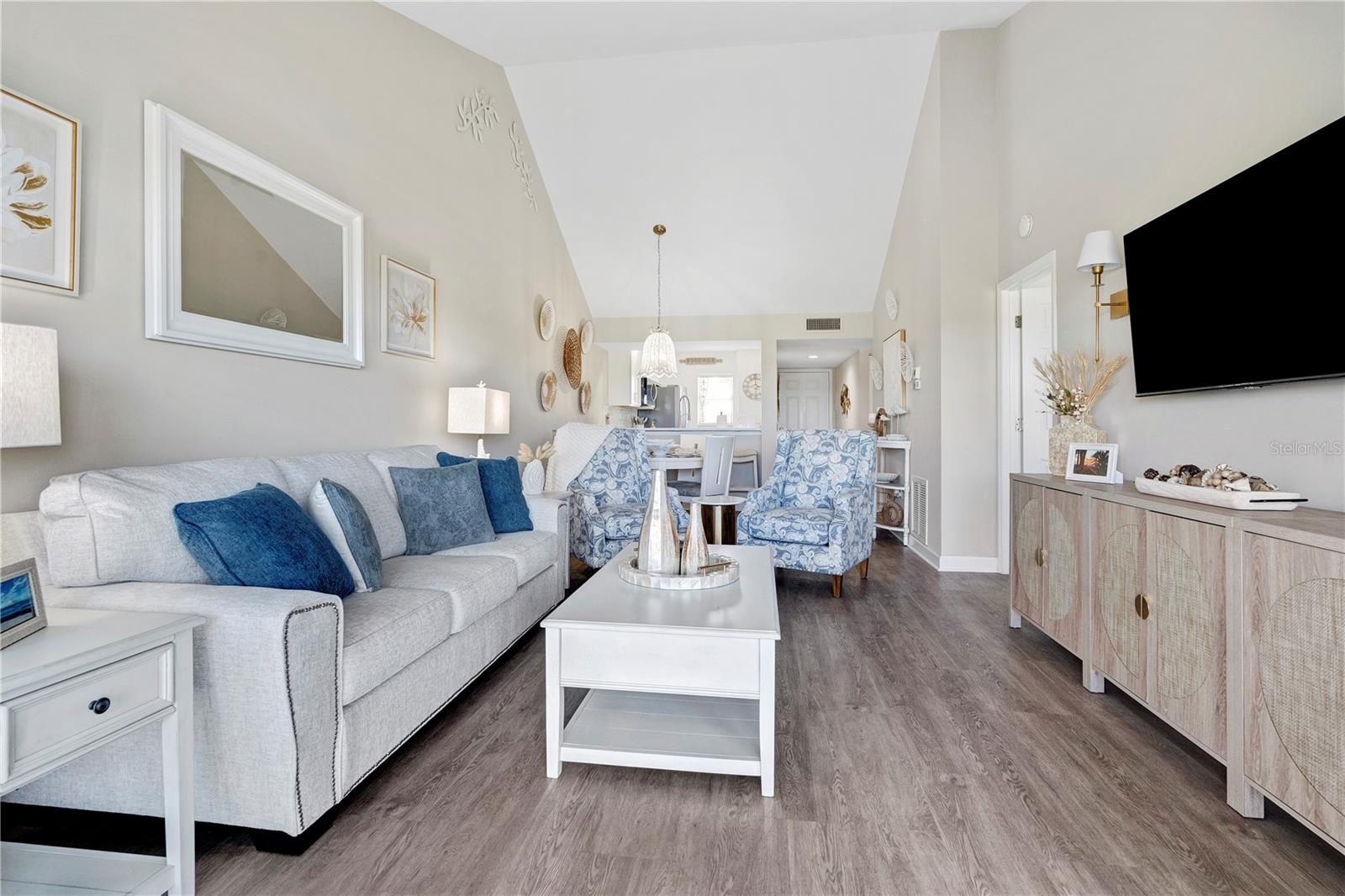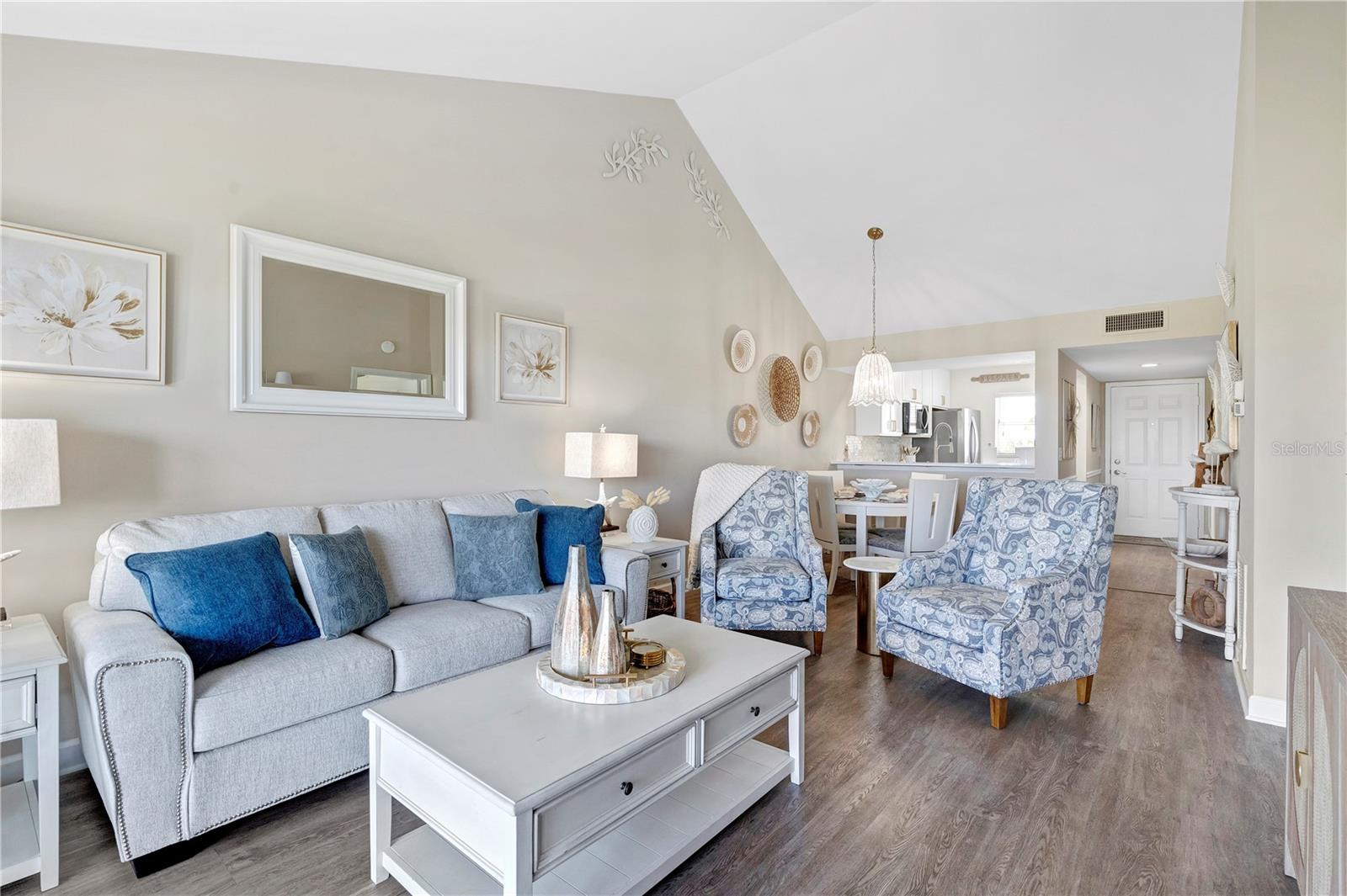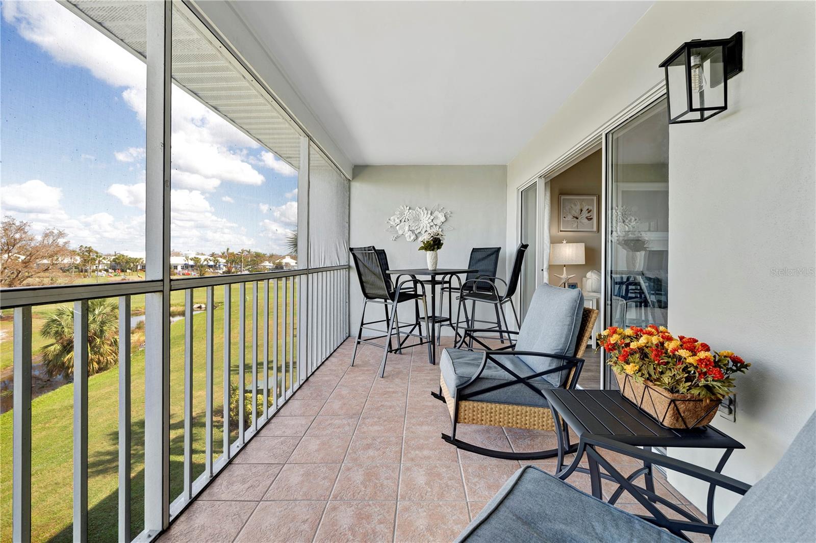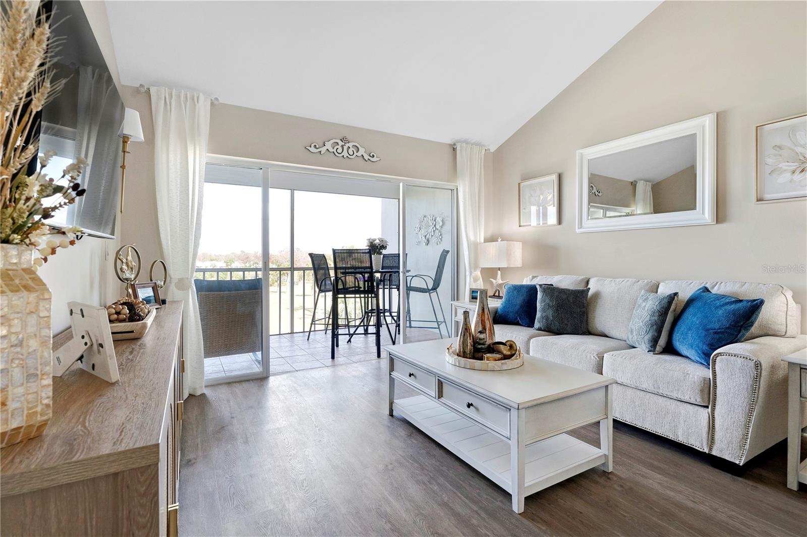 Stunning TURNKEY Condo with Unmatched Amenities! ACCESSIBLE BY ELEVATOR, this 3rd floor condo is beautifully REMODELED and fully furnished for a seamless move-in experience. The unit boasts a screened-in and covered lanai that offers breathtaking views of the golf course. Step inside to find a modern kitchen, complete with ALL NEW CABINETS and APPLIANCES. The spacious living room is adorned with cathedral ceilings and elegant furnishings, creating an inviting atmosphere. Your main suite serves as a true sanctuary, featuring a luxurious remodeled bathroom with dual vanities, a walk-in closet, and sliding doors that open to the tiled, screened patio for serene outdoor relaxation. The generous second bedroom and bathroom provide ample space for family or guests. Additional conveniences include a dedicated carport and private storage for all your belongings. Just steps away, you'll find the inviting community POOL and cabana. As part of the amenity-rich Plantation Golf & Country Club, you can indulge in a variety of recreational, dining, and social activities, all with optional membership opportunities. Enjoy two outstanding 18-hole championship golf courses, 13 Har-Tru tennis courts, 6 pickleball courts, bocce ball, a fitness center, and a junior Olympic-sized pool. Exceptional dining options, including a grill room and event spaces, complemented by a dedicated activities director for outings and events. Location is key, and this condo doesn’t disappoint! Just minutes from I-75, you're situated close to downtown Wellen Park, home to the Atlanta Braves' spring training facility—making it a central hub for dining, shopping, and entertainment. To the north, historic Venice Island offers stunning beaches, fishing, walking and biking trails, and a rich cultural scene, all within reach of essential medical facilities. NO CDD FEES- NO FLOOD INSURANCE -Don’t miss out on this exceptional opportunity to own a slice of paradise! Experience the Florida lifestyle you’ve always dreamed of in this exquisite condo.