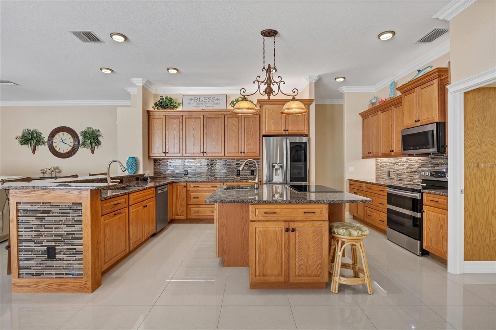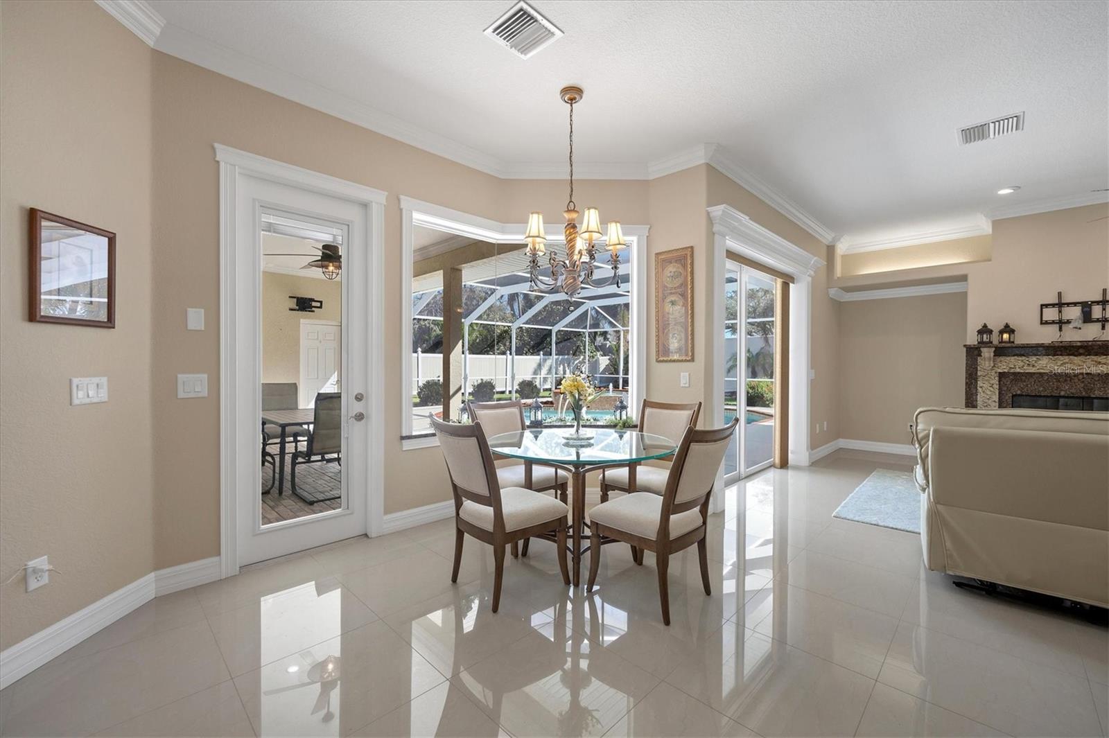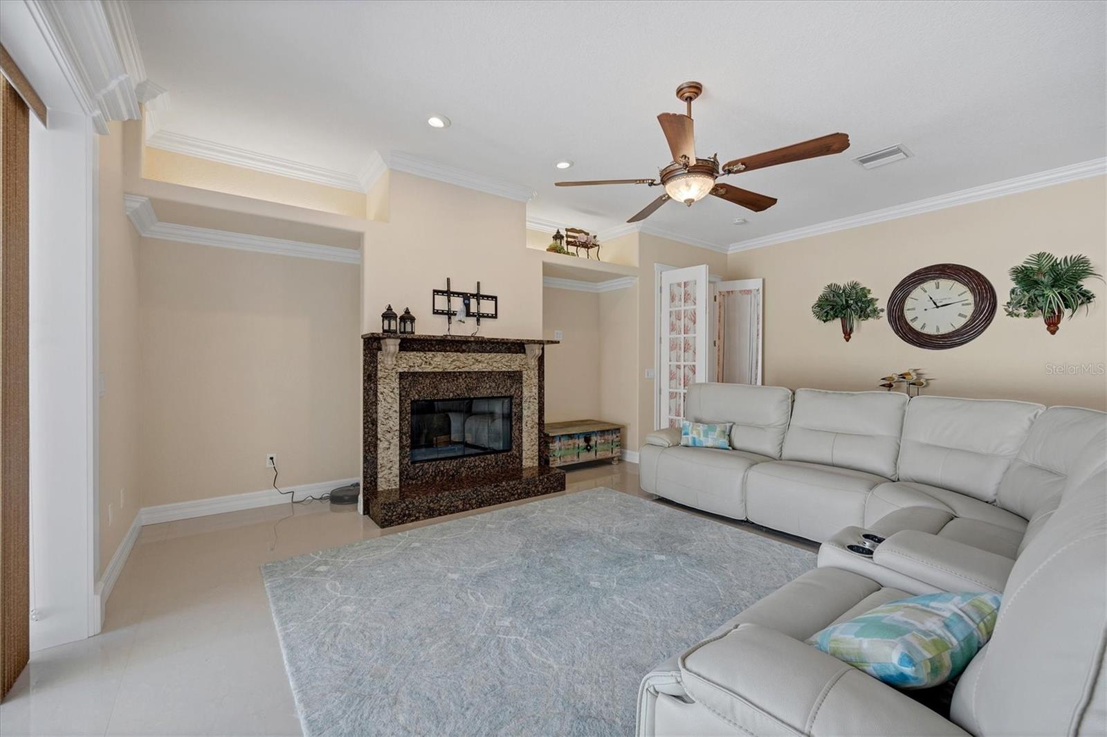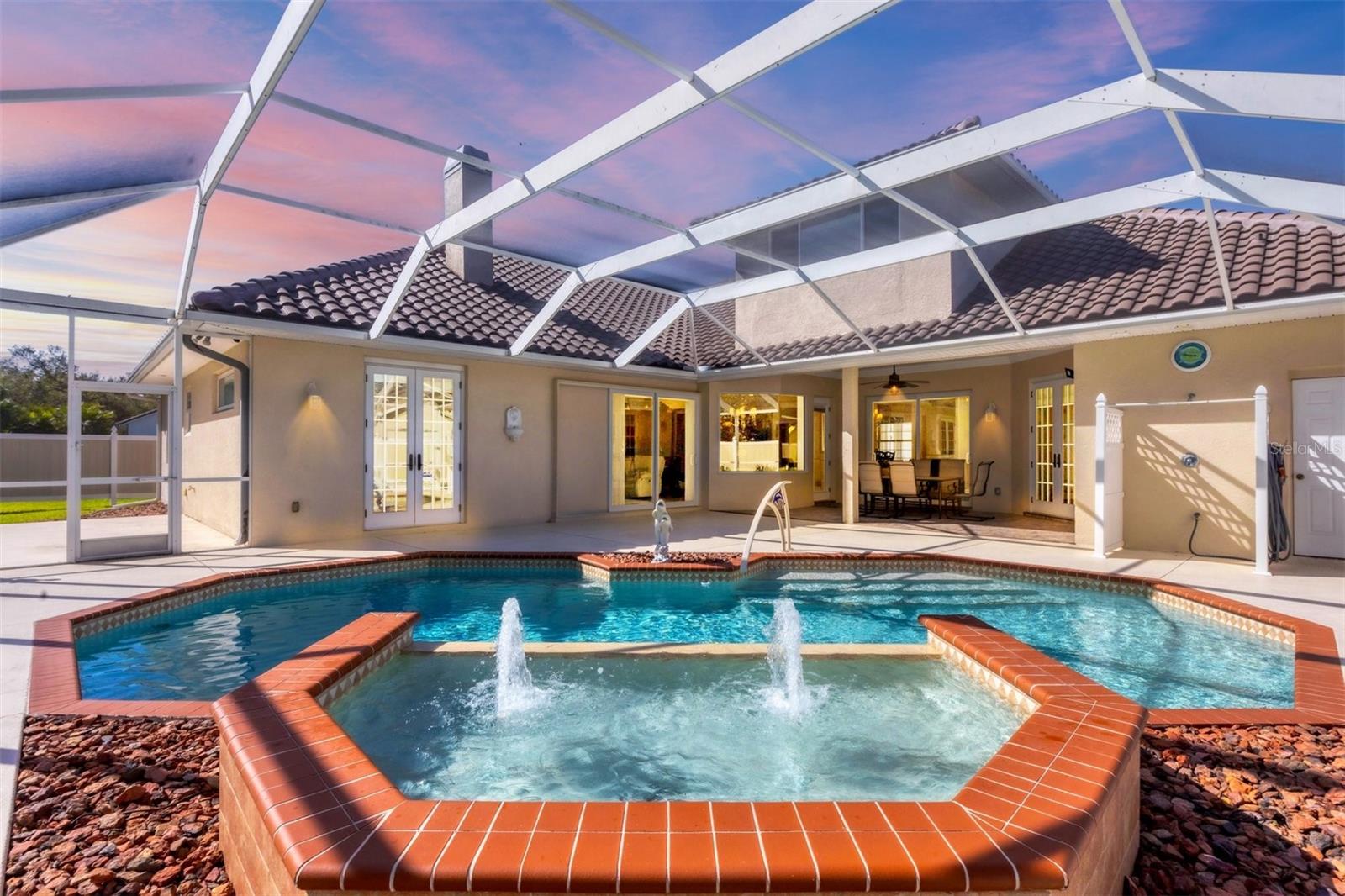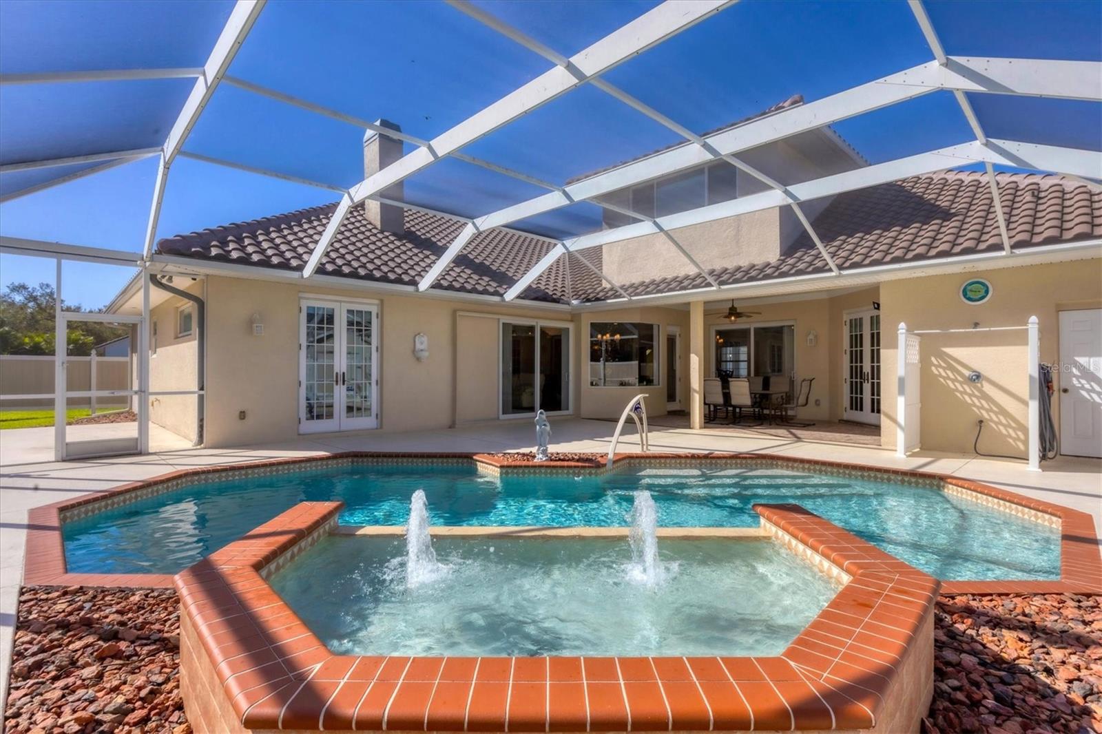 One or more photo(s) has been virtually staged. Elegant custom home in gated Hidden Lakes Club, minutes from Venice Island! Discover this stunning six-bedroom, 4.5-bath custom home in the desirable, gated Hidden Lakes Club. Ideally located, this exquisite property is just minutes from Venice Island, Sarasota Memorial Hospital and convenient access to Interstate 75. This spacious home boasts a thoughtfully designed floor plan, including a den, a large laundry room and a three-car garage with newly insulated doors. The primary suite is a luxurious retreat, featuring a massive custom closet, a French door opening to the lanai, and a spa-like bath complete with a walk-in shower, jetted tub and dual vanities. The gourmet kitchen is an entertainer’s dream, offering new high-end appliances, an oversized island with a range and prep sink, granite countertops, solid wood cabinetry, a butler’s pantry and dual stoves, fully updated in 2018. This chef’s kitchen flows seamlessly into the dining and family room, where a cozy fireplace and custom crown molding add elegance. The home’s second floor includes a bedroom with a full bath, abundant closet space and potential as a second primary suite, in-law suite or media room. Lots of attention to detail was spent in this stunning home, architectural columns, built-ins, crown molding and granite windowsills in the entire house, high ceilings, gorgeous newer porcelain tile flooring throughout the house, French doors, double-glass entrance door, extra storage space and six climate zones complete the home’s modern comforts. Outdoors, enjoy a sparkling pool with a fountain, an outdoor shower, a half bath and a screened pool cage. The property is fully fenced for privacy and protected with hurricane-rated windows, a 22-kilowatt Generac generator with a 500-gallon tank, and a new roof and gutters installed in late 2023. Hidden Lakes Club provides resort-style amenities, including lush landscaping, clubhouse with a kitchen, a billiards room, gym, pool, spa, tennis and pickleball courts, and basketball court. This meticulously maintained home showcases pride of ownership and is move-in ready.