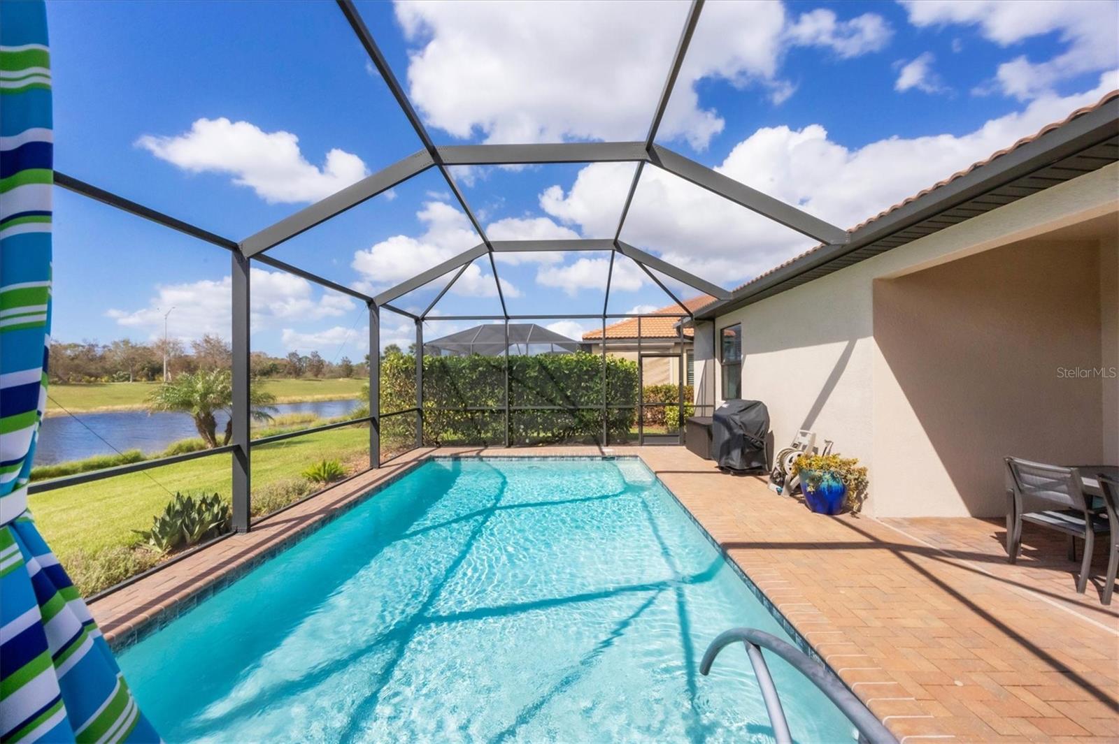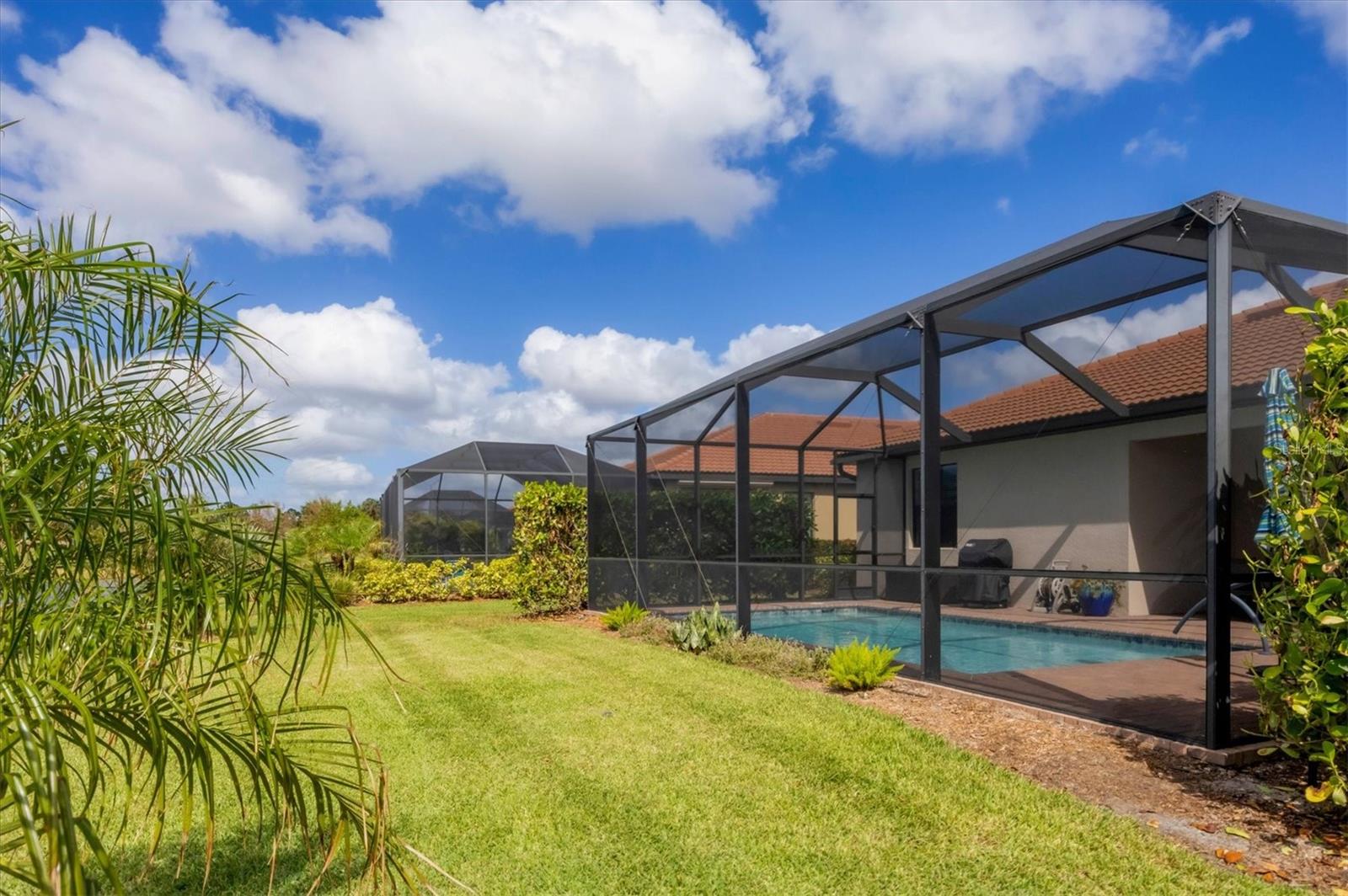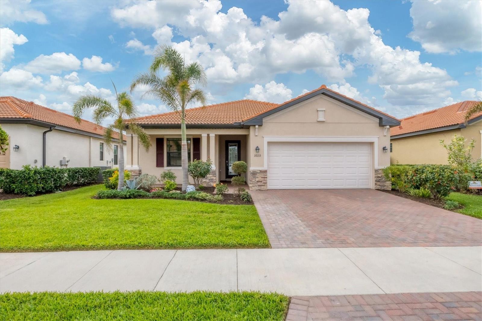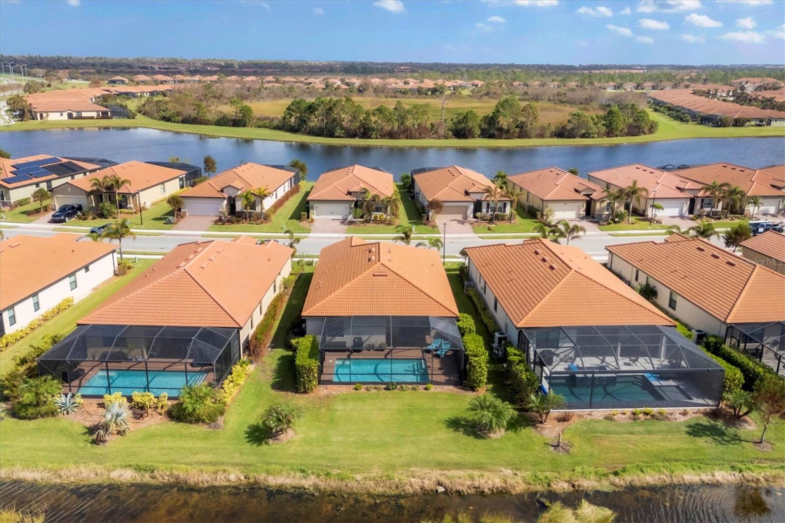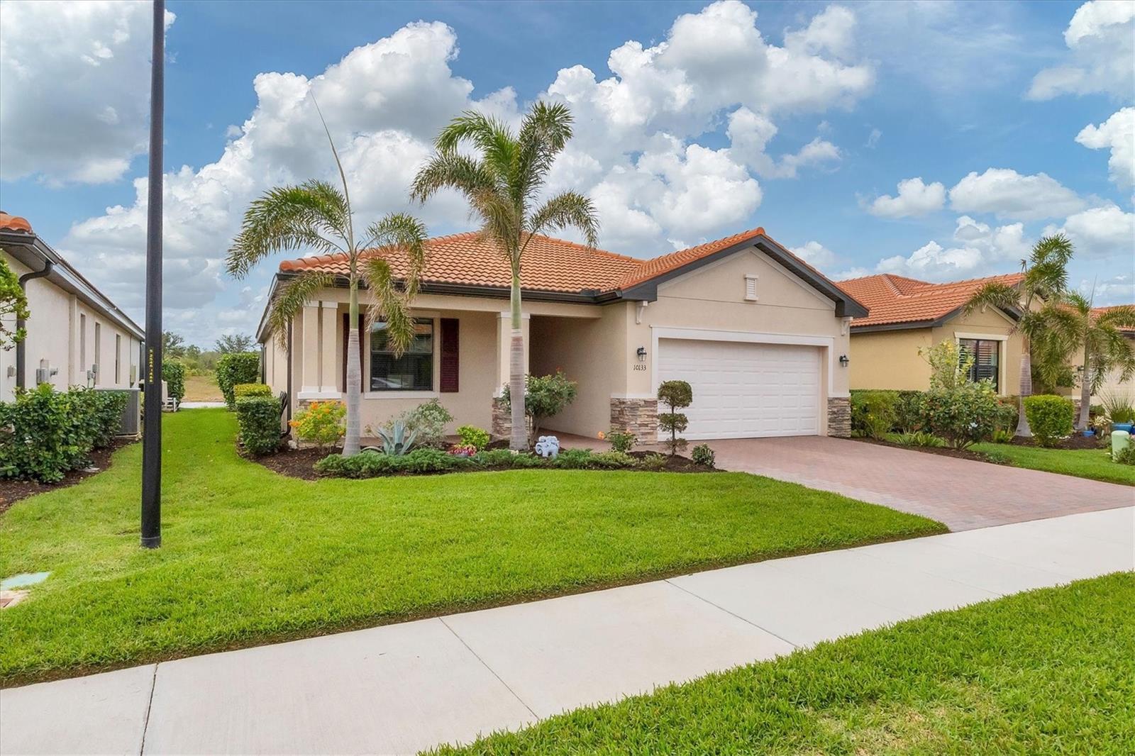Must see NOW. Pool home on Sarasota National's lake side. NO GOLF FEES!! Popular VENICE floor plan with 3BD/3BA/2CG and a pool. This immaculate home is ready for you to enjoy. SUNDAY DIRECTIONS: Must use main gate off 41 for entrance, GPS will take you to side gate for residents only. GPS directions once inside gate cannot be followed either. Correct DIRECTIONS: Through main gate, then immediate right on Copperleaf, right on Treyburn, right on Crooked Creek, right on Cozy Grove, right on Colubrina. Open floor plan with tile flooring in the main areas. Crown molding and neutral color scheme make this a house you can just walk into. Kitchen offers 42 in kitchen cabinets, granite counters, subway tile backsplash, stainless steel appliances, pendant lighting, and even counter island with room for seating. Your outdoor space is a tropical oasis with private swimming pool overlooking Lake and Greenbelt. No homes behind and none to be built. Southwest exposure for basking in the sun and keeping your energy costs down by warming your pool. Spacious master bedroom with en suite bathroom that includes dual sinks,walk in shower, and walk in closet. Guest bathrooms with en suite baths at opposite end of home for privacy. Property is located conveniently close to side gate for exit and access without driving through the community. Set up your private appointment today! Not here in Florida? See it today with 3D Walk through at: https://my.matterport.com/show/?m=e1Kwowd7noo Sarasota National is Venice's Premier community with over 1300 acres designated for preservation, conservation, lakes, and open space with amazing views, Proclaimed as an Audubon International Certified Sanctuary, making it the most gorgeous and enjoyable golf course to play at in the area. Offering resort style amenities with huge resort style pool and spa,Tiki Bar to serve refreshing drinks and a bite of lunch, tennis courts, pickle ball, Bocce courts, coffee lounge/library/card room/meeting place, 7000 sq ft fitness facilities offering classes and day spa, and a 30,000 sq ft Clubhouse with dining and spectacular views. 18 Hole championship golf course surrounded by native wetlands and preserves provides an exhilarating and dramatic back drop for your golfing adventure. Minutes away from the new Wellen Park shopping area and Atlanta Braves stadium. Venice Beach and Venice Downtown are just a short drive. Your choice of restaurants and outdoor activities await. Come find YOUR Florida lifestyle TODAY and Live everyday like your on vacation!