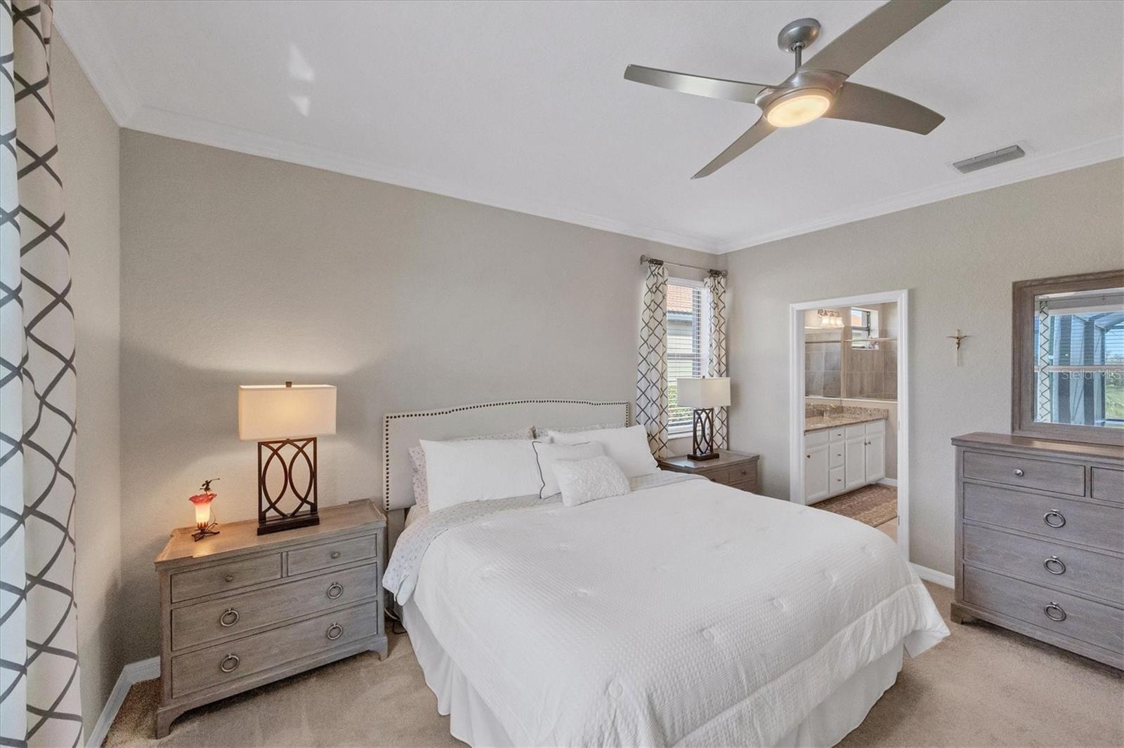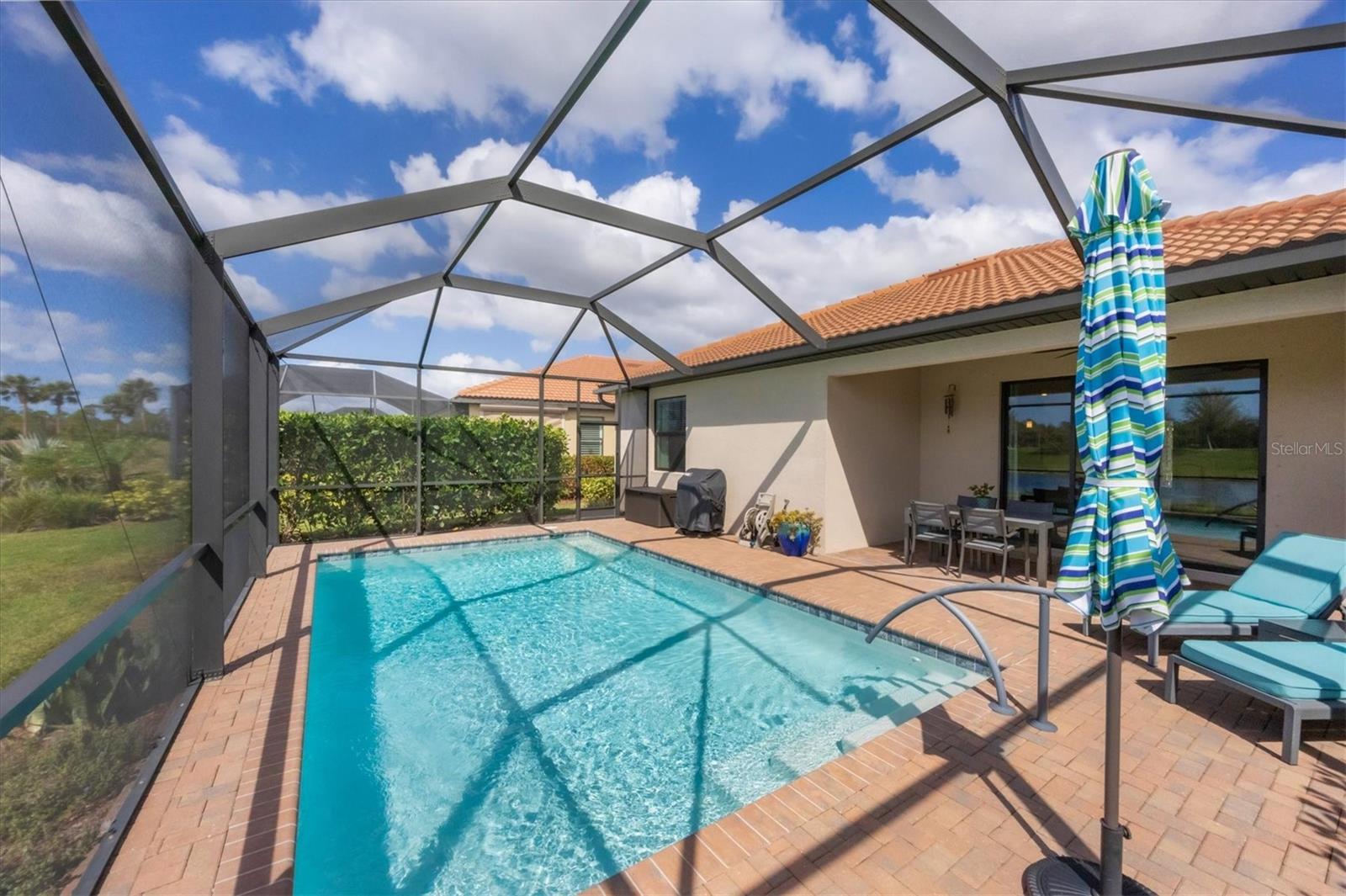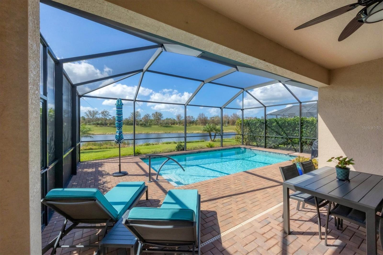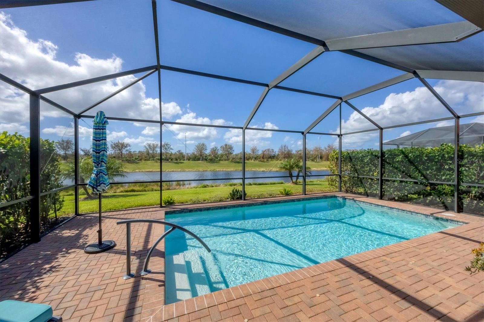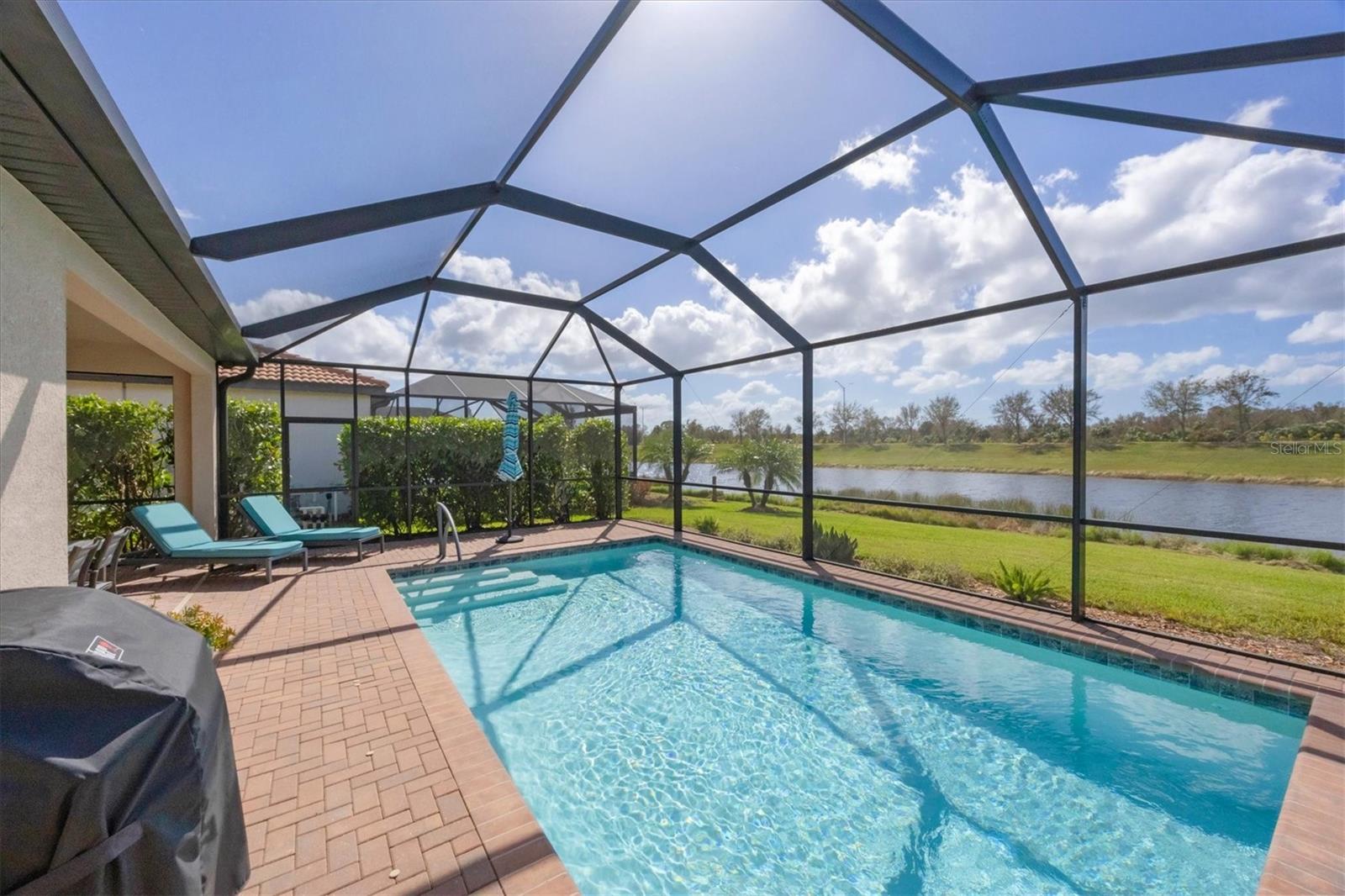 Must see NOW. Pool home on Sarasota National's lake side. NO GOLF FEES!! Popular VENICE floor plan with 3BD/3BA/2CG and a pool. This immaculate home is ready for you to enjoy. SUNDAY DIRECTIONS: Must use main gate off 41 for entrance, GPS will take you to side gate for residents only. GPS directions once inside gate cannot be followed either. Correct DIRECTIONS: Through main gate, then immediate right on Copperleaf, right on Treyburn, right on Crooked Creek, right on Cozy Grove, right on Colubrina. Open floor plan with tile flooring in the main areas. Crown molding and neutral color scheme make this a house you can just walk into. Kitchen offers 42 in kitchen cabinets, granite counters, subway tile backsplash, stainless steel appliances, pendant lighting, and even counter island with room for seating. Your outdoor space is a tropical oasis with private swimming pool overlooking Lake and Greenbelt. No homes behind and none to be built. Southwest exposure for basking in the sun and keeping your energy costs down by warming your pool. Spacious master bedroom with en suite bathroom that includes dual sinks,walk in shower, and walk in closet. Guest bathrooms with en suite baths at opposite end of home for privacy. Property is located conveniently close to side gate for exit and access without driving through the community. Set up your private appointment today! Not here in Florida? See it today with 3D Walk through at: https://my.matterport.com/show/?m=e1Kwowd7noo Sarasota National is Venice's Premier community with over 1300 acres designated for preservation, conservation, lakes, and open space with amazing views, Proclaimed as an Audubon International Certified Sanctuary, making it the most gorgeous and enjoyable golf course to play at in the area. Offering resort style amenities with huge resort style pool and spa,Tiki Bar to serve refreshing drinks and a bite of lunch, tennis courts, pickle ball, Bocce courts, coffee lounge/library/card room/meeting place, 7000 sq ft fitness facilities offering classes and day spa, and a 30,000 sq ft Clubhouse with dining and spectacular views. 18 Hole championship golf course surrounded by native wetlands and preserves provides an exhilarating and dramatic back drop for your golfing adventure. Minutes away from the new Wellen Park shopping area and Atlanta Braves stadium. Venice Beach and Venice Downtown are just a short drive. Your choice of restaurants and outdoor activities await. Come find YOUR Florida lifestyle TODAY and Live everyday like your on vacation!