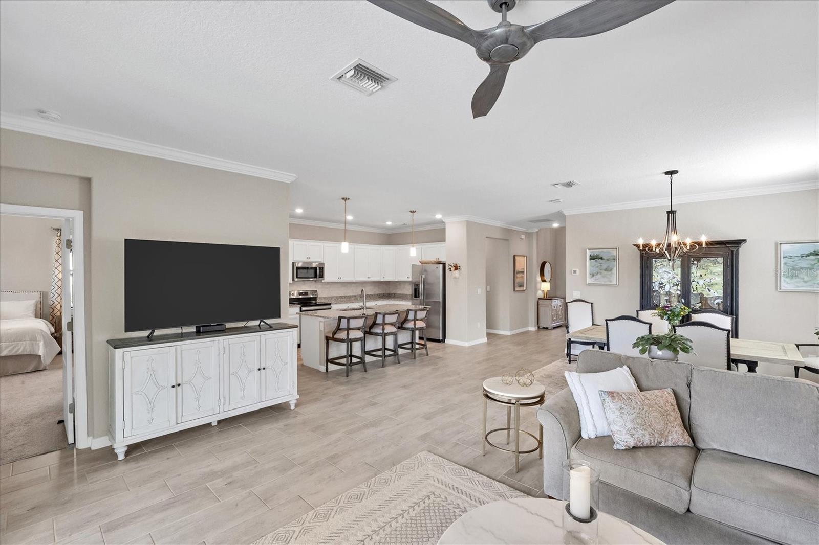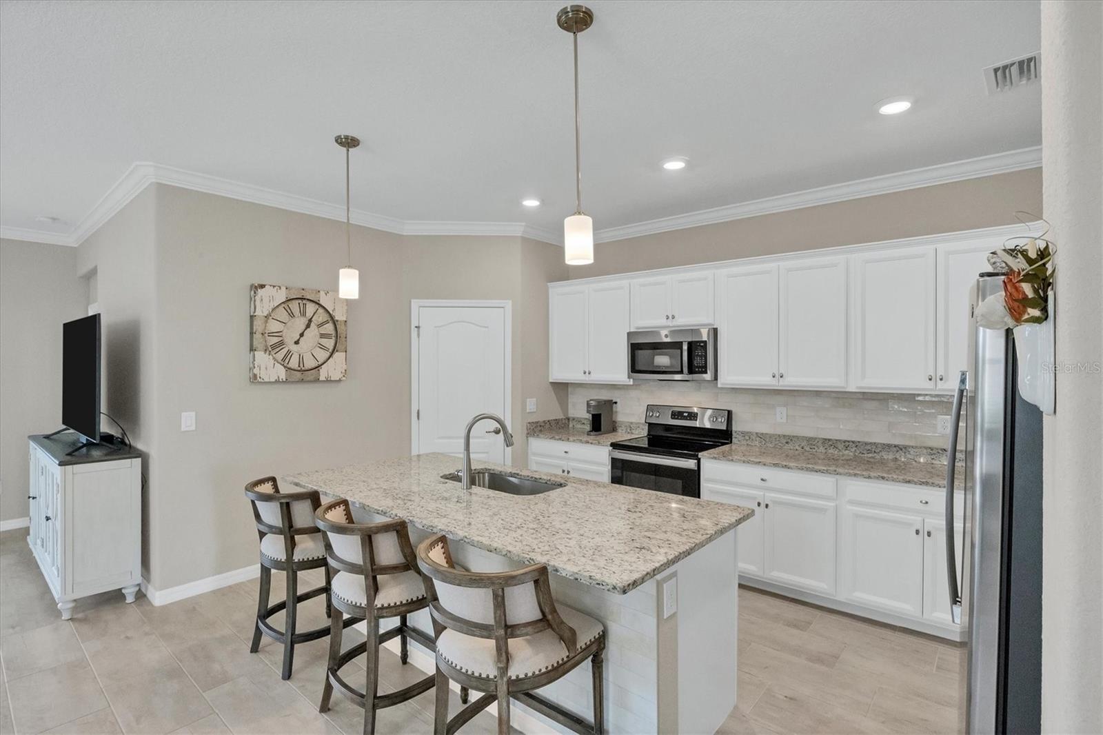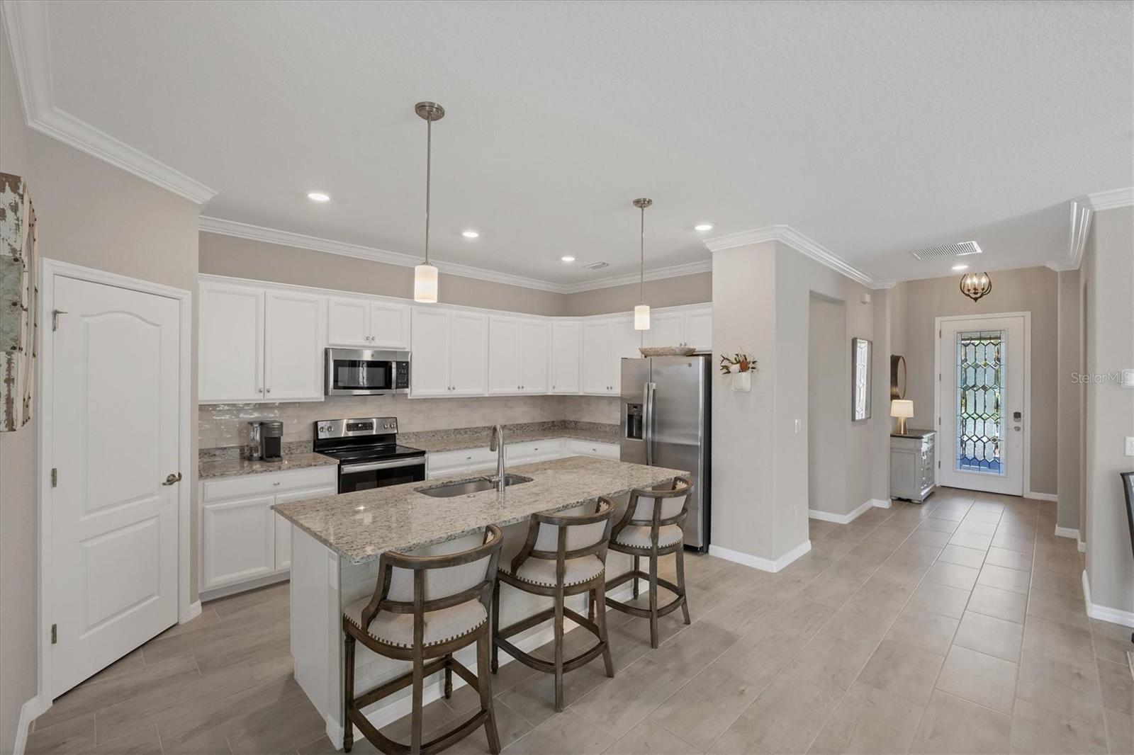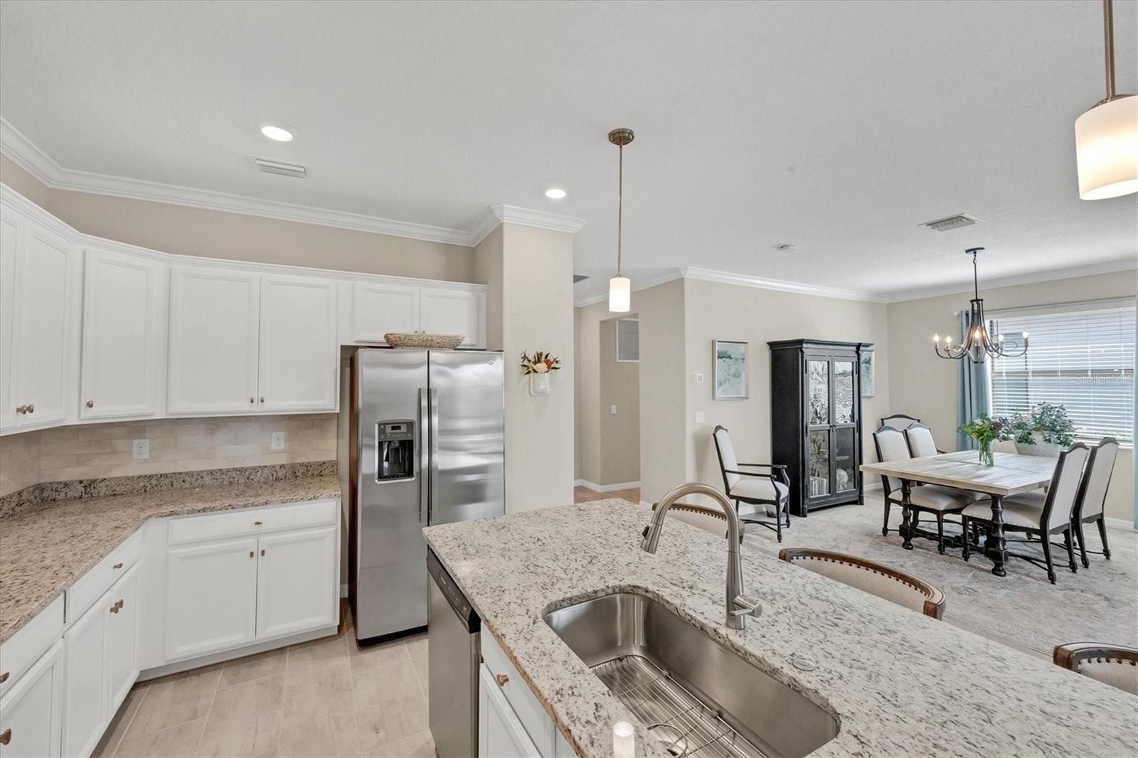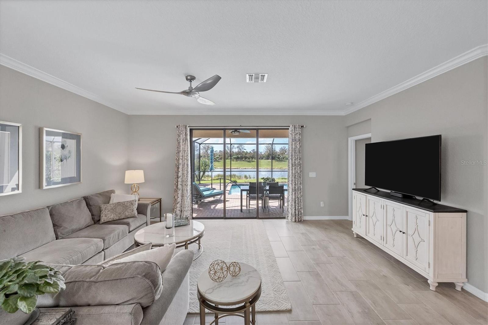 Must see NOW. Pool home on Sarasota National's lake side. NO GOLF FEES!! Popular VENICE floor plan with 3BD/3BA/2CG and a pool. This immaculate home is ready for you to enjoy. SUNDAY DIRECTIONS: Must use main gate off 41 for entrance, GPS will take you to side gate for residents only. GPS directions once inside gate cannot be followed either. Correct DIRECTIONS: Through main gate, then immediate right on Copperleaf, right on Treyburn, right on Crooked Creek, right on Cozy Grove, right on Colubrina. Open floor plan with tile flooring in the main areas. Crown molding and neutral color scheme make this a house you can just walk into. Kitchen offers 42 in kitchen cabinets, granite counters, subway tile backsplash, stainless steel appliances, pendant lighting, and even counter island with room for seating. Your outdoor space is a tropical oasis with private swimming pool overlooking Lake and Greenbelt. No homes behind and none to be built. Southwest exposure for basking in the sun and keeping your energy costs down by warming your pool. Spacious master bedroom with en suite bathroom that includes dual sinks,walk in shower, and walk in closet. Guest bathrooms with en suite baths at opposite end of home for privacy. Property is located conveniently close to side gate for exit and access without driving through the community. Set up your private appointment today! Not here in Florida? See it today with 3D Walk through at: https://my.matterport.com/show/?m=e1Kwowd7noo Sarasota National is Venice's Premier community with over 1300 acres designated for preservation, conservation, lakes, and open space with amazing views, Proclaimed as an Audubon International Certified Sanctuary, making it the most gorgeous and enjoyable golf course to play at in the area. Offering resort style amenities with huge resort style pool and spa,Tiki Bar to serve refreshing drinks and a bite of lunch, tennis courts, pickle ball, Bocce courts, coffee lounge/library/card room/meeting place, 7000 sq ft fitness facilities offering classes and day spa, and a 30,000 sq ft Clubhouse with dining and spectacular views. 18 Hole championship golf course surrounded by native wetlands and preserves provides an exhilarating and dramatic back drop for your golfing adventure. Minutes away from the new Wellen Park shopping area and Atlanta Braves stadium. Venice Beach and Venice Downtown are just a short drive. Your choice of restaurants and outdoor activities await. Come find YOUR Florida lifestyle TODAY and Live everyday like your on vacation!