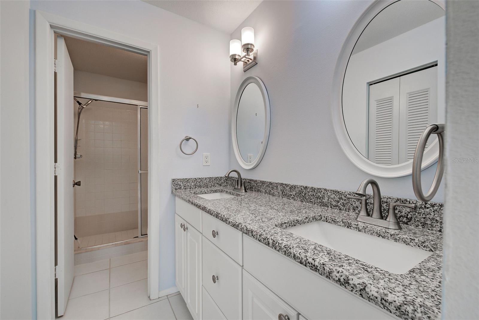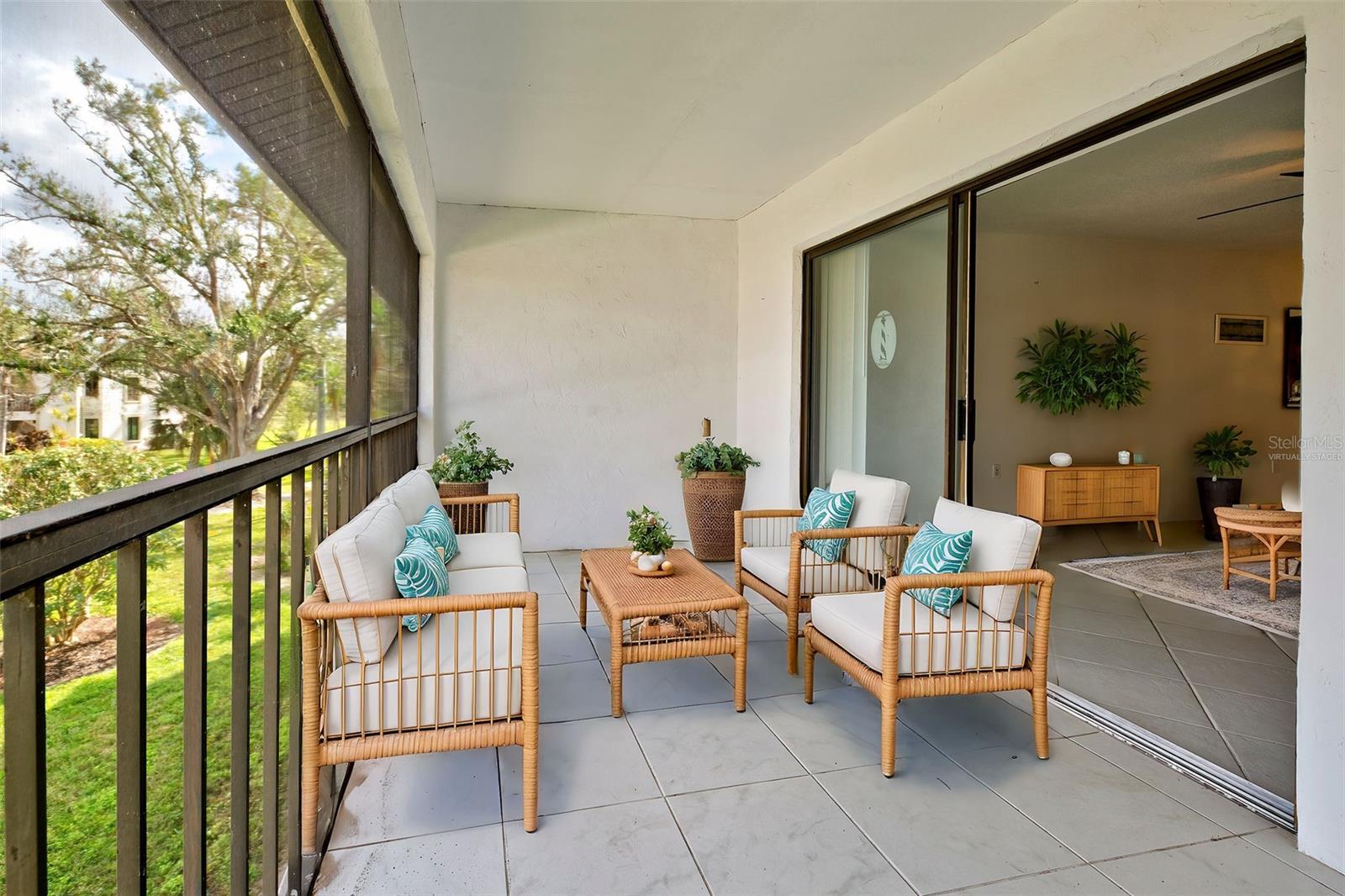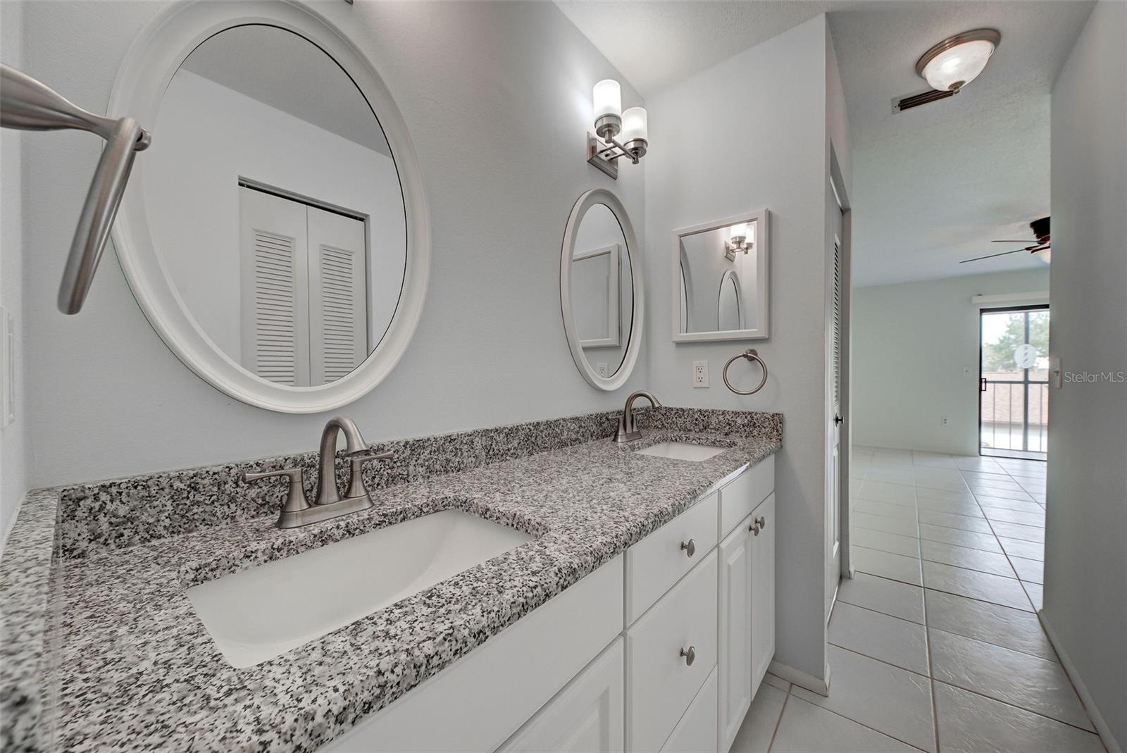 One or more photos have been virtually staged. MOTIVATED SELLER. Discover this impeccably maintained second-floor 2-bedroom, 2-bathroom unit situated just across from the picturesque Capri Isles Golf Course, offering easy access to all the attractions Venice has to offer. Updates abound, including a new front door and remodeled bathrooms featuring new vanity tops, cabinets, lighting, mirrors and double sink in primary bath. The kitchen has been tastefully renovated with new granite counter tops, additional storage cabinets along with upgraded ceiling lights. Enjoy the recently tiled lanai, adding a fresh touch to outdoor relaxation. This unit boasts a clean, neutral decor with tile floors, perfect for any style decor and ceiling fans in every room. Take advantage of the heated pool just steps away, while nearby beaches, golf courses, and shops are mere minutes from your doorstep. Maintenance fees cover a range of amenities, including cable, internet, water, sewer, exterior maintenance, trash, recreational facilities, reserves, and the heated pool. The community pool and clubhouse offer ample opportunities for socializing and activities, fostering neighborly connections and friendships. Estancia's prime location grants easy access to Historic Downtown Venice Island, renowned for its beaches, restaurants, boutique shops, Farmers Market, and various community events hosted by local organizations. Discover the epitome of relaxed coastal living at Estancia.