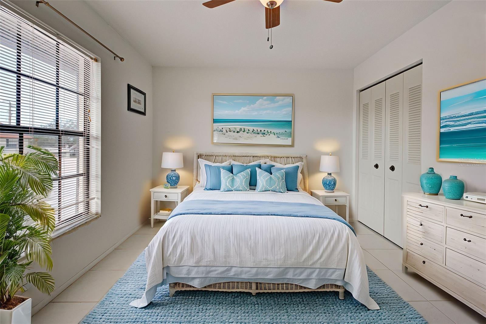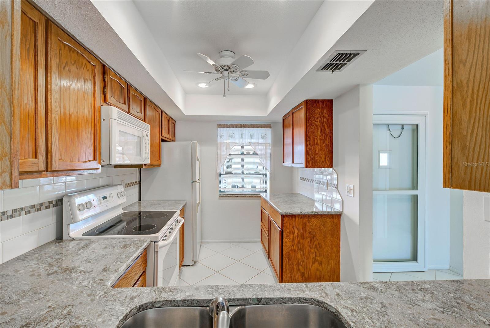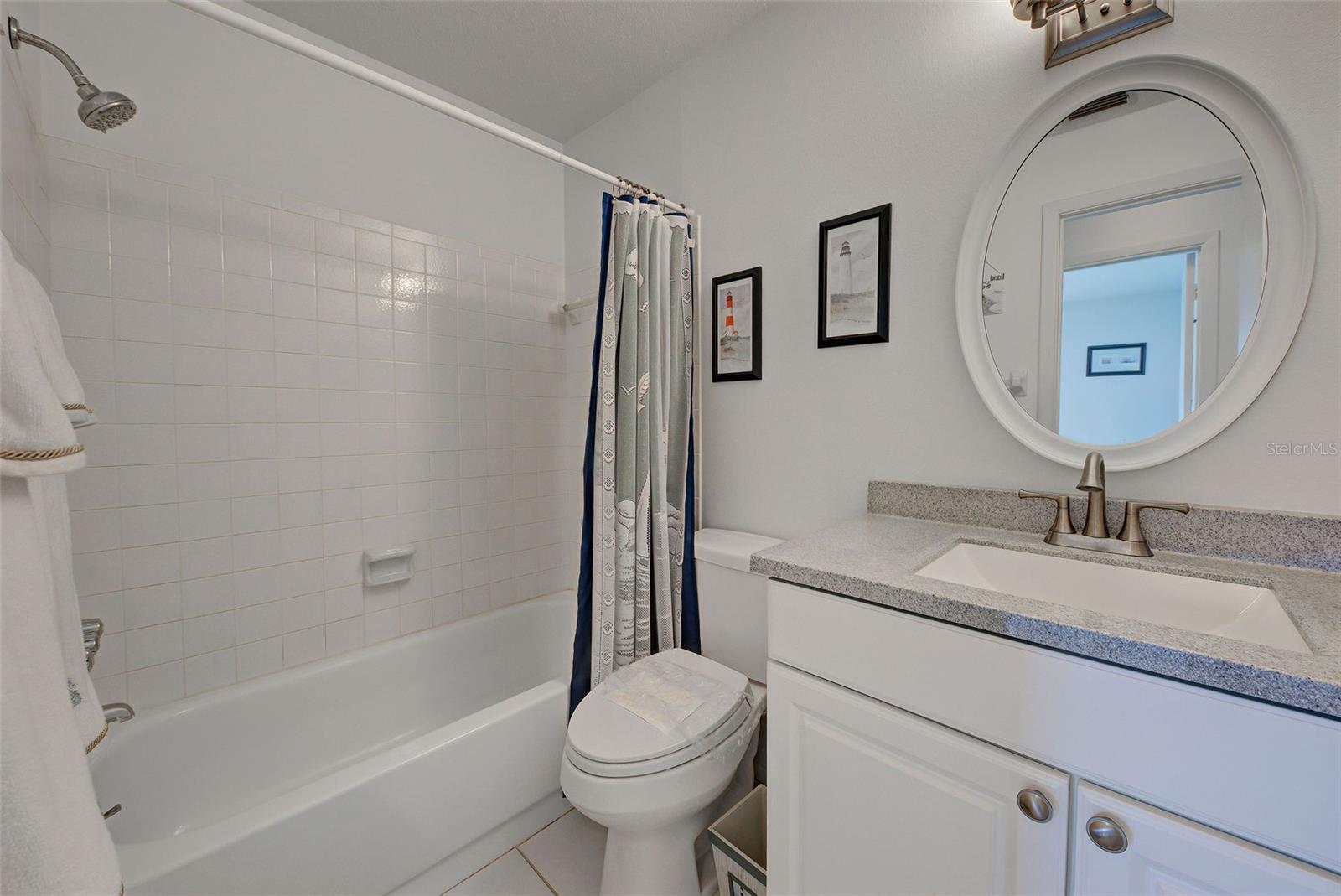 One or more photos have been virtually staged. MOTIVATED SELLER. Discover this impeccably maintained second-floor 2-bedroom, 2-bathroom unit situated just across from the picturesque Capri Isles Golf Course, offering easy access to all the attractions Venice has to offer. Updates abound, including a new front door and remodeled bathrooms featuring new vanity tops, cabinets, lighting, mirrors and double sink in primary bath. The kitchen has been tastefully renovated with new granite counter tops, additional storage cabinets along with upgraded ceiling lights. Enjoy the recently tiled lanai, adding a fresh touch to outdoor relaxation. This unit boasts a clean, neutral decor with tile floors, perfect for any style decor and ceiling fans in every room. Take advantage of the heated pool just steps away, while nearby beaches, golf courses, and shops are mere minutes from your doorstep. Maintenance fees cover a range of amenities, including cable, internet, water, sewer, exterior maintenance, trash, recreational facilities, reserves, and the heated pool. The community pool and clubhouse offer ample opportunities for socializing and activities, fostering neighborly connections and friendships. Estancia's prime location grants easy access to Historic Downtown Venice Island, renowned for its beaches, restaurants, boutique shops, Farmers Market, and various community events hosted by local organizations. Discover the epitome of relaxed coastal living at Estancia.