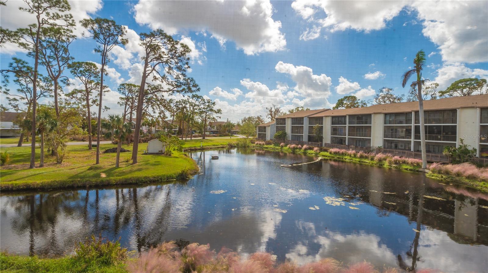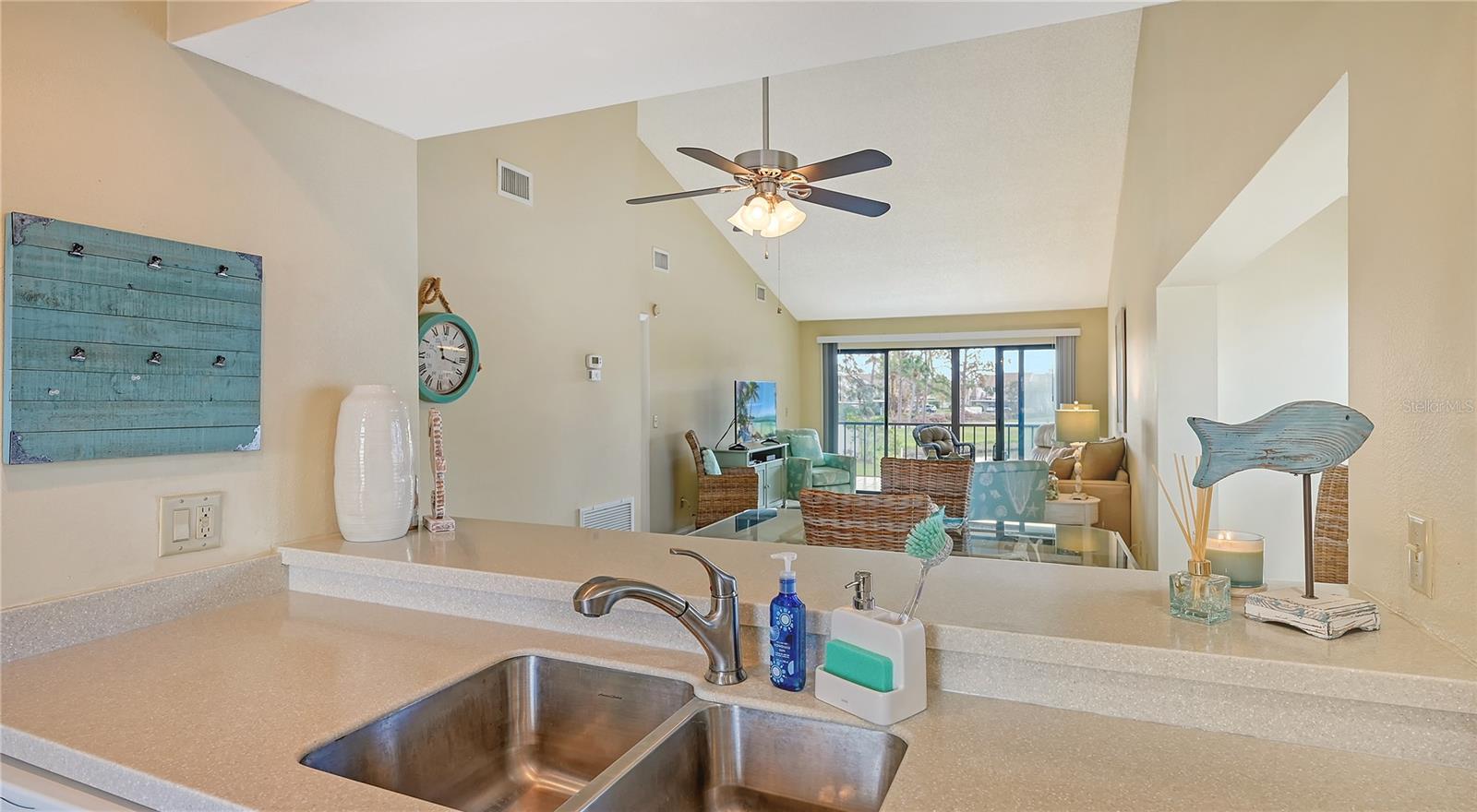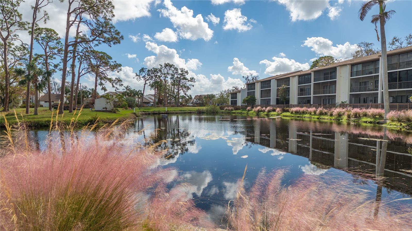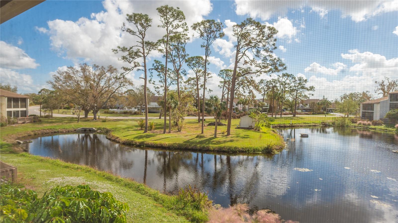 The minute you enter this STUNNING 2 bed, 2 bath end unit condo you'll notice the beautifully UPDATED kitchen with solid surface counters and pass through breakfast bar to the dining area. Plenty of natural light inside from the many patio doors and windows along with a vaulted ceiling in the living/dining room area that makes this space seem larger and airy. The covered, glassed in and screened lanai will be your new favorite place. It runs the entire back of the condo and overlooks a TRANQUIL POND with relaxing water fountain view. Enjoy the warm breezes and lush tropical landscaping while making new memories with family and friends here. Tile flooring in the kitchen, open concept dining/living room and lanai. The primary bedroom has private patio sliding doors to the lanai with more water views. Both bedrooms have walk in closets and both bathrooms are nicely UPDATED. Beautiful designer inspired tropical theme carried all throughout the condo with carefully selected decor and furniture that's ALL included! PLUS you also have your own full sized washer and dryer within the lanai of this unit. Great rental potential here with a minimum of 3 months rental possible with Association approval. NEW roof on condo building in 2023. One pet welcome! Bird Bay is a resort style community in a fabulous location with all kinds of amenities to enjoy from community pools, many pickleball and tennis courts, fitness room, shuffleboard, active Clubhouse and much more! Only a few miles to Venice Beach and Venice Island with delicious restaurants, boutique shoppes, festivals, golfing, boating, fishing and much, much more to discover! The Legacy Bike Trail and Venetian Waterway park are close by and a great way to explore the area and stay fit! Time to "Live on vacation" everyday and make this wonderful TURNKEY FURNISHED second floor condo yours!