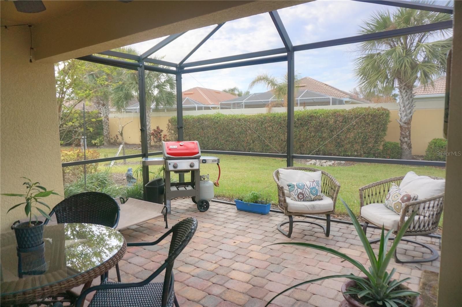 Welcome to this popular Taft floor plan with 2BD/2BA/Den/2CG in Islandwalk complete with TURNKEY FURNISHINGS. Fabulous curb appeal as you drive up to the home surrounded by tropical landscaping with pavered driveway, front walk, and front patio area. Beautiful stone work surrounds the frame of the home. Leaded glass decorative front door greets your guests Inside the open floor plan offers comfortable easy living without the fuss. Living room and kitchen combine seamlessly for day to day activities. Tile floors throughout main areas. Plantation shutters on windows. Extremely workable kitchen with lots of counter space including long island with room for seating and chopping with book end shelf for storing the cookbooks. Tall wood cabinets with plenty or storage room, granite counters, stainless steel appliances, and tile backsplash. Huge pantry for your needs. Take yourself outside to sit on the extended pavered lanai either under cover out in the sun- both options available. Nice size backyard- lots of room for the dog to romp around. To the right of the entrance door you will find a separate den/office area. Perfect for those who work at home or for those who just serf the web. Spacious master bedroom with en suite bathroom and walk in closet. Counter and drawer space for all to store all the magic tricks that make you , you. Laundry located conveniently close to master so no traipsing across the house with dirty clothes. Extra cabinets for storage and products. Guest bed and bath at the opposite end of home for privacy. Guest bath has a tub/shower combo in case you need to wash the dog. Bedroom flooring is engineered hard wood. 2 Car garage extended garage plus driveway space. 2 sturdy hanging storage racks to keep items off the garage floor. Islandwalk is a Premier resort style community offering 2 Clubhouses with swimming pools/spa and fitness centers, 12 lighted pickleball courts,8 Har Tru tennis courts, bocce ball, Dog Park and 2 activities directors coordinating tons of activities/social events. Designed w/ the outdoors in mind- walking paths and bridges flow throughout the community amidst the tropical landscape. Located minutes to Manasota Beach, Venice Beach, shopping, and Venice Downtown with its quaint shops, restaurants, and theatres. Plus just around the corner from the Atlanta Braves stadium and spring training camp, the NEW WELLEN PARK designed community with tons of restaurants, shops, and activities, The 80 acre Grand Lake with numerous outdoor water activities and walking trails. Don't miss out- this is the new upcoming PLACE TO BE!!! Start living your Florida Lifestyle Today!! PLEASE NOTE -WEEKEND SHOWINGS ONLY