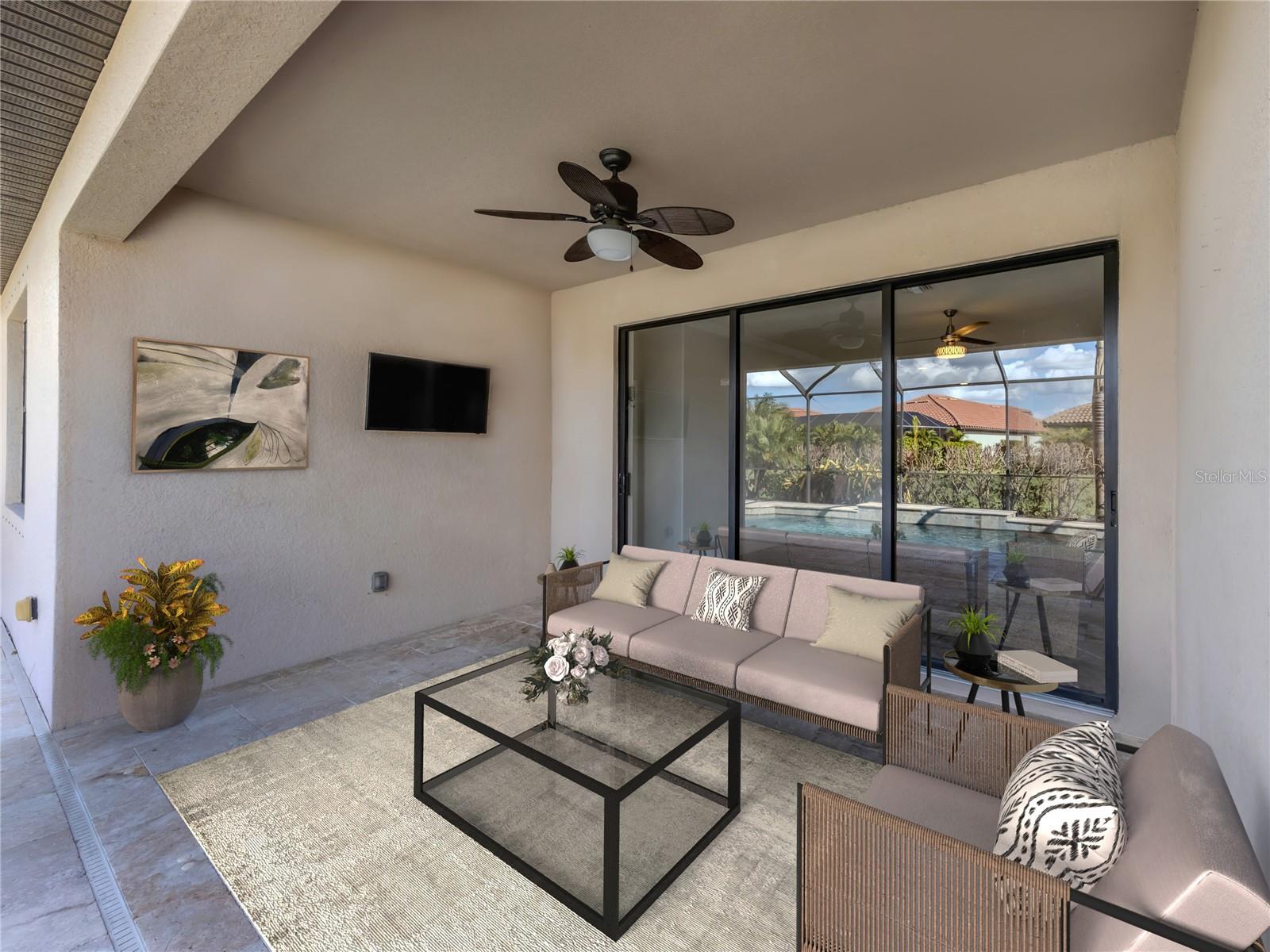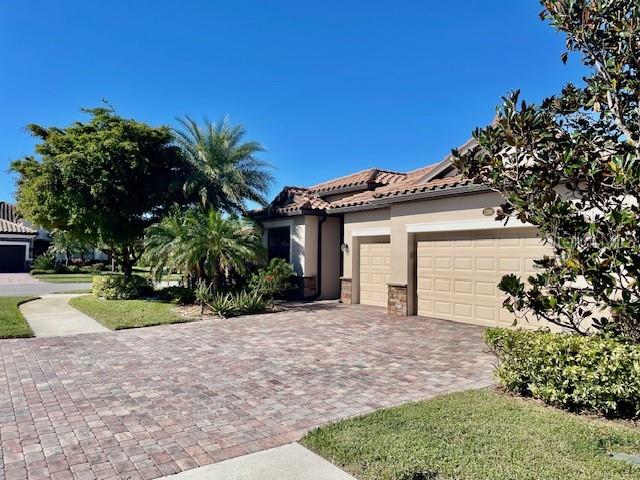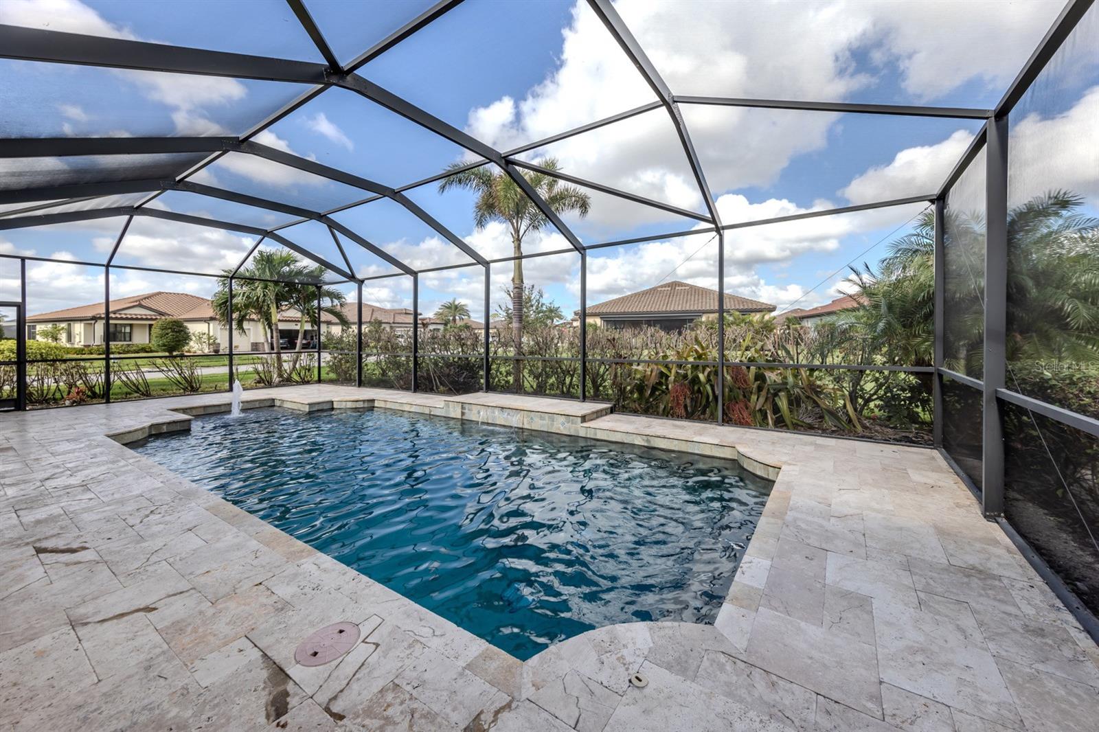 LIVE WHERE OTHERS VACATION! Come and enjoy resort style living in Gran Paradiso! Rare sought-after Tiivoli model. Beautiful, heated saltwater pool with a Partial lake view. Welcome to this Mediterranean – inspired 4 bedrm/3 bath, Upscale residence on a prime oversized corner lot in the much sought-after neighborhood of Gran Paradiso. This luxurious home, with a spacious 3-car garage, boasts premium finishes and sustainable design touches throughout. Newly installed carpet in primary bedroom. The chef's kitchen is a standout, featuring granite countertops, maple cabinetry, French nickel hardware and stylish lighting that seamlessly connects the open floor plan living and dining areas. Outside, your private oasis- a travertine pool deck surrounds a sparkling custom heated saltwater pool. A cascading waterfall and a bubbler within an oversized, screened enclosure awaits-perfect for relaxing, and entertaining. The spacious primary suite offers a serene retreat with dual vanities, a soaking tub and a glass, enclosed shower while additional bedrooms provide space, quiet and comfort. Enjoy resort – style amenities and upscale restaurants in downtown Wellen Park, just 2 miles away. Gran Paradiso, a resort style community is a guarded – gated community offering a 24 -7 award-winning Fitness Center, a full-time recreation Director organizing community events with a masseuse on premises. But wait, there’s more! Basketball, tennis, pickle ball courts. Golf cart friendly community. Only 9 miles to 11 beaches of your choice, quick access to interstate 75, 10 minutes to historic downtown Venice. Sarasota Memorial Hospital, just 10 miles away. Atlanta Braves winter training stadium, just 3 miles away, and Costco 2 miles away! HOA only $320 per month - paid quarterly /includes lawn care maintenance, edging, cable, TV, Internet. Walking distance to clubhouse and amenities.
